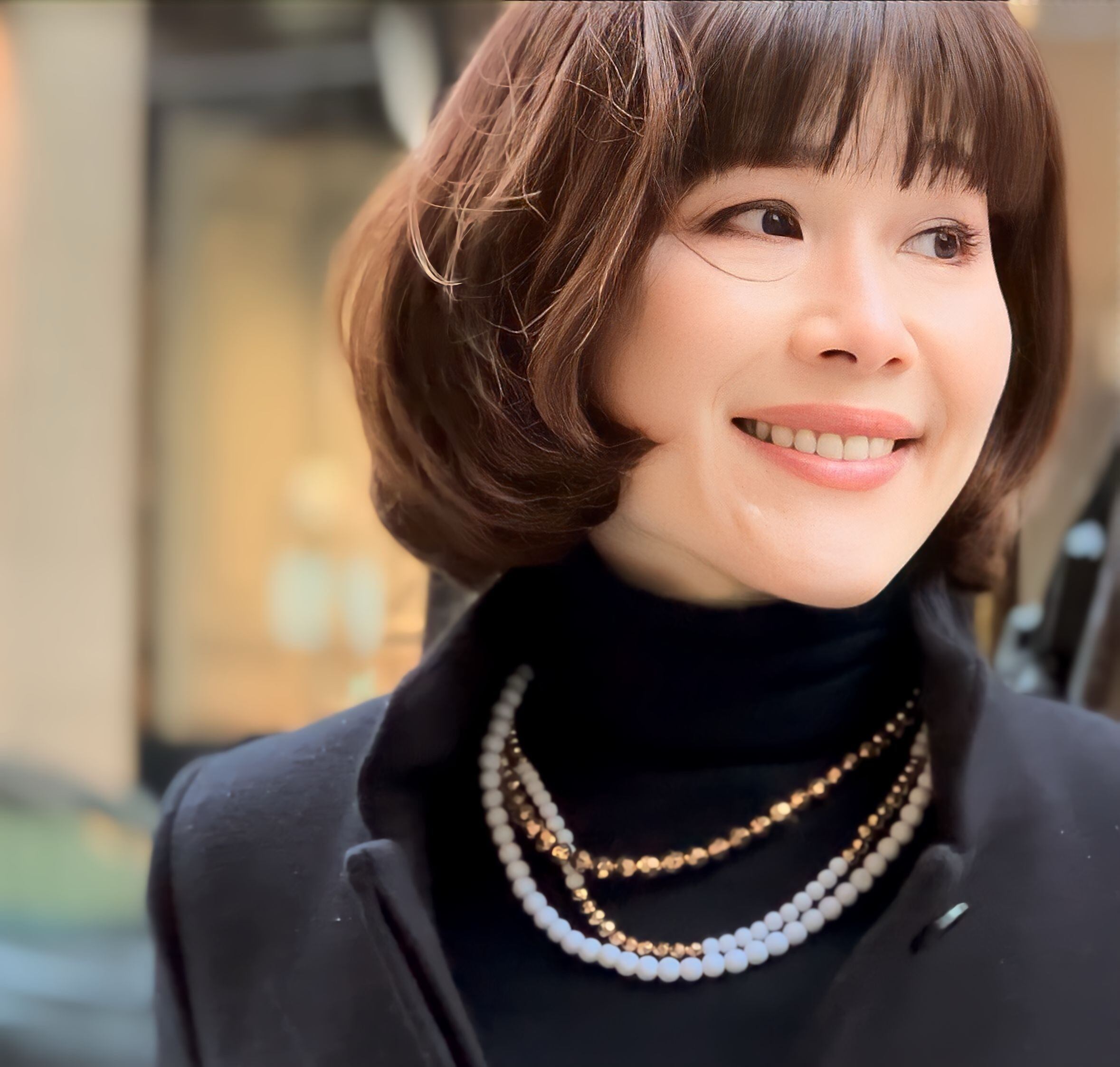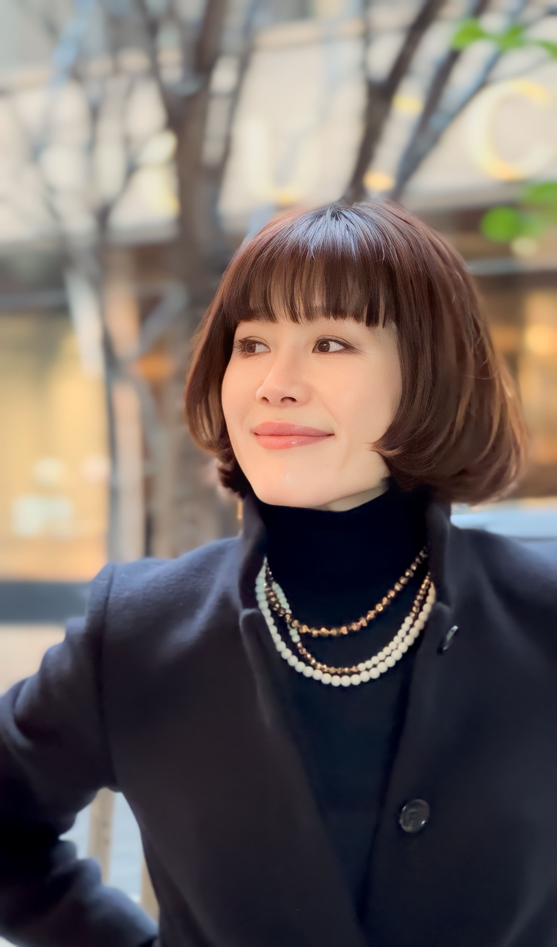 大人っぽい色合わせがお顔まわりとスタイリングをパッ! と明るく照らしてくれます。
