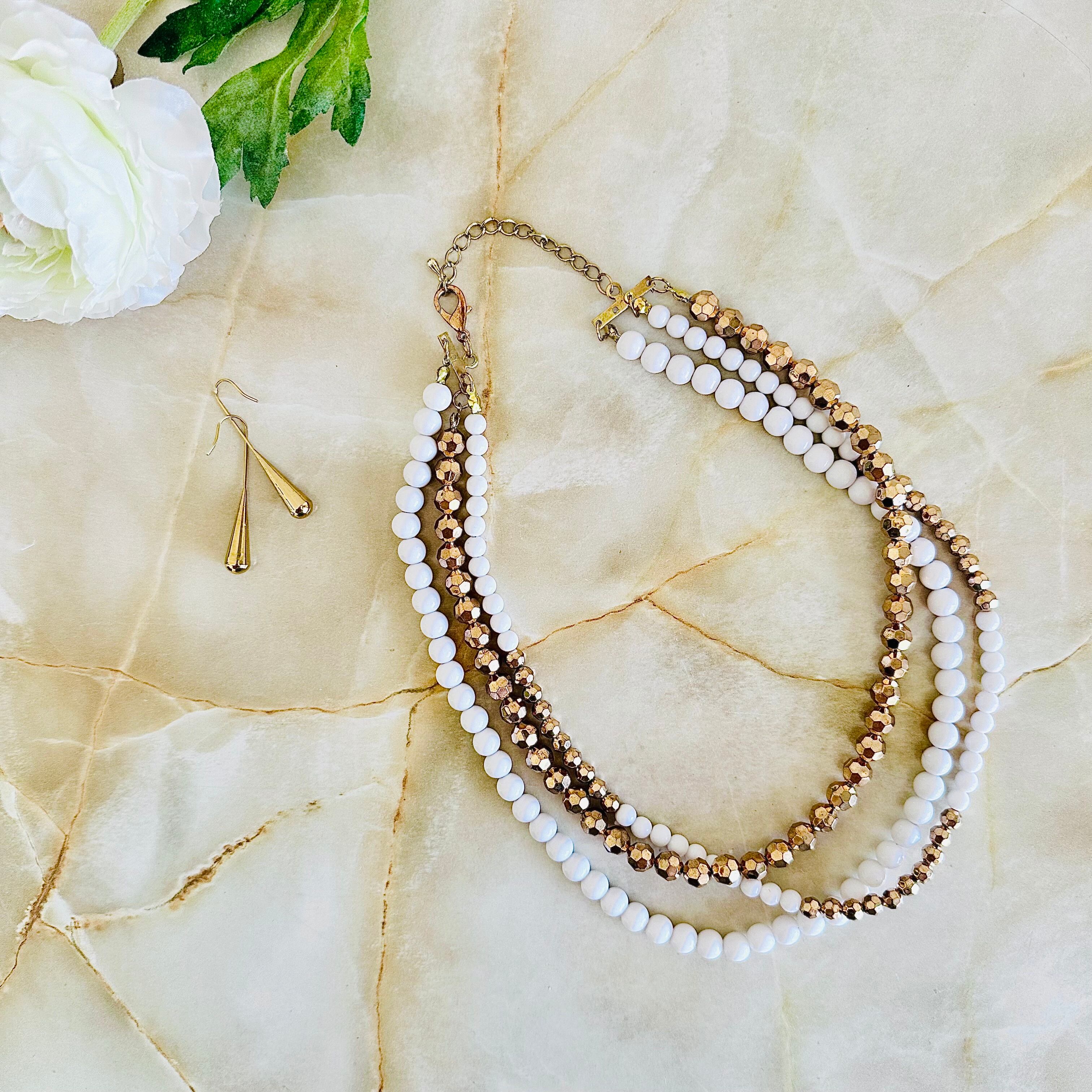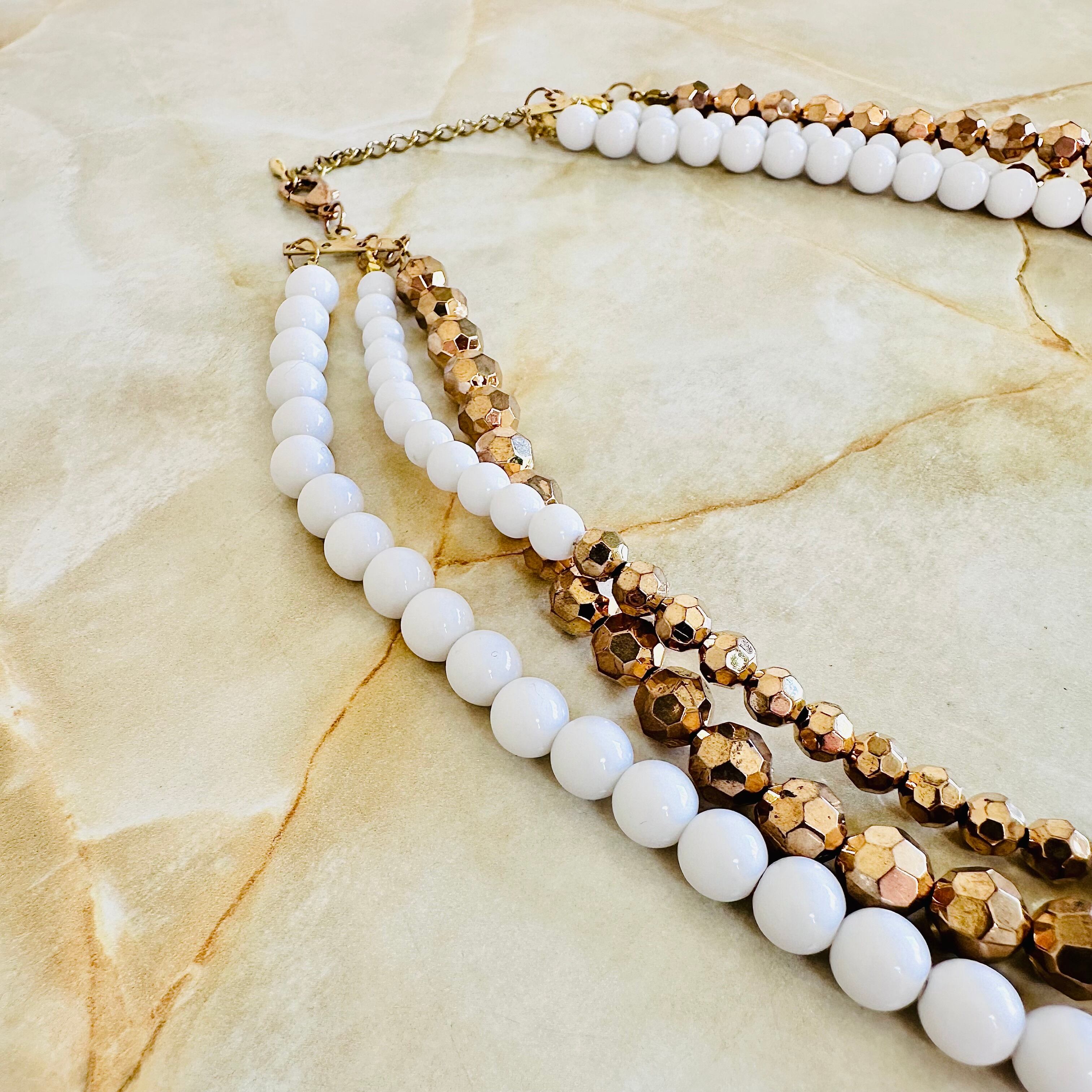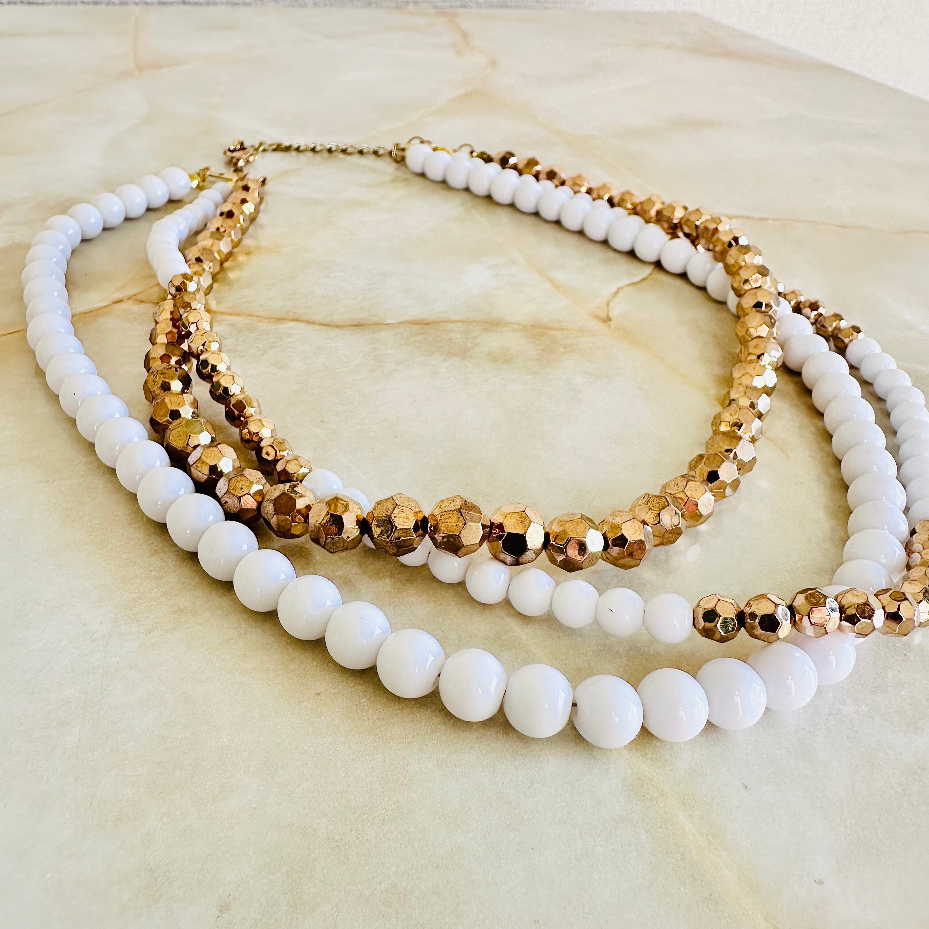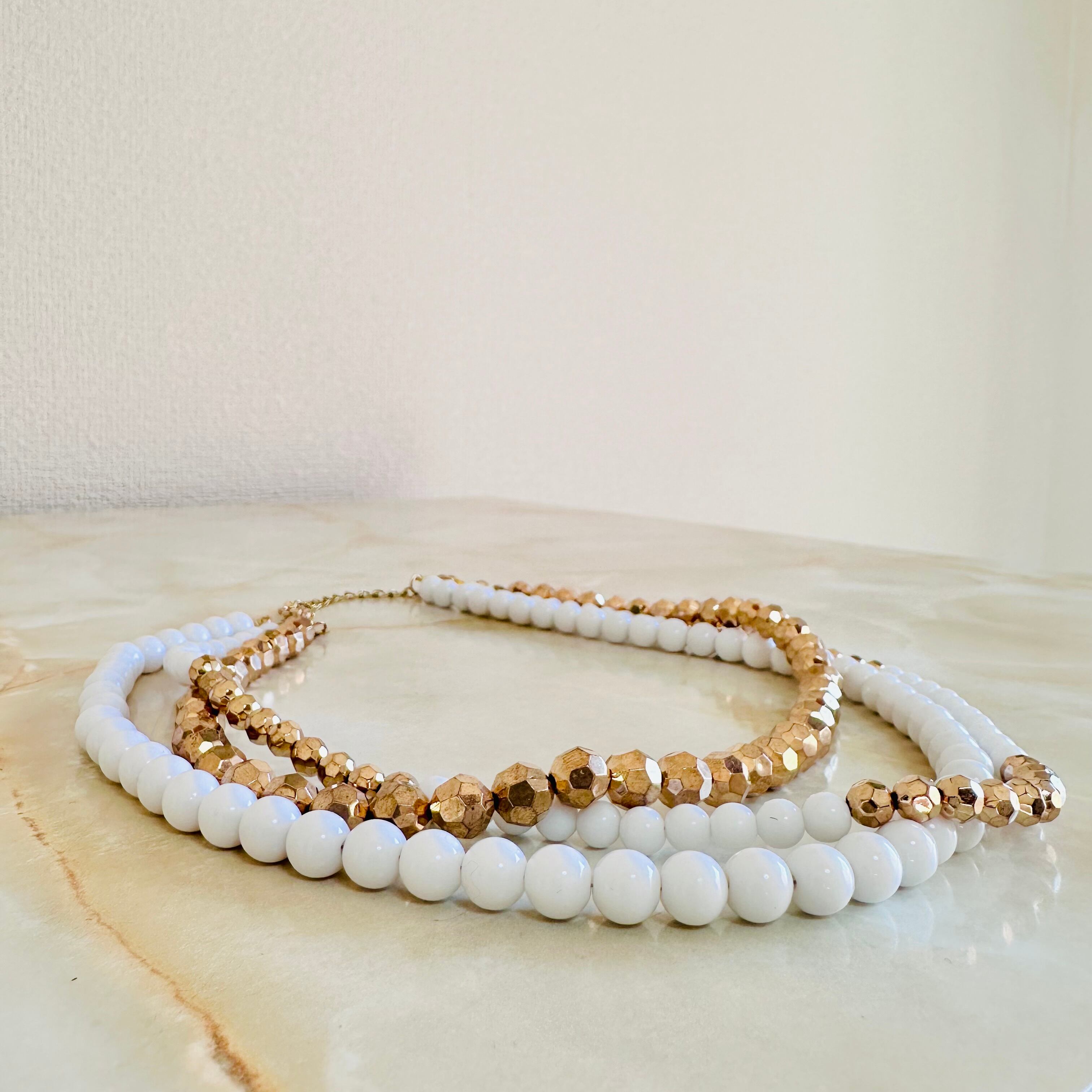 ホワイト、ブロンズ✖️アンティークゴールドカラーのネックレスです。