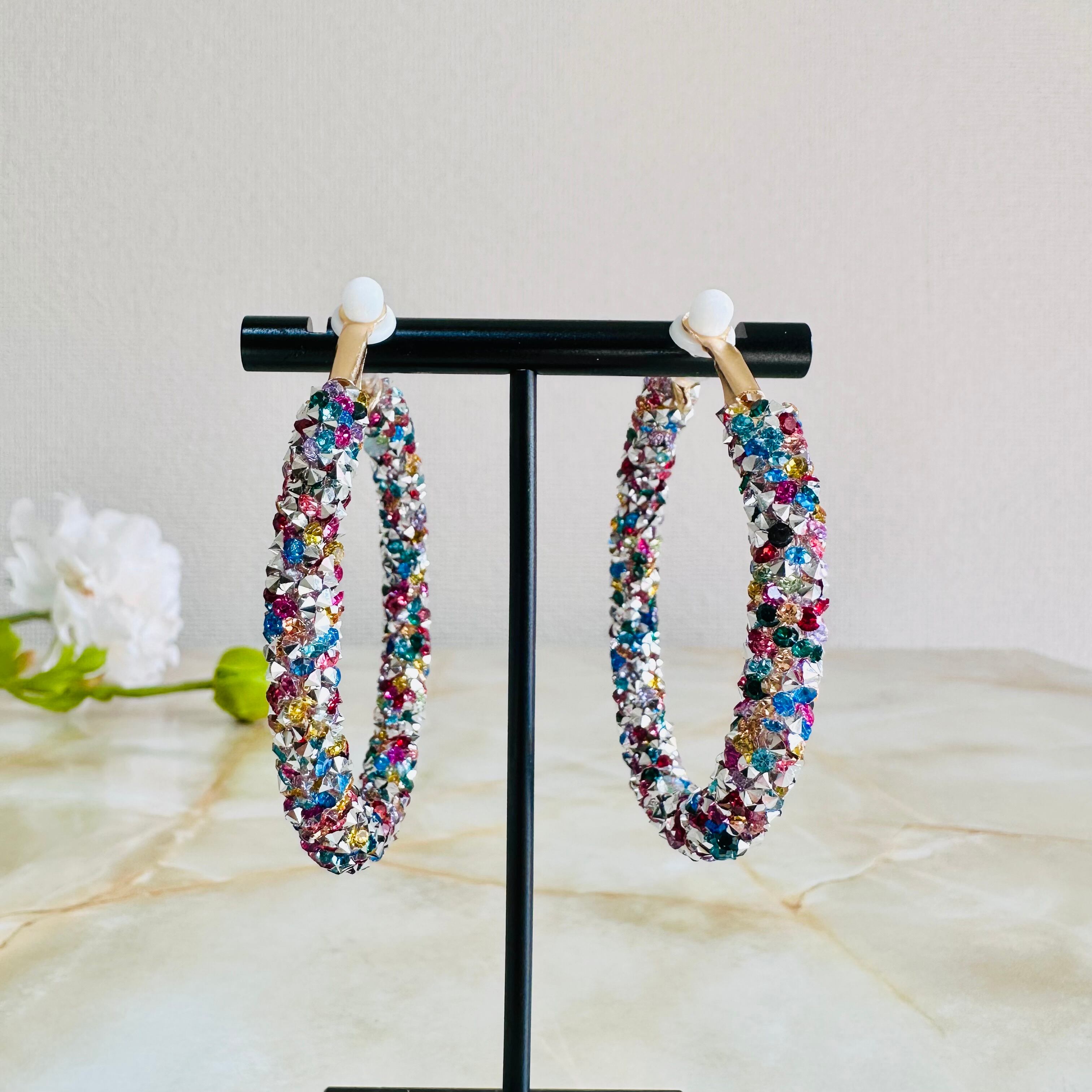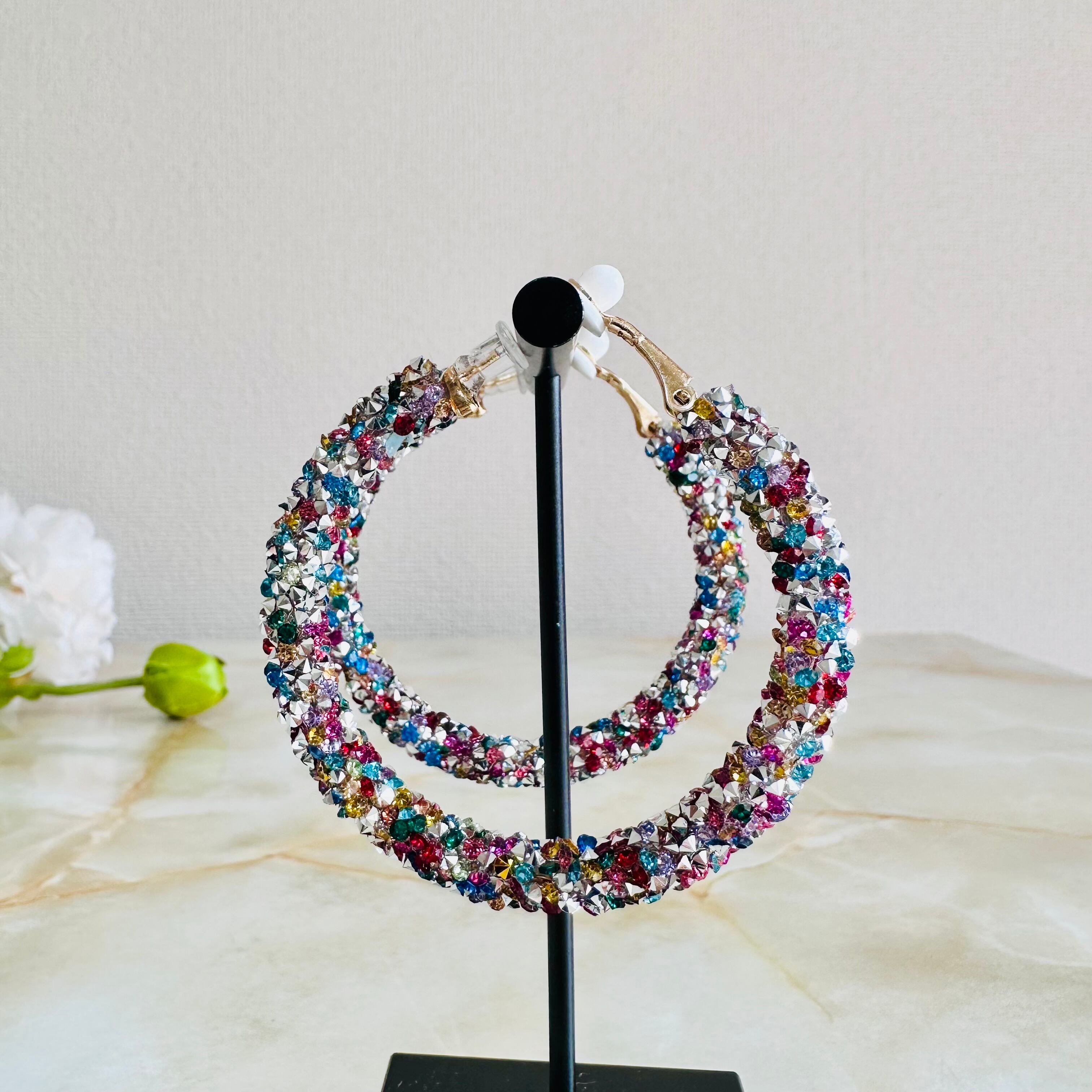 マルチカラー✖️マットゴールドカラーのイヤリングです。