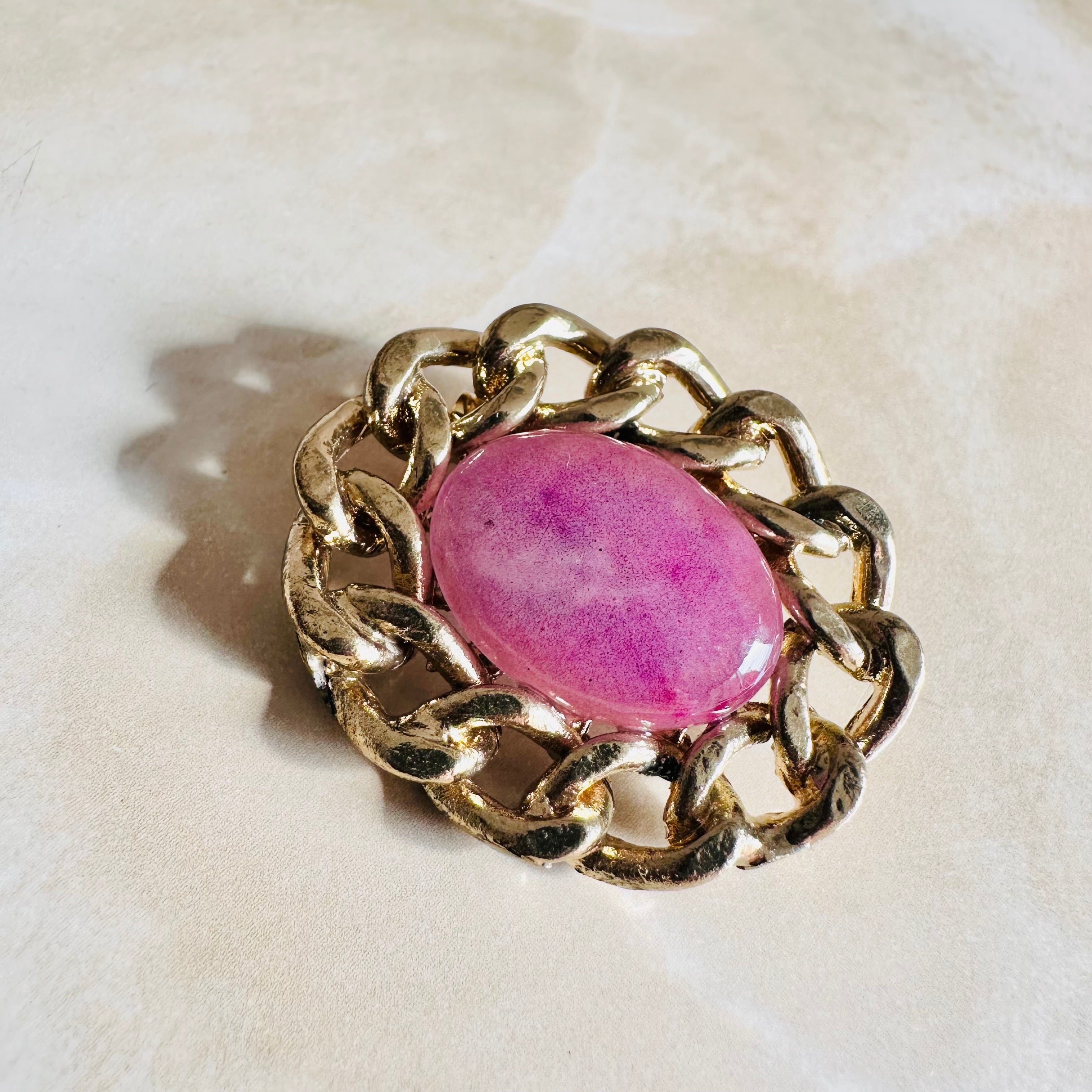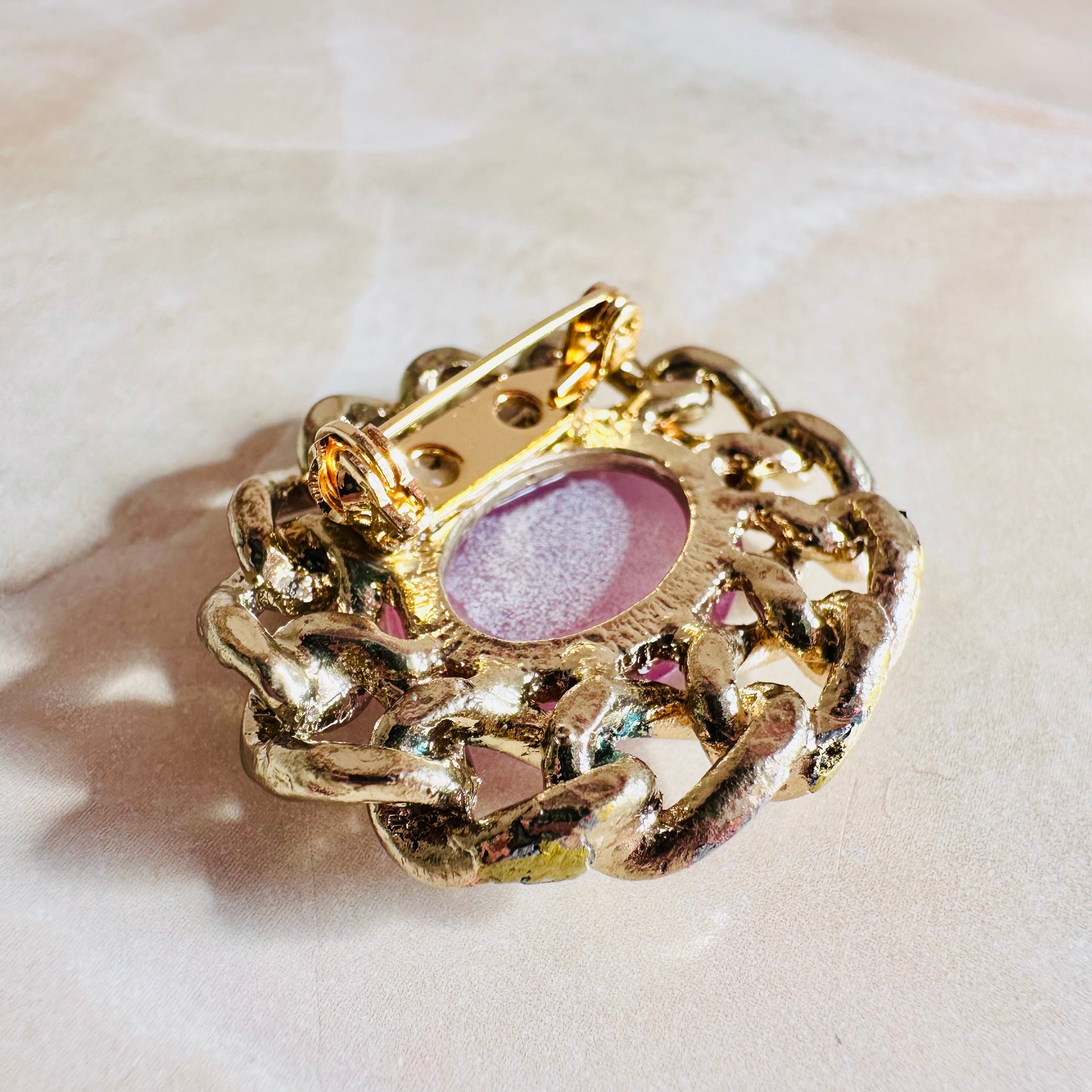 ピンク✖️アンティークゴールドカラーのブローチです。