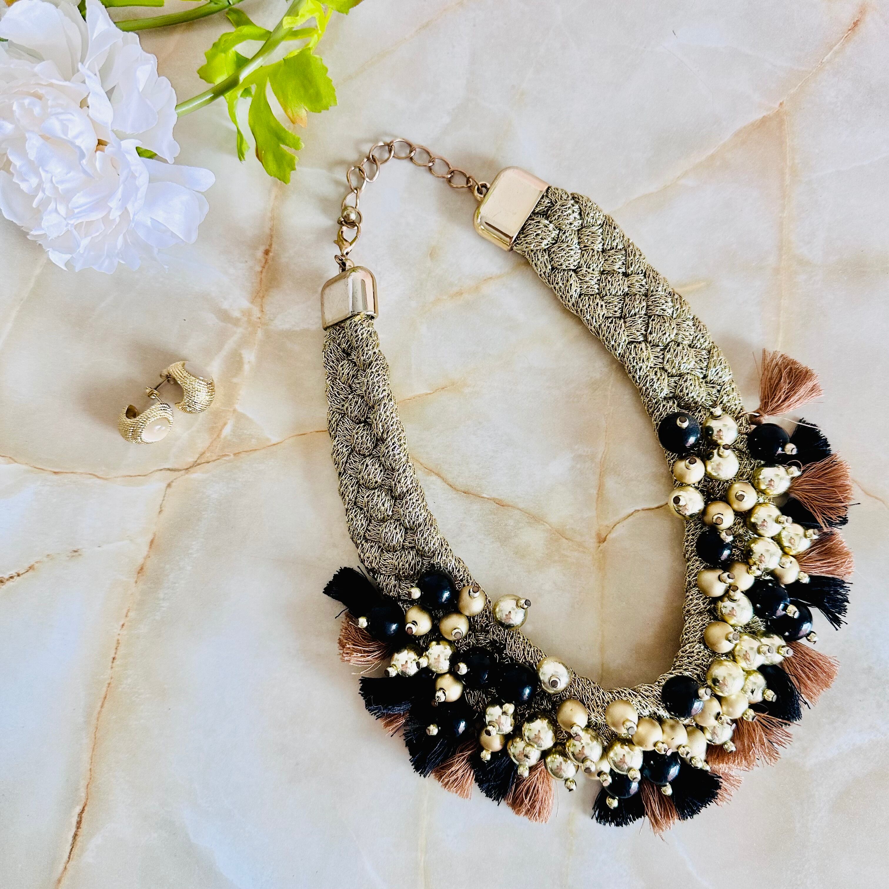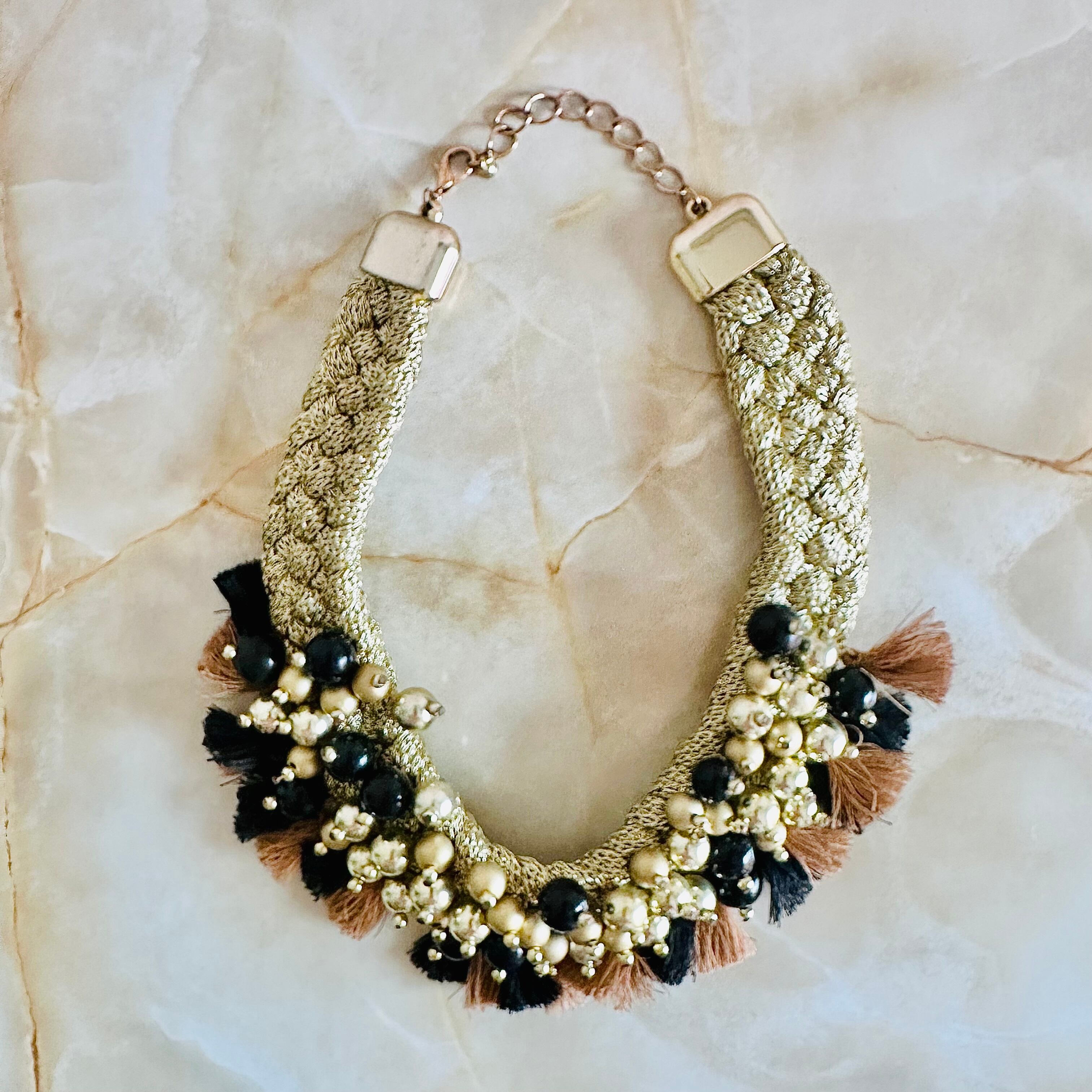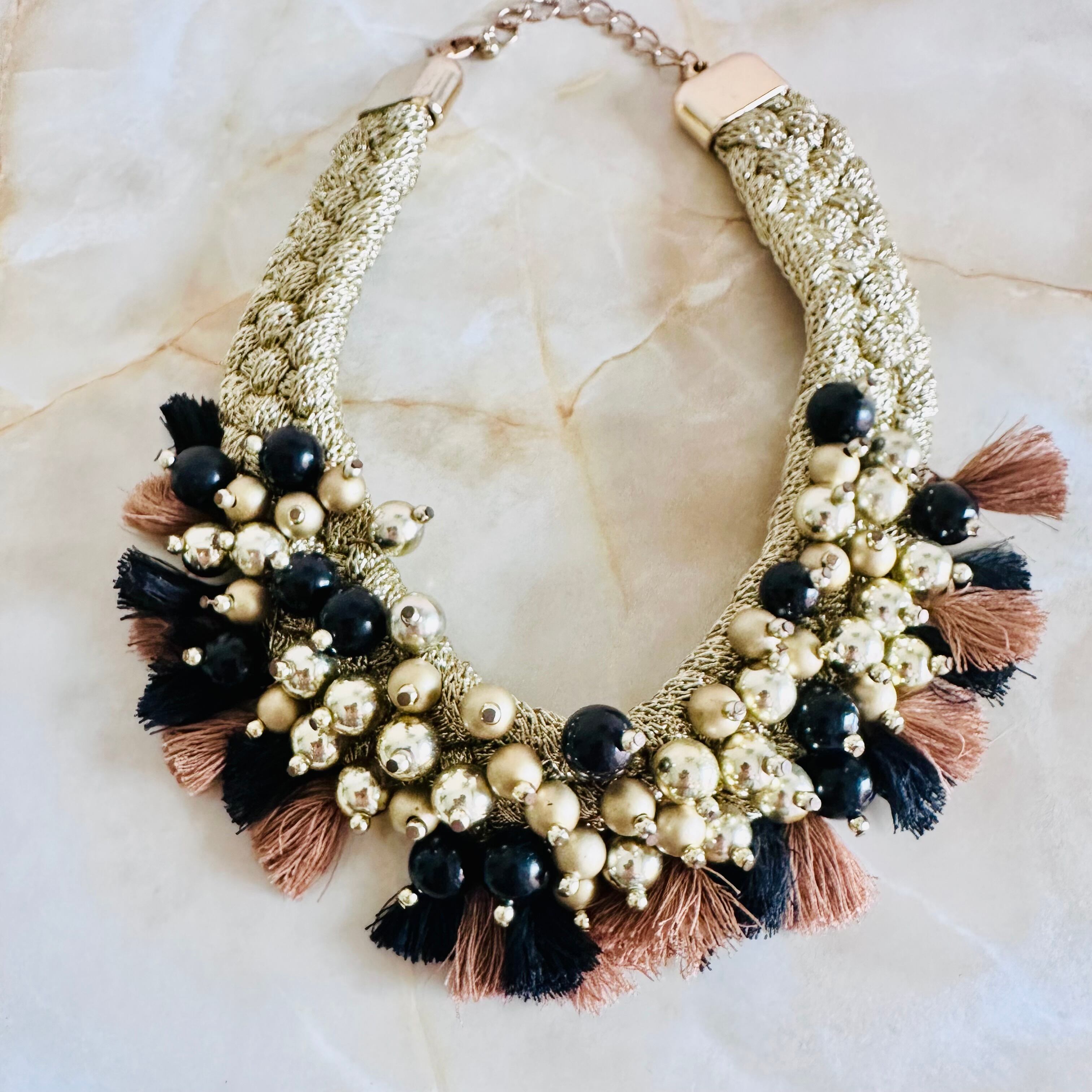 ブラック、キャメル✖️ゴールドカラーのネックレスです。