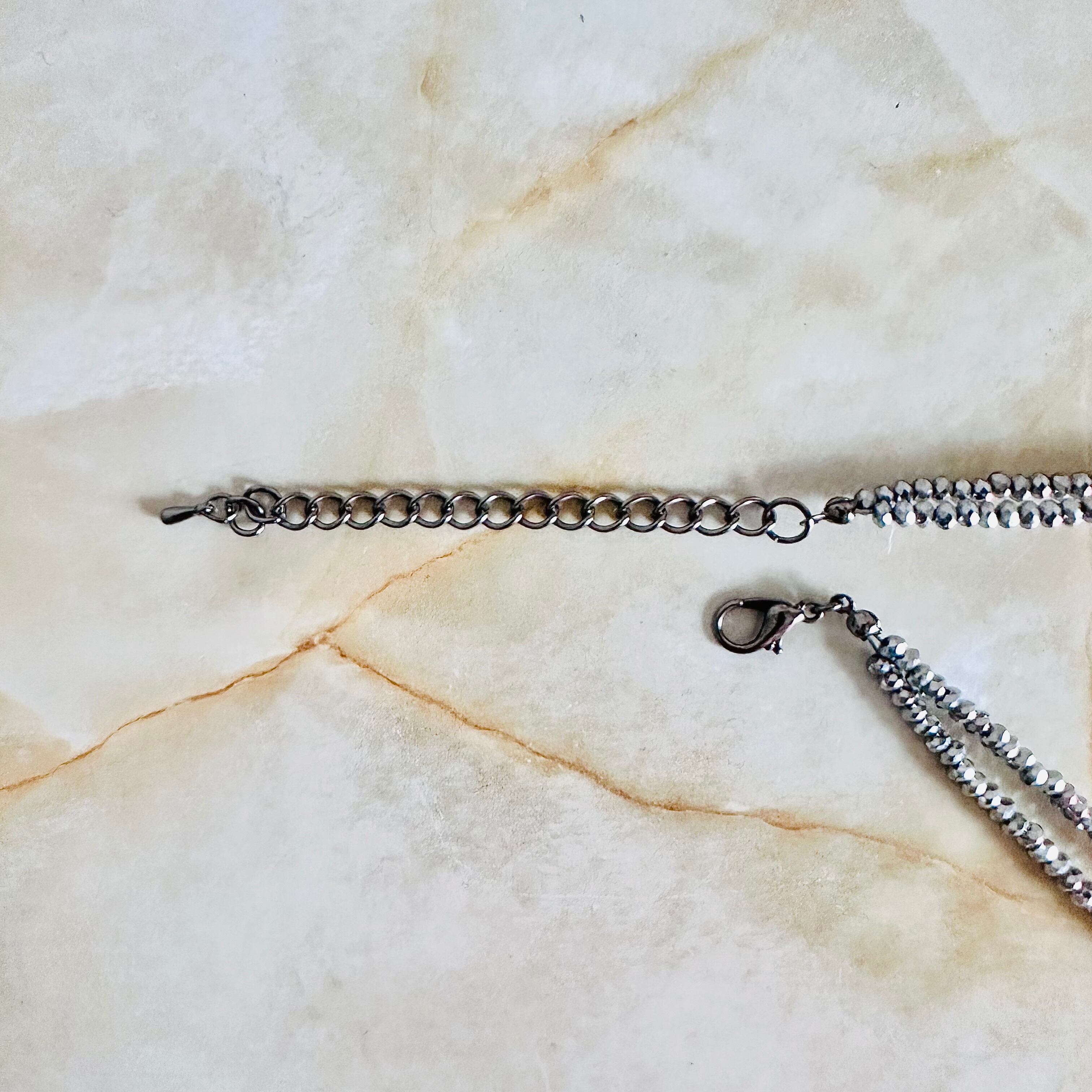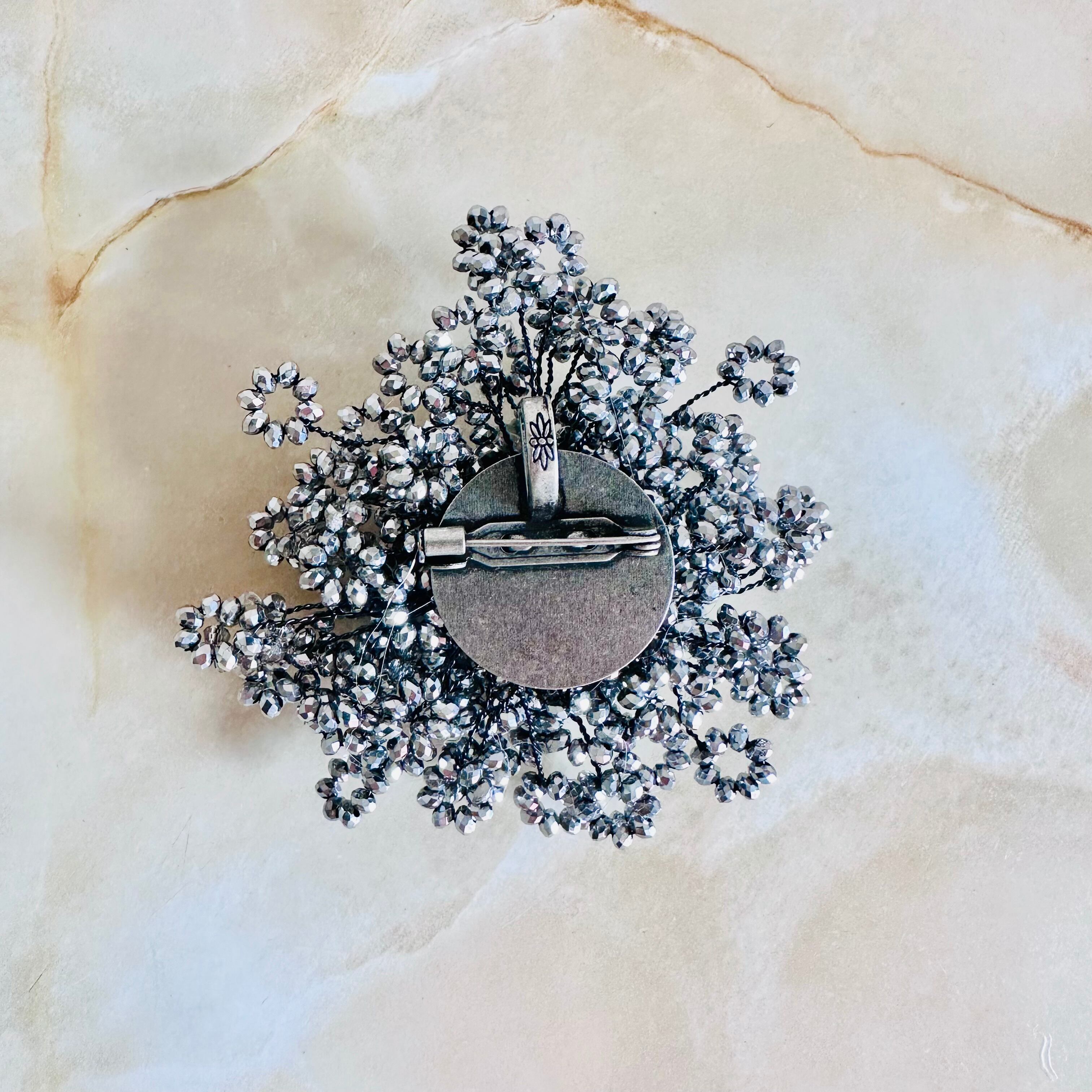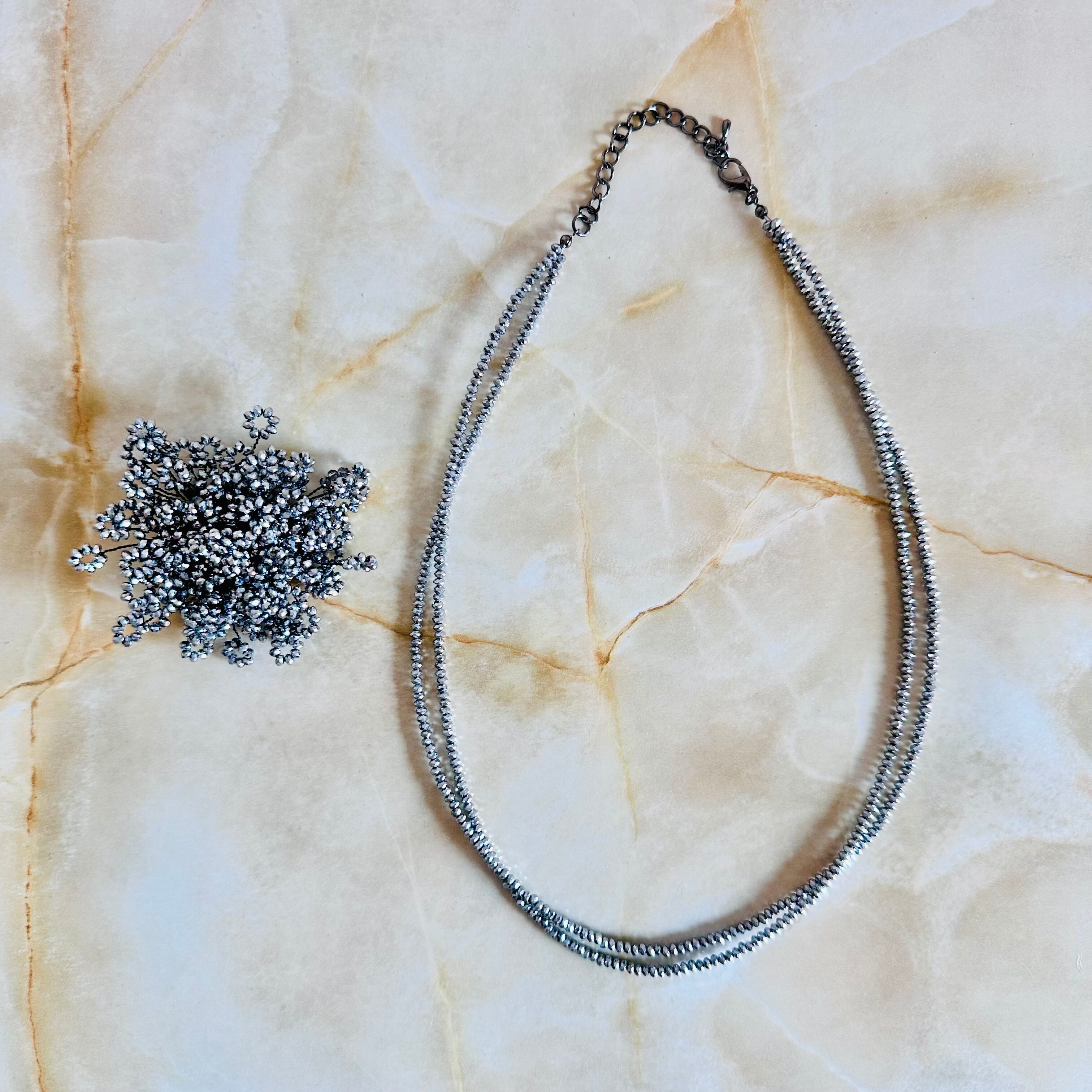 チェコビーズを使用し、トップのフラワーブローチが取り外せるデザインのネックレスです。