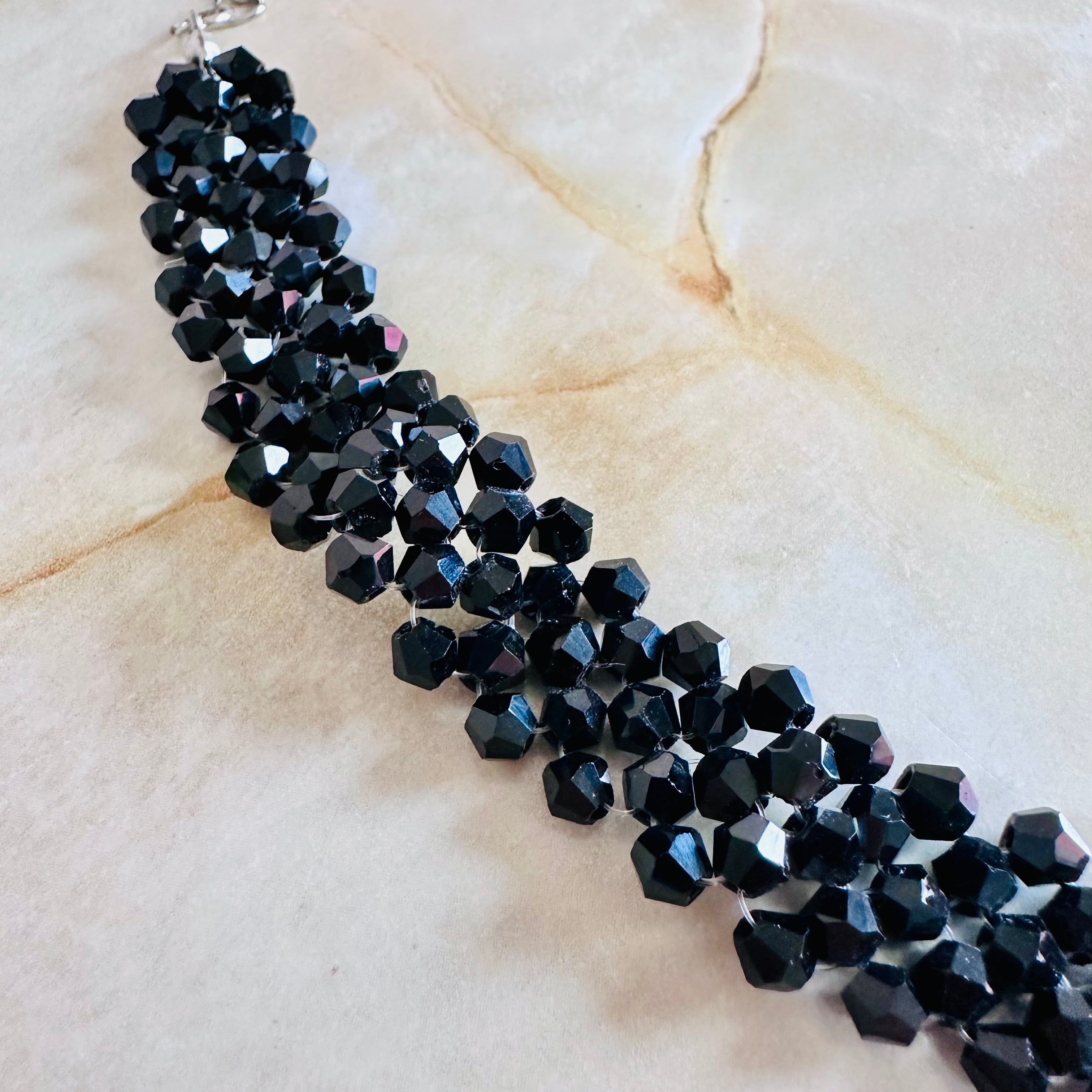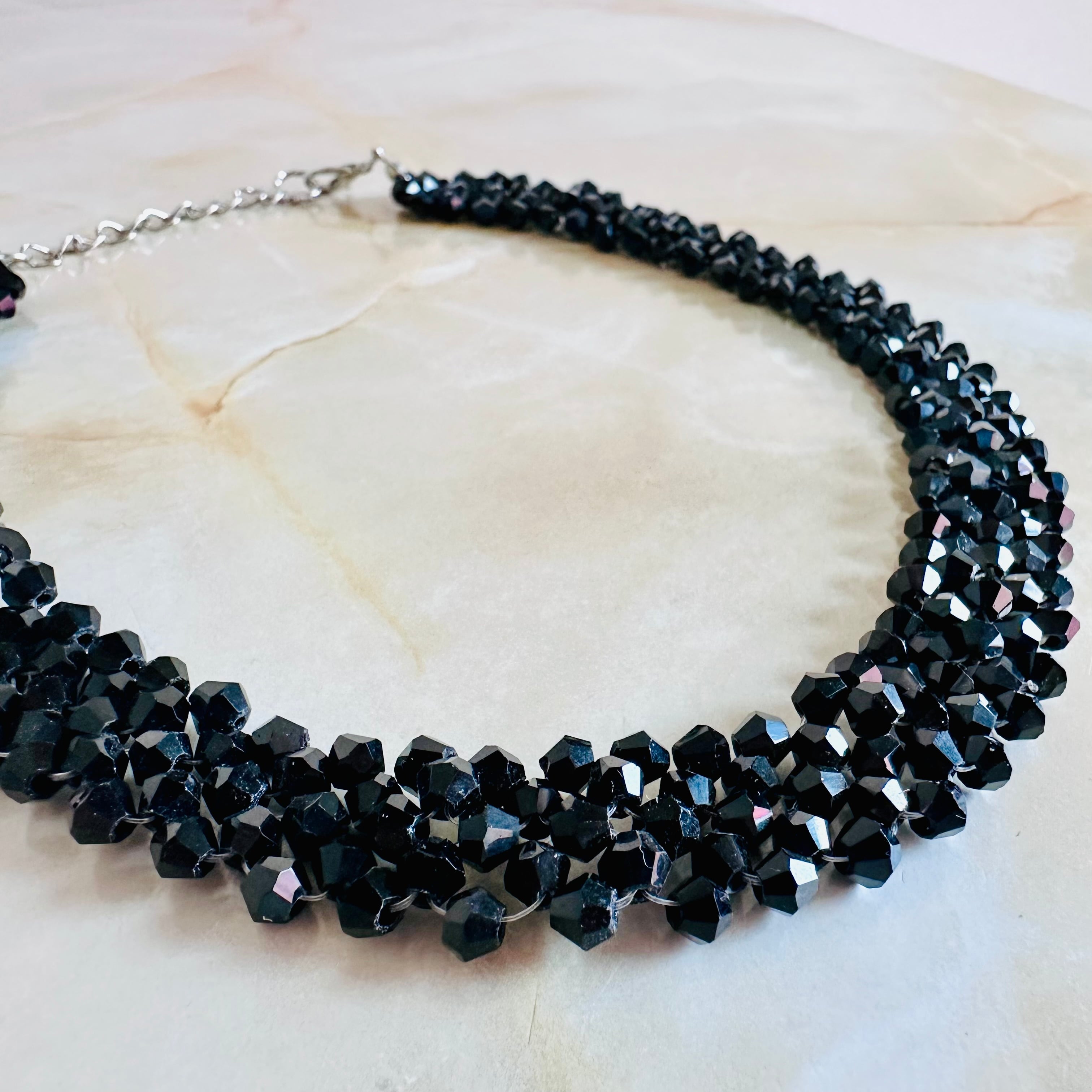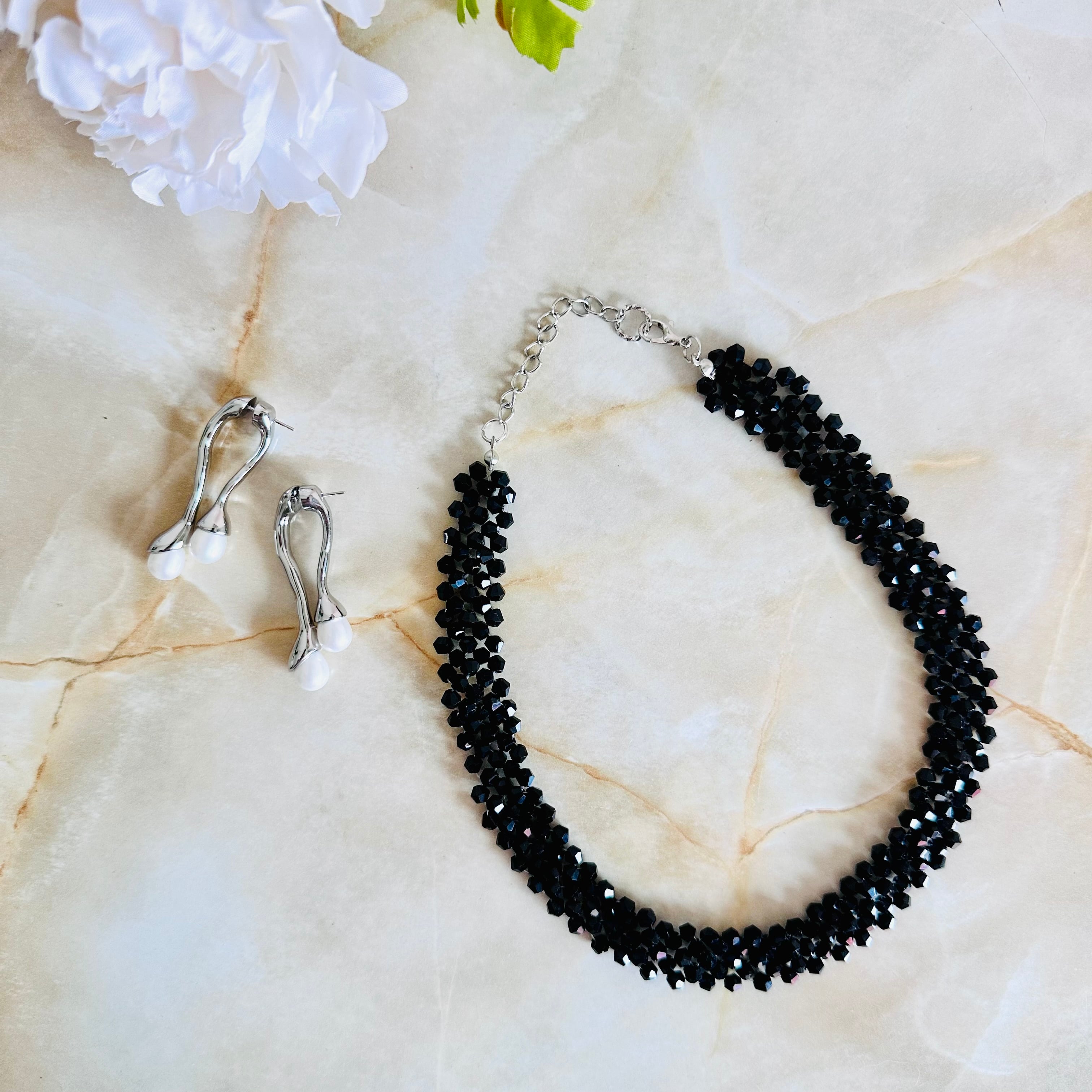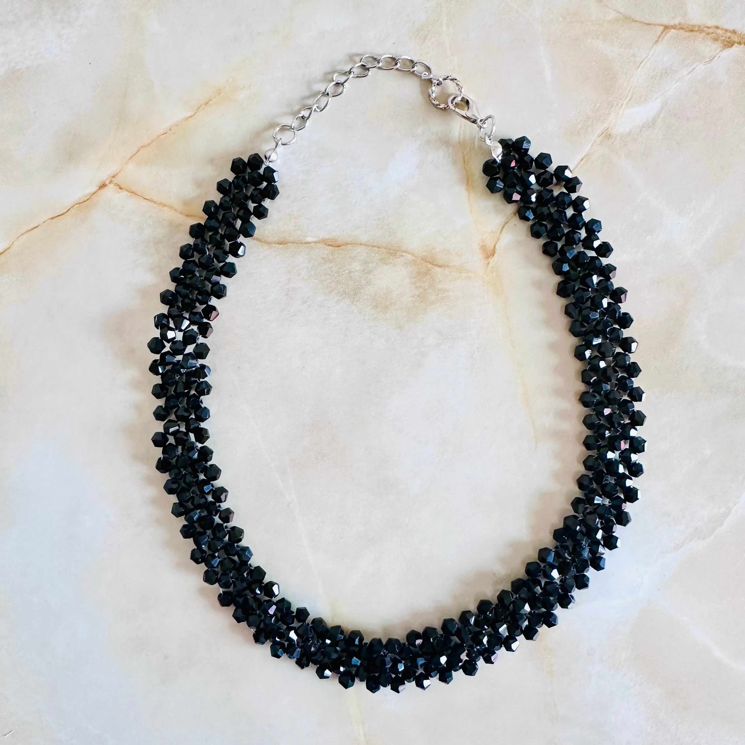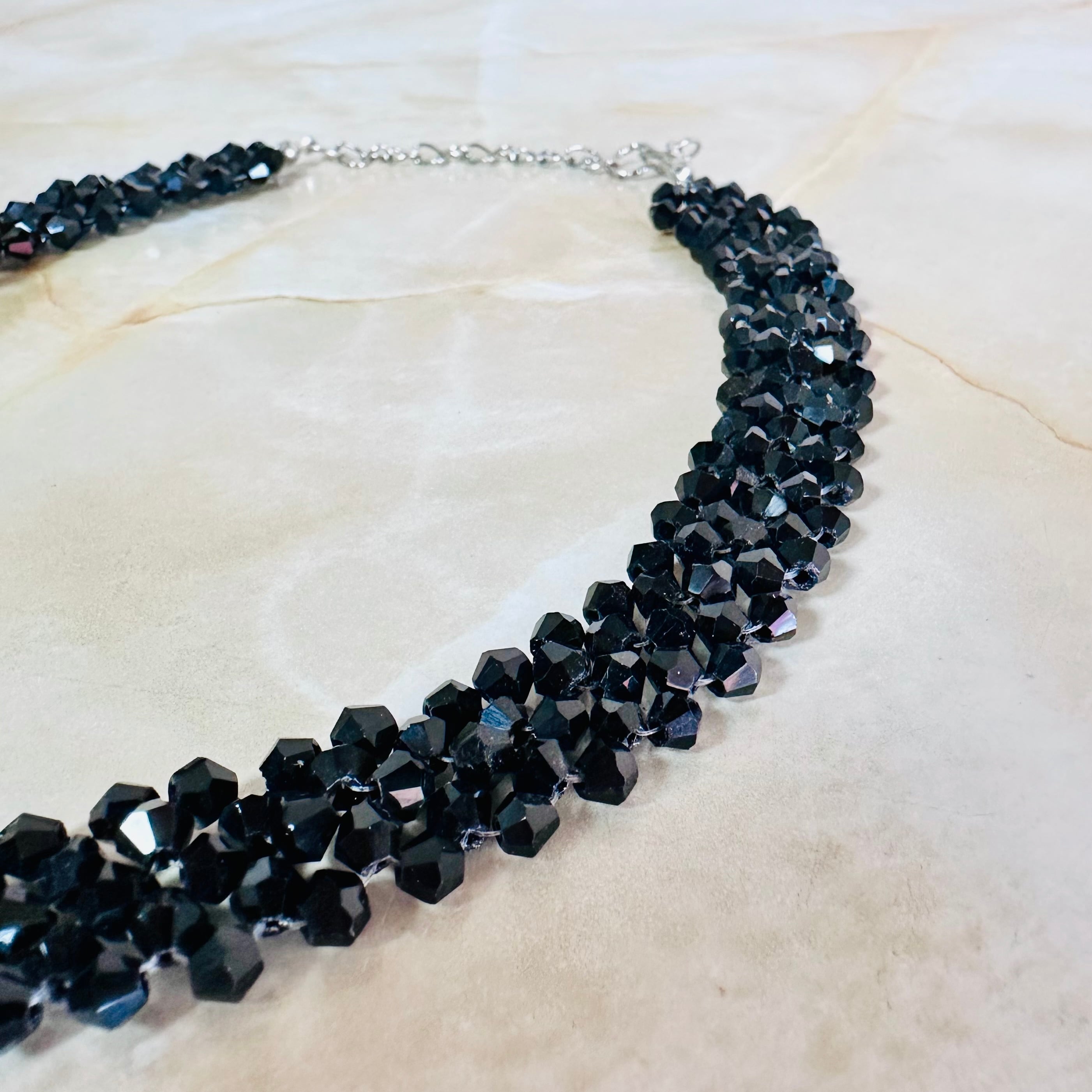 美しく輝くブラックガラスを繋ぎ合わせ、おしゃれなチョーカーデザインにしあげました。