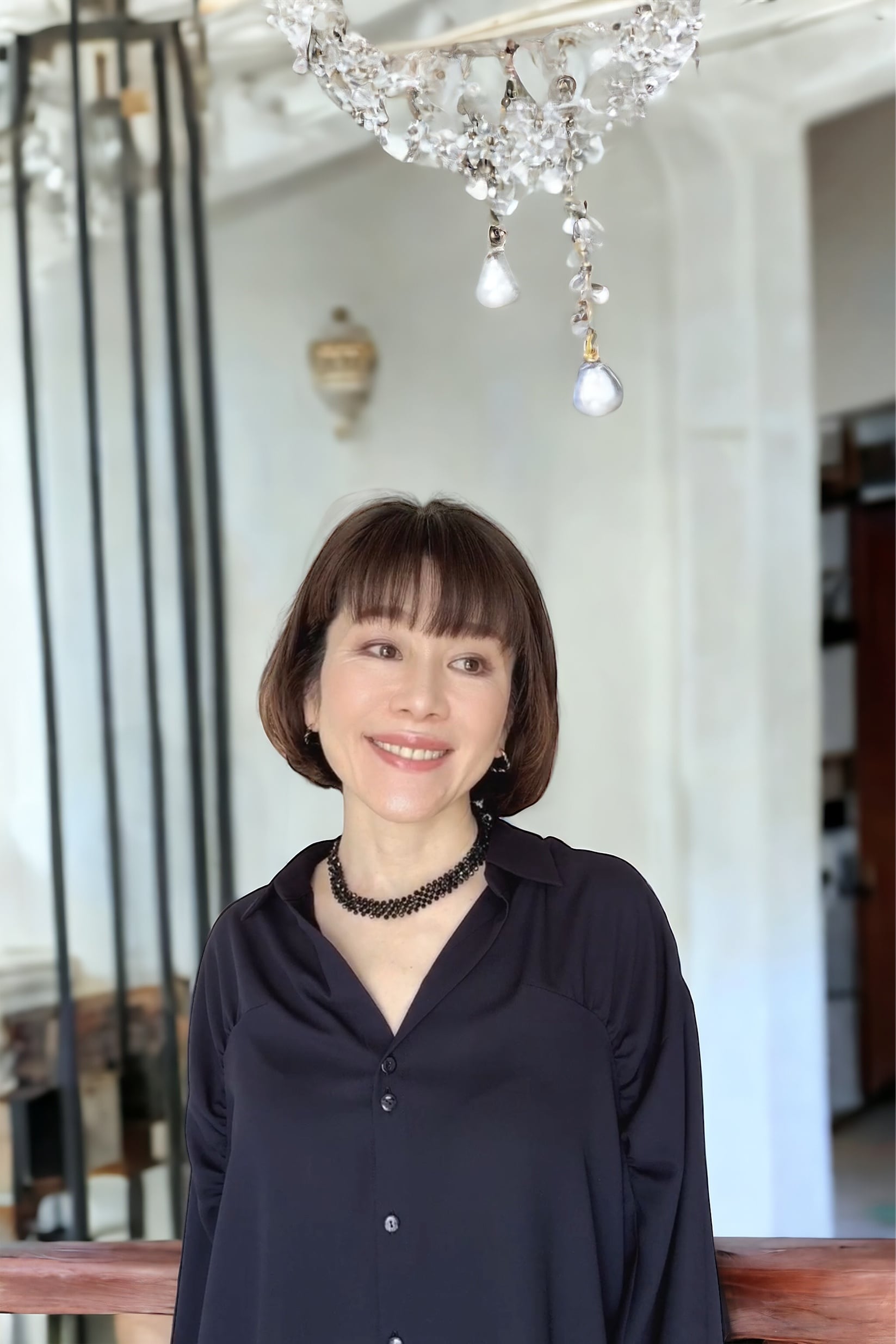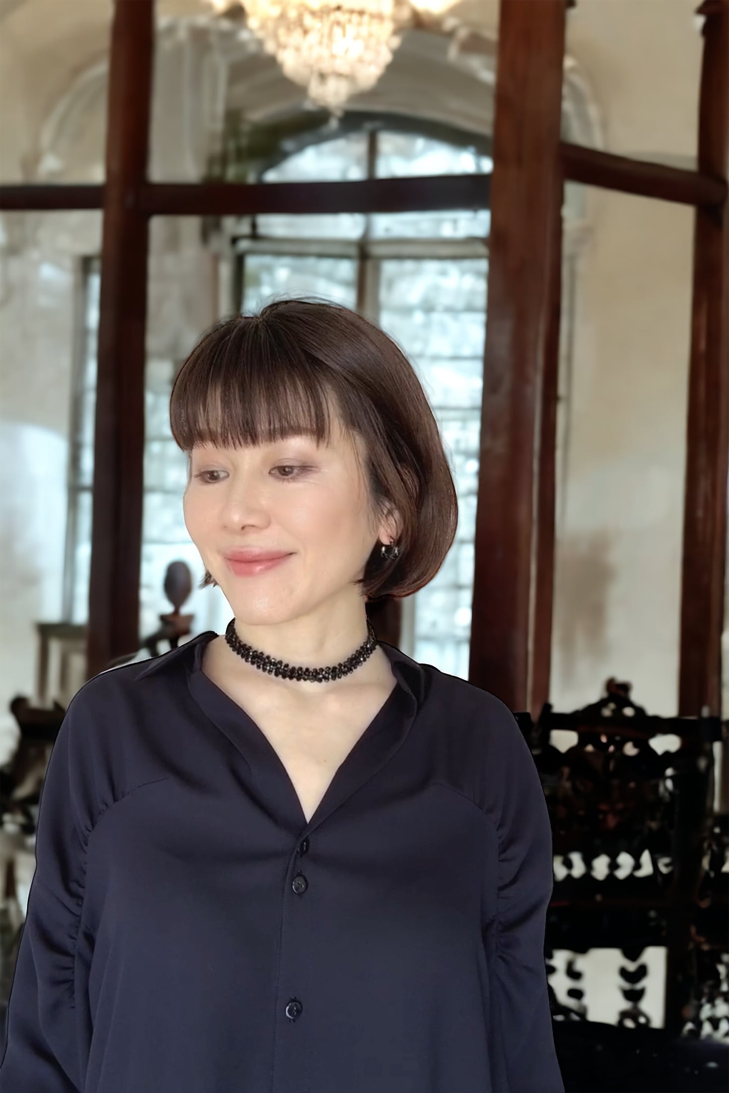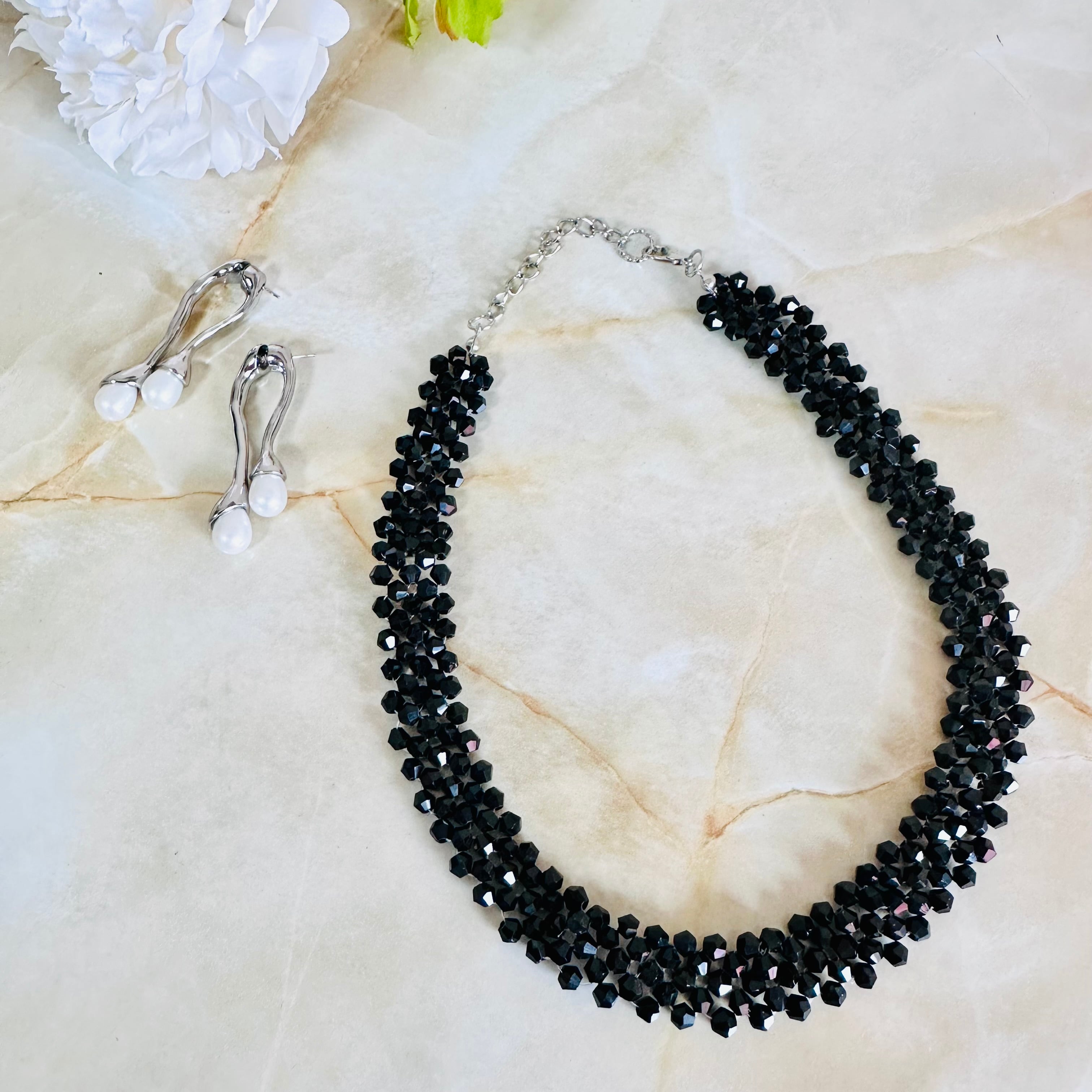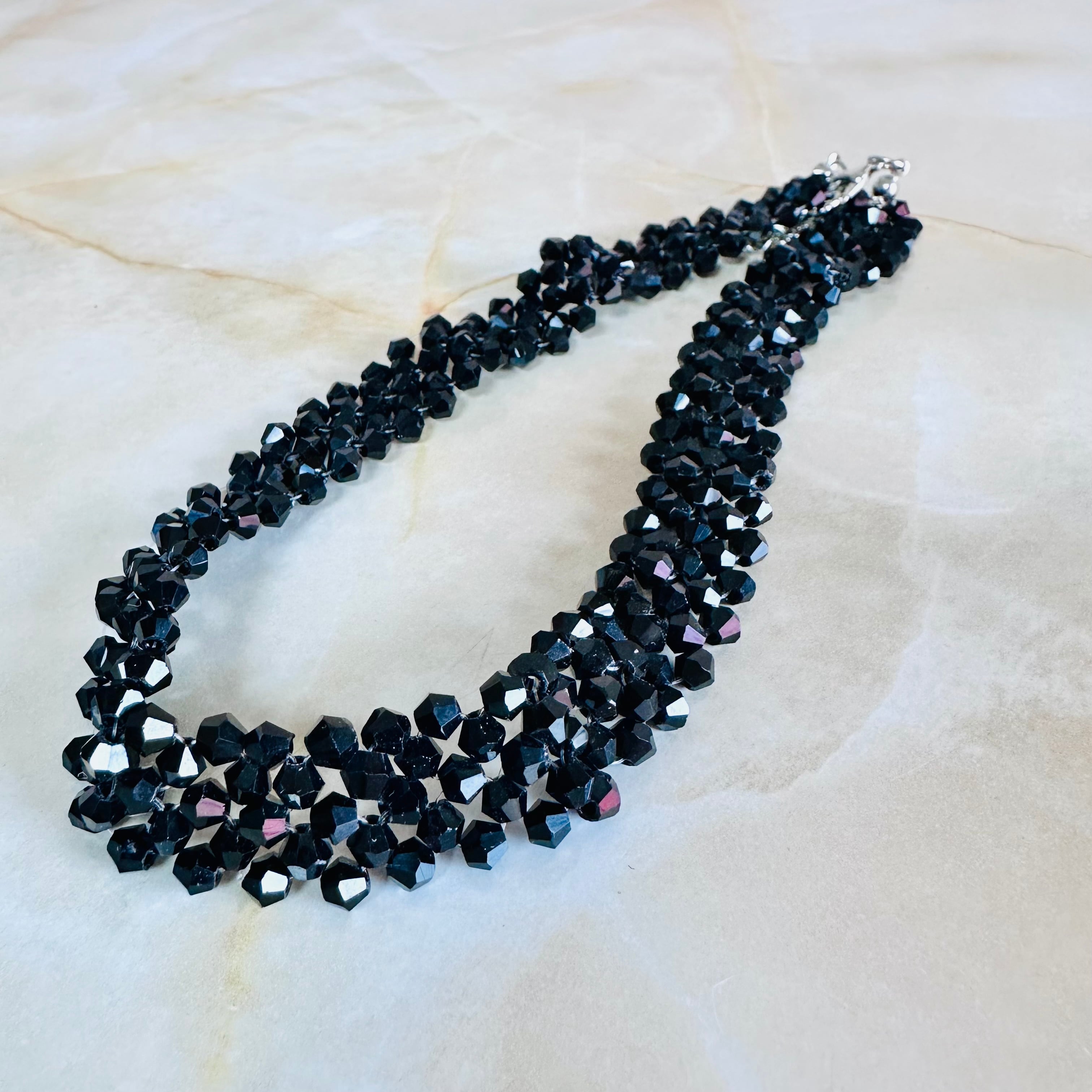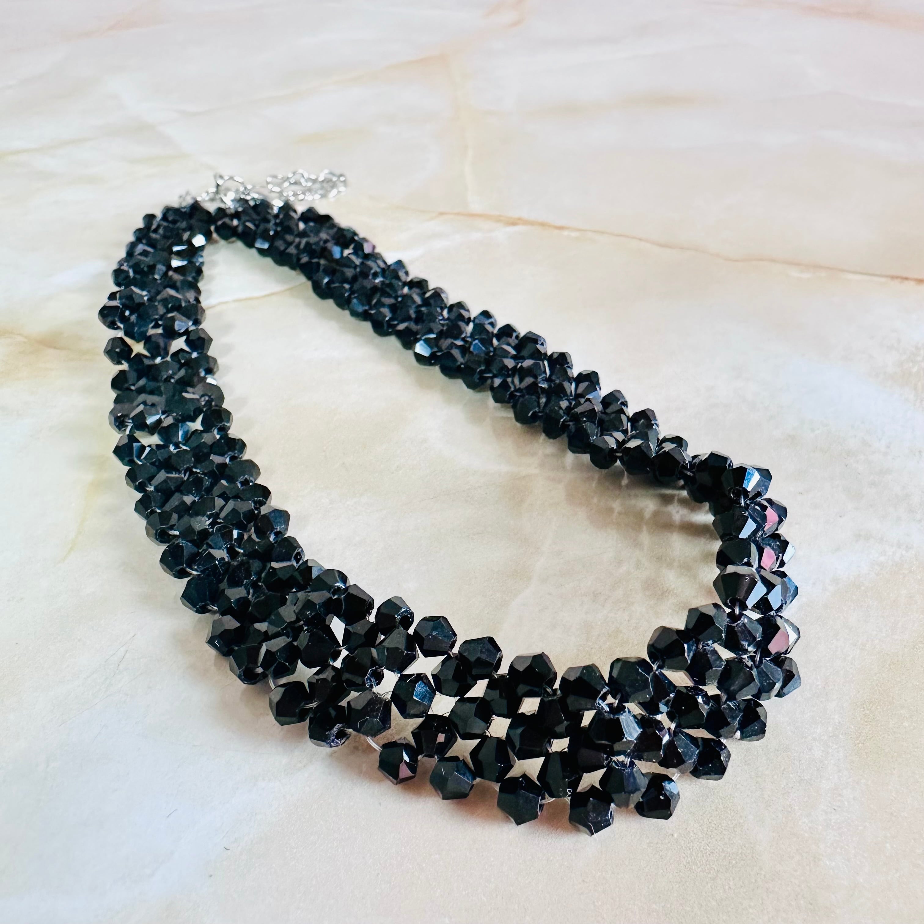 美しく輝くブラックガラスを繋ぎ合わせ、おしゃれなチョーカーデザインにしあげました。