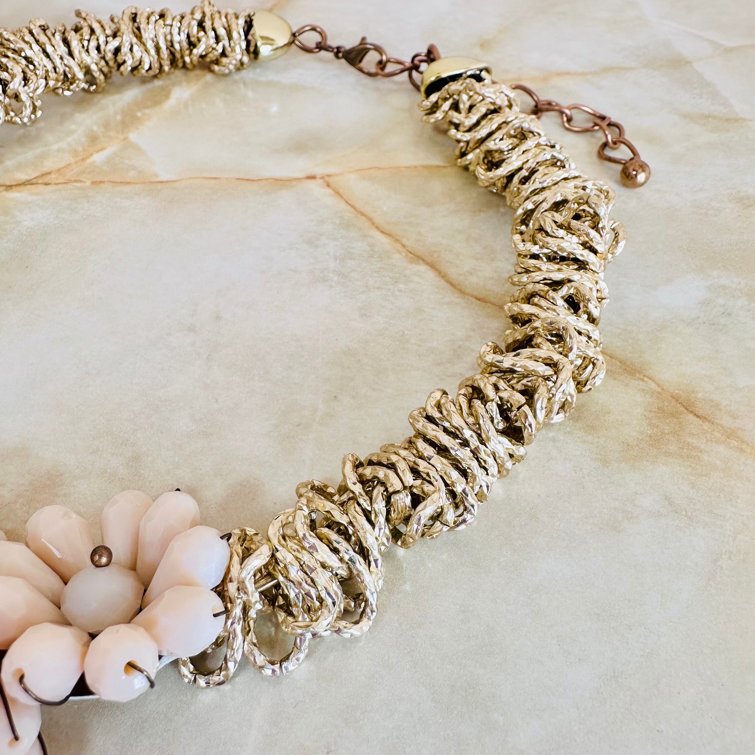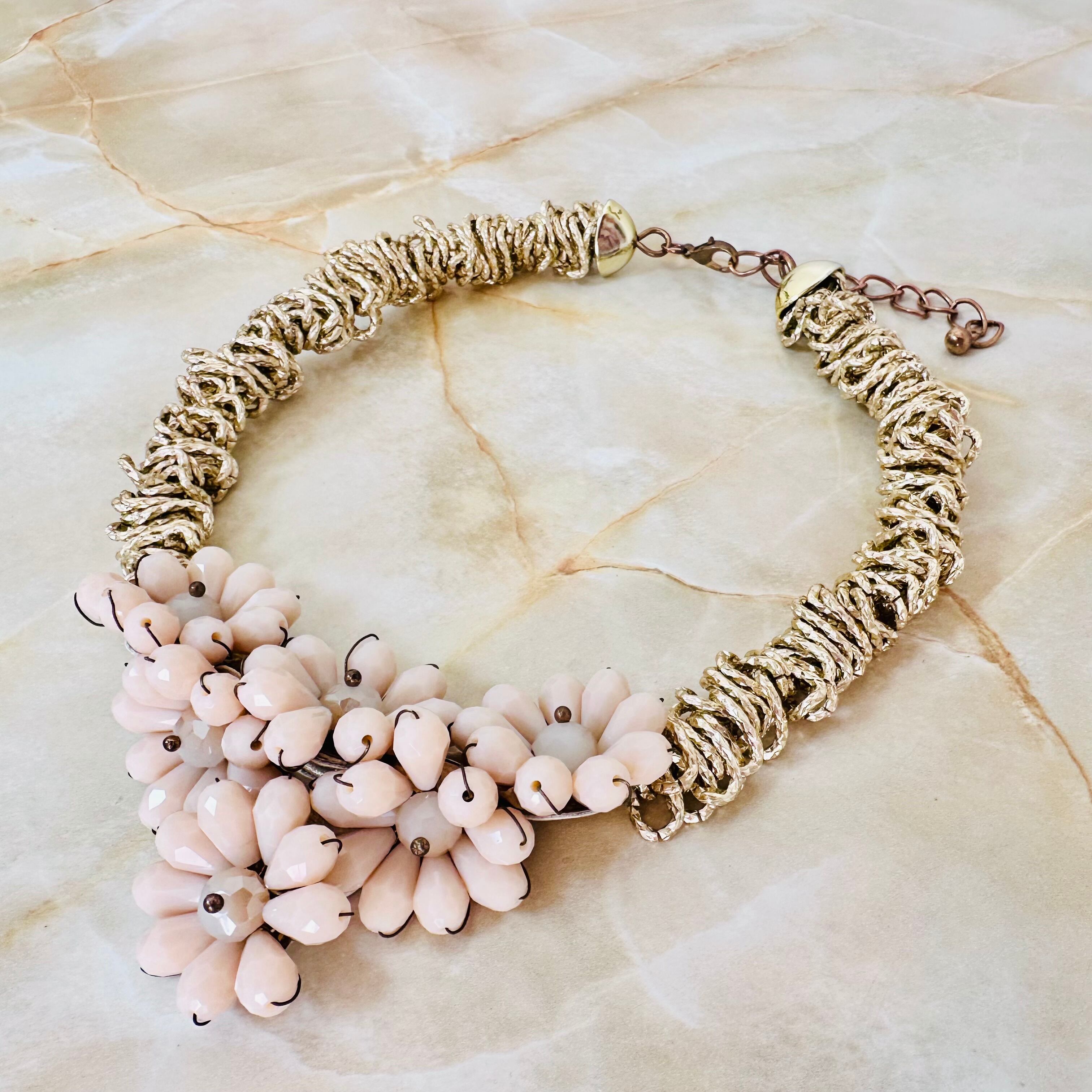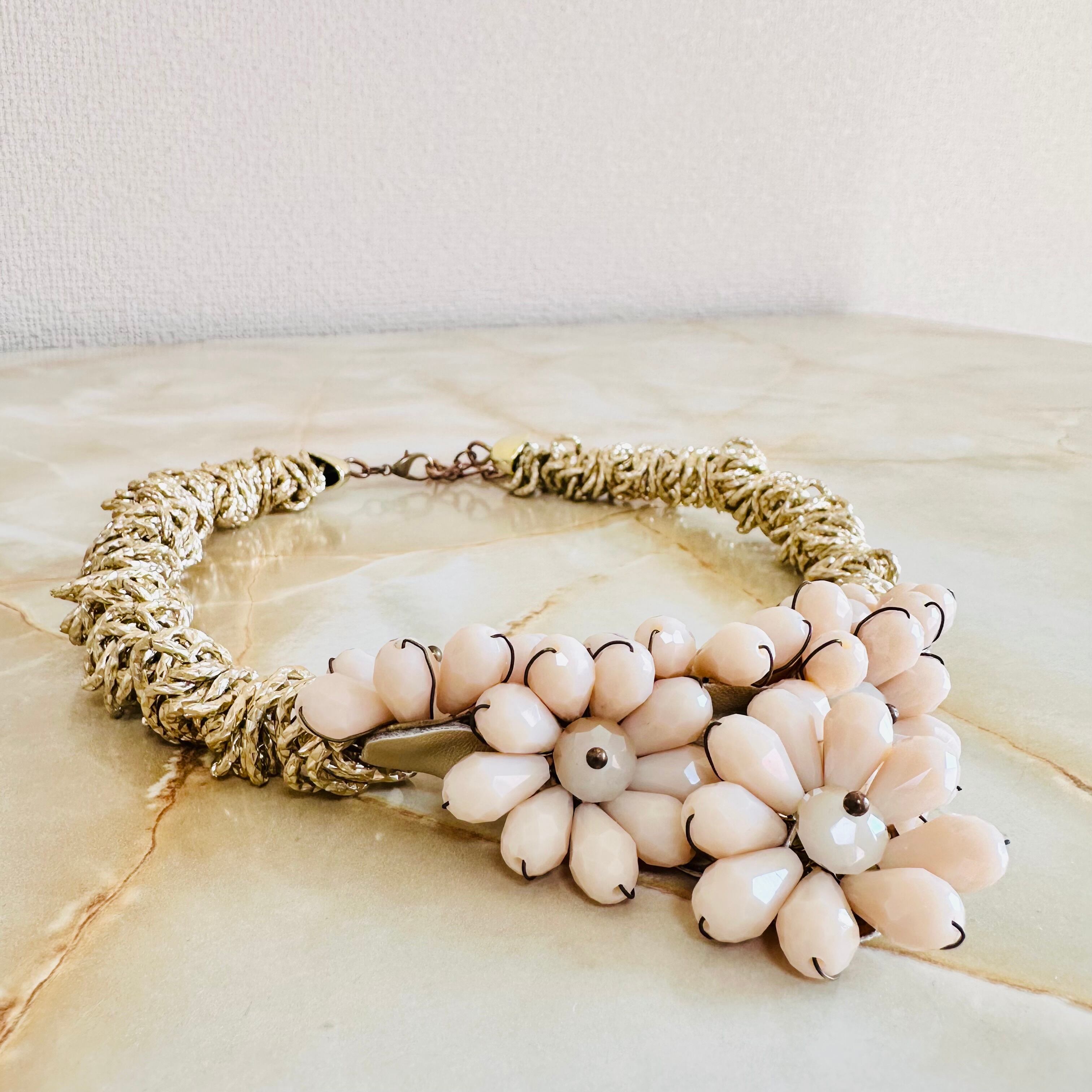 ピンクベージュ✖️ゴールドカラーのネックレスです。