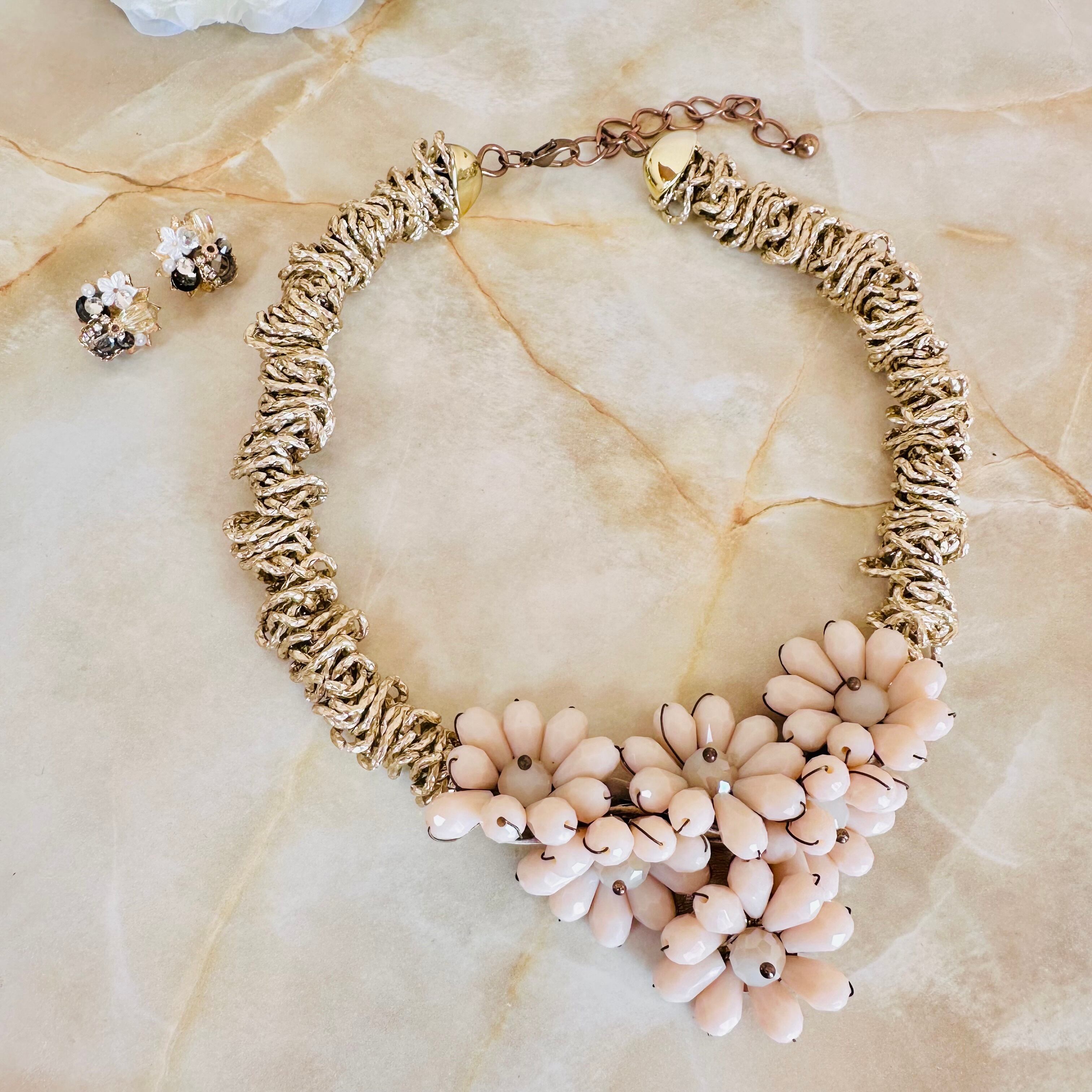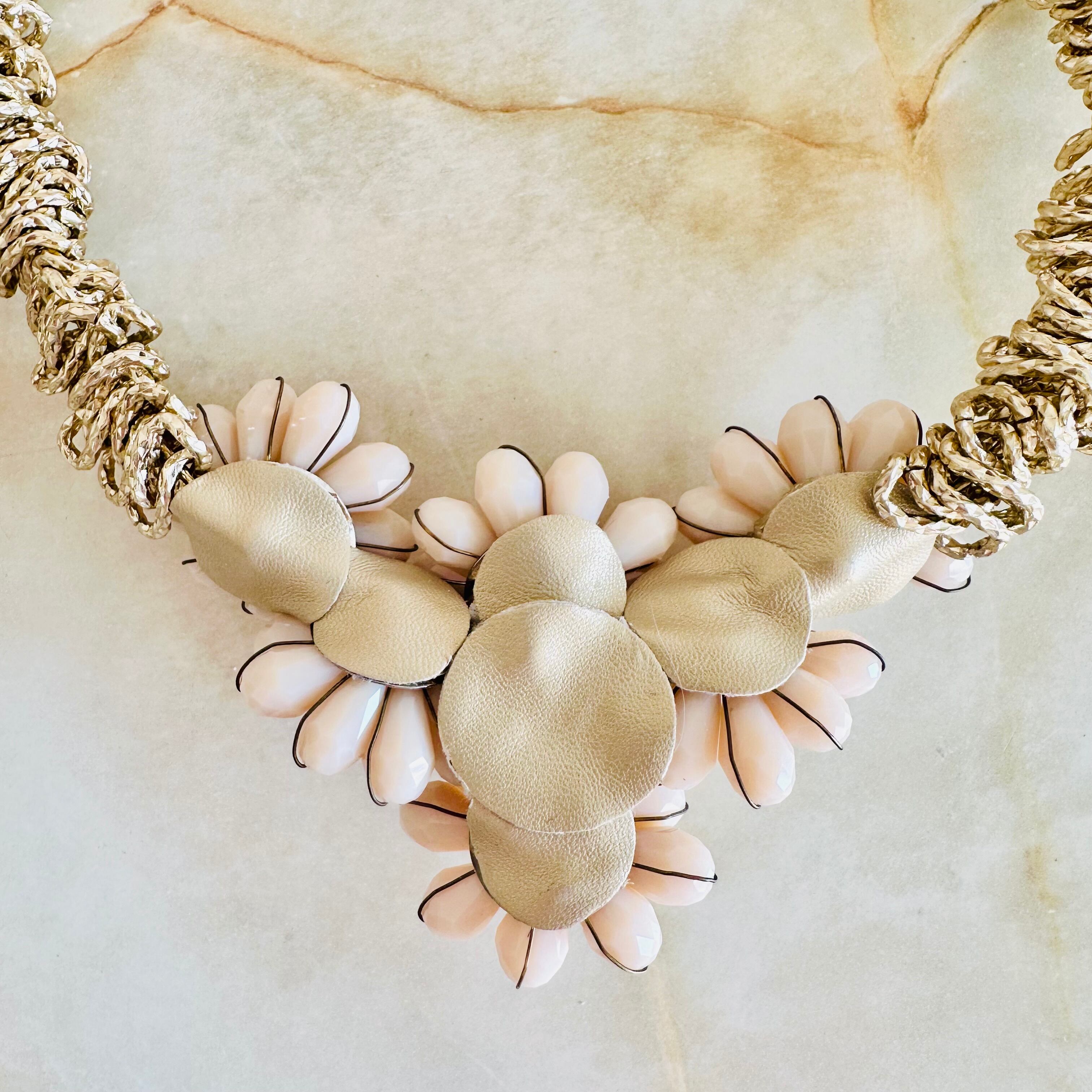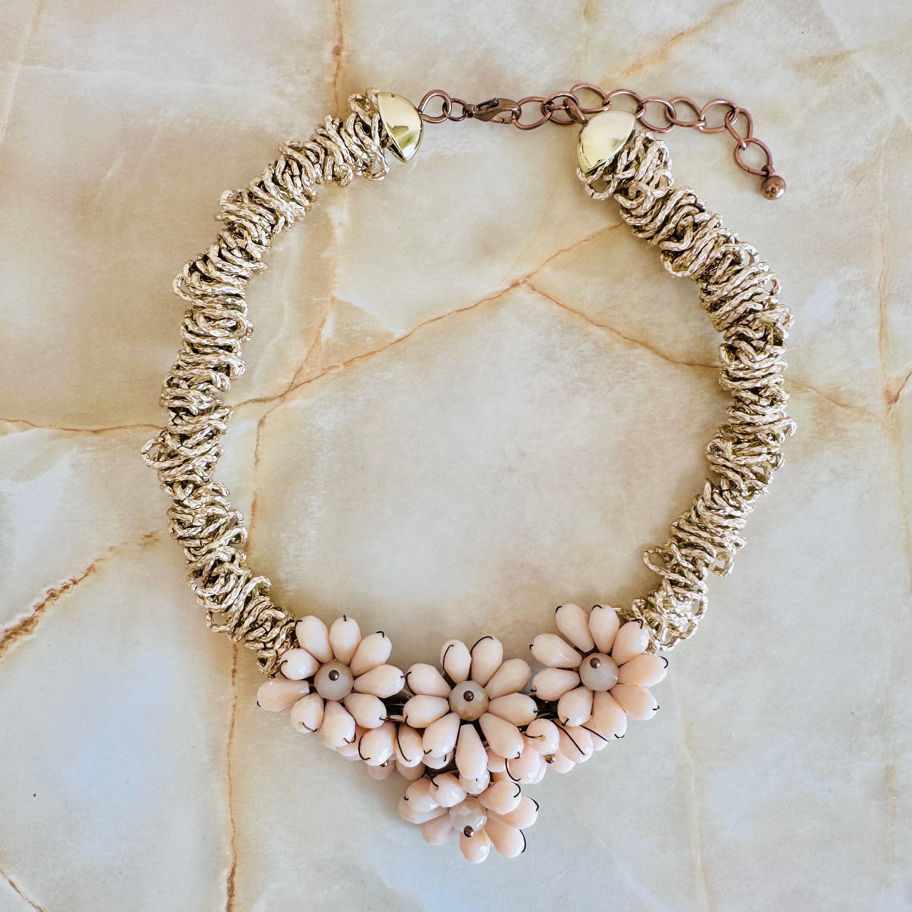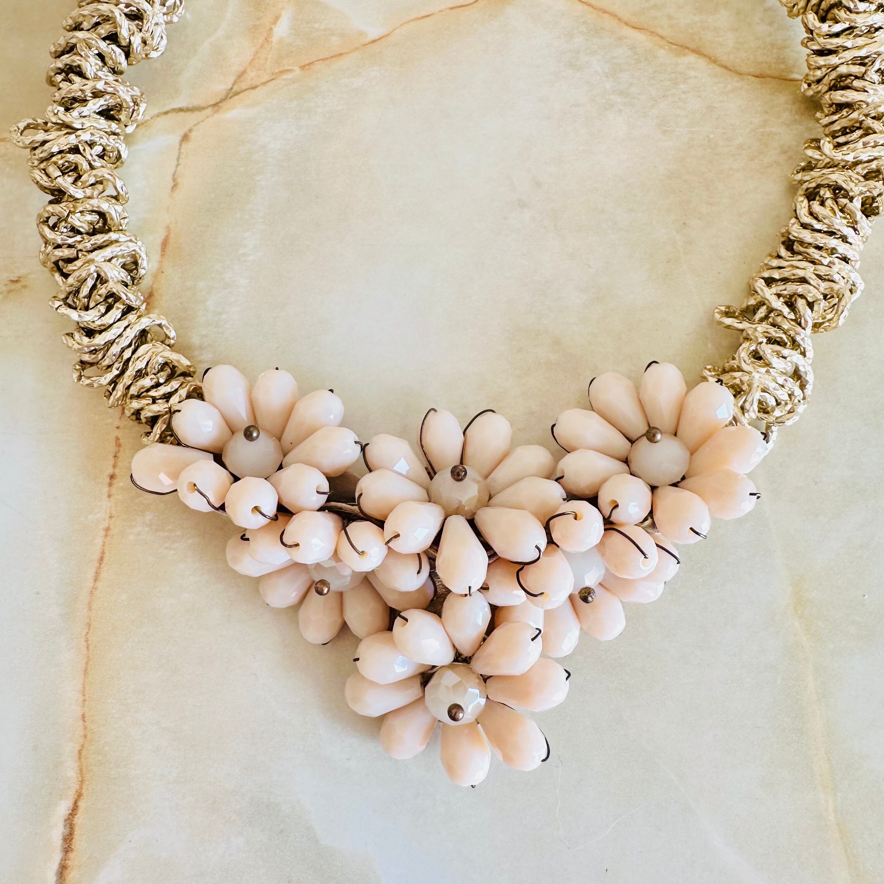 ピンクベージュ✖️ゴールドカラーのネックレスです。