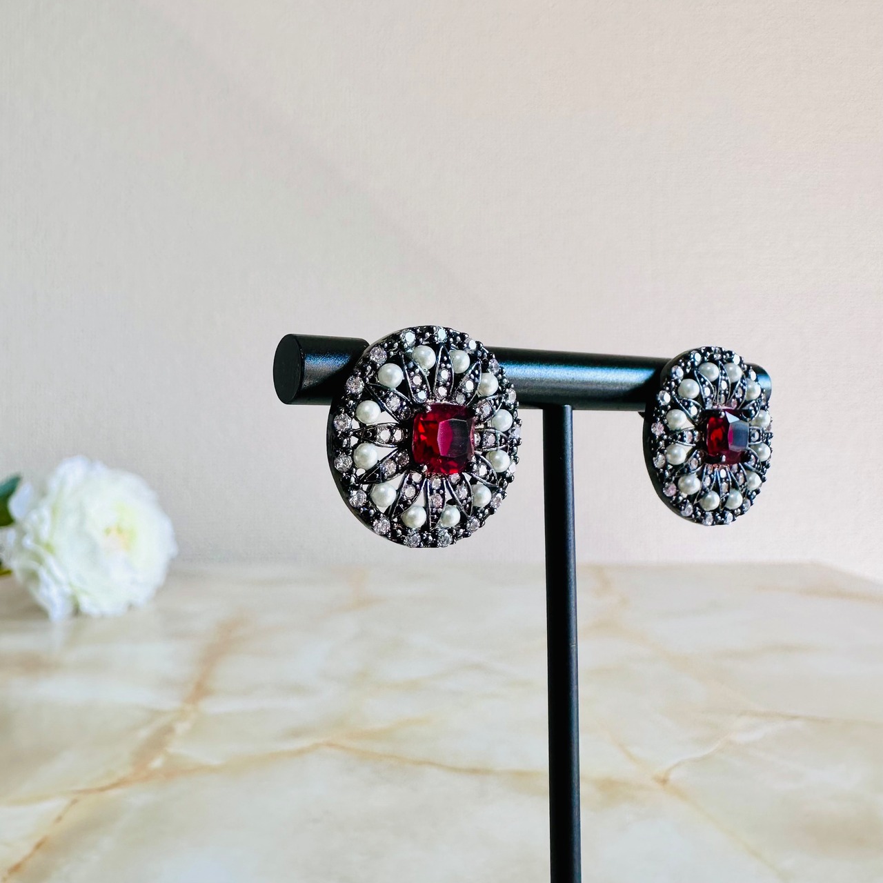 パール、クリア、レッド✖️ブラックカラーのピアスです。