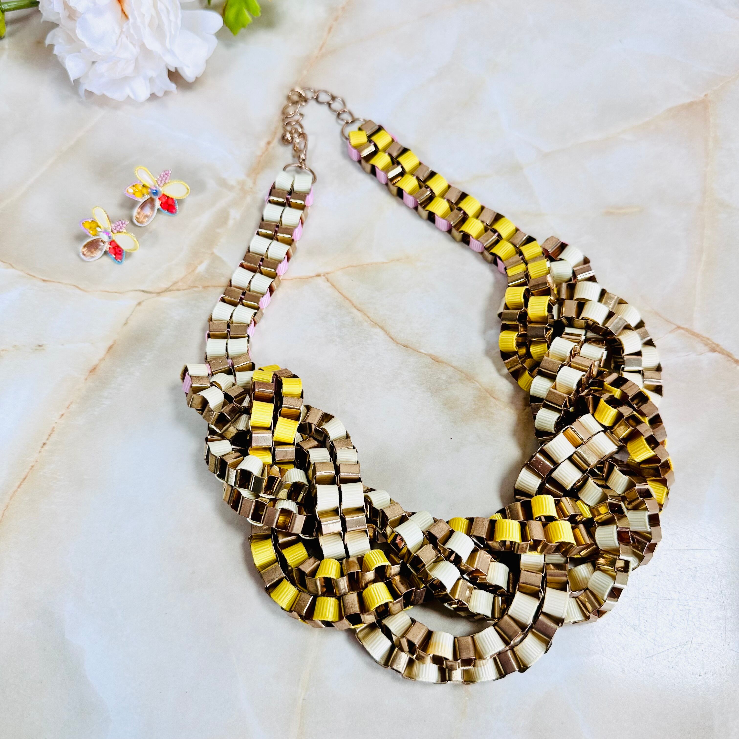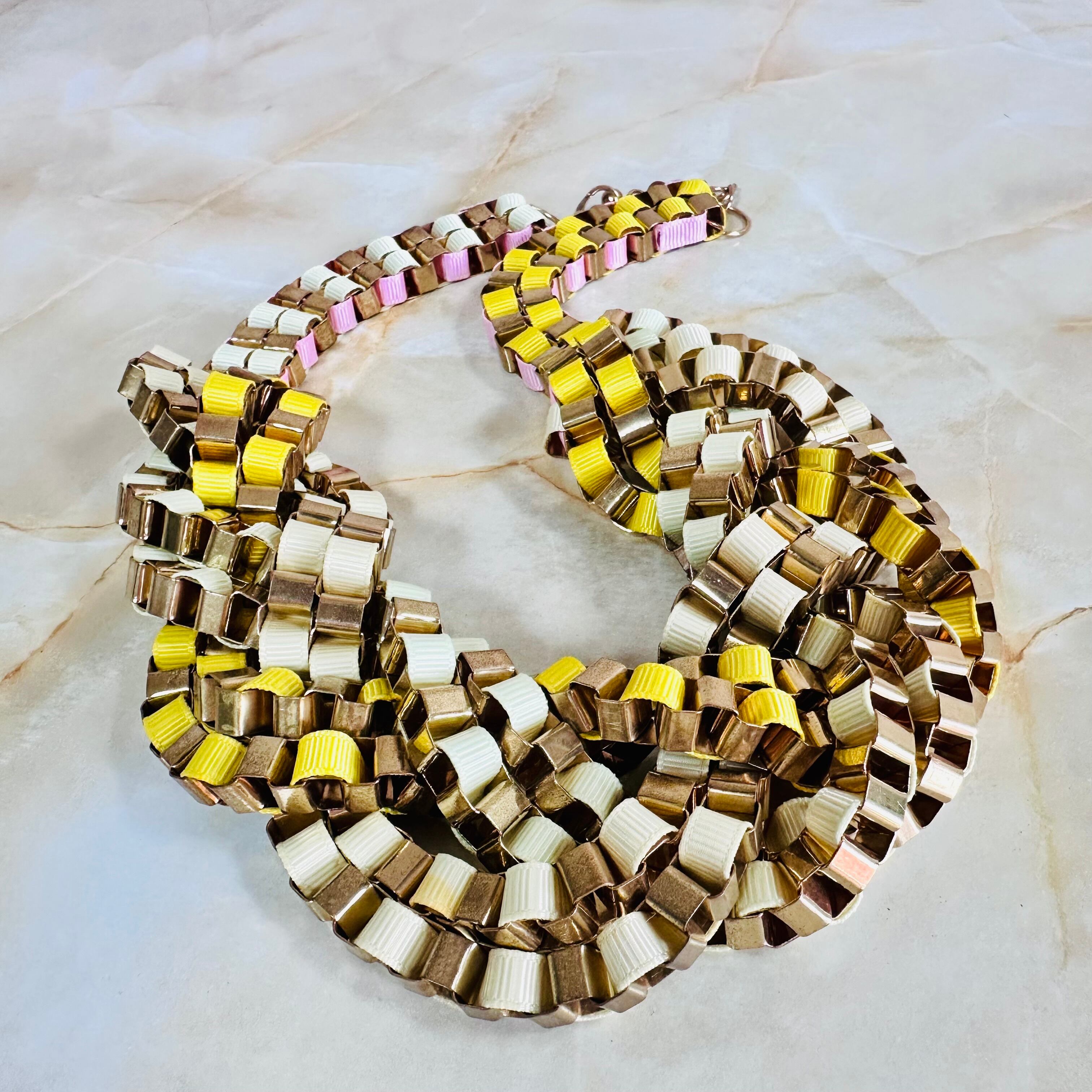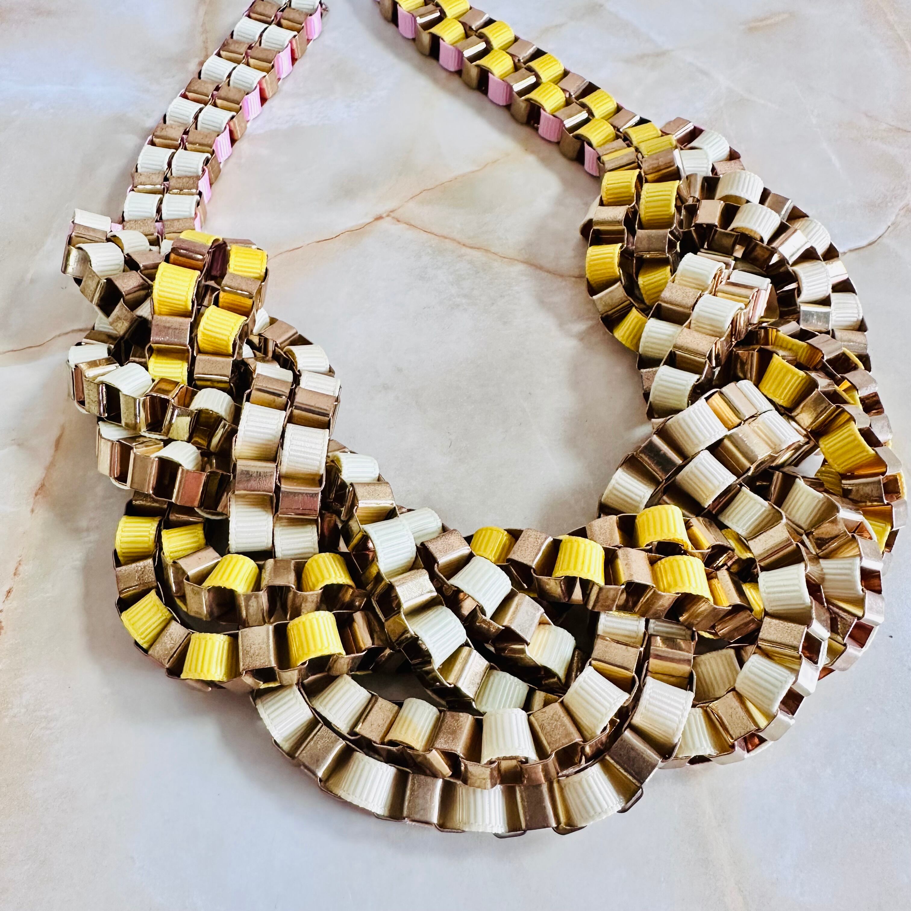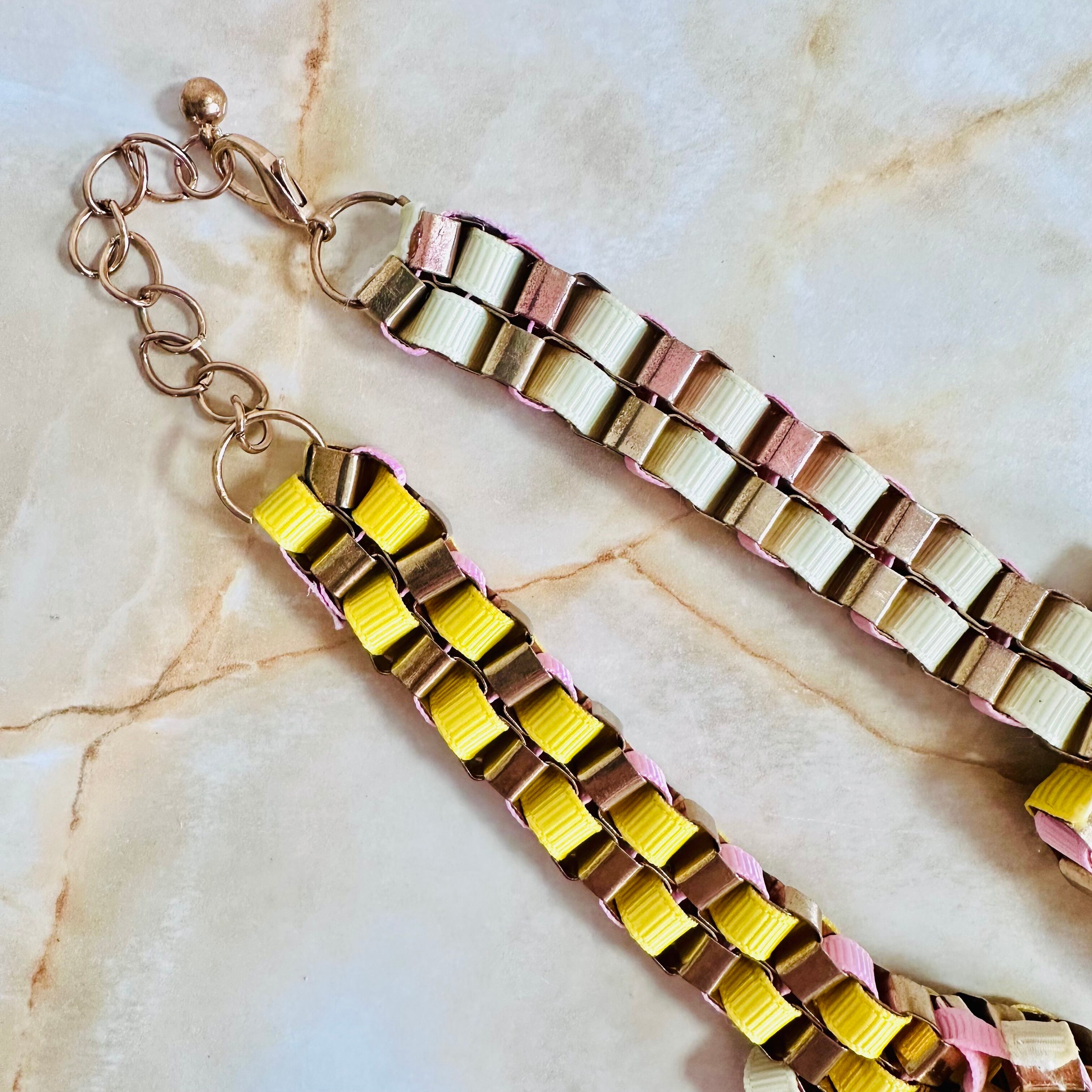 イエロー、バニラ、ピンク✖️アンティークゴールドカラーのネックレスです。