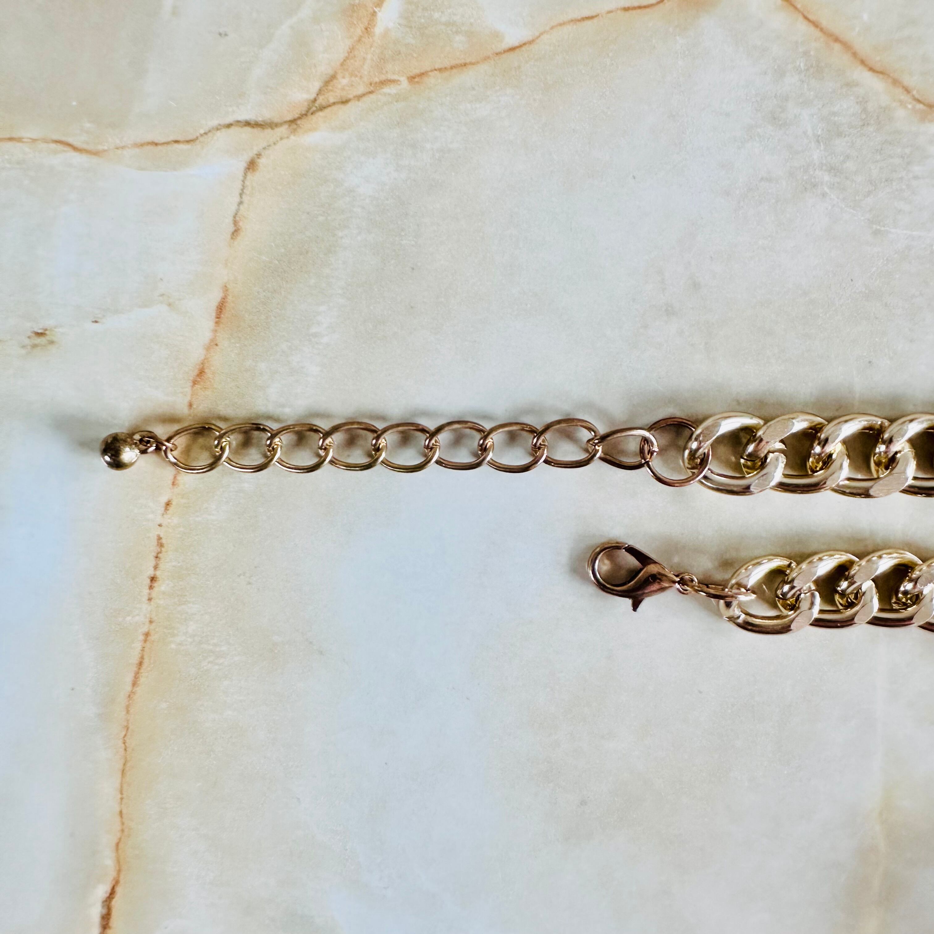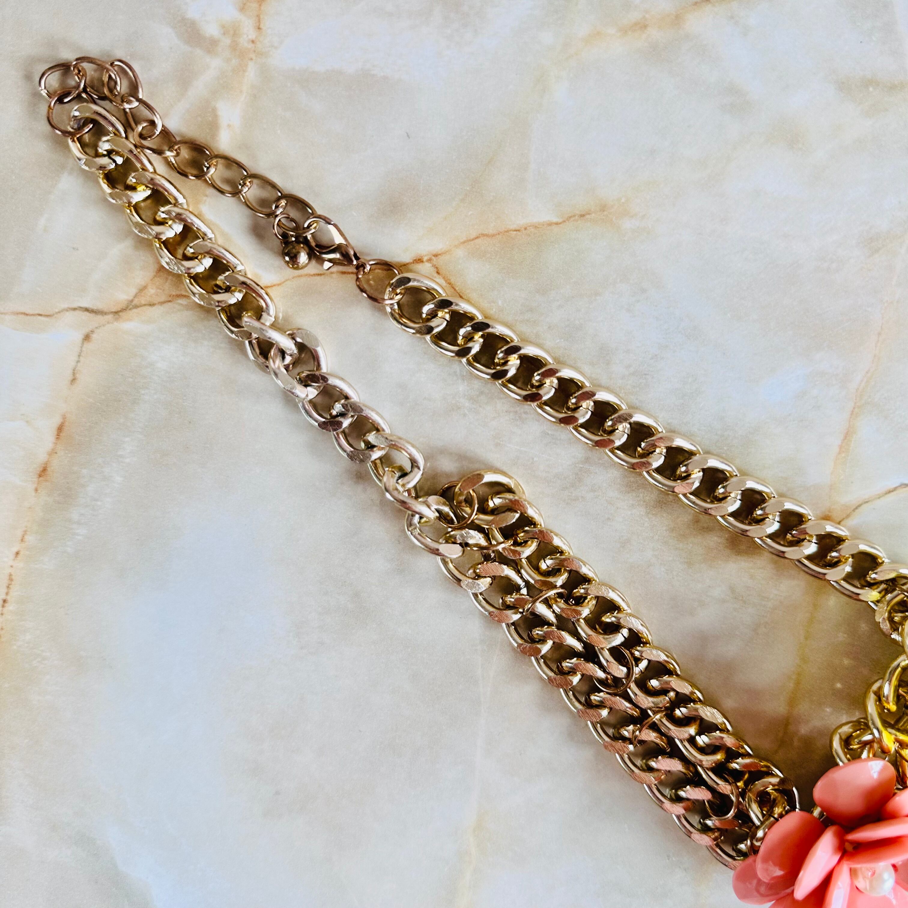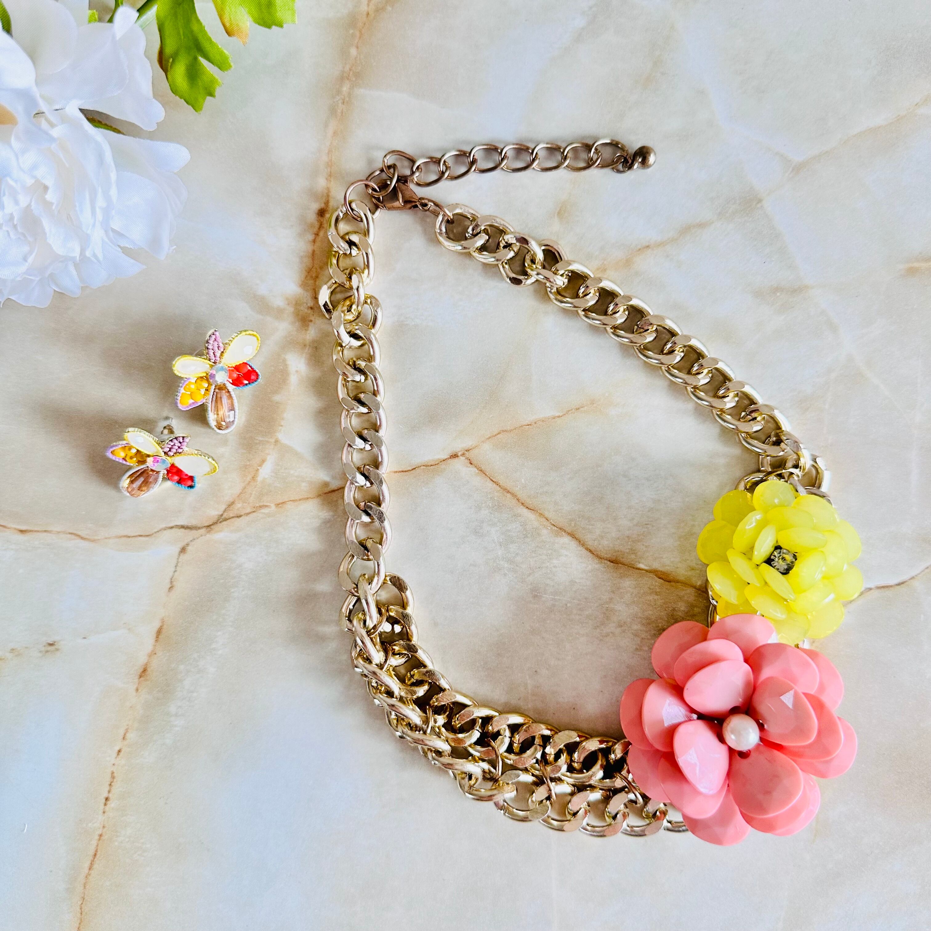 キュートなフラワーモチーフにおしゃなイメージのチャンキーチェーンを組み合わせ、絶妙な「甘×辛」バランスに仕上げました。