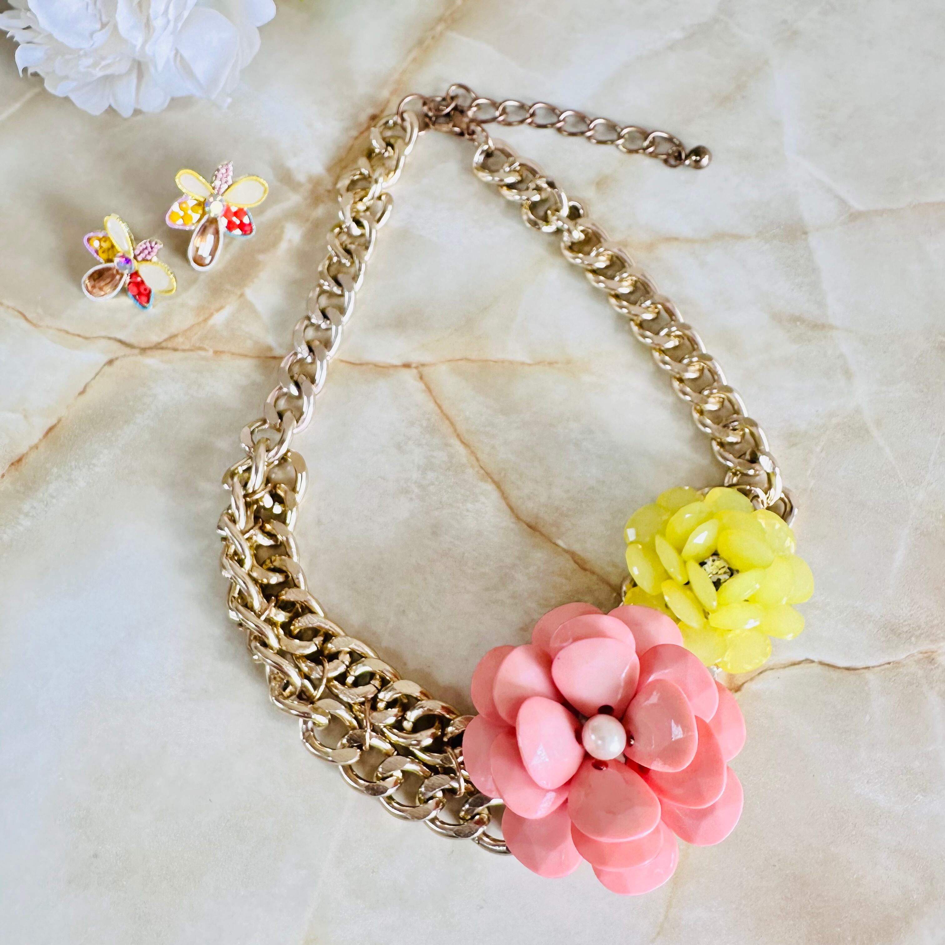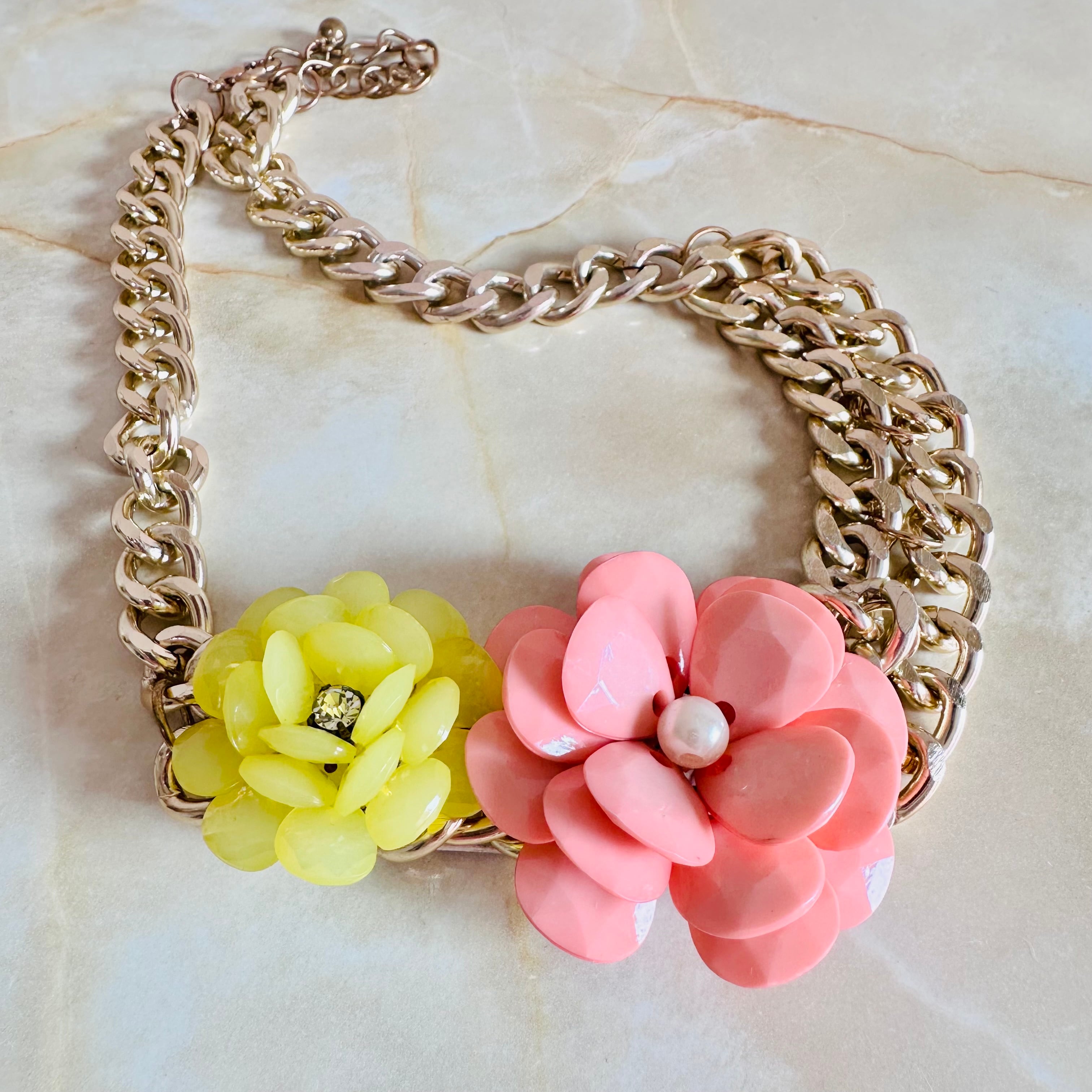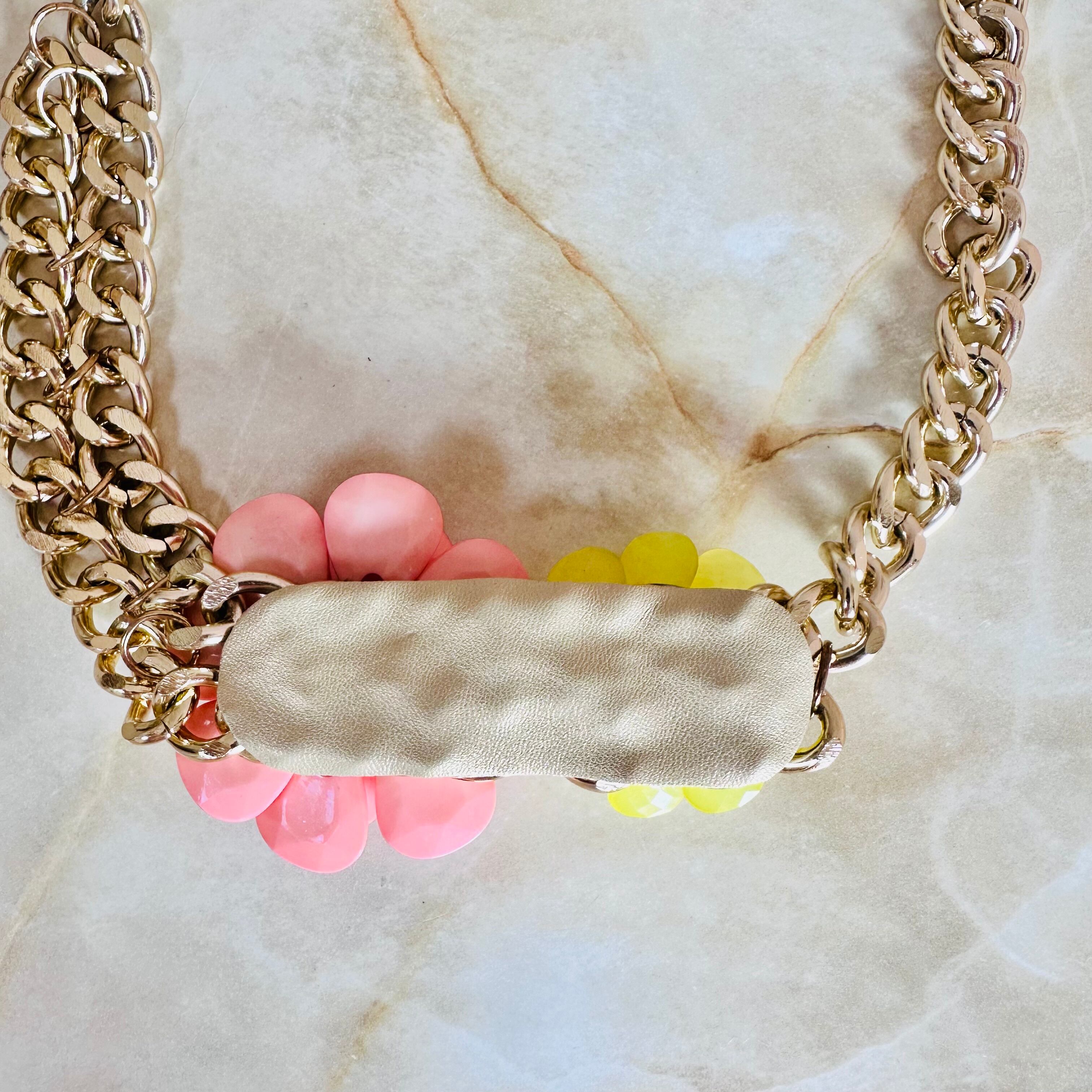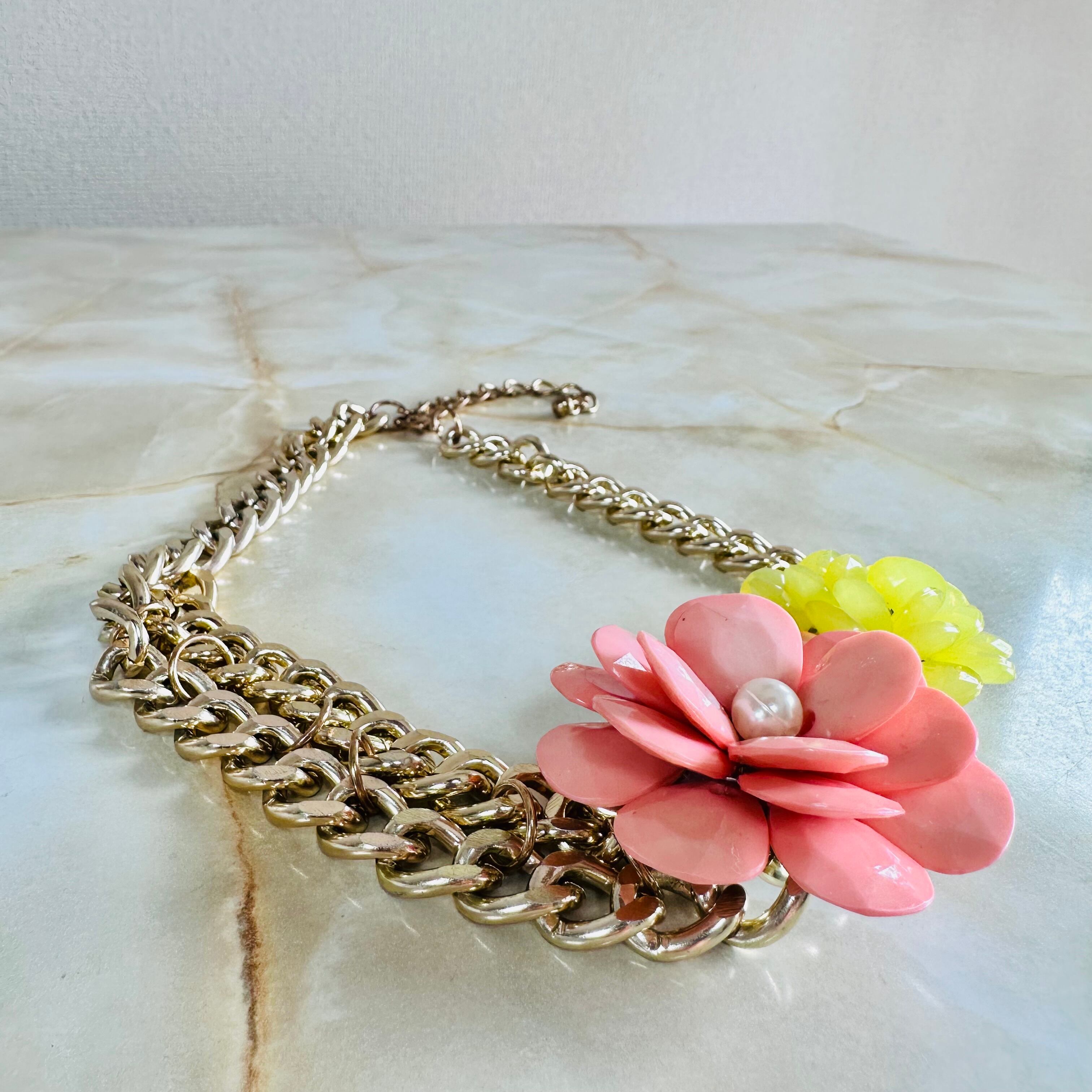 ピンク、イエロー✖️ゴールドカラーのネックレスです。