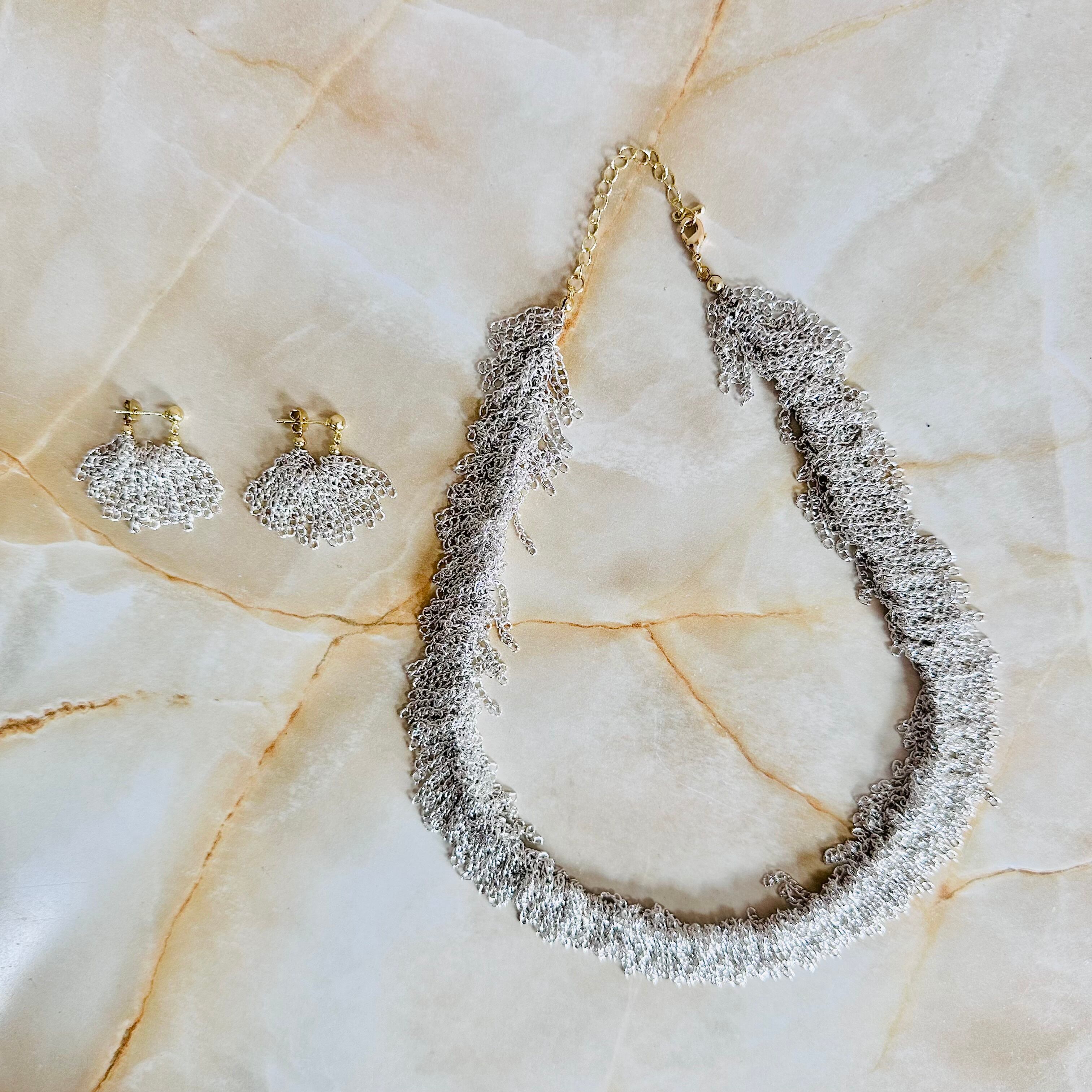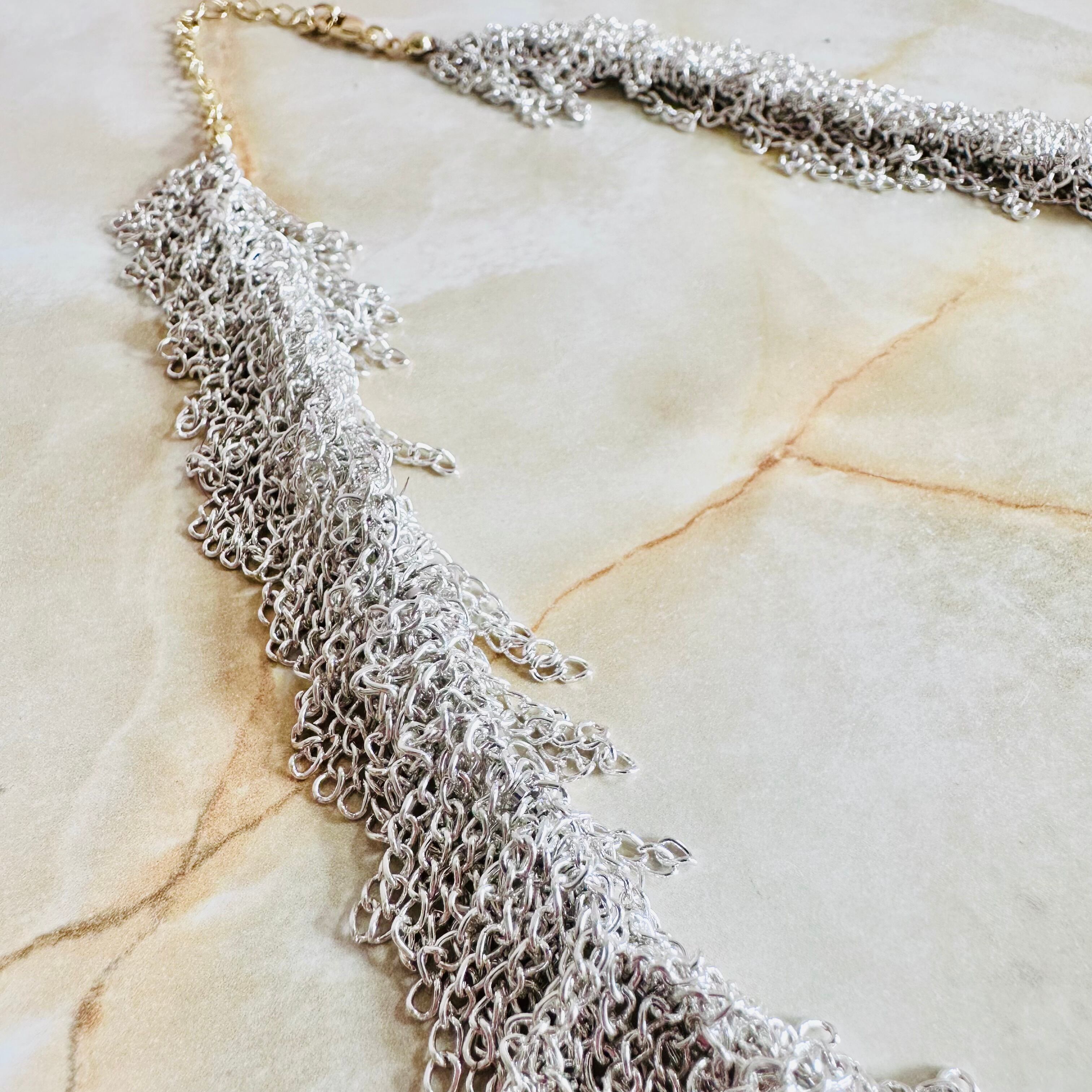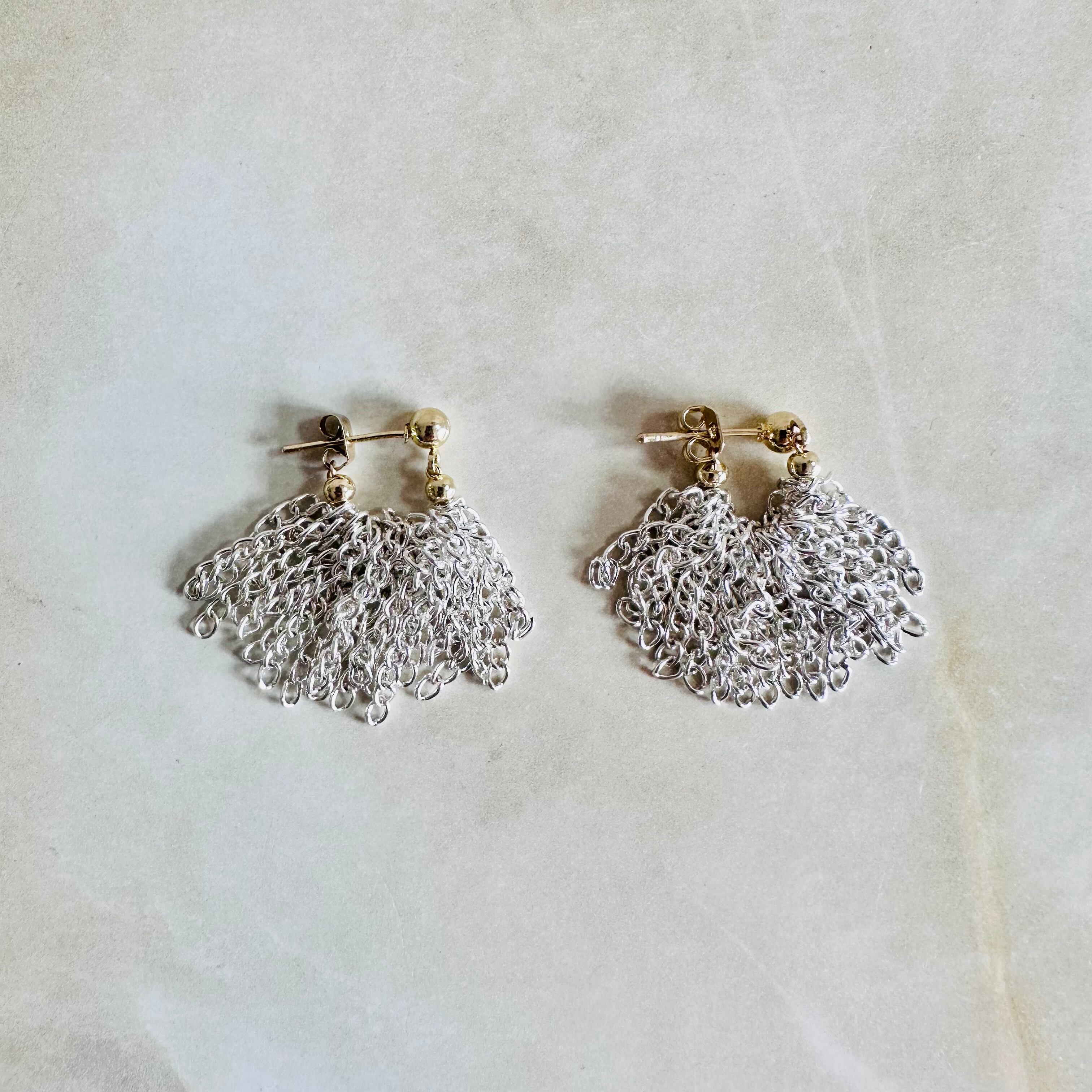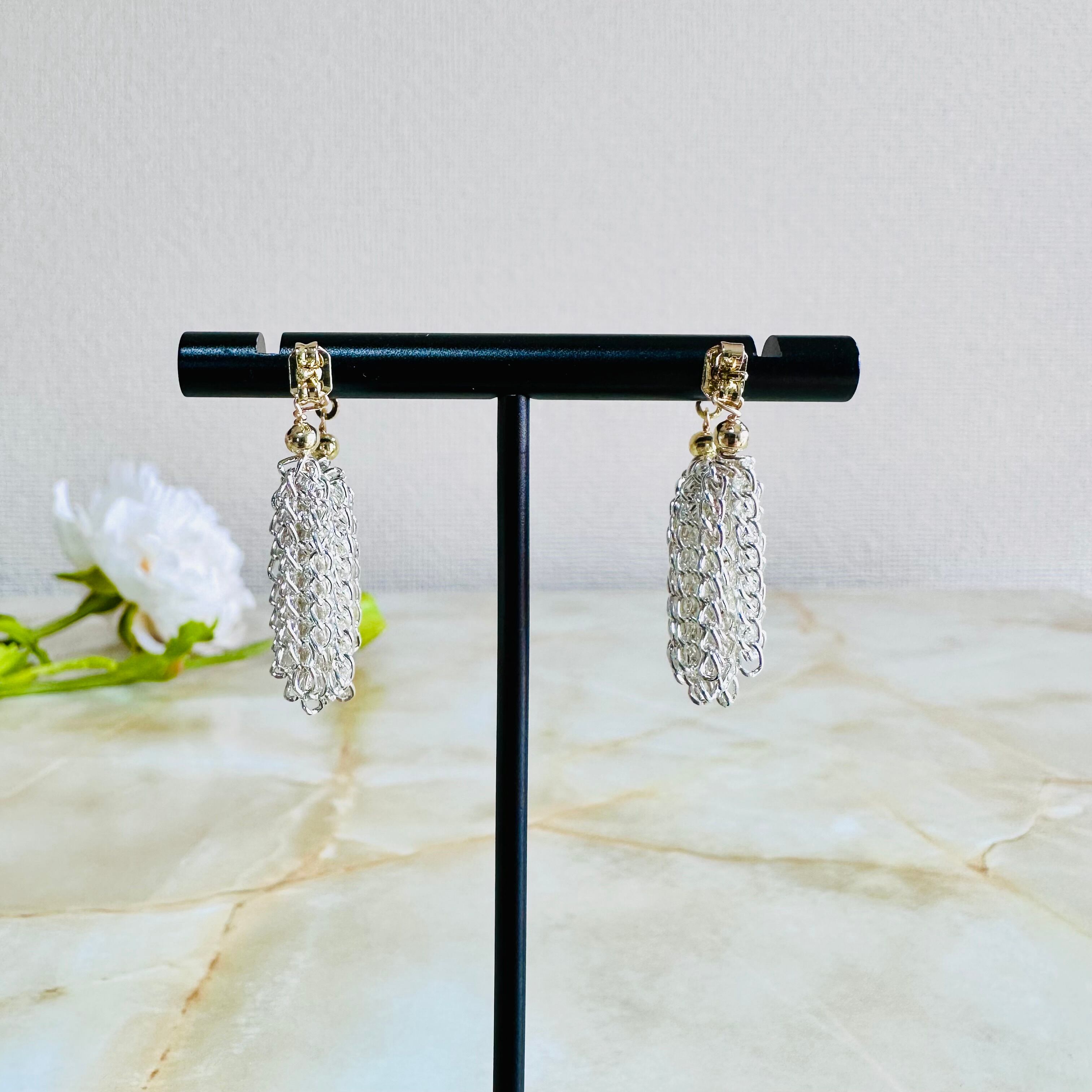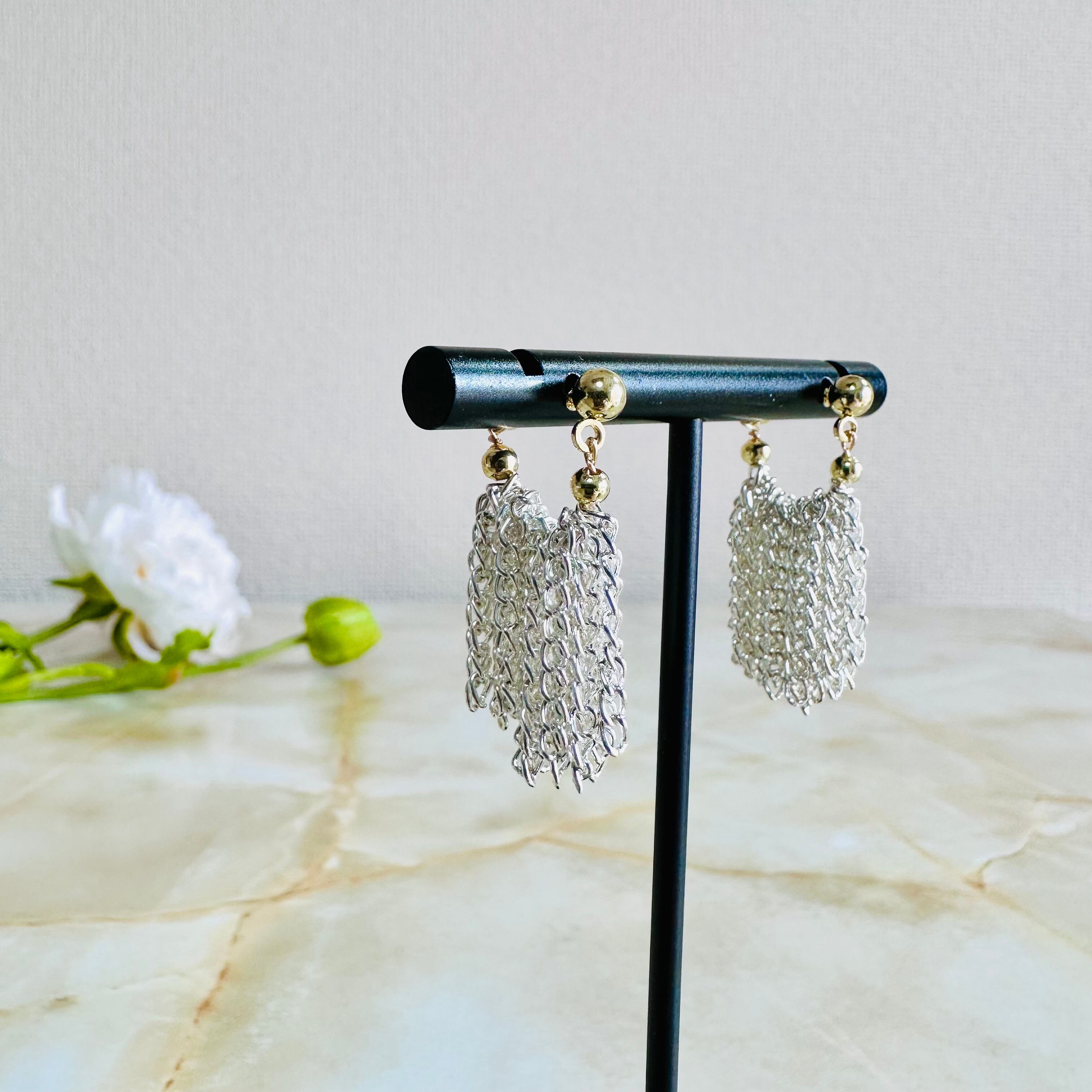 シルバーの華奢なチェーンをフリンジ状に連ね動きを表現したデザインです。