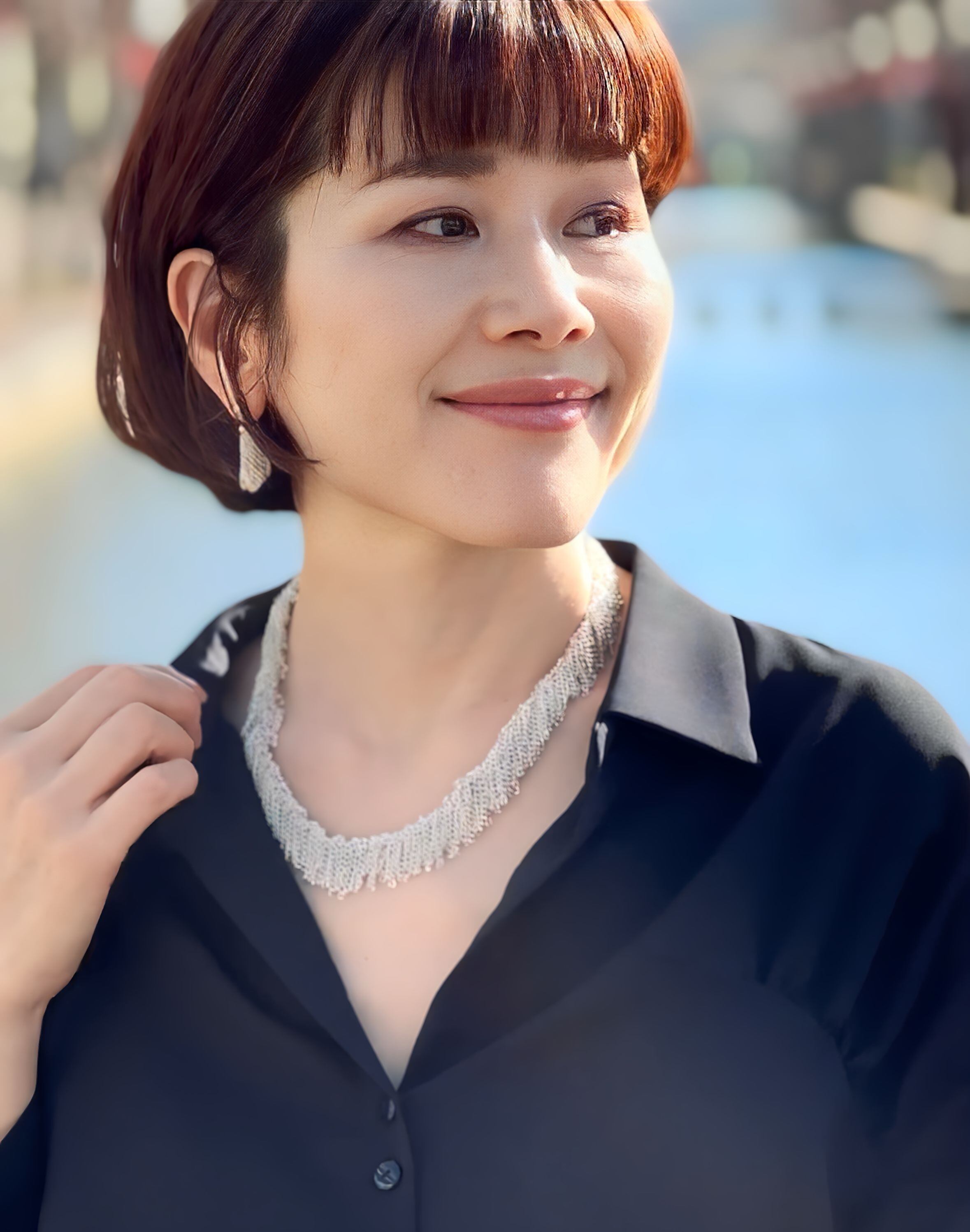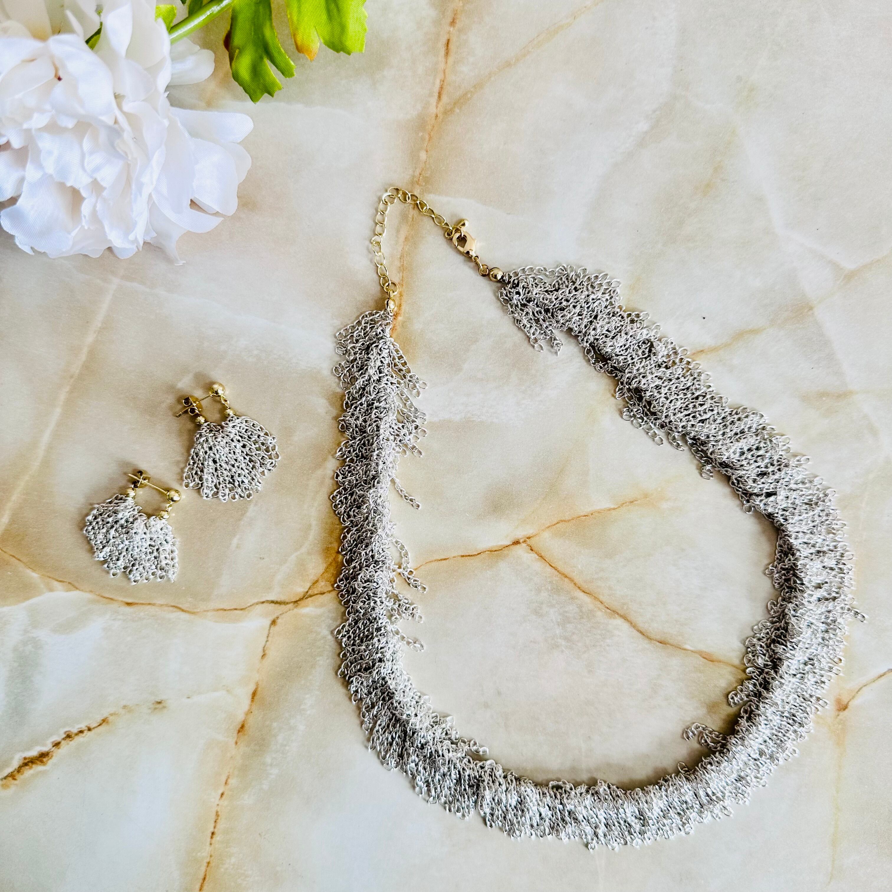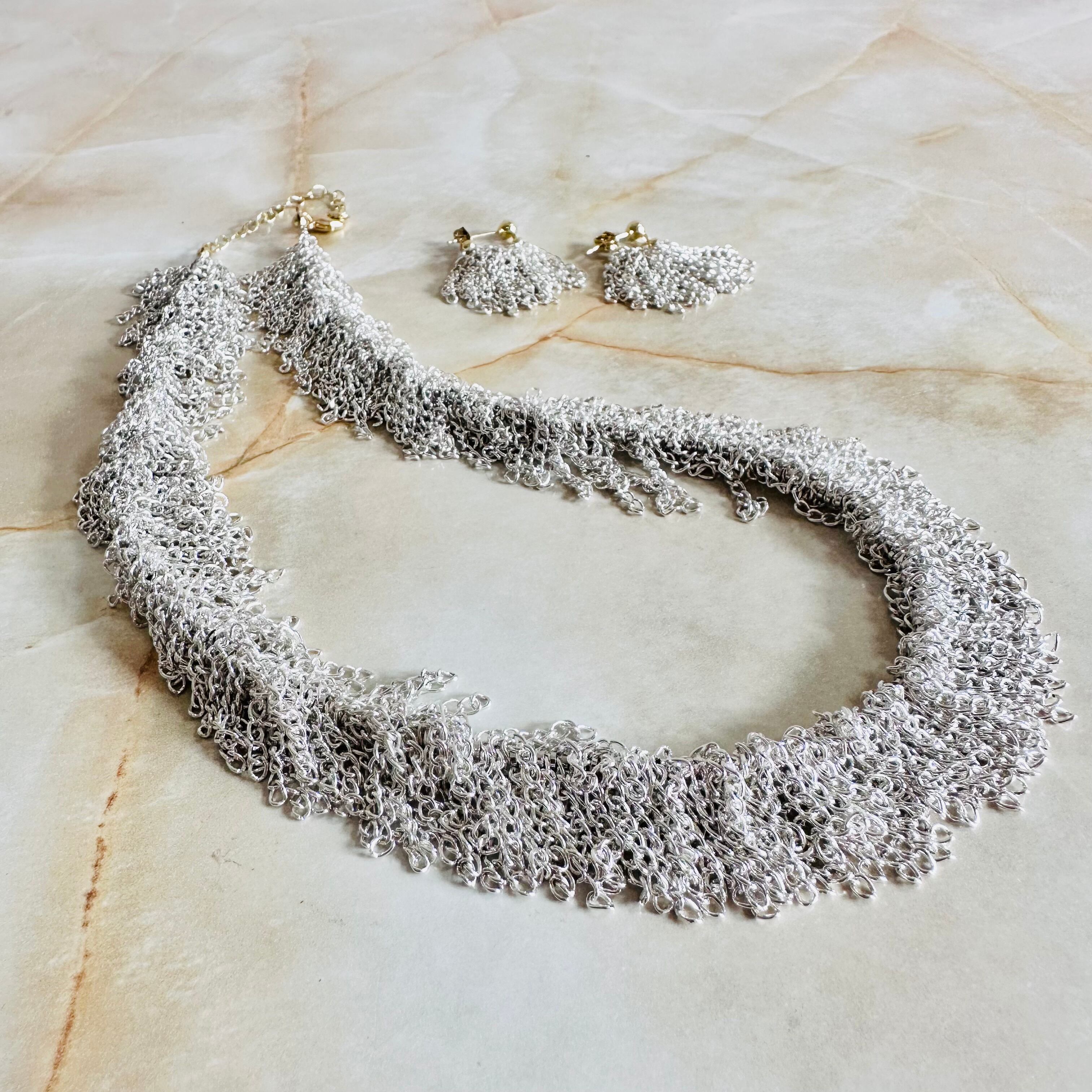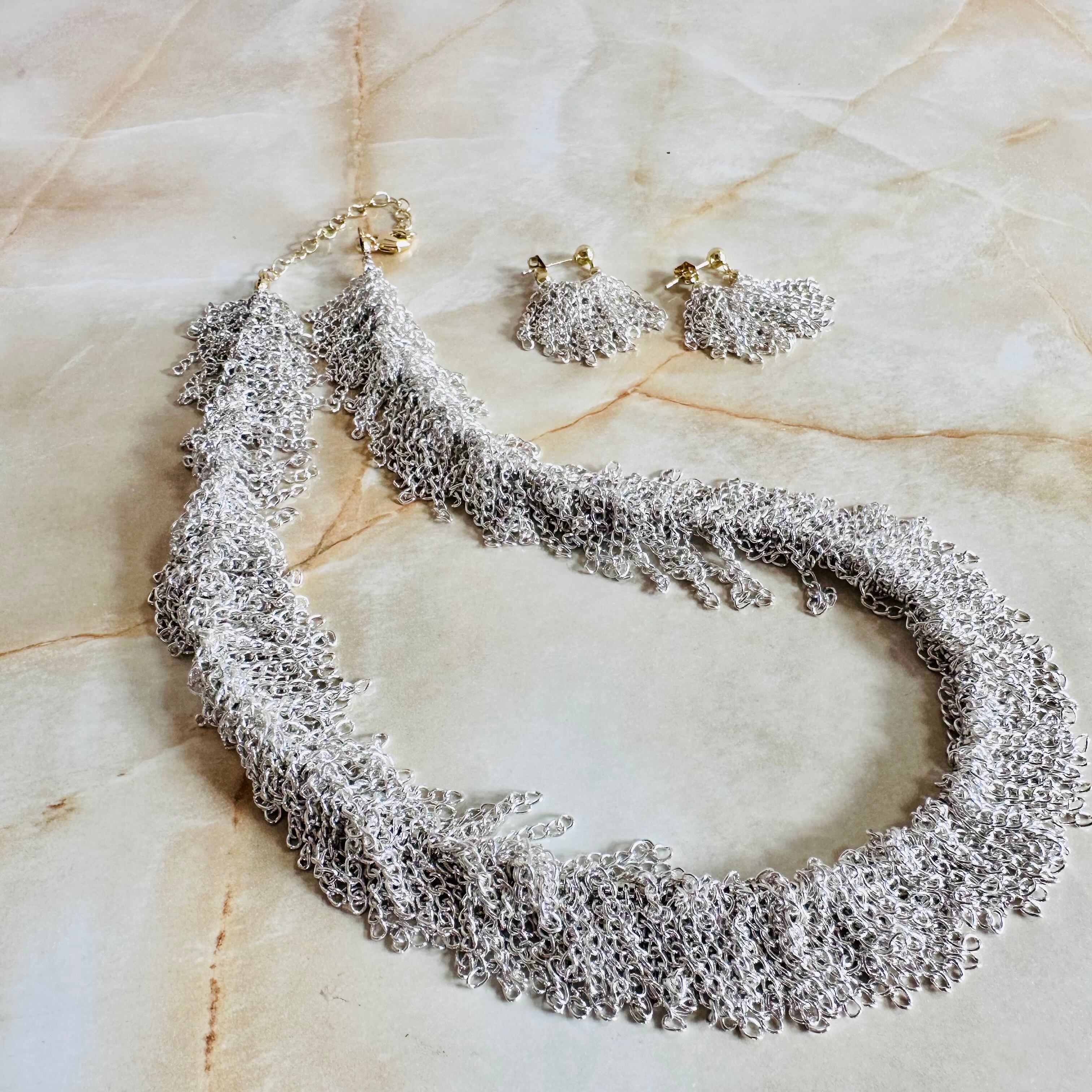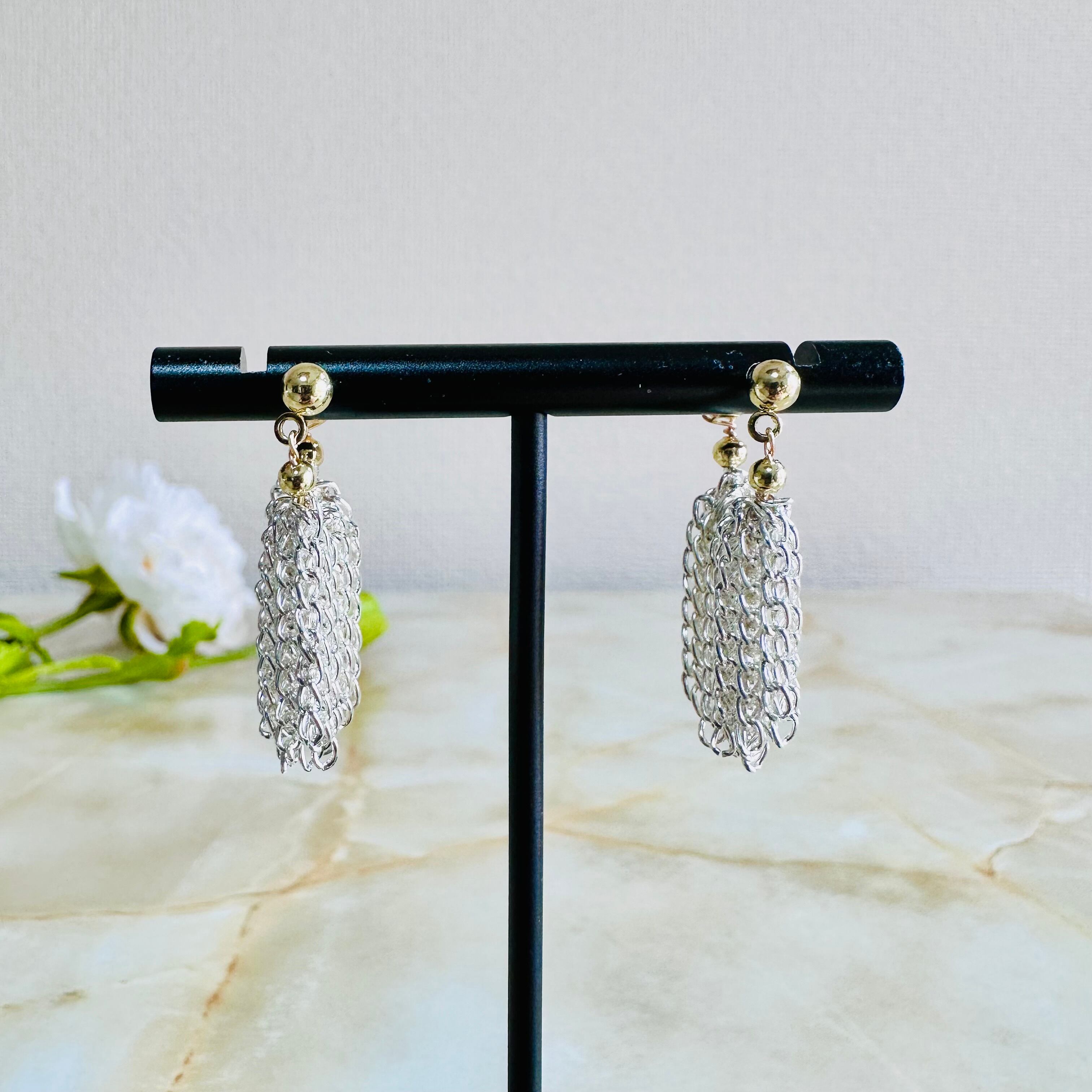 シルバーの華奢なチェーンをフリンジ状に連ね動きを表現したデザインです。