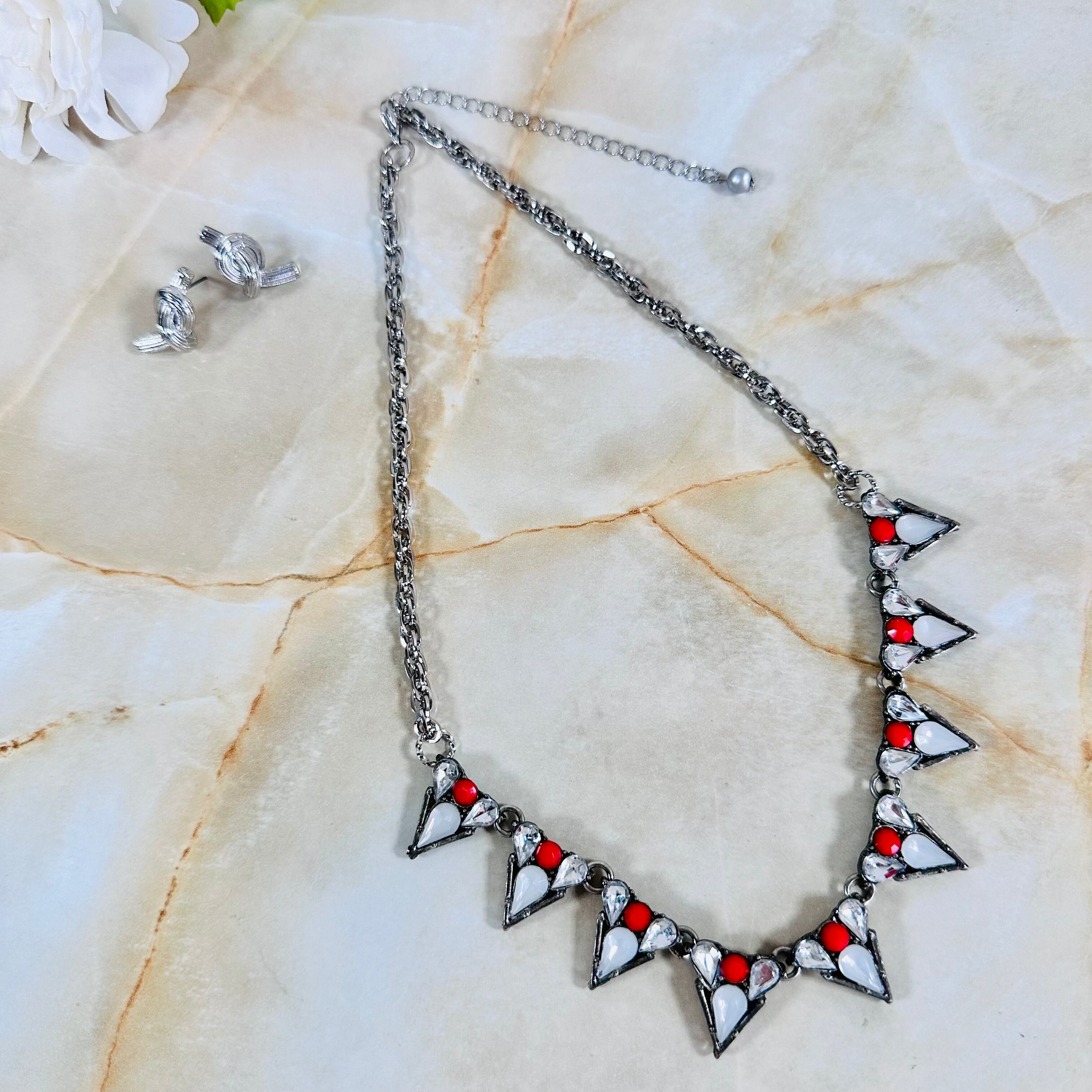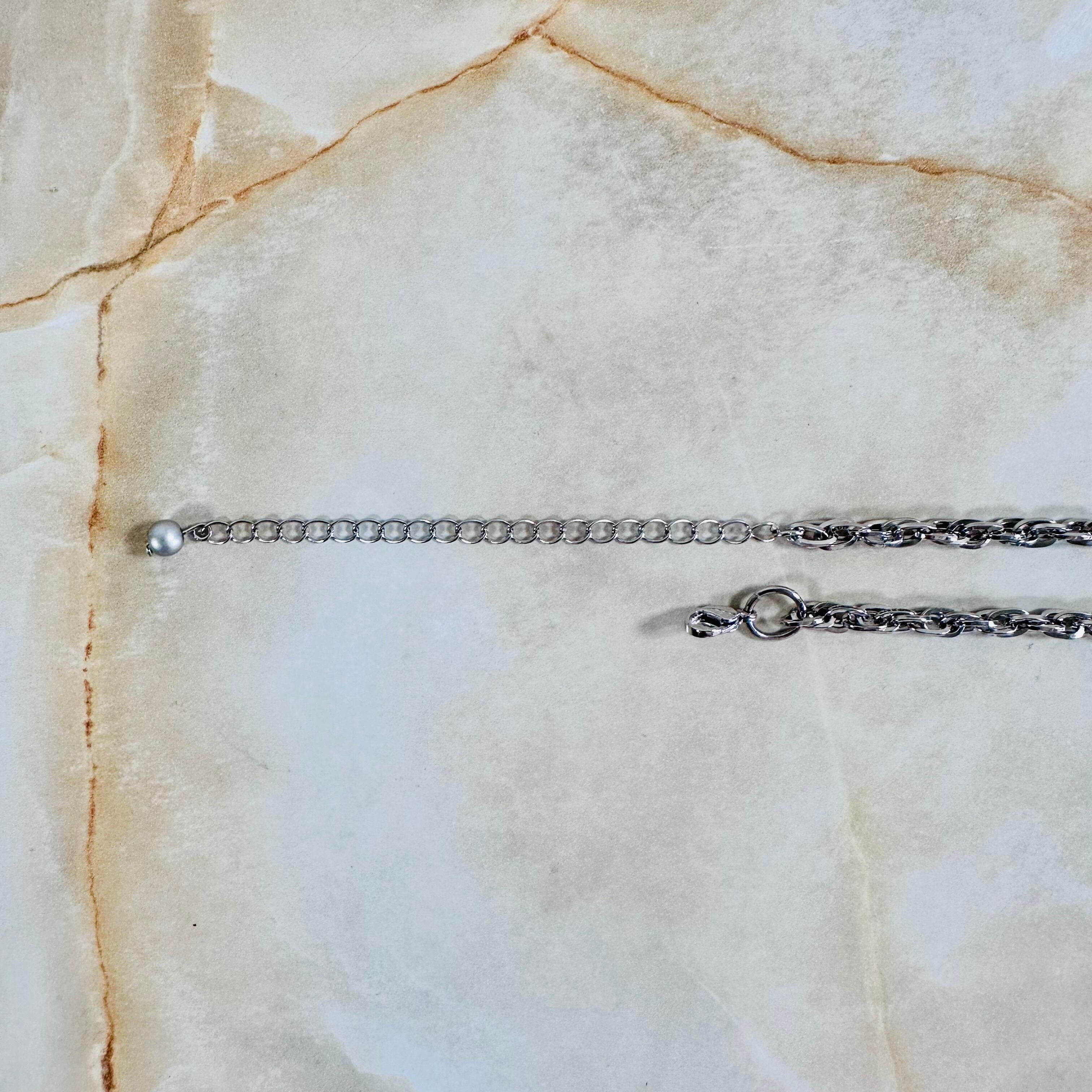 オレンジ、ミルキーホワイト、クリア✖️シルバーカラーのネックレスです。