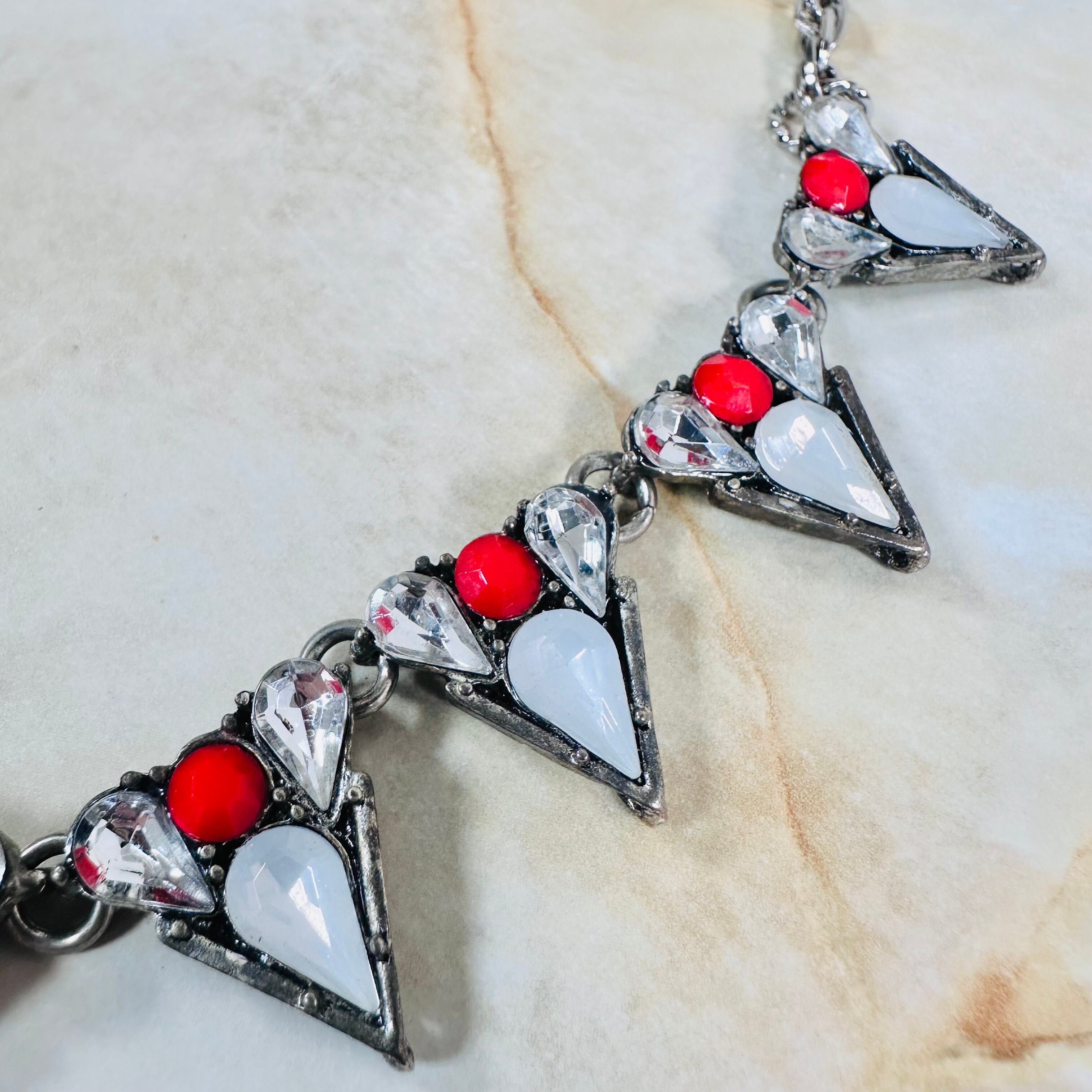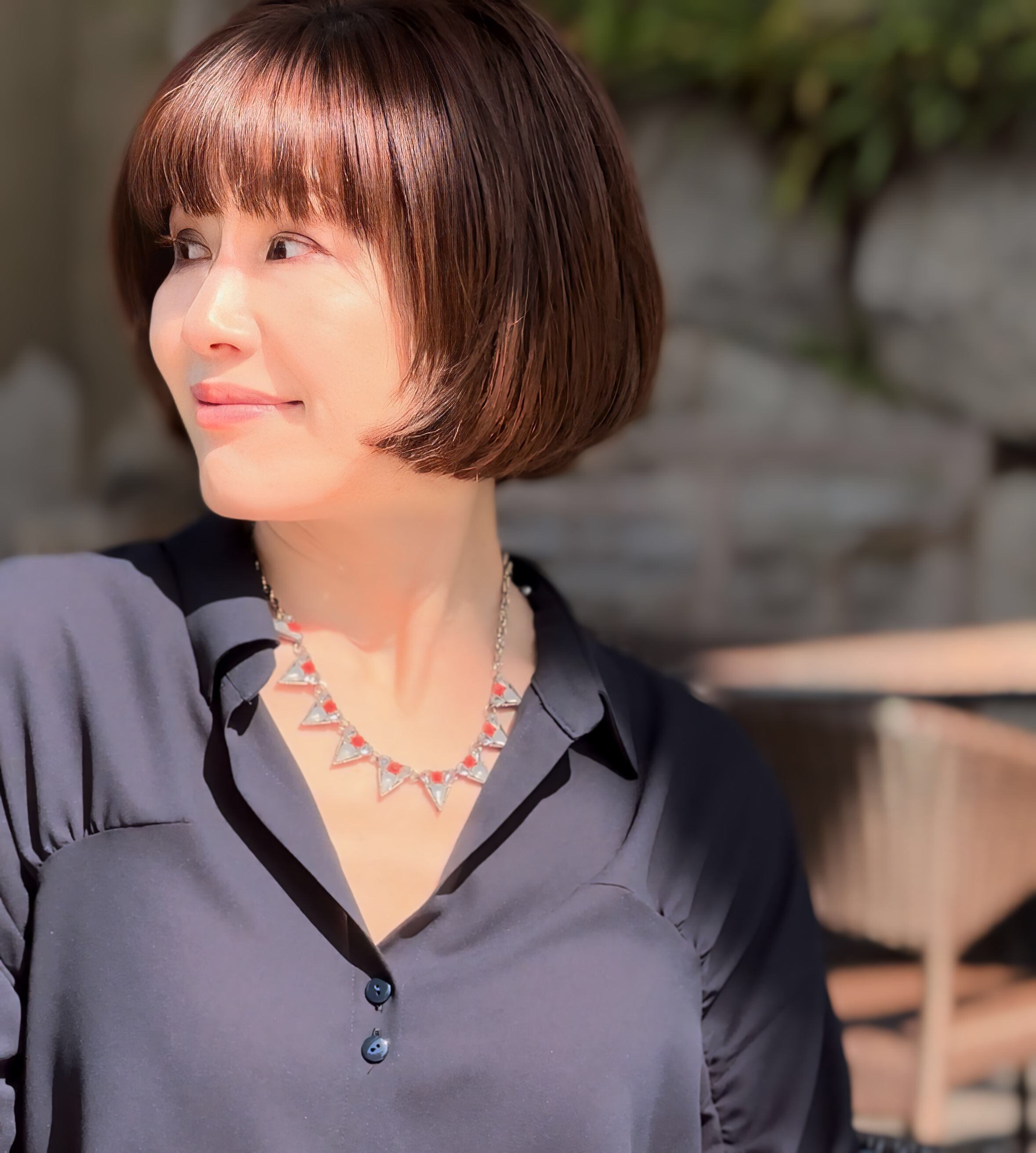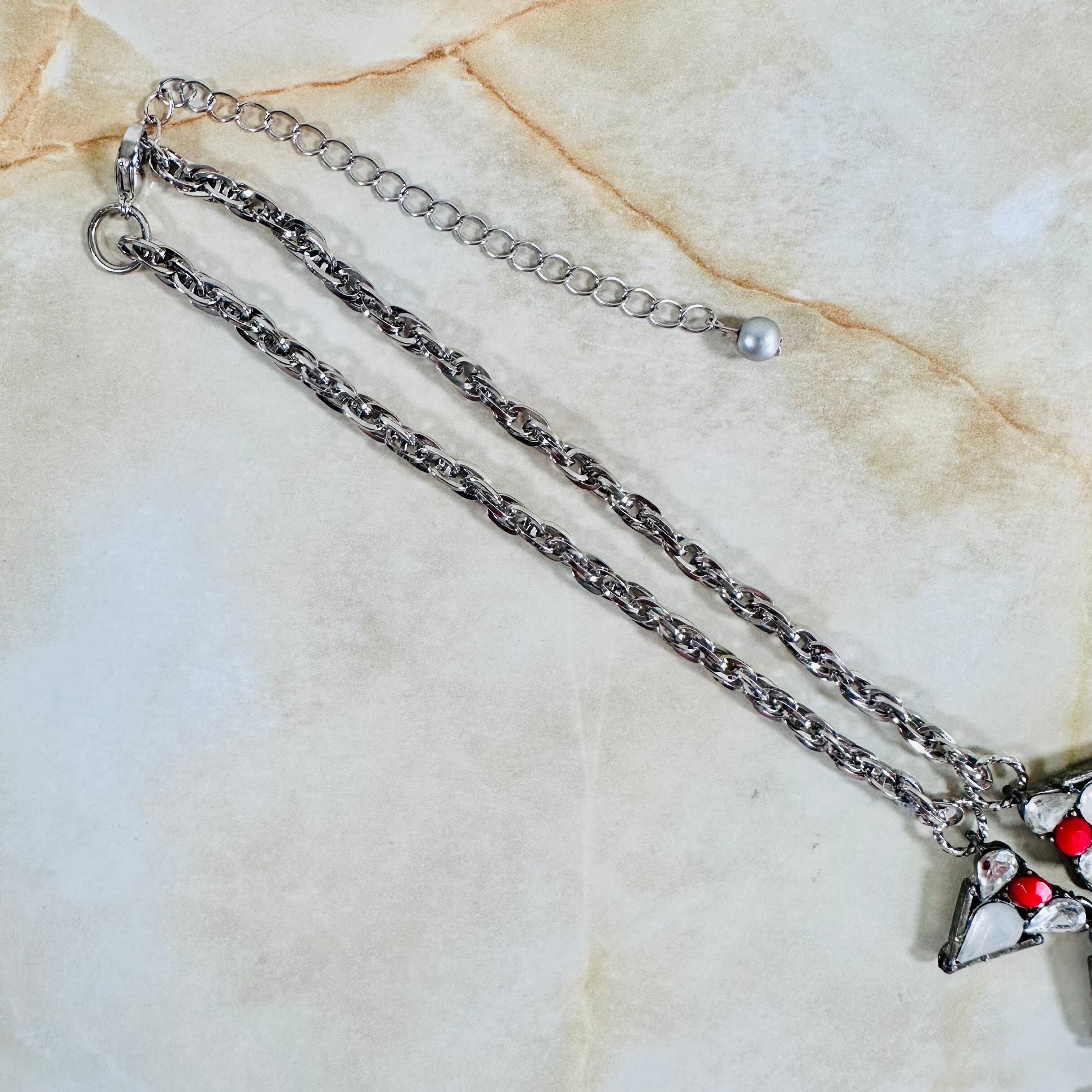 ヴィンテージ調のモチーフにラインストーンを引き立てるキラキラと輝くチェーンを組み合わせ華やかさを表現しました。