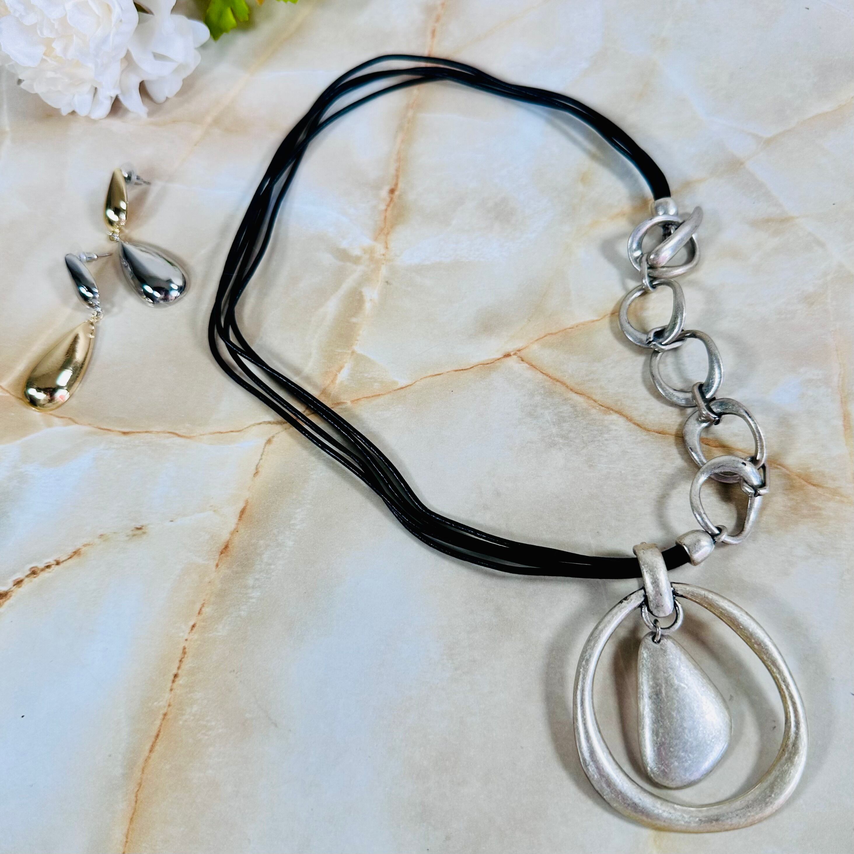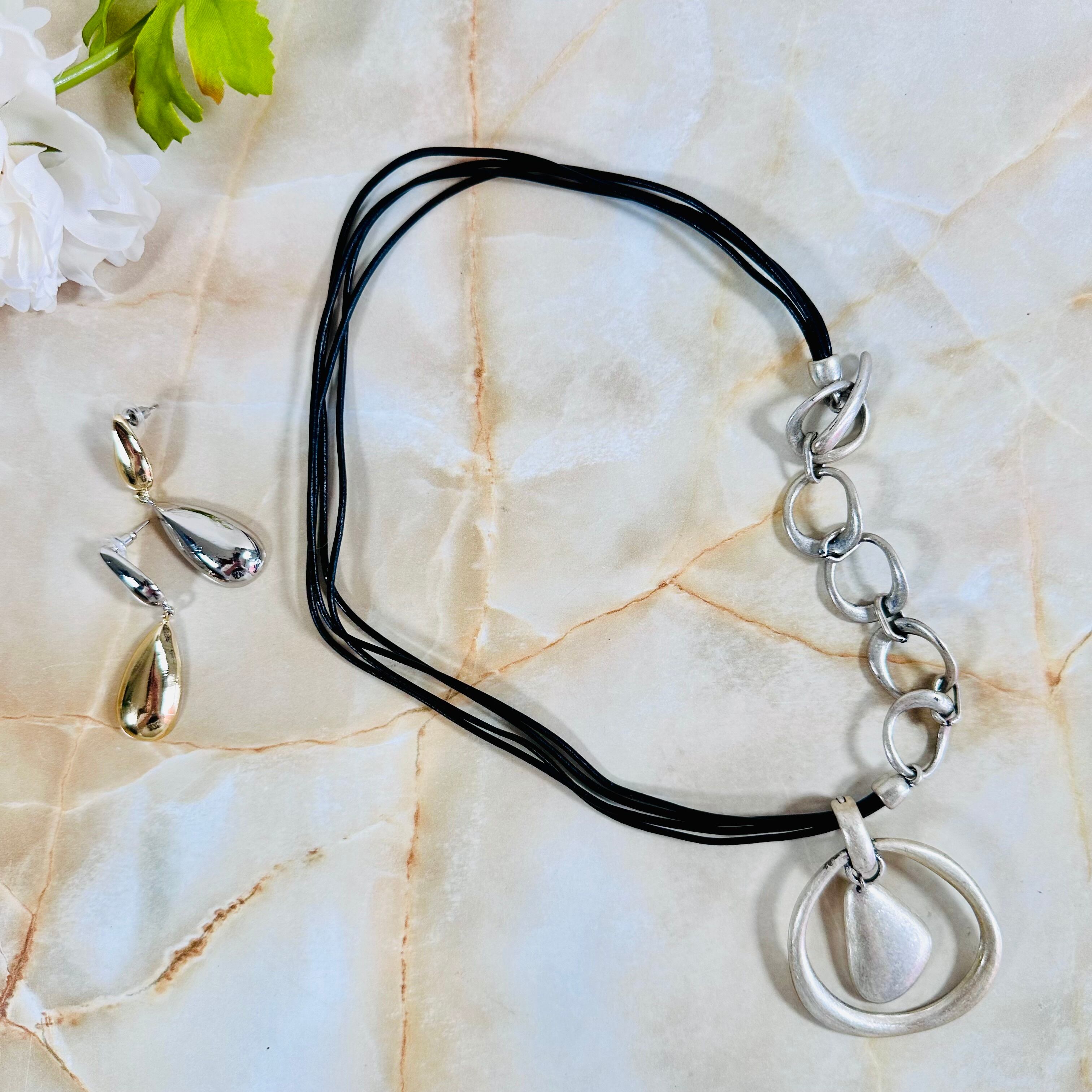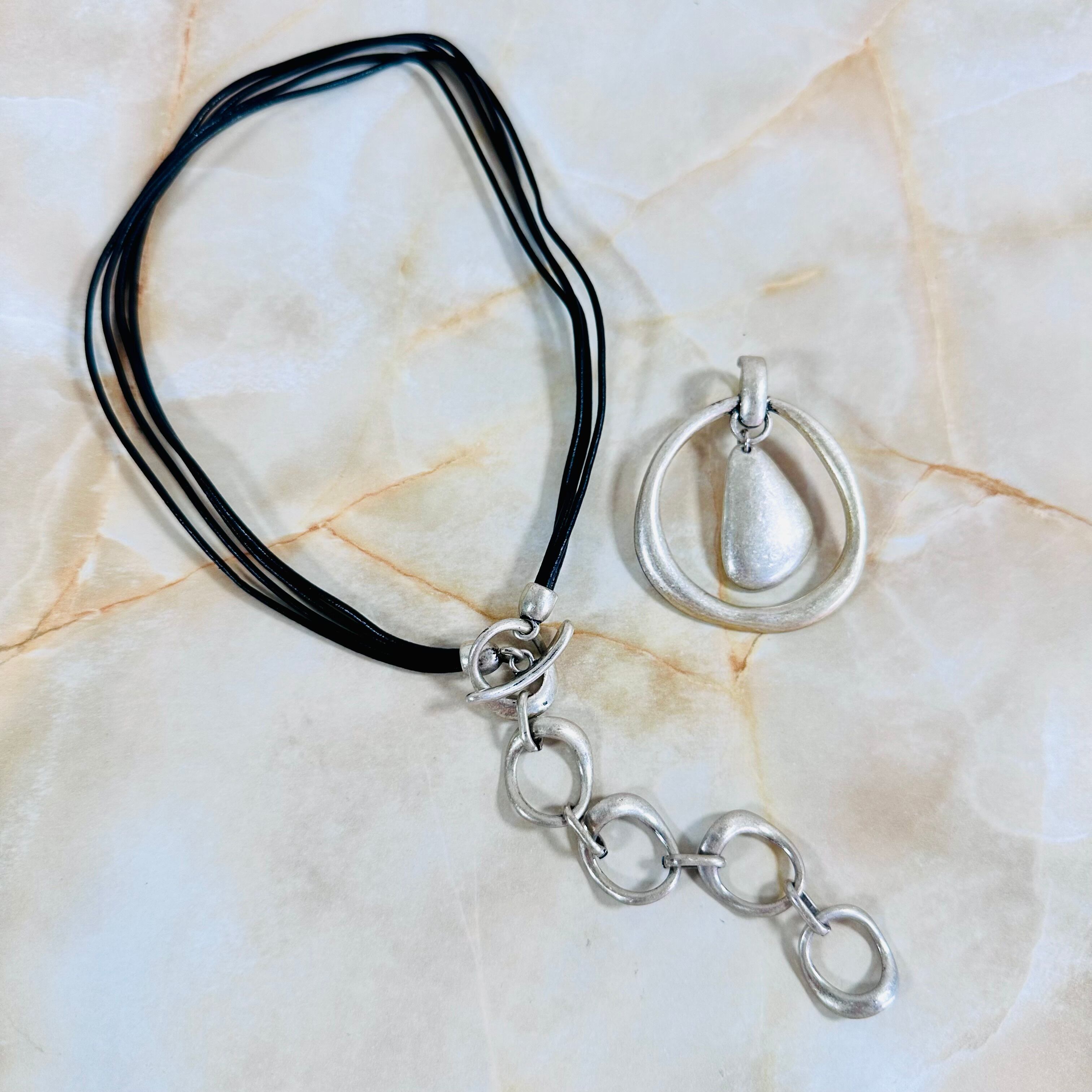アンティークシルバー✖️ブラックカラーのネックレスです。