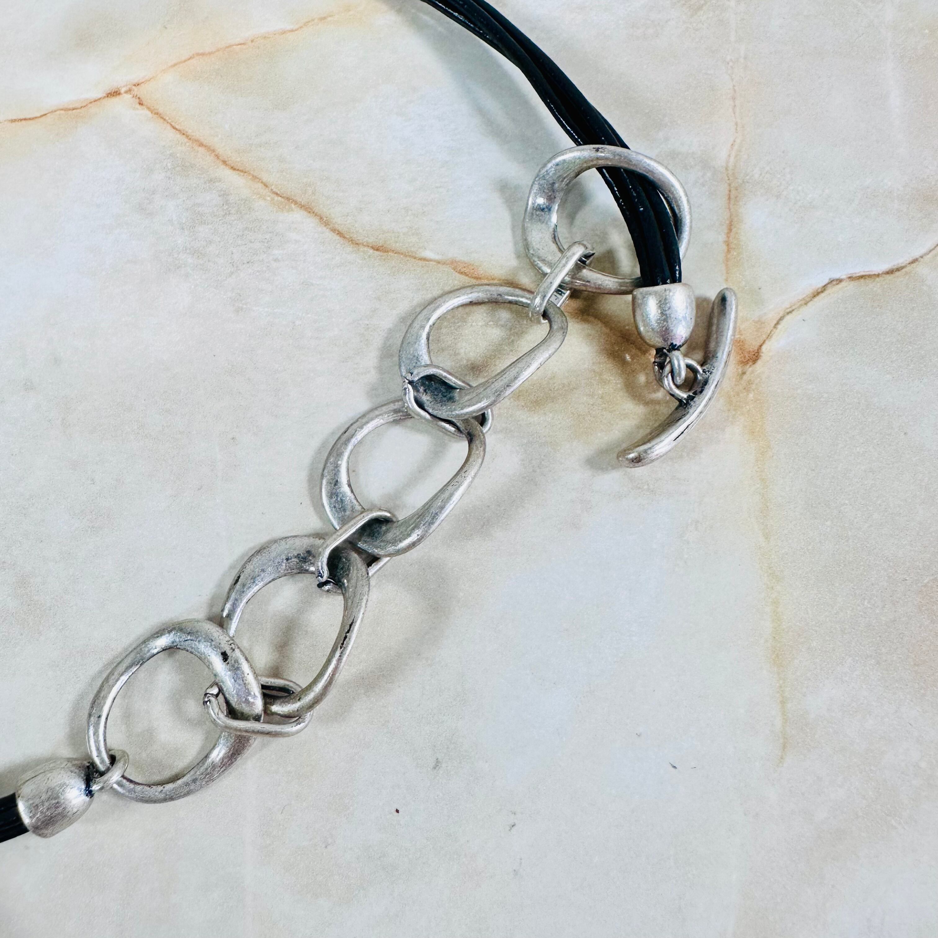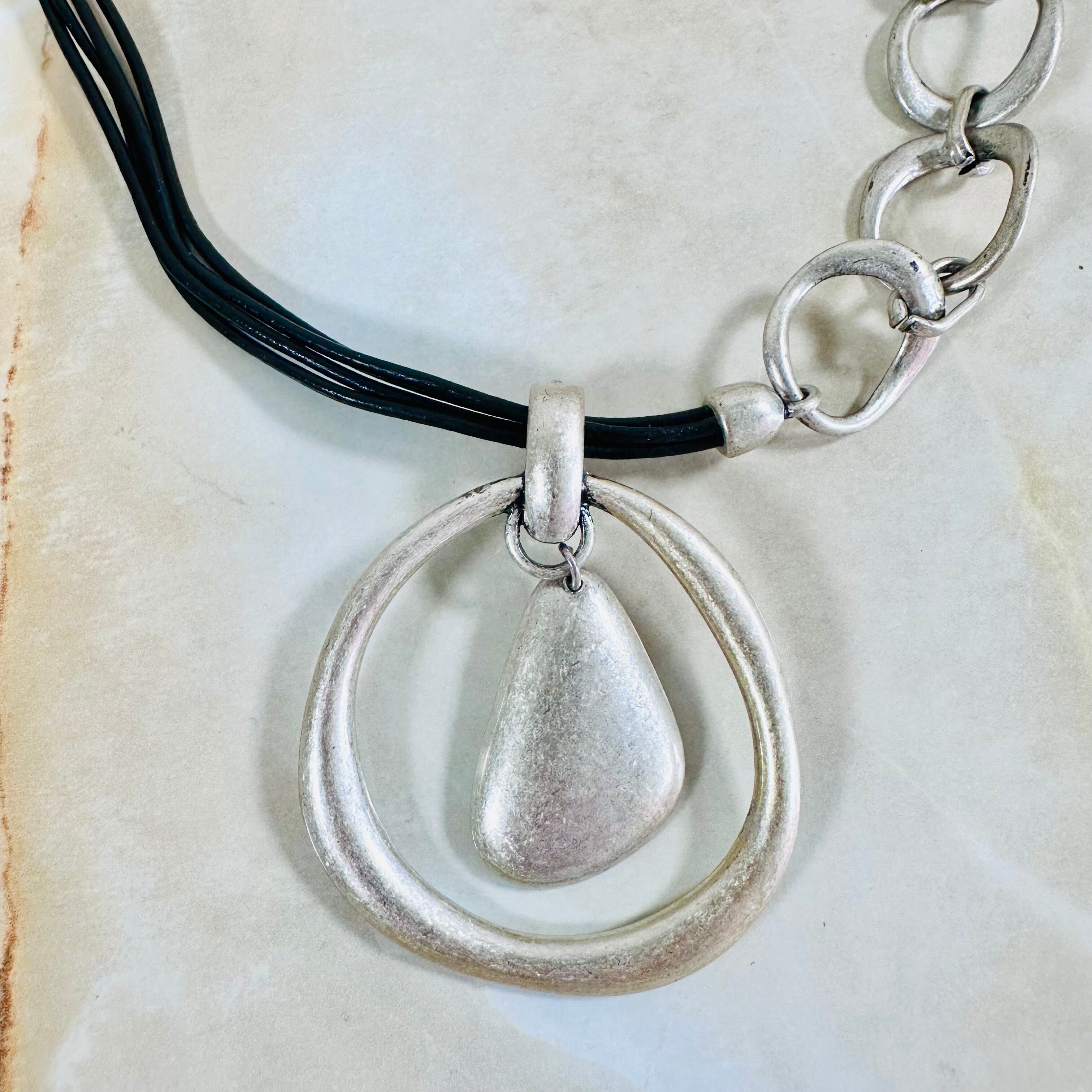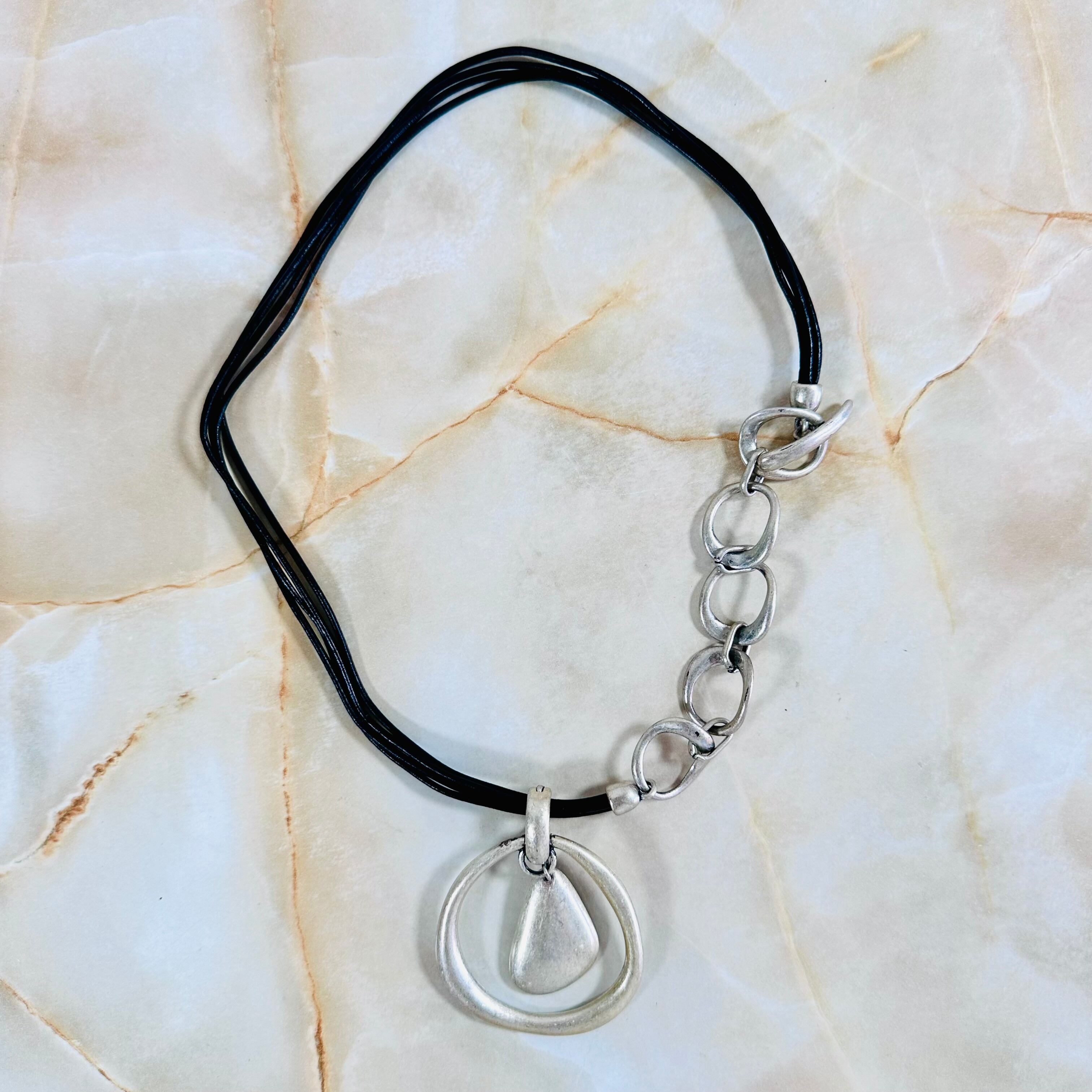 アンティークシルバー✖️ブラックカラーのネックレスです。