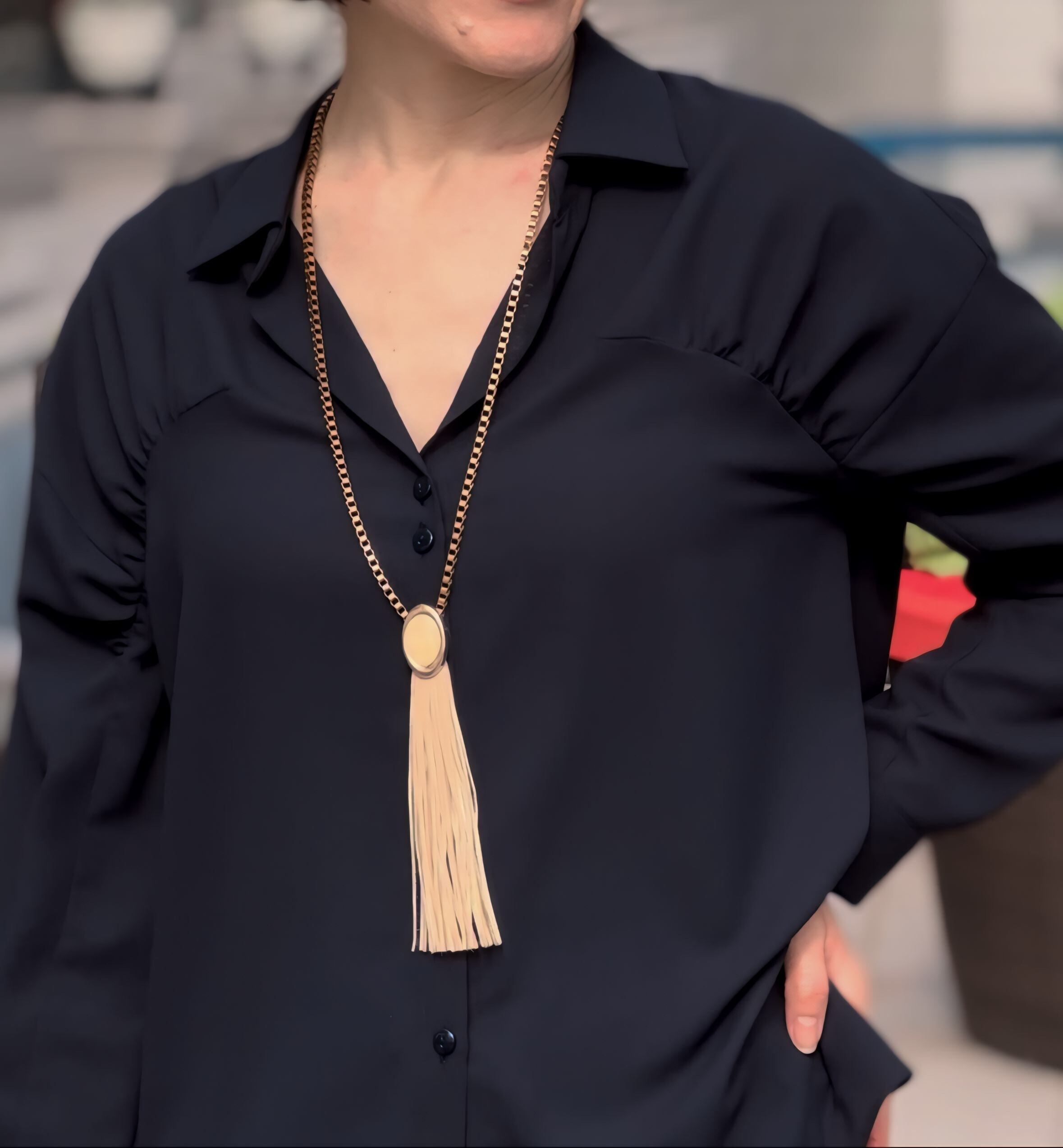 ベージュ✖️アンティークゴールドカラーのロングネックレスです。