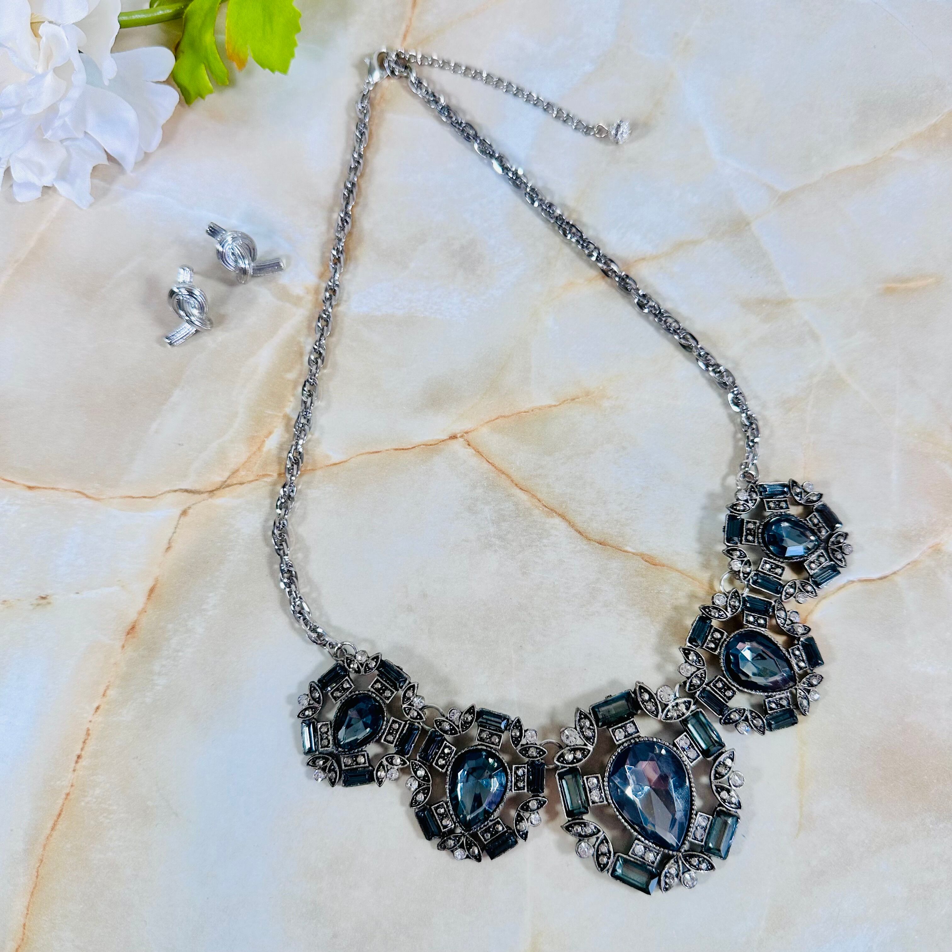 グレー、クリア✖️シルバーカラーのネックレスです。