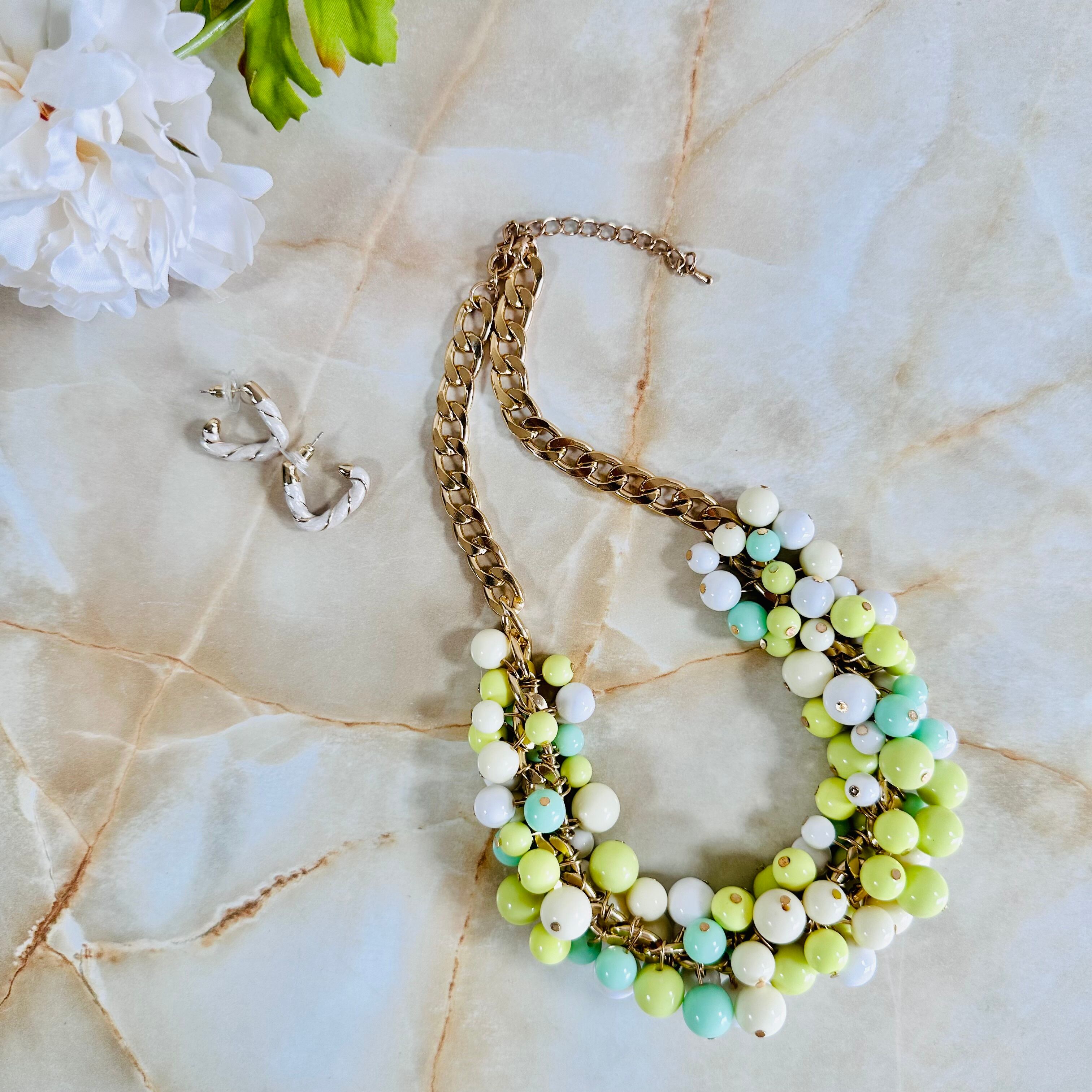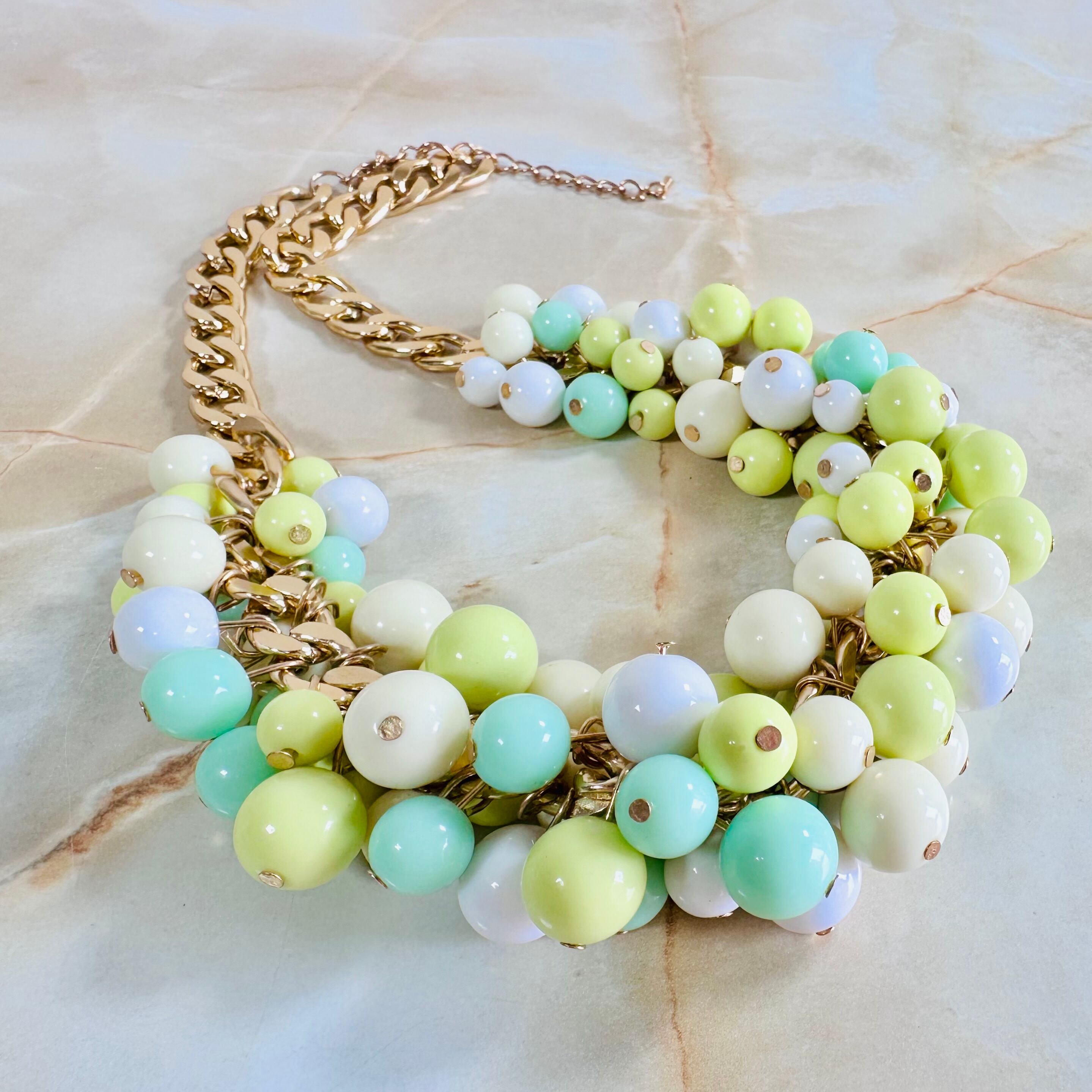 グリーン系✖️ゴールドカラーのネックレスです。