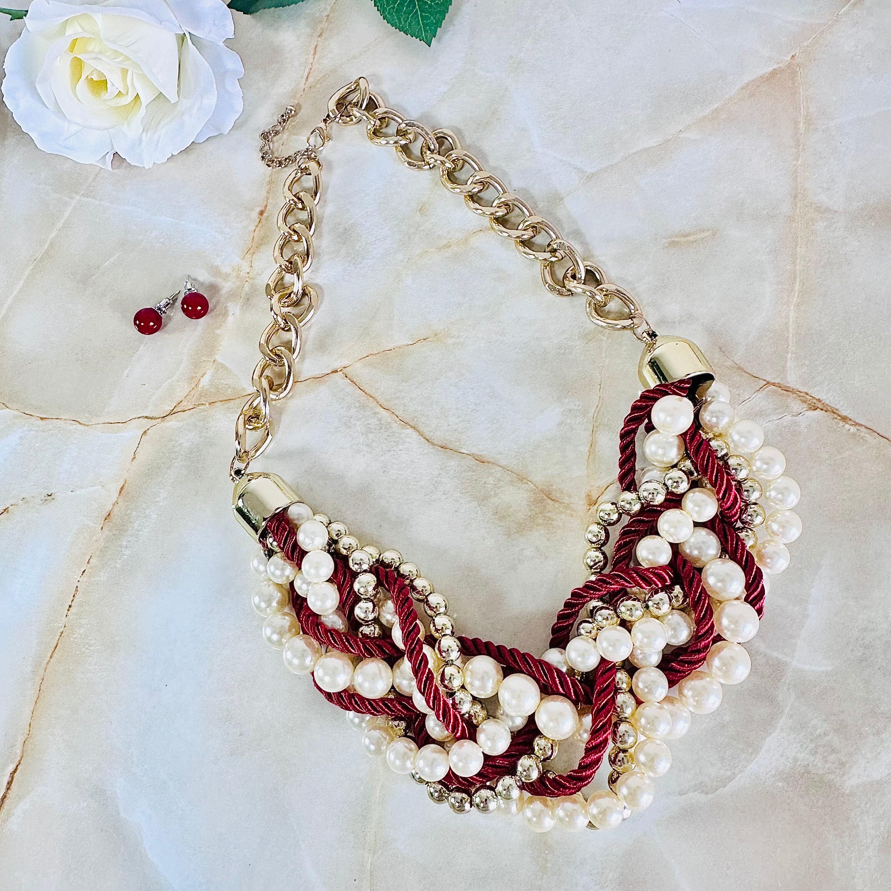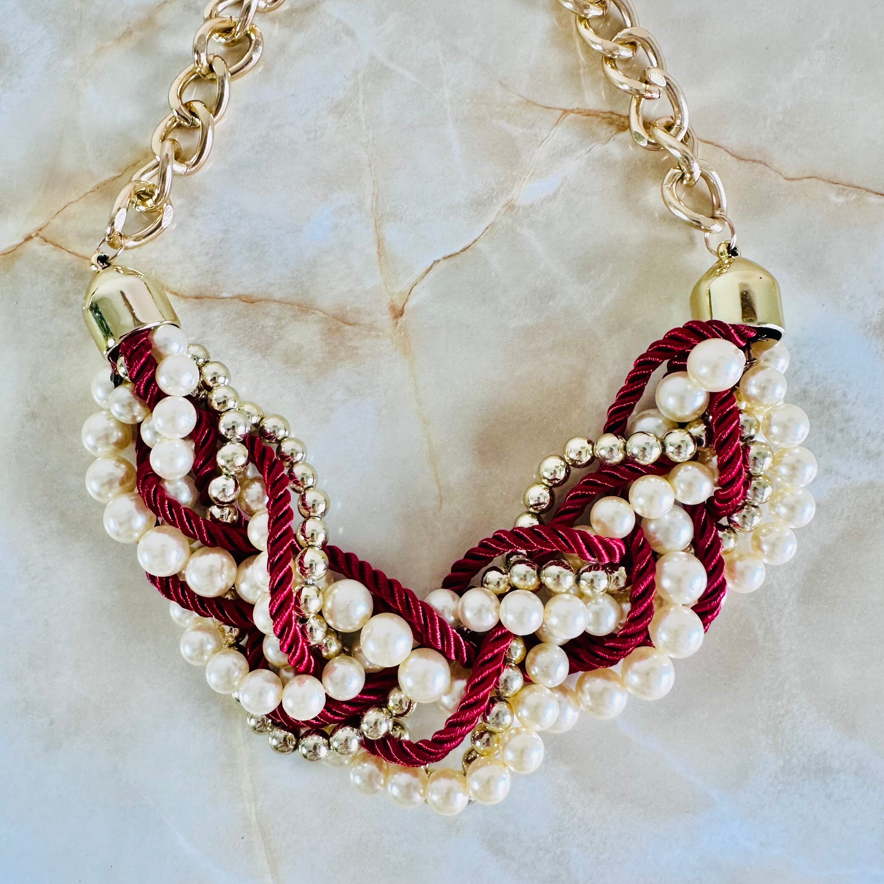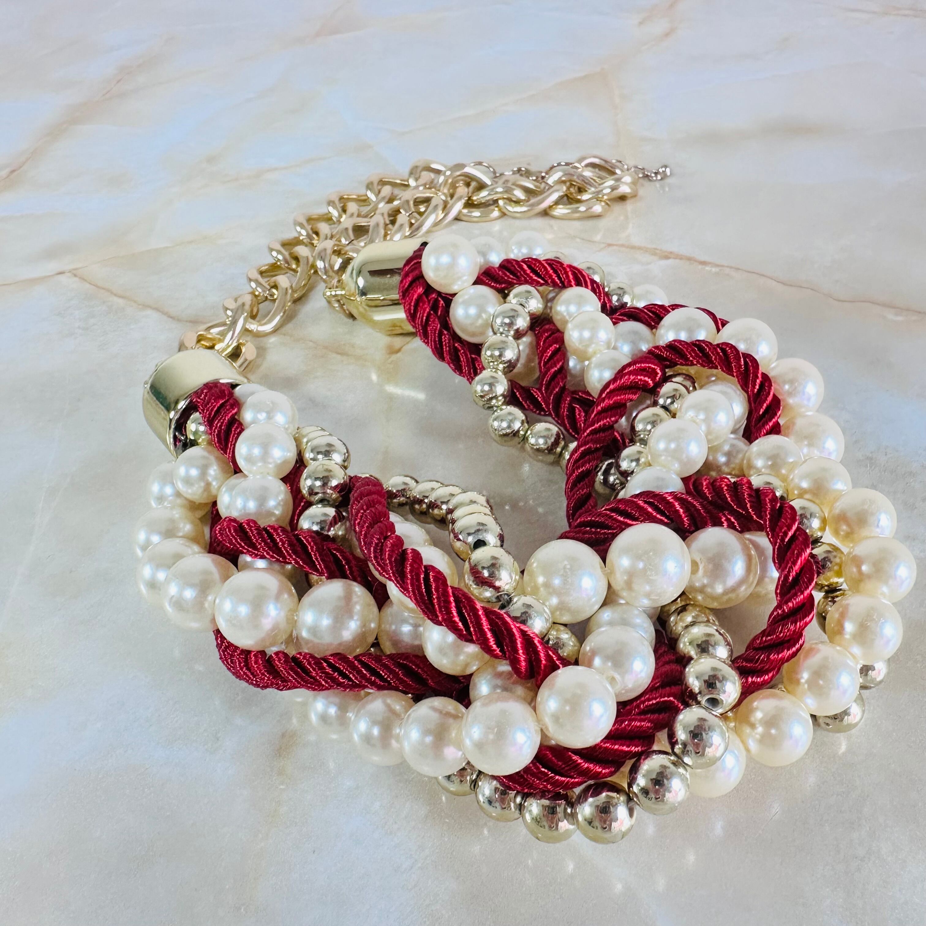 レッド、パール、ゴールド✖️ゴールドカラーのネックレスです。
