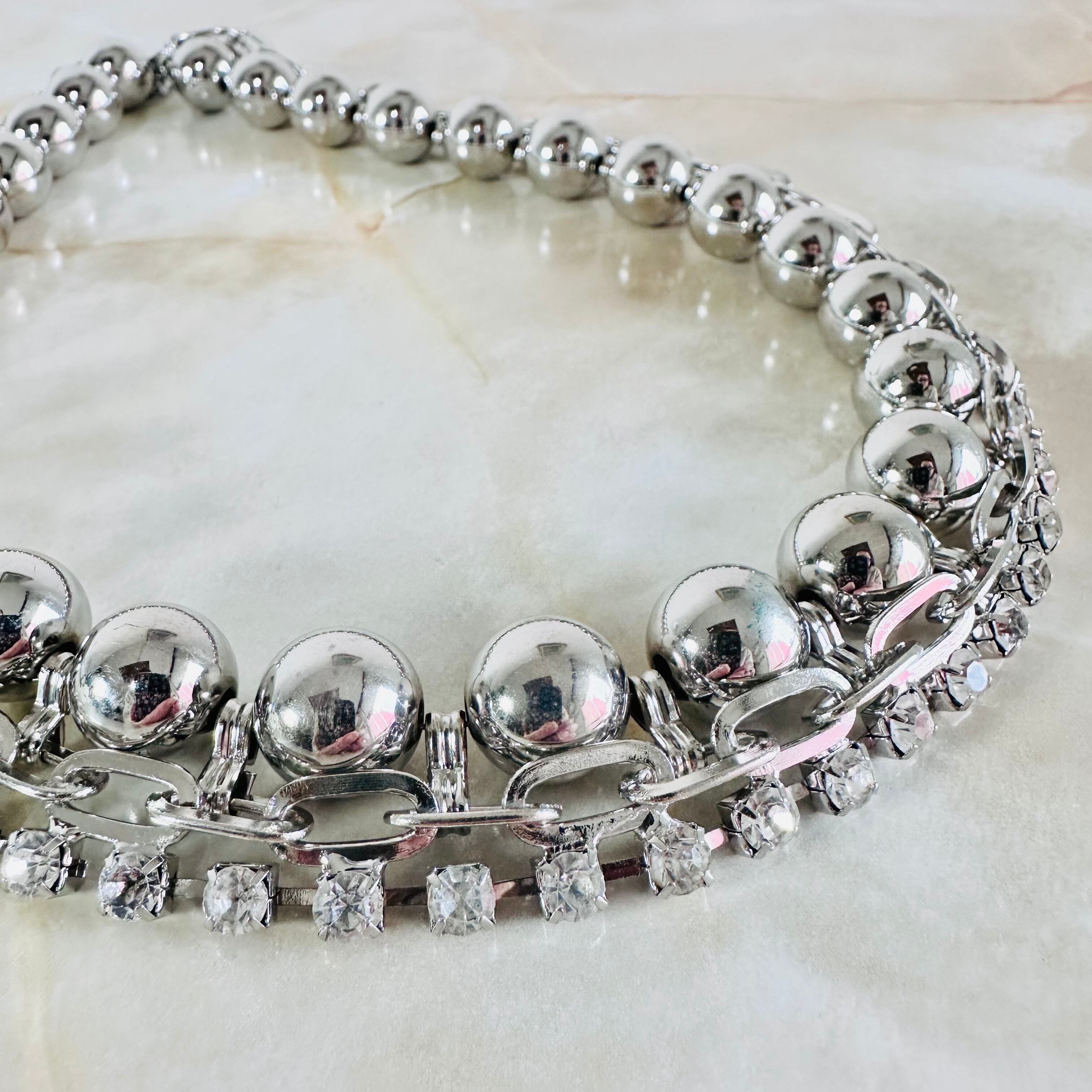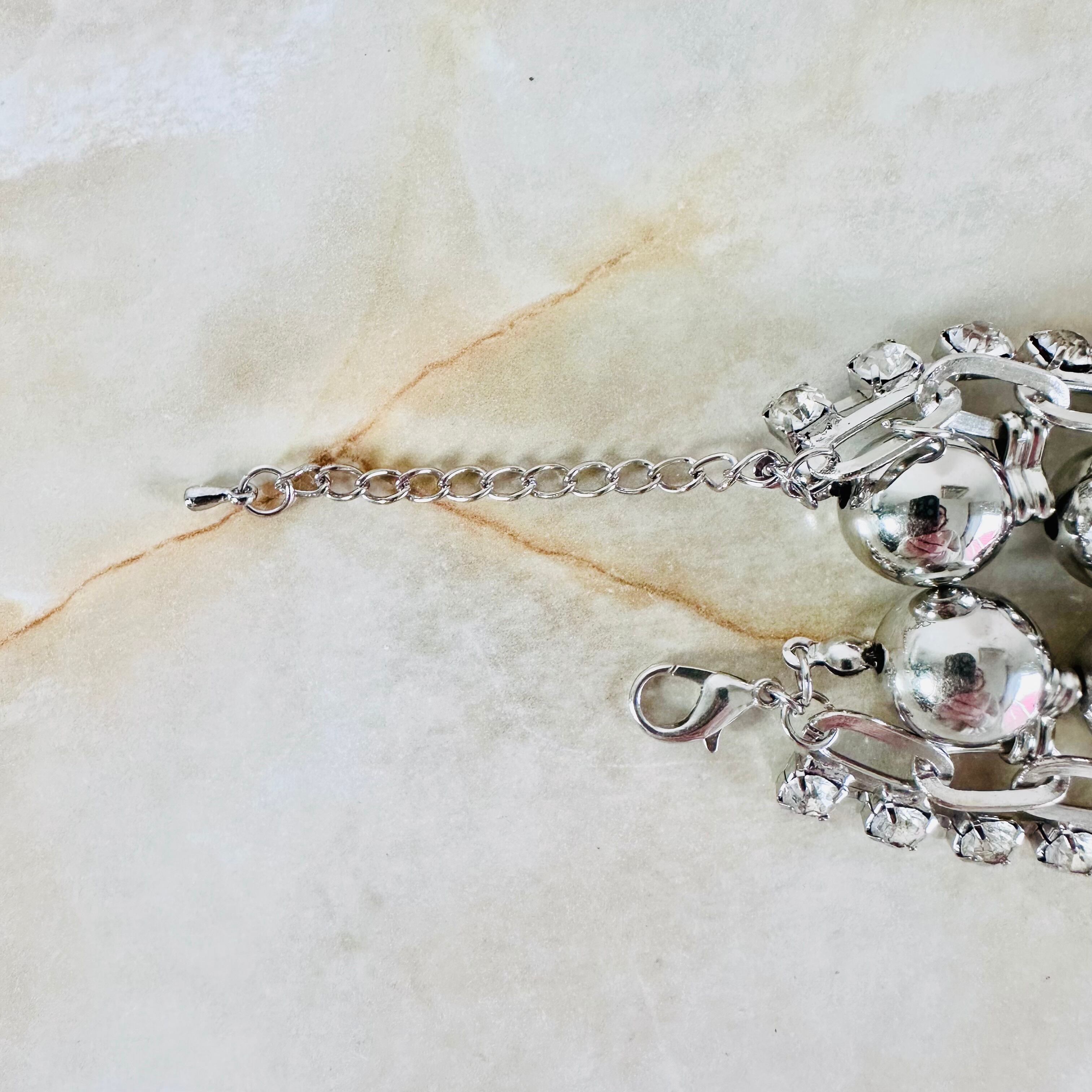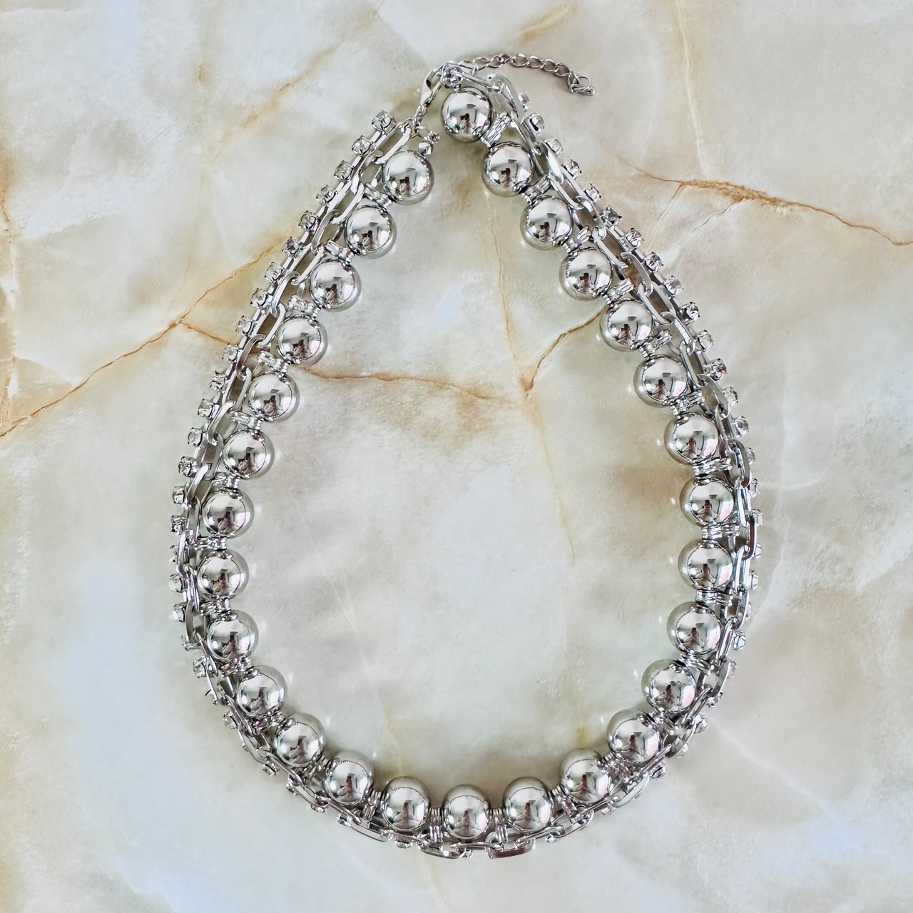 美しく輝くシルバーボールとチェーンにラインストーンをプラスし、ゴージャスに仕上げました。