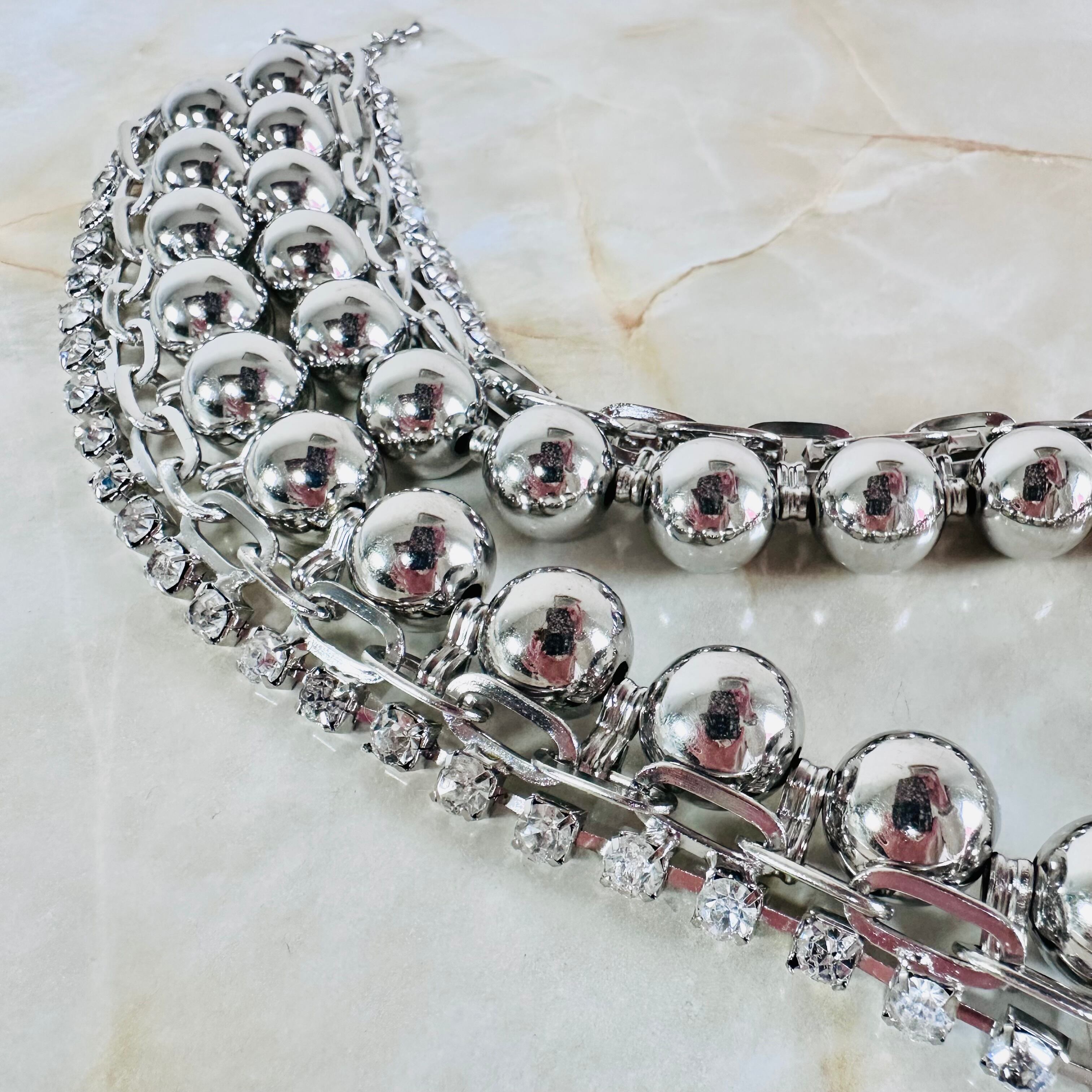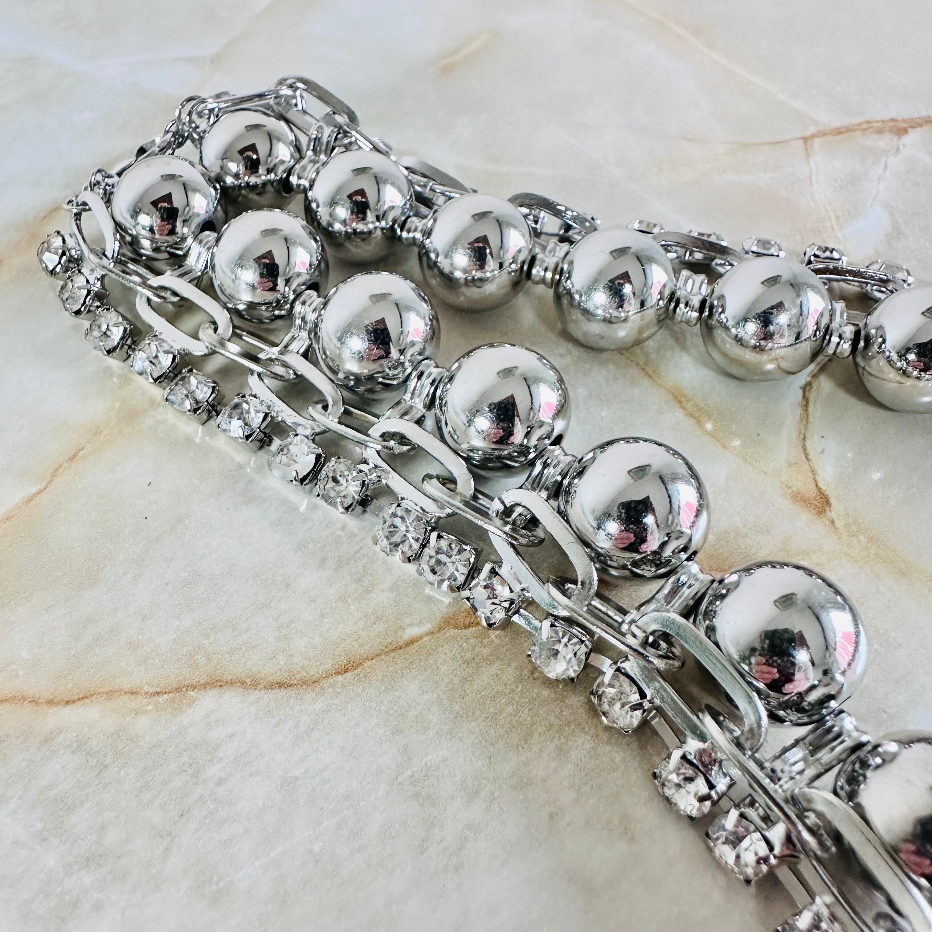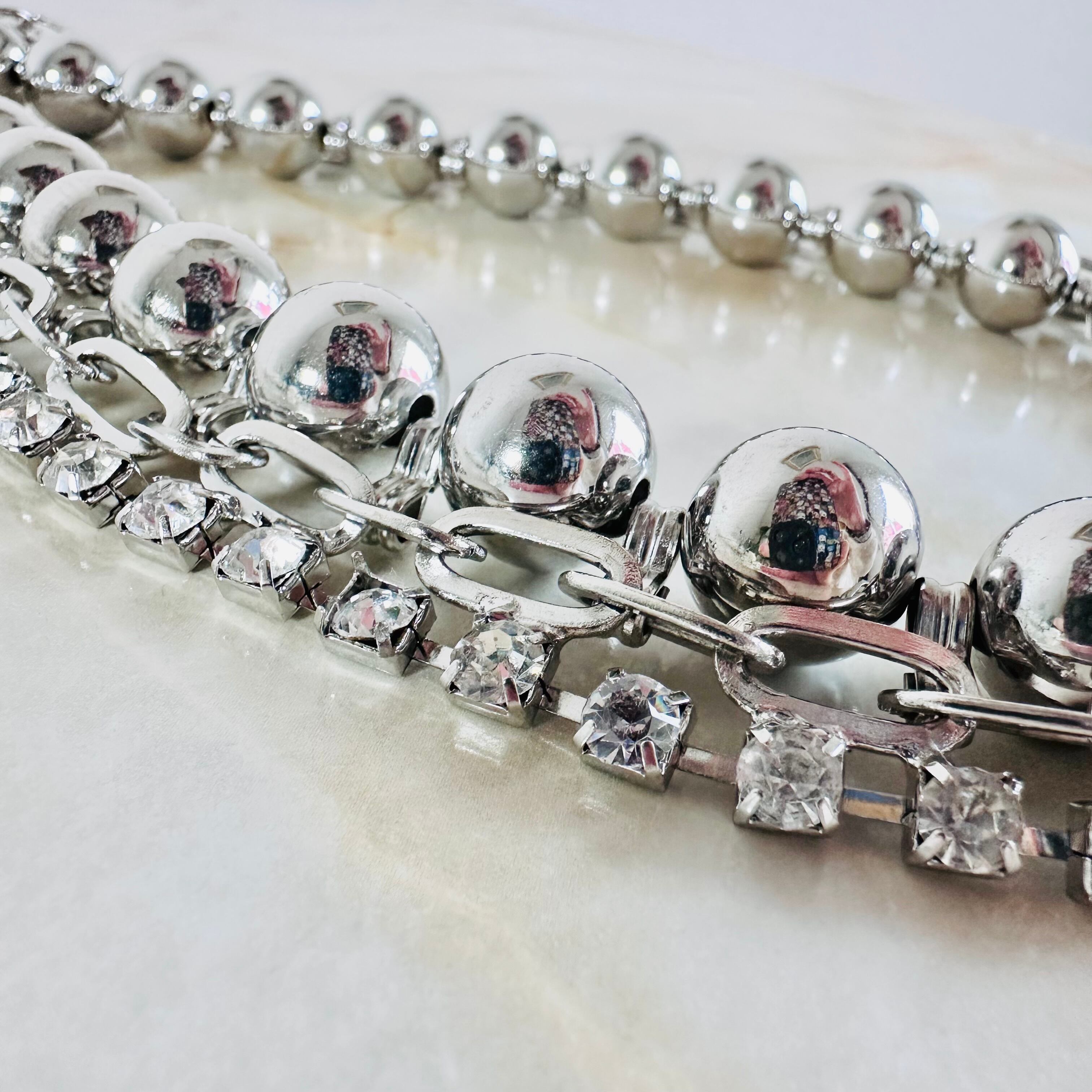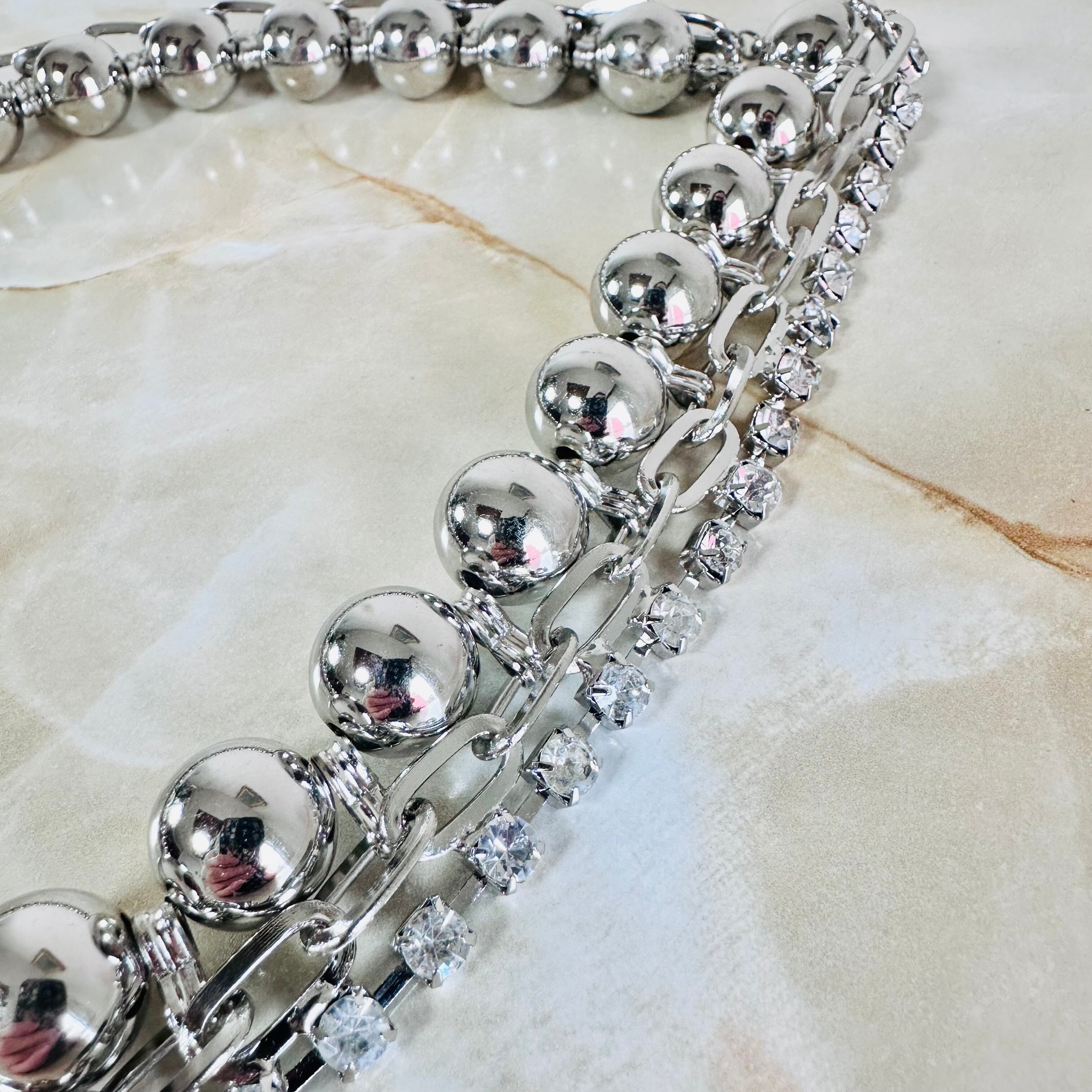 美しく輝くシルバーボールとチェーンにラインストーンをプラスし、ゴージャスに仕上げました。
