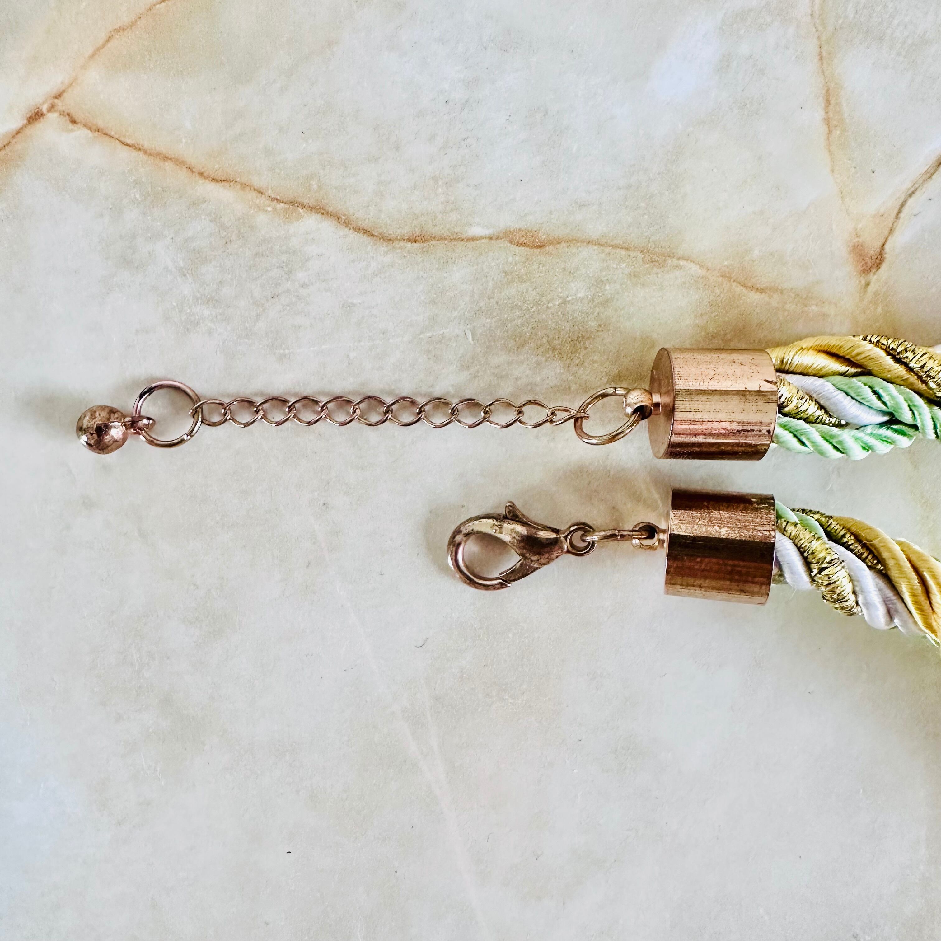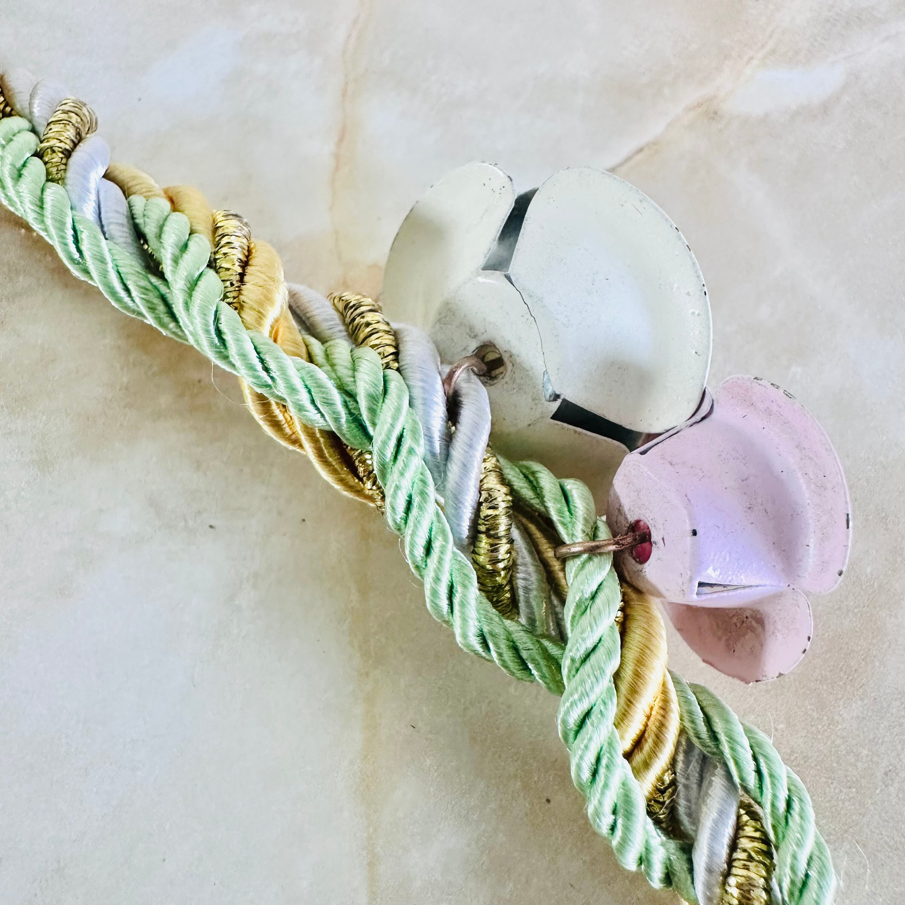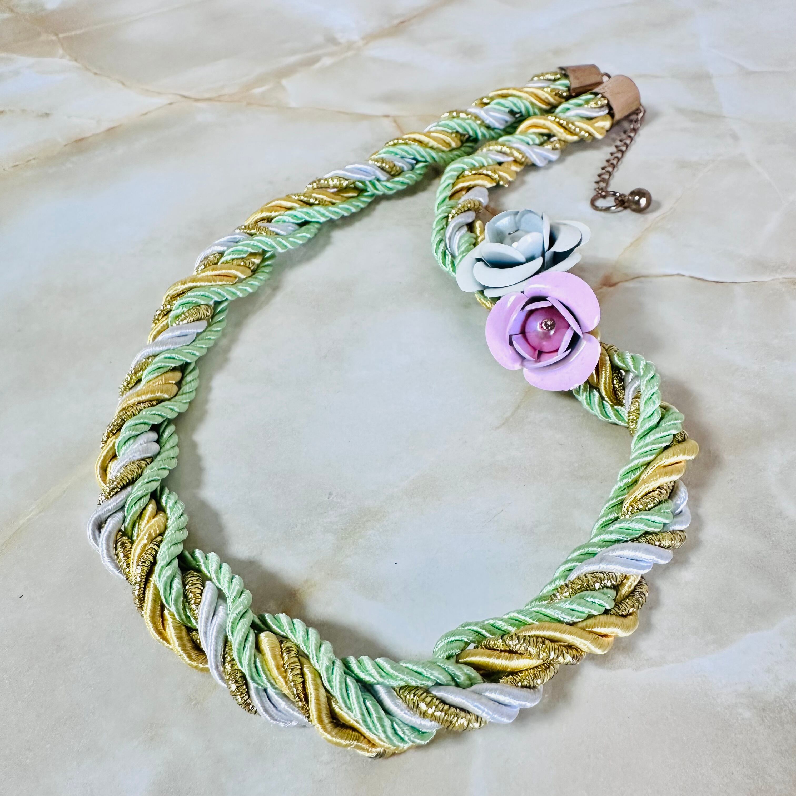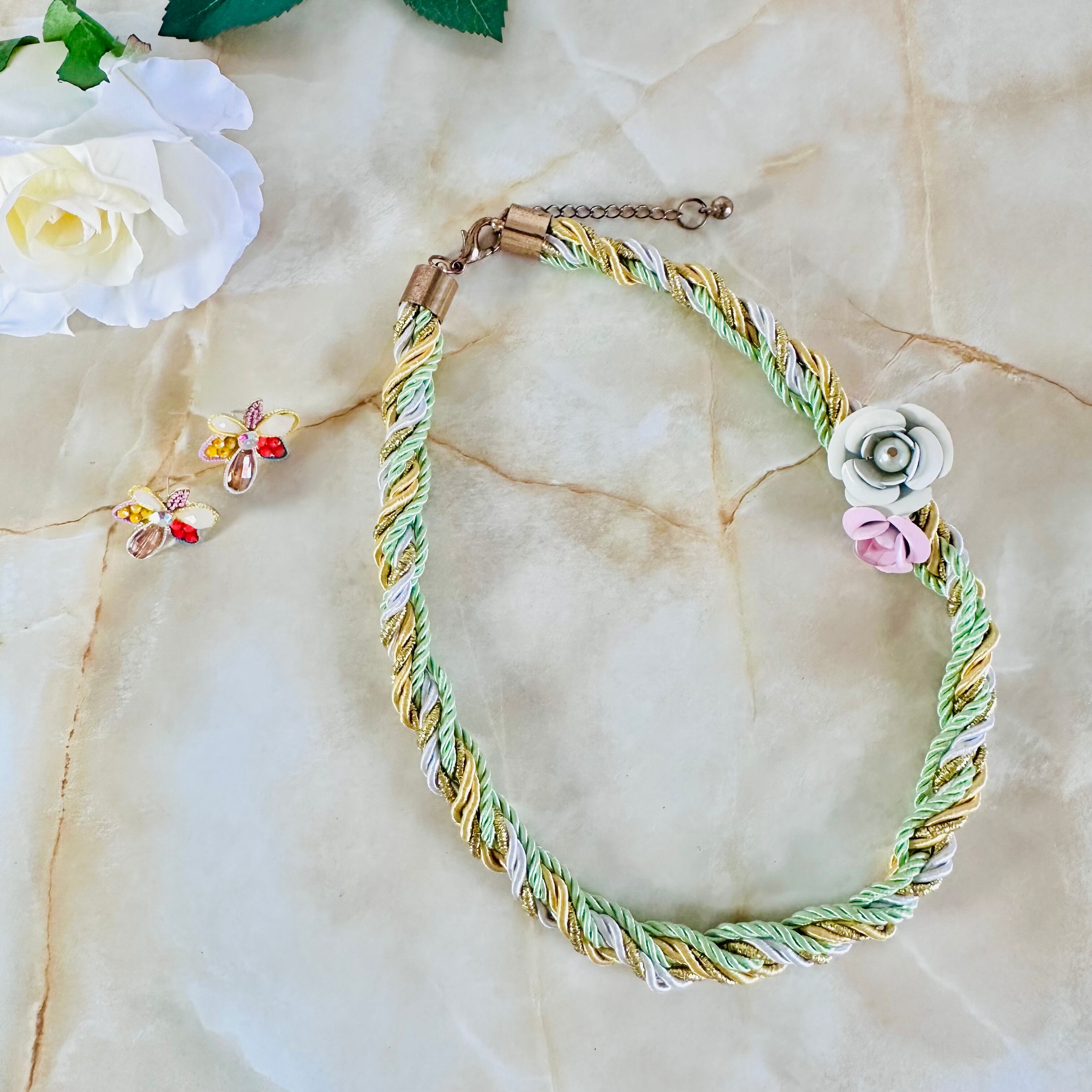 フレッシュなカラーのコードとゴールドをミックスし、キュートなフラワーをプラスしたフェミニンなデザインです。