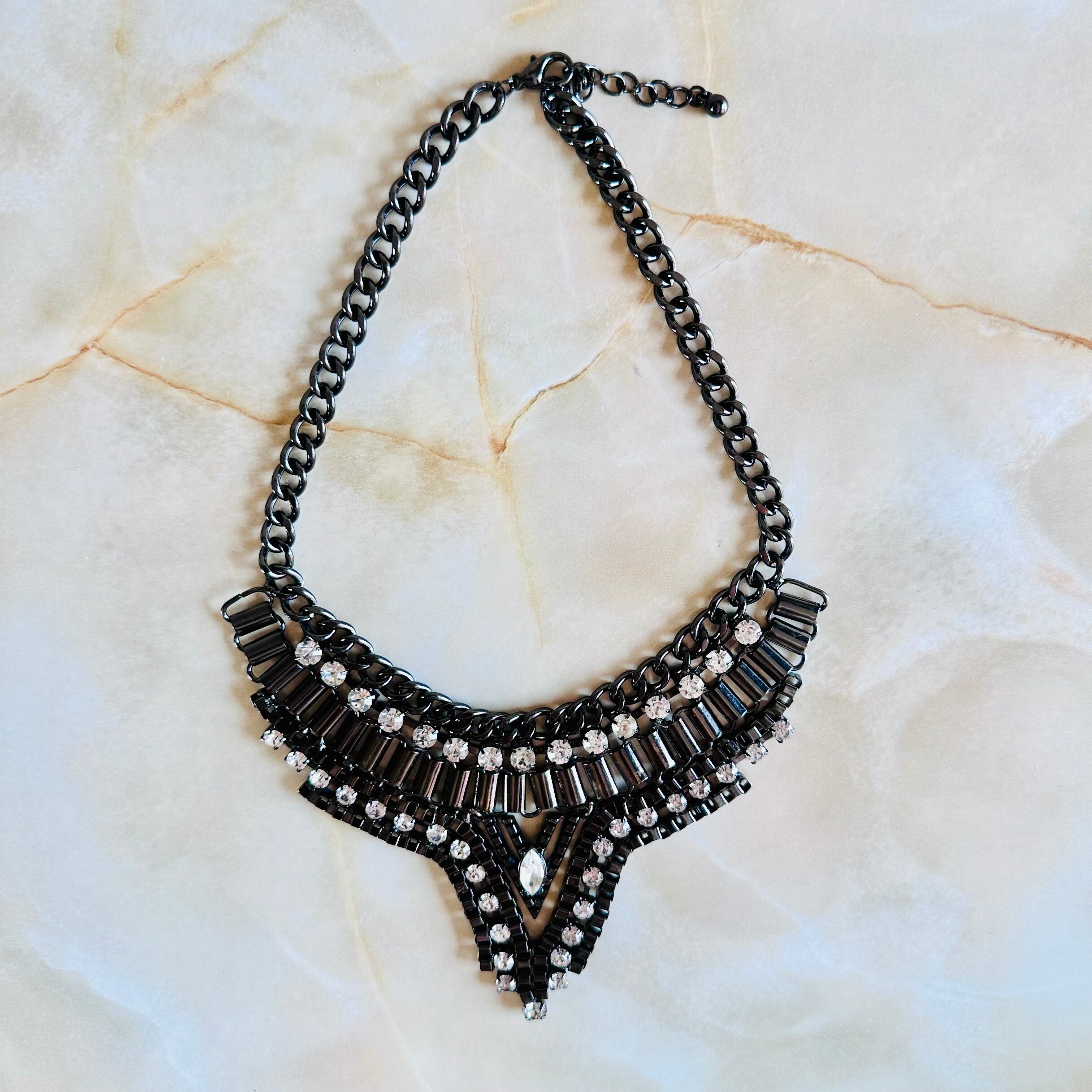 クリア✖️ブラック系シルバーカラーのネックレスです。