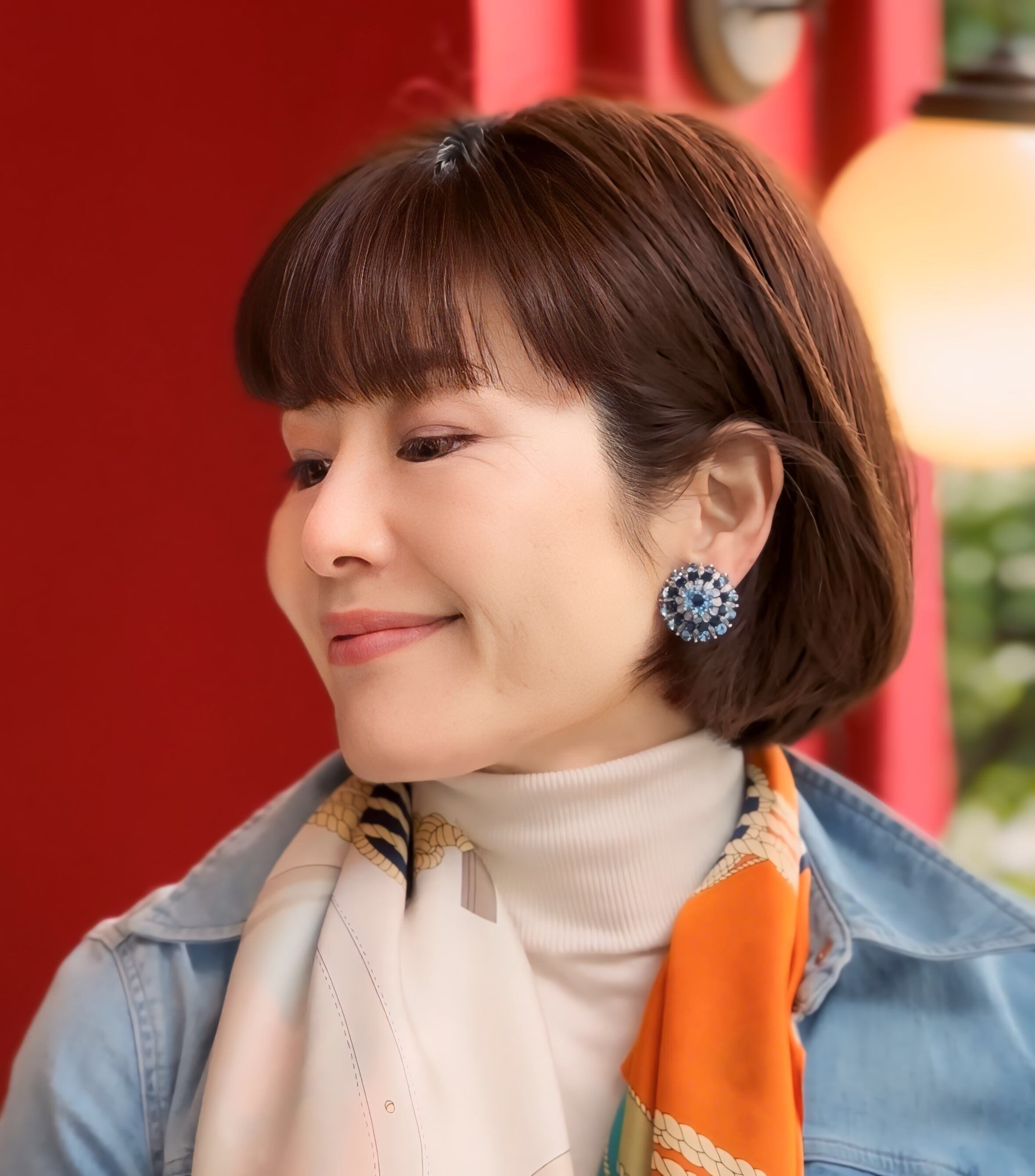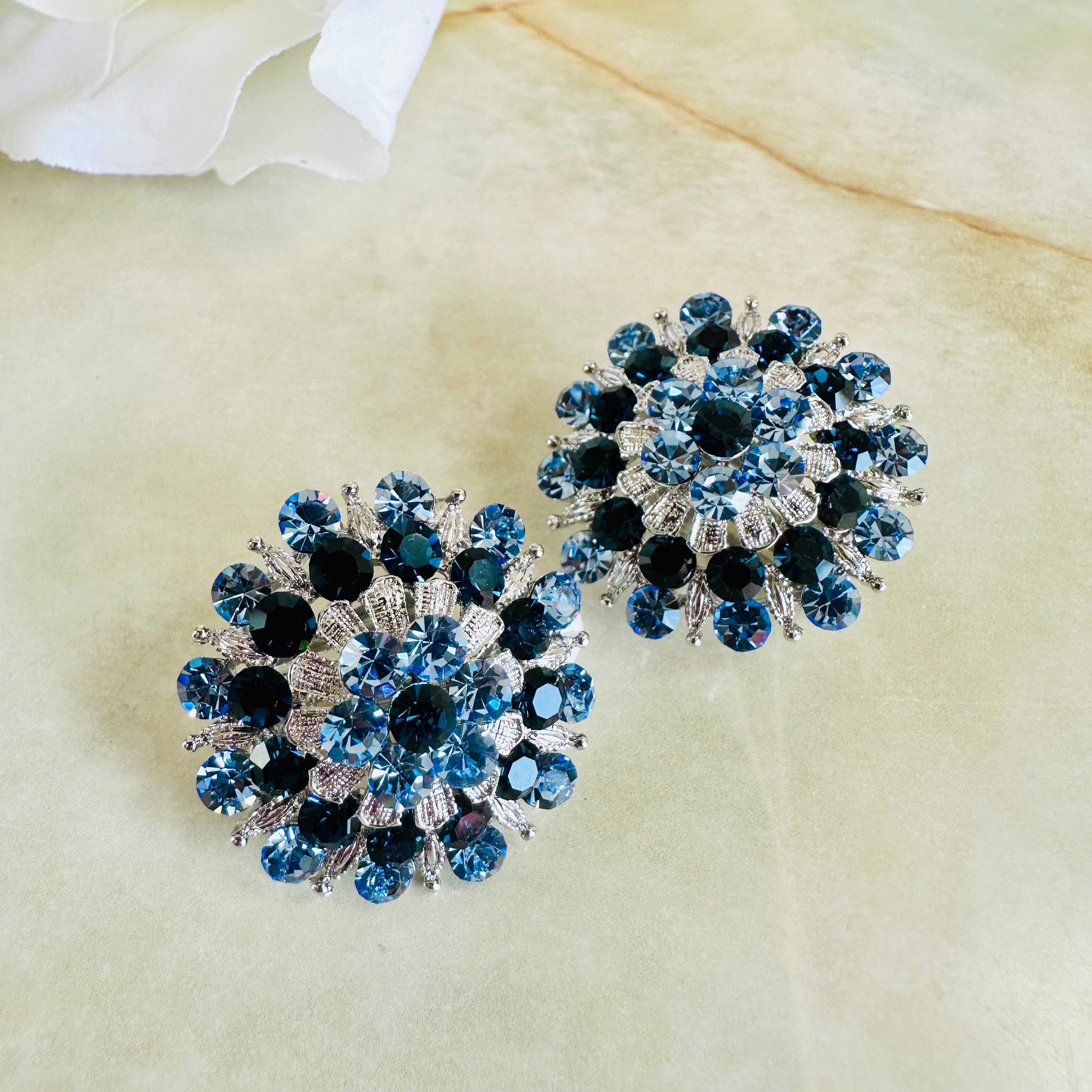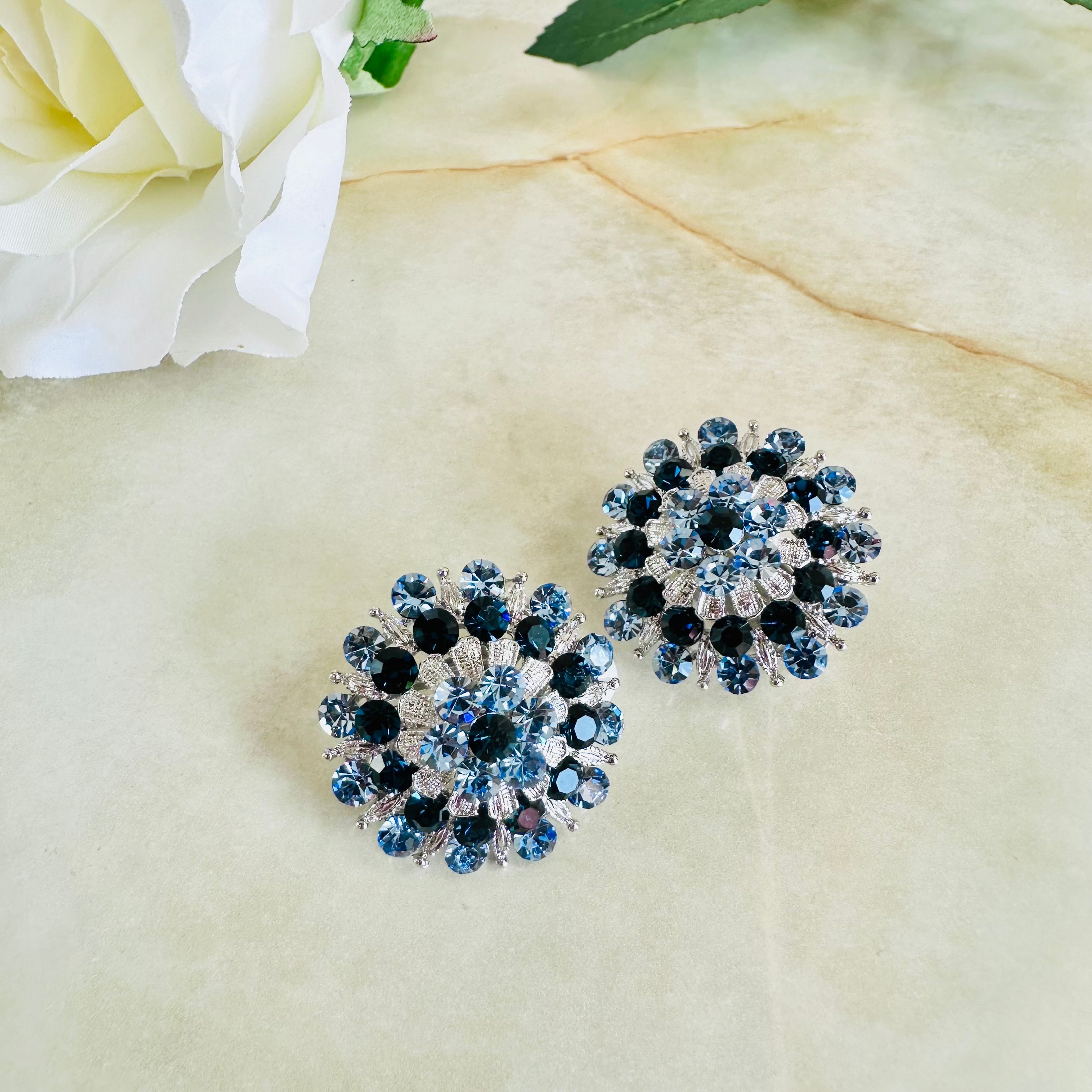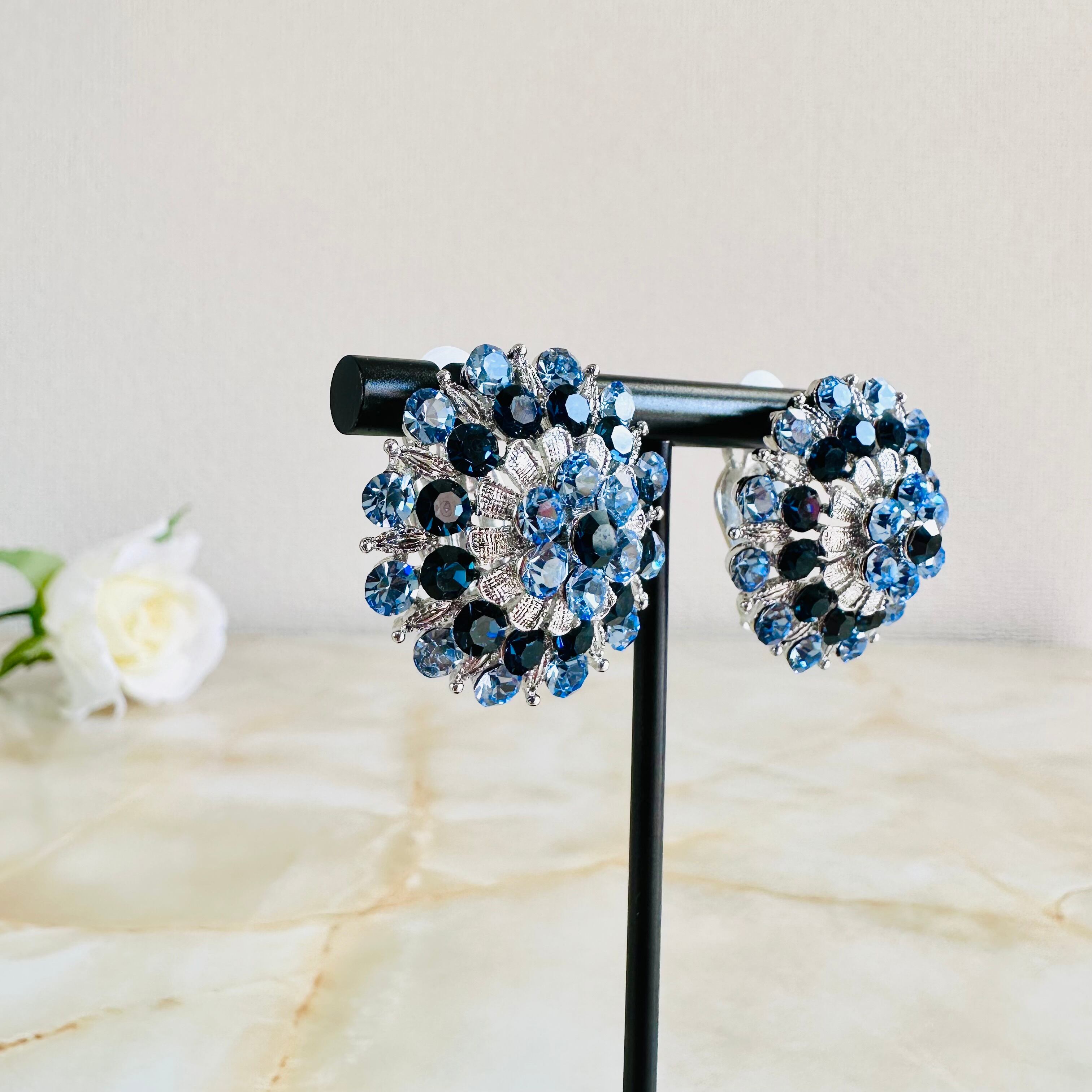 素敵なブルーカラーが印象的なフラワーモチーフが、耳元を華やかに彩ります。