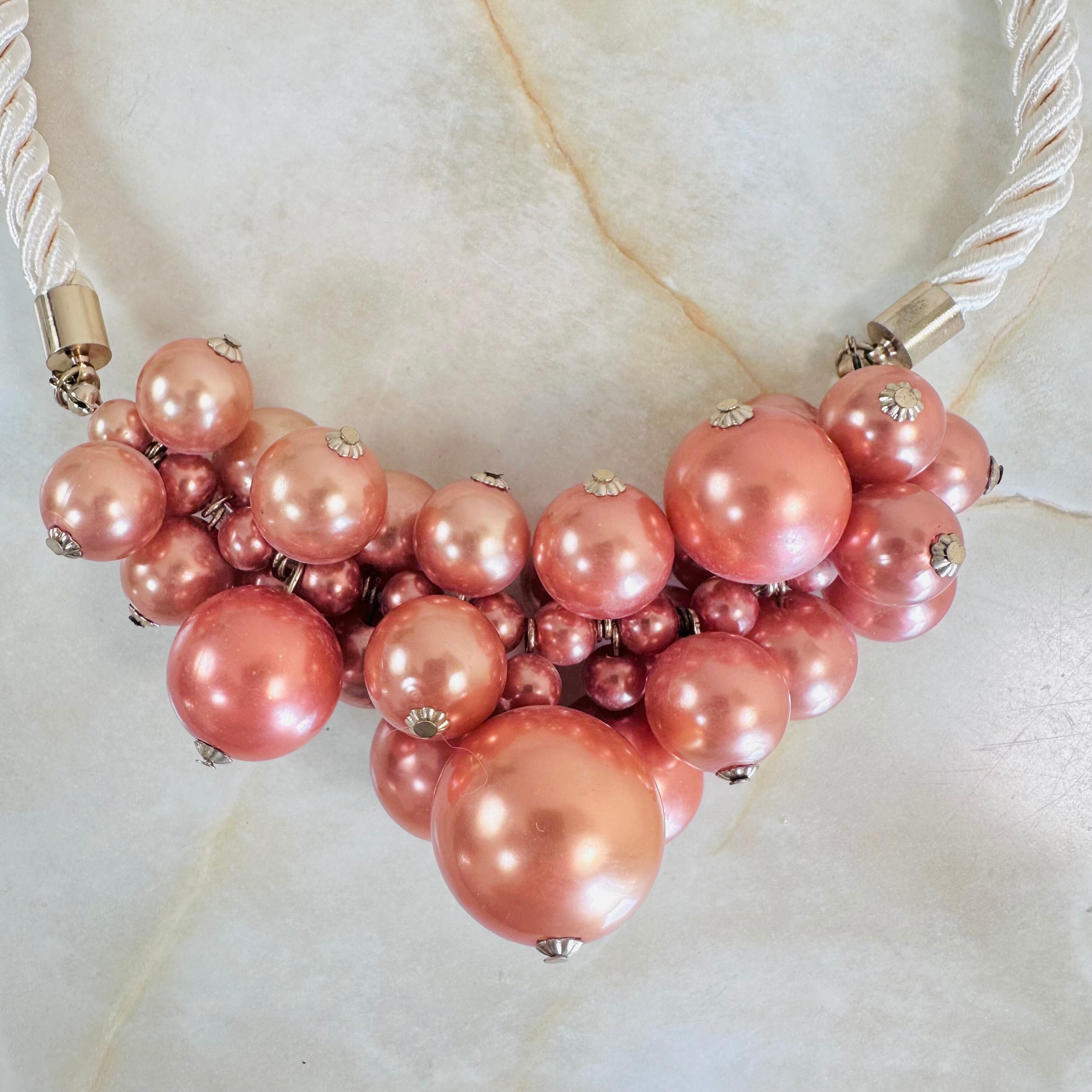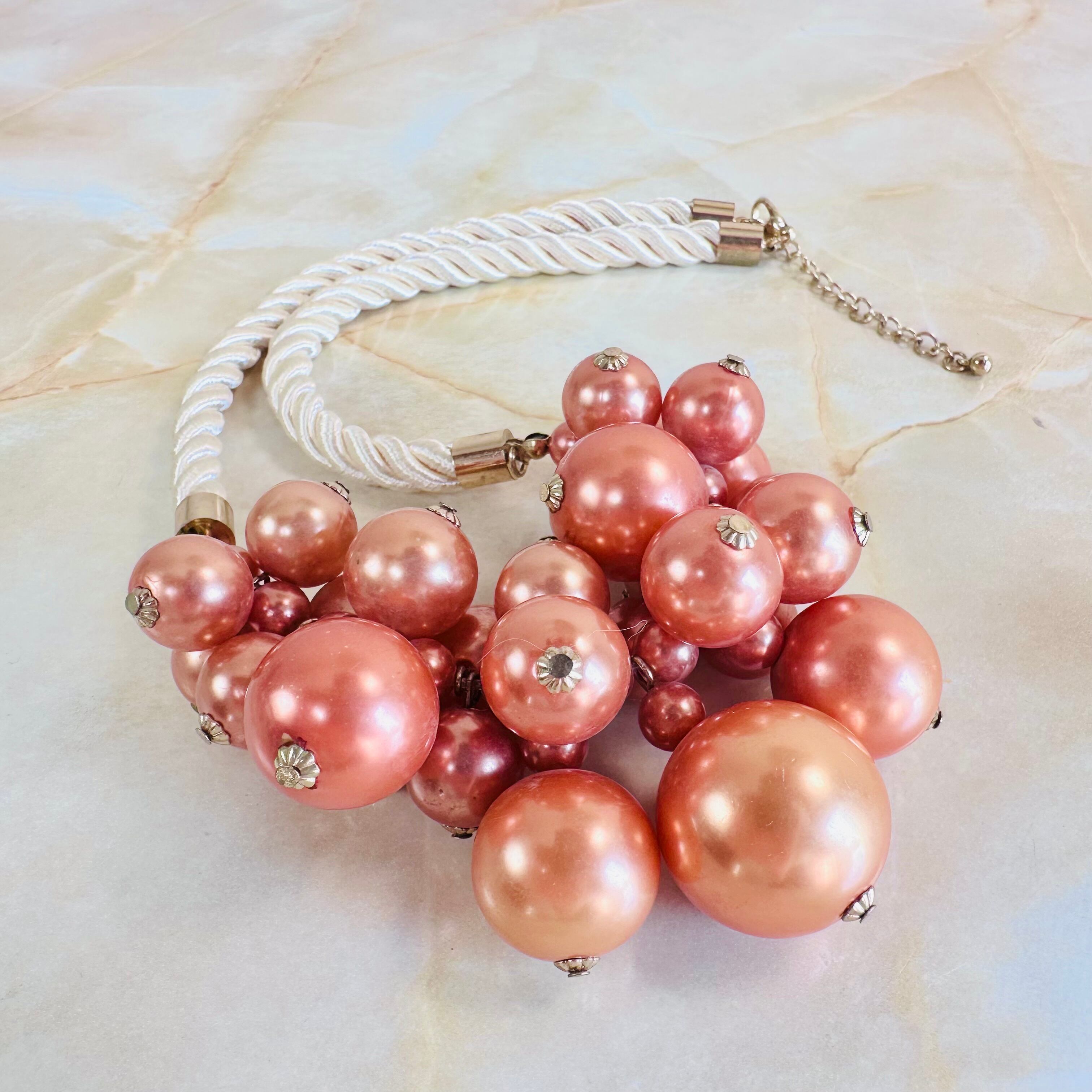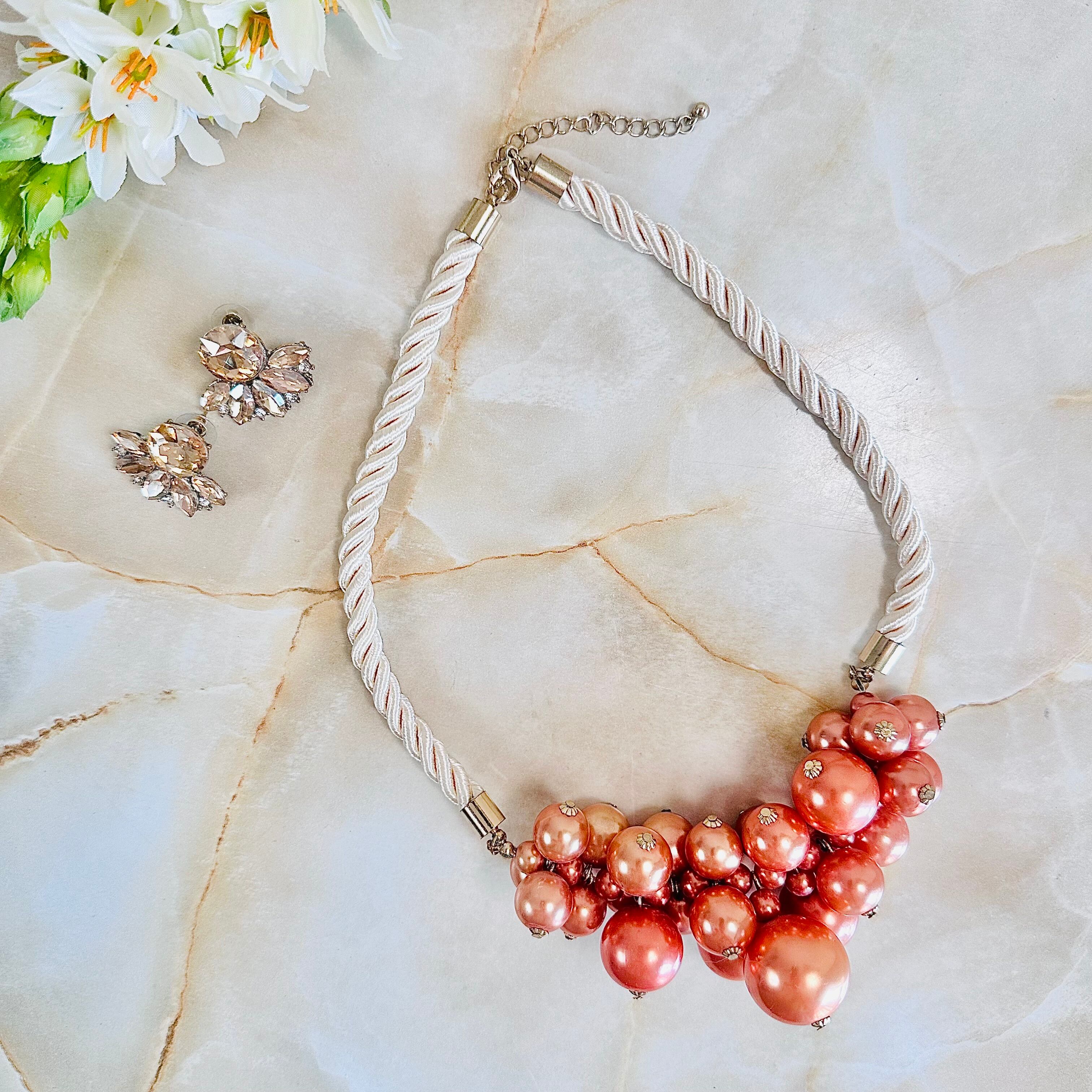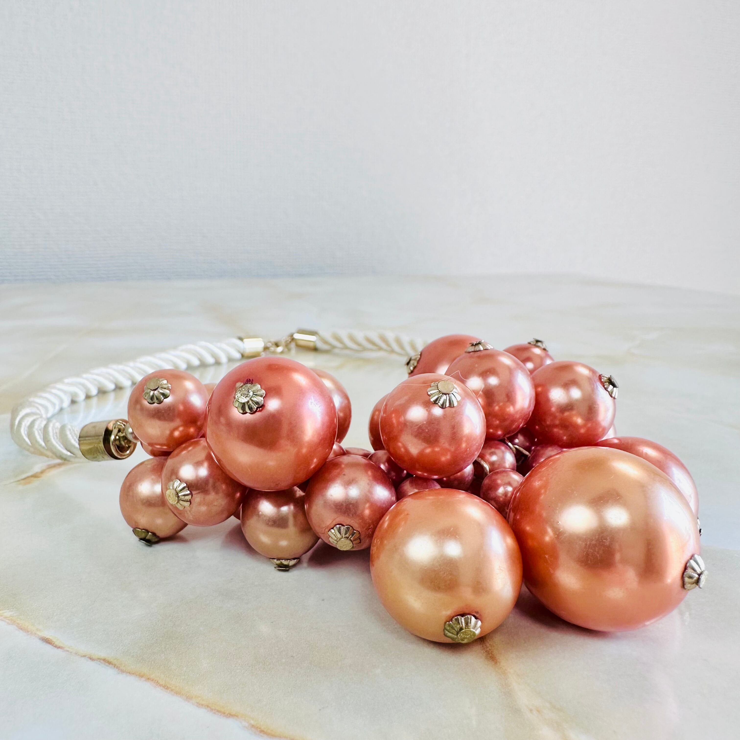 パールオレンジカラー、ベージュ✖️アンティークゴールドカラーのネックレスです。
