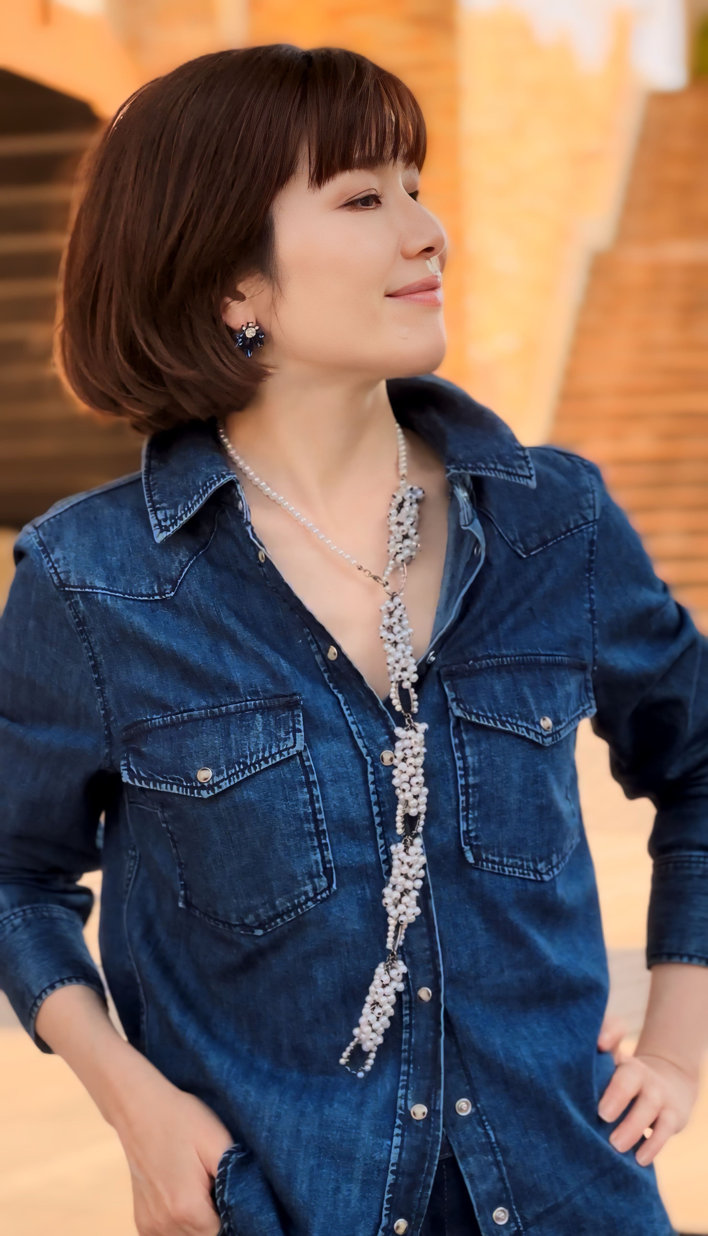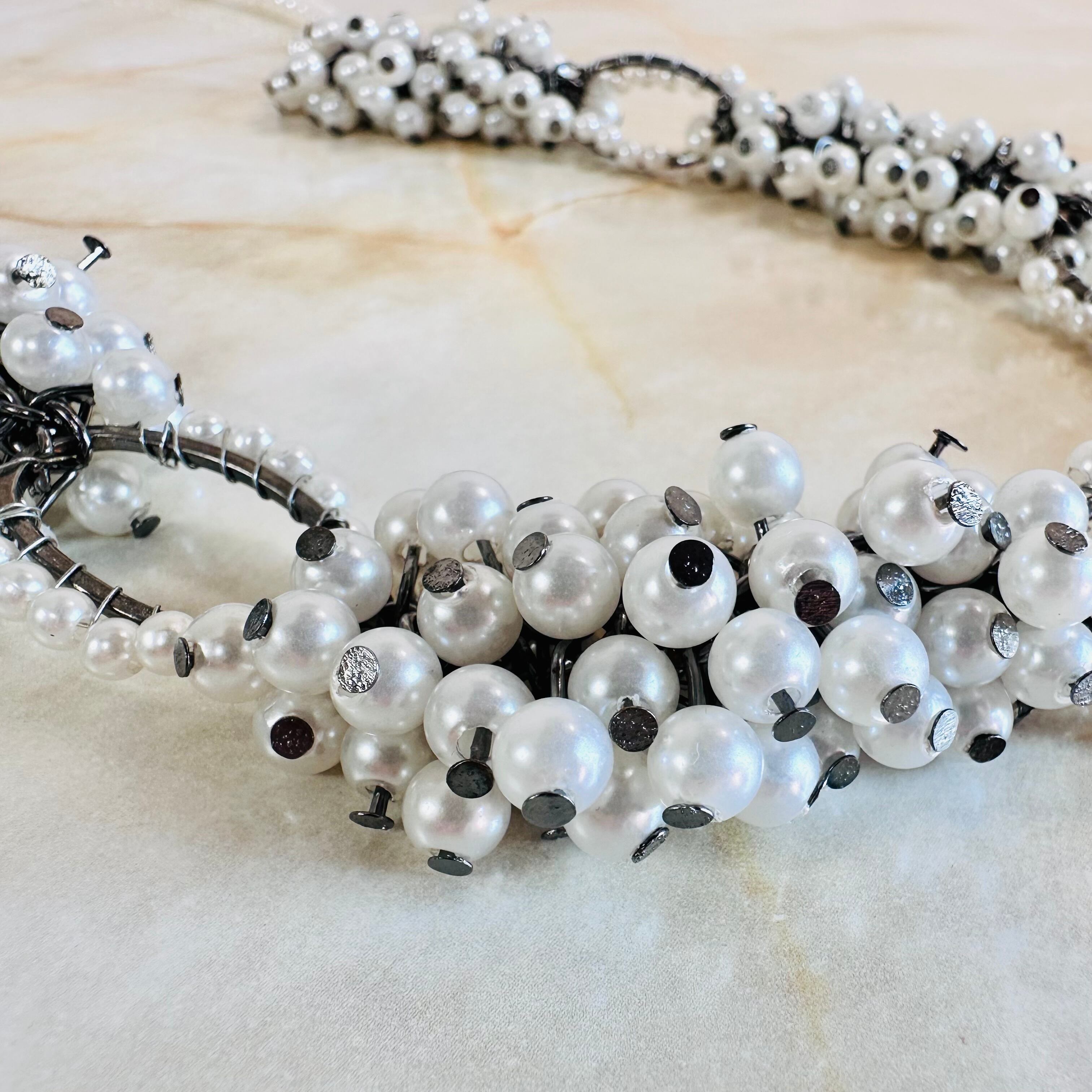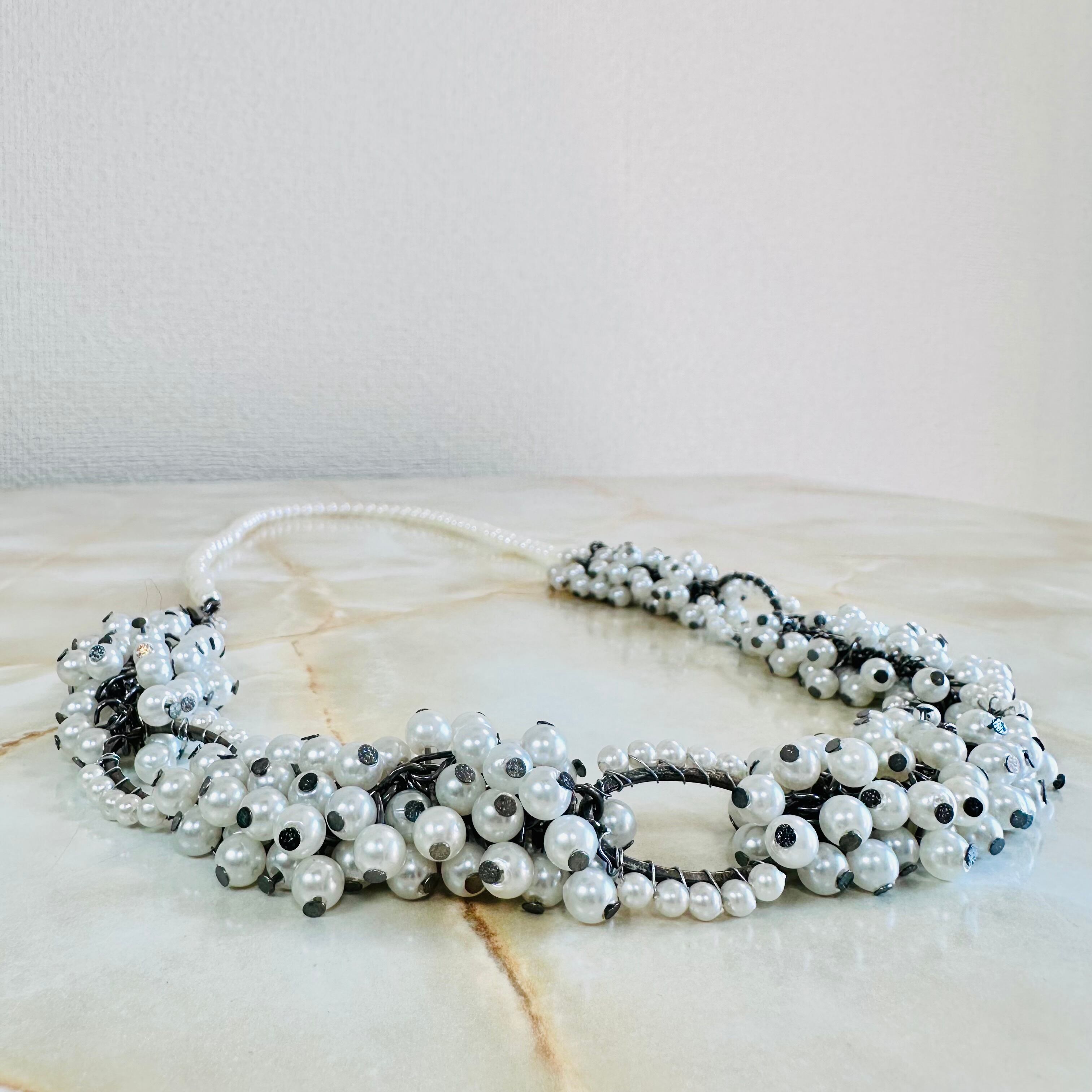 ややグレイッシュな小粒パールをふんだんに取り付けたデザインです。