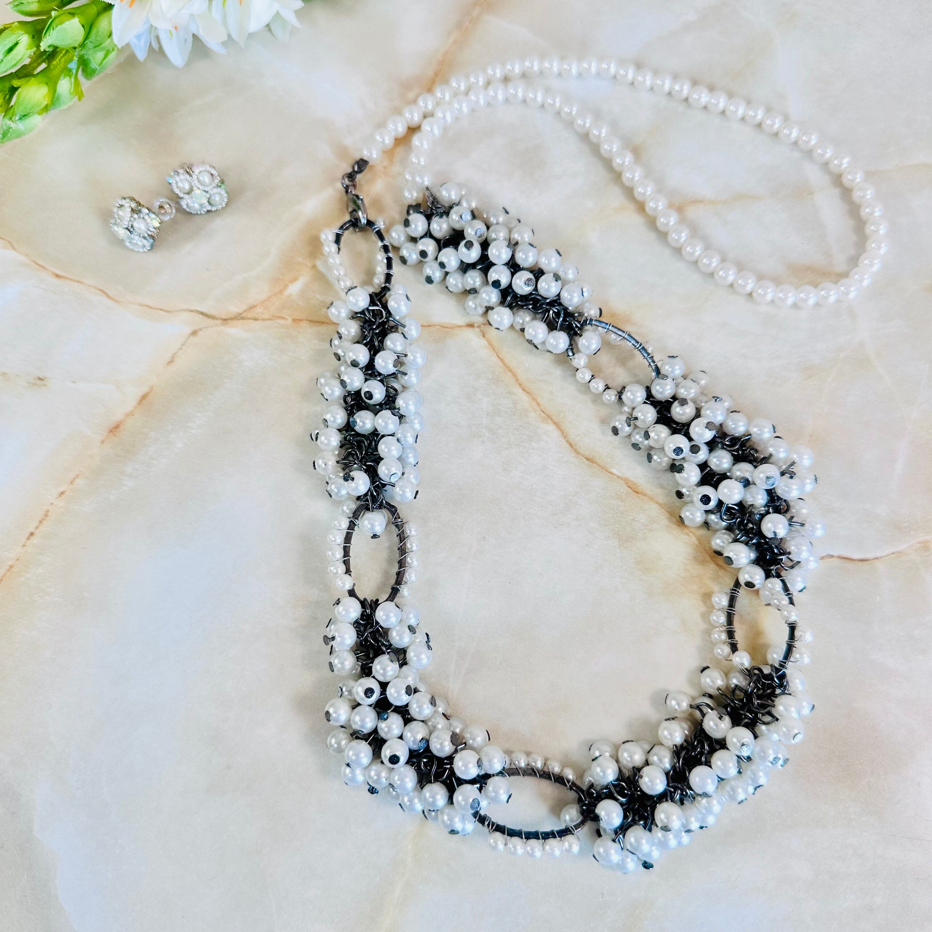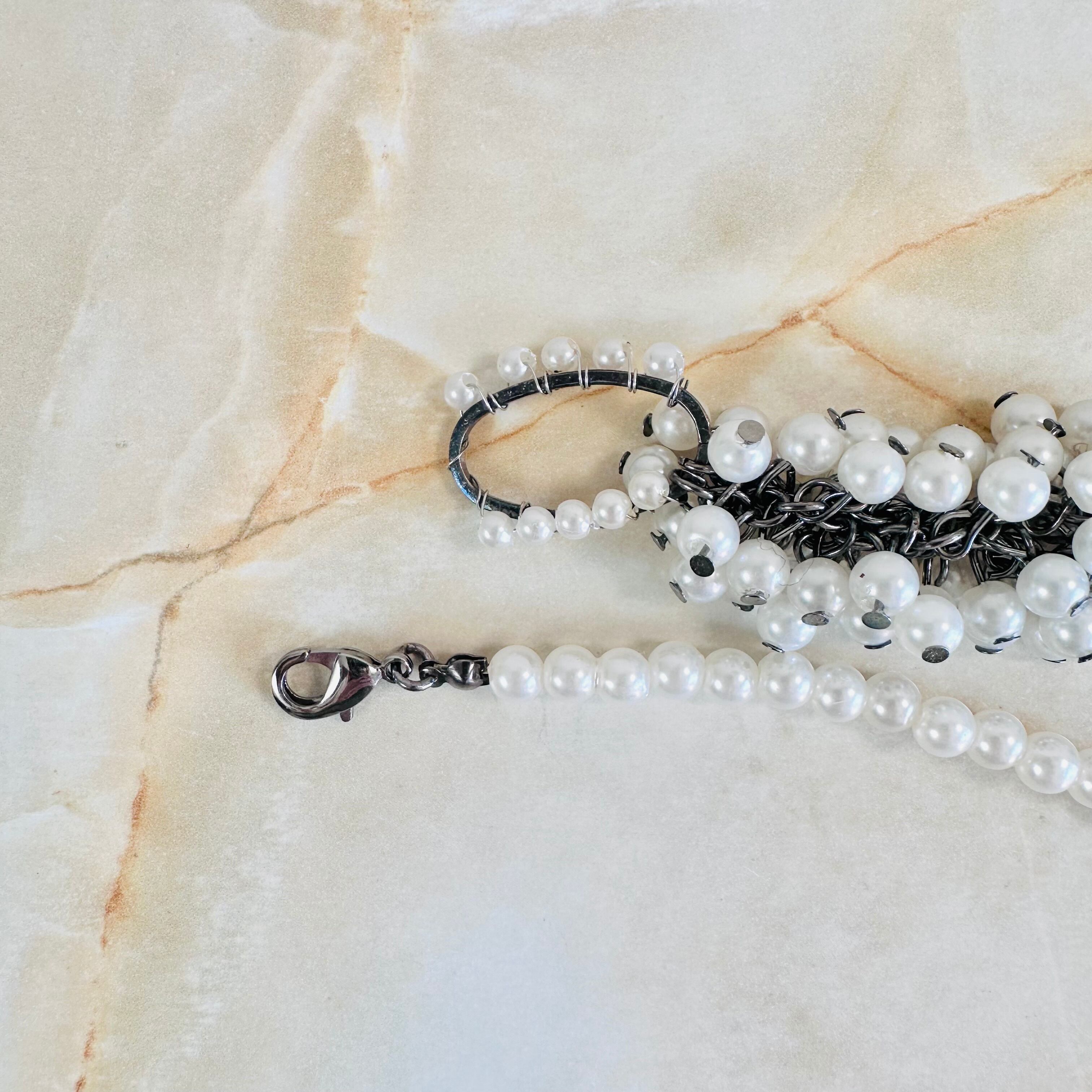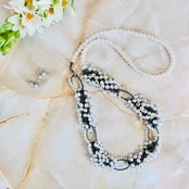 パール✖️ブラックシルバーカラーのロングネックレスです。