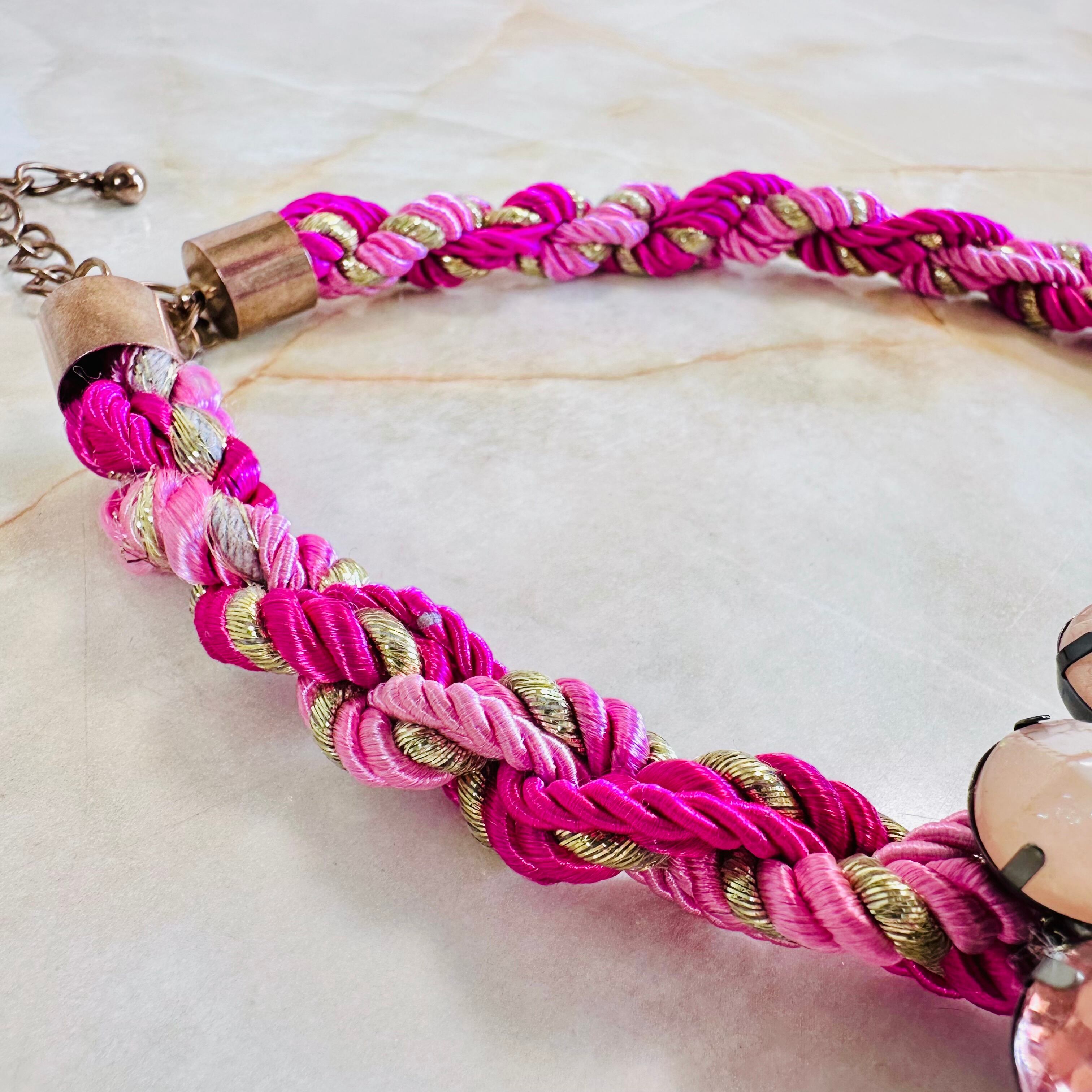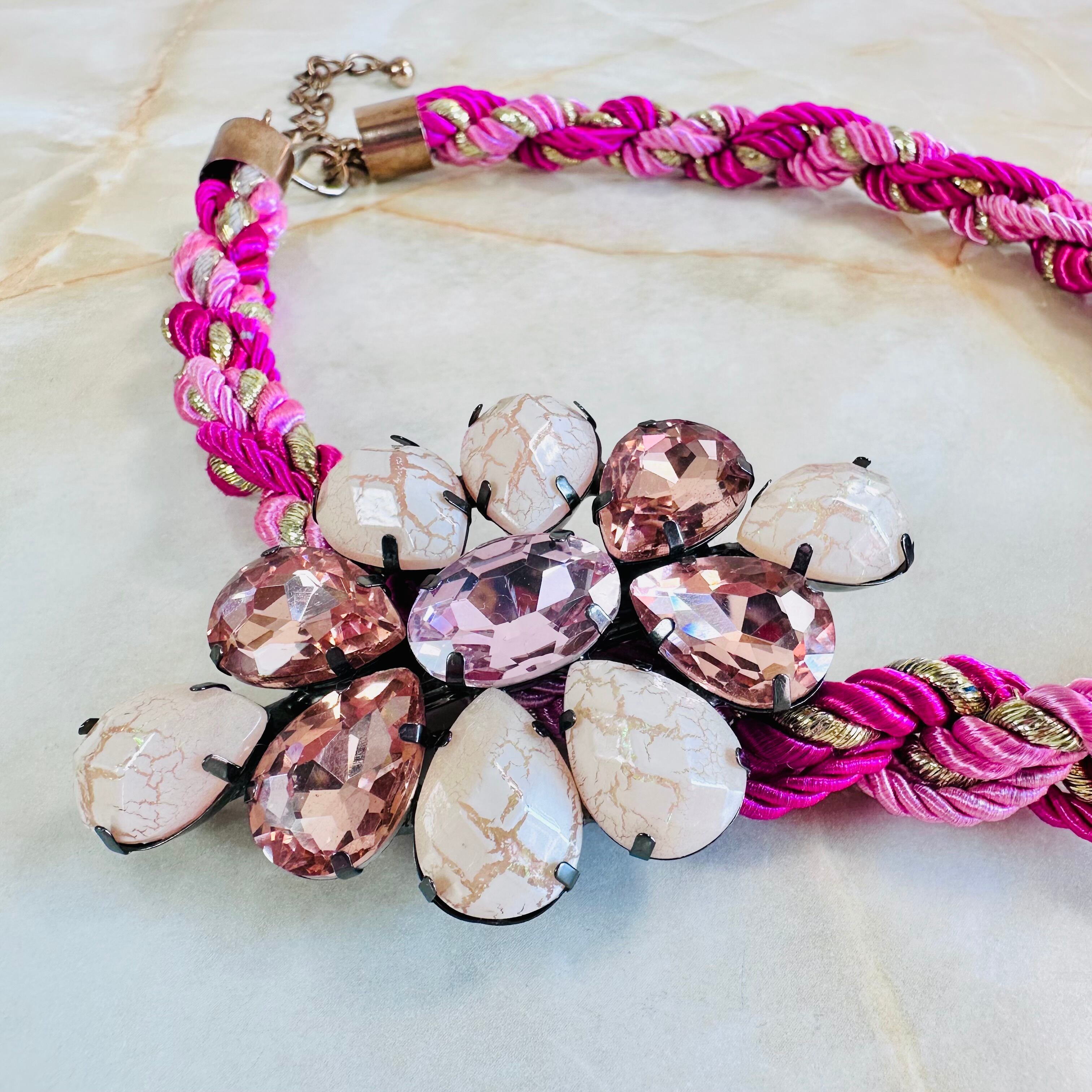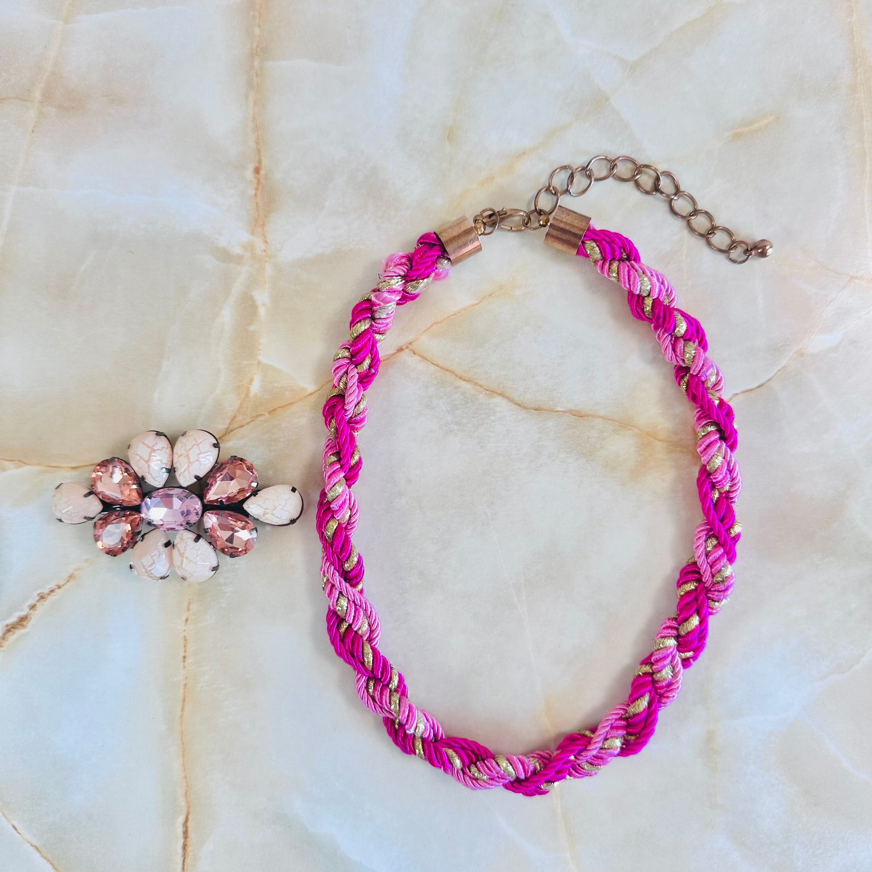 ピンク系➕ベージュ系バレッタ✖️アンティークゴールドカラーのネックレスです。