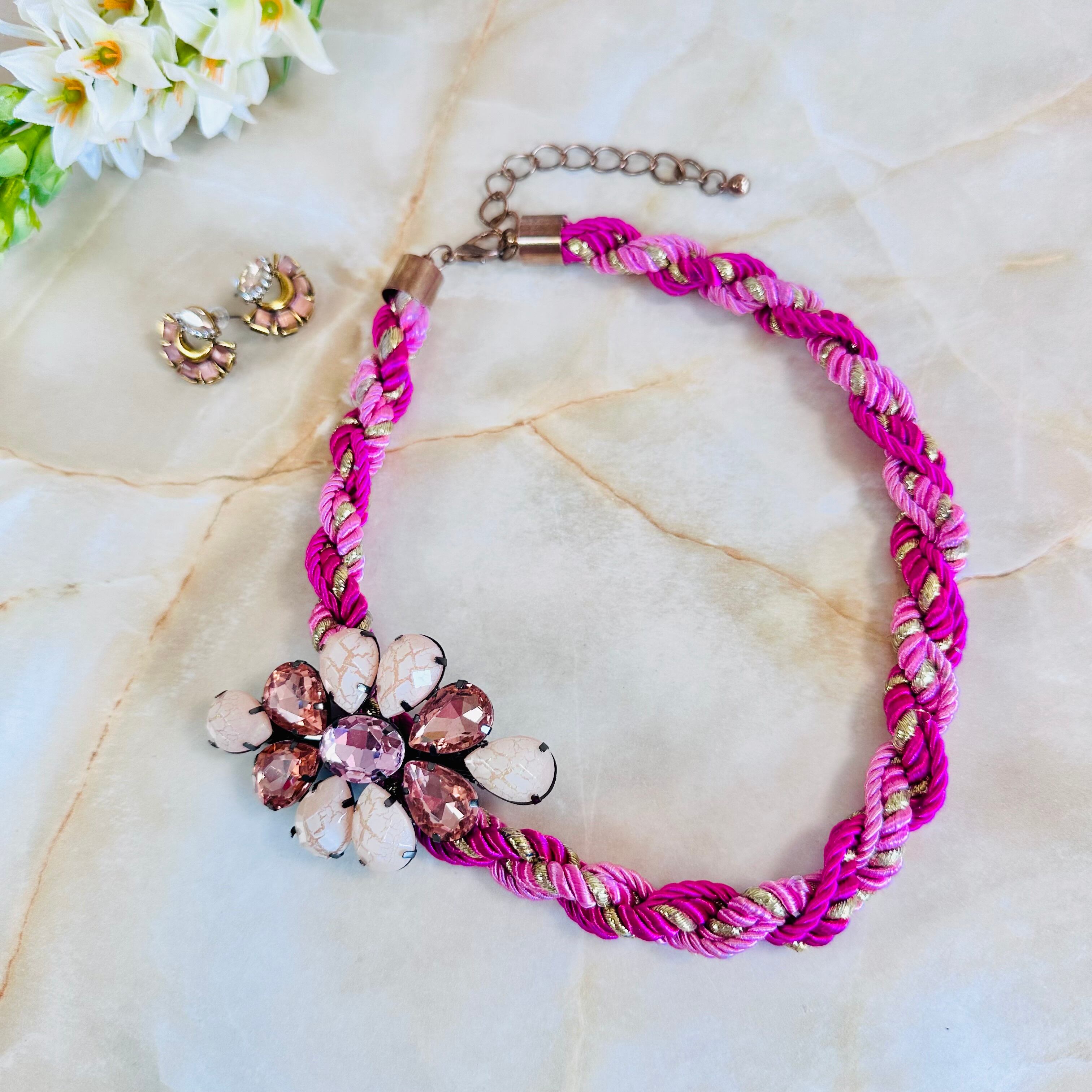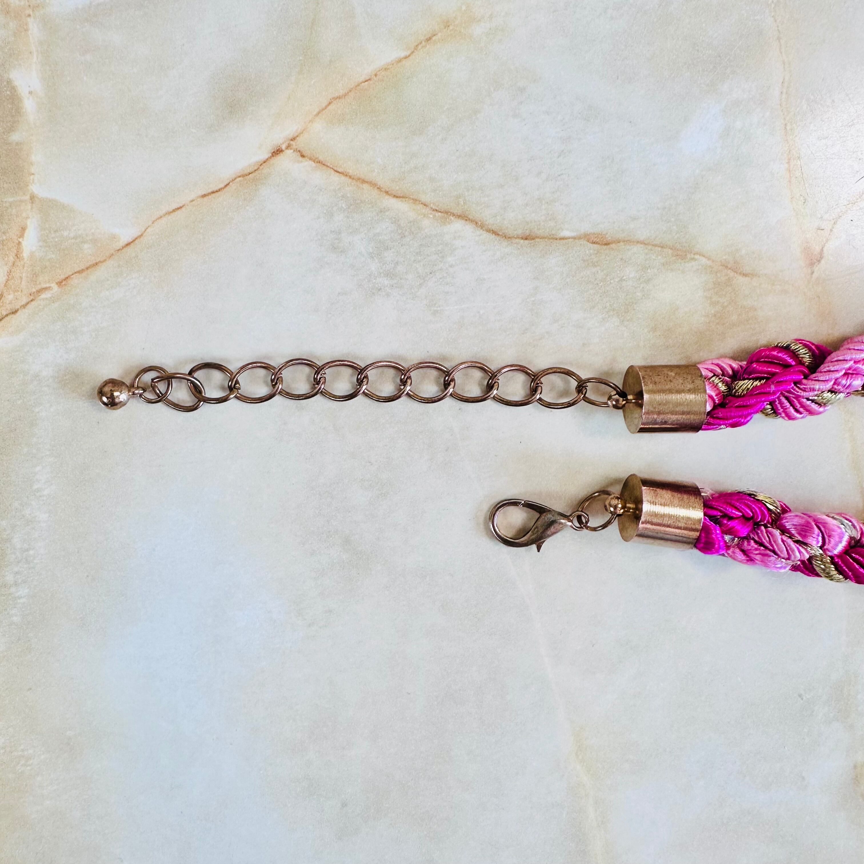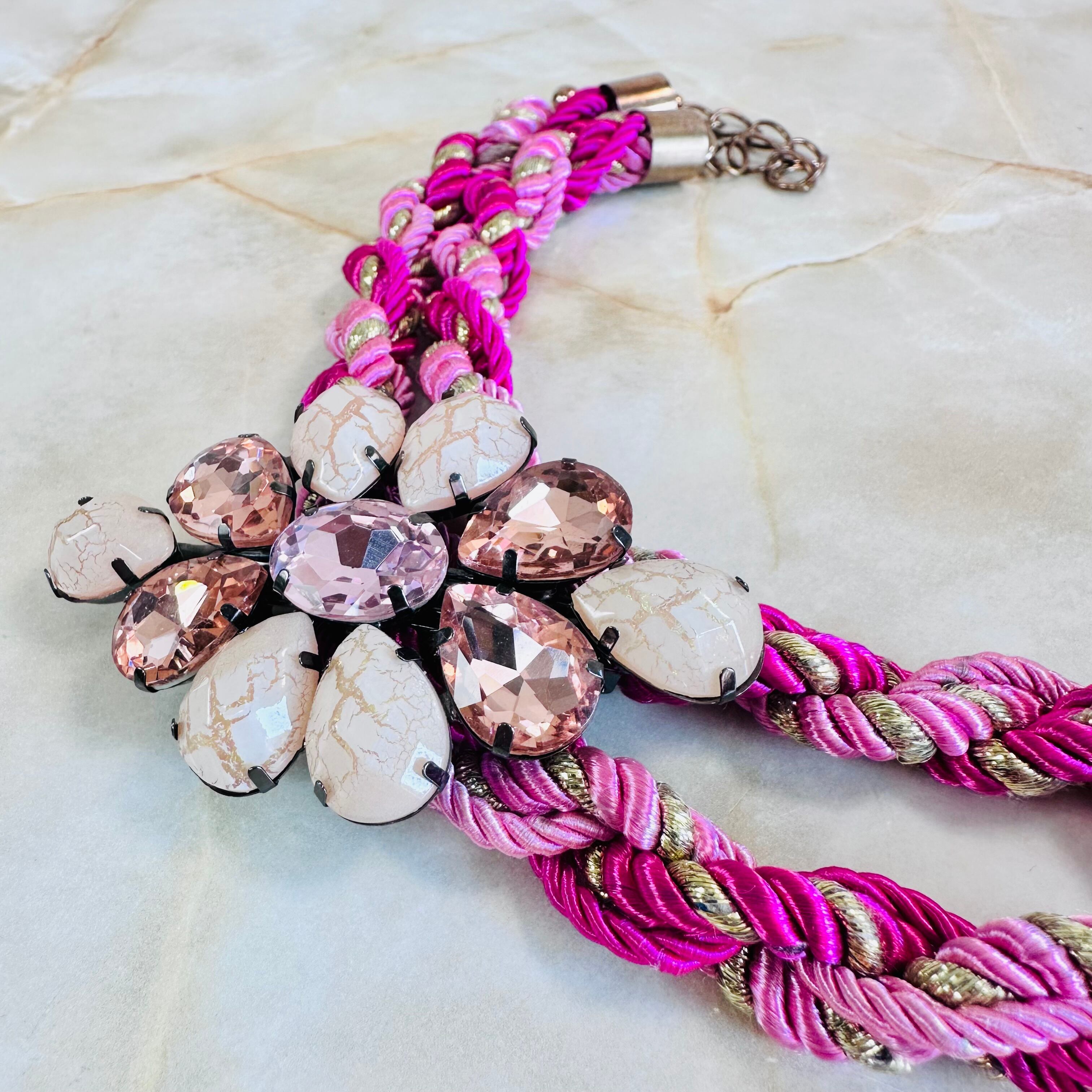 ピンク系➕ベージュ系バレッタ✖️アンティークゴールドカラーのネックレスです。