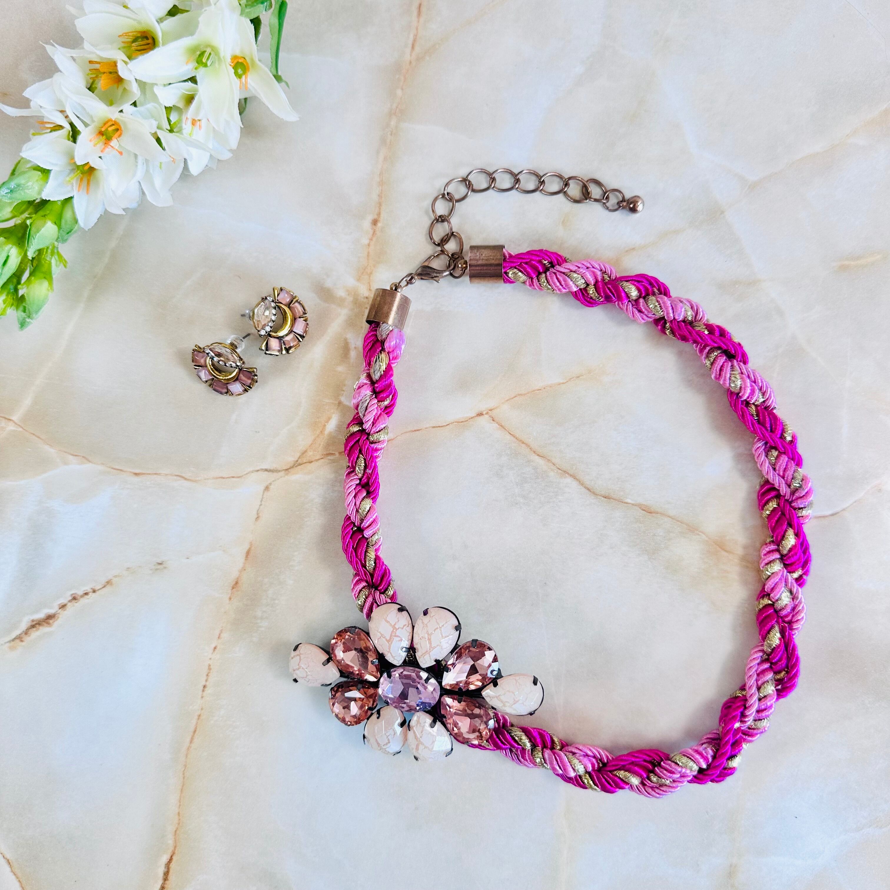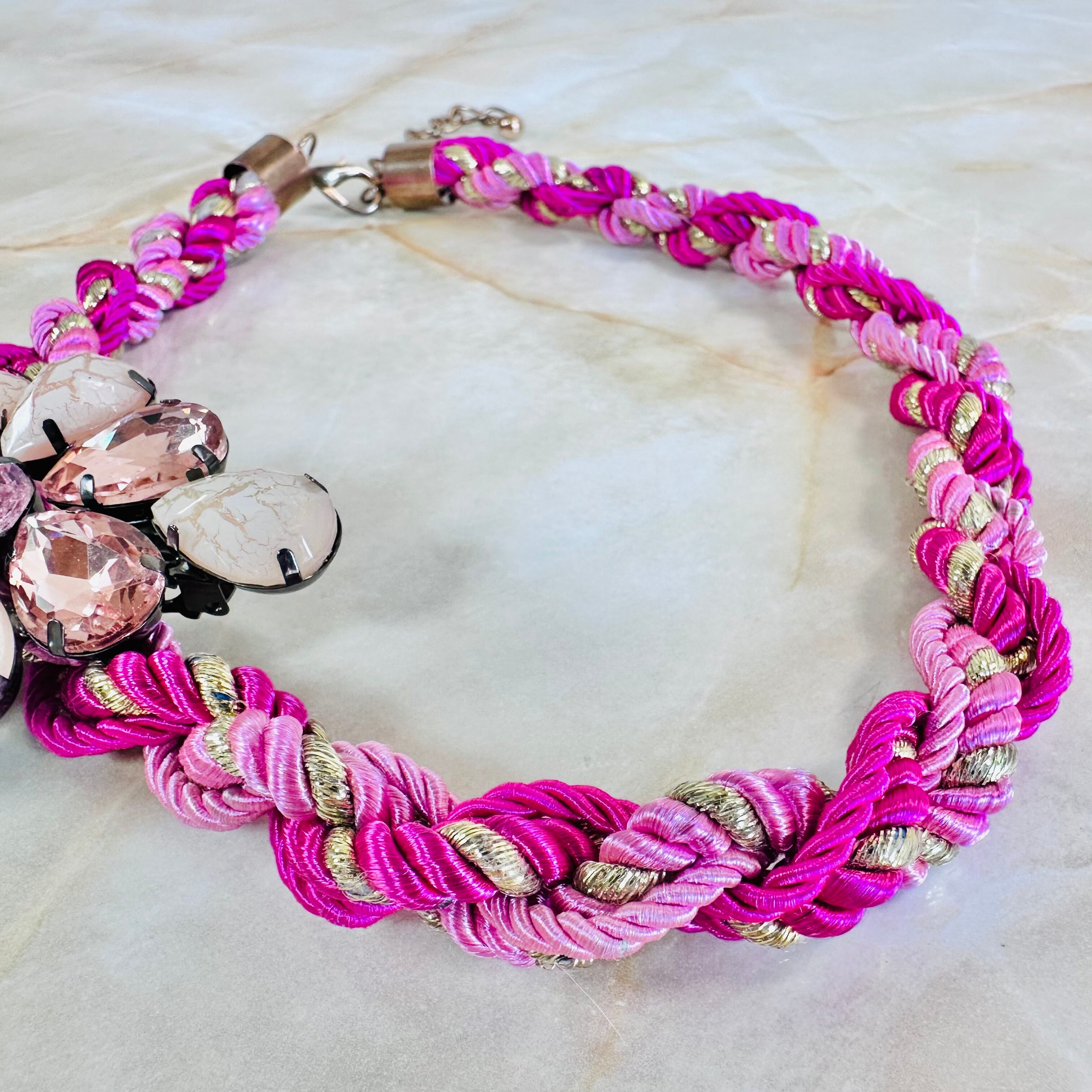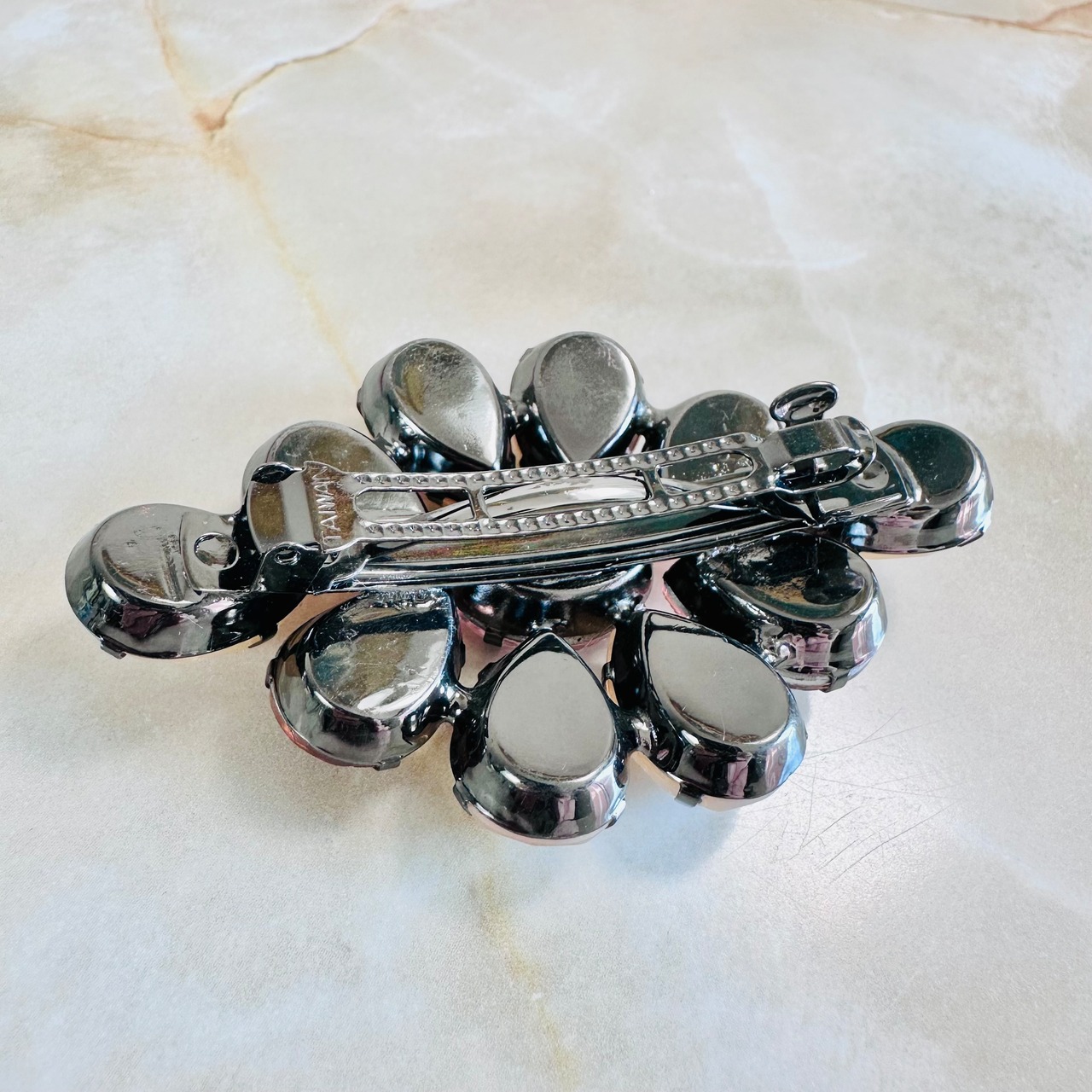 太さの異なる4本のコードを編み上げ、華やかなビジューで作られたバレッタをプラスした遊び心あふれるデザインです。