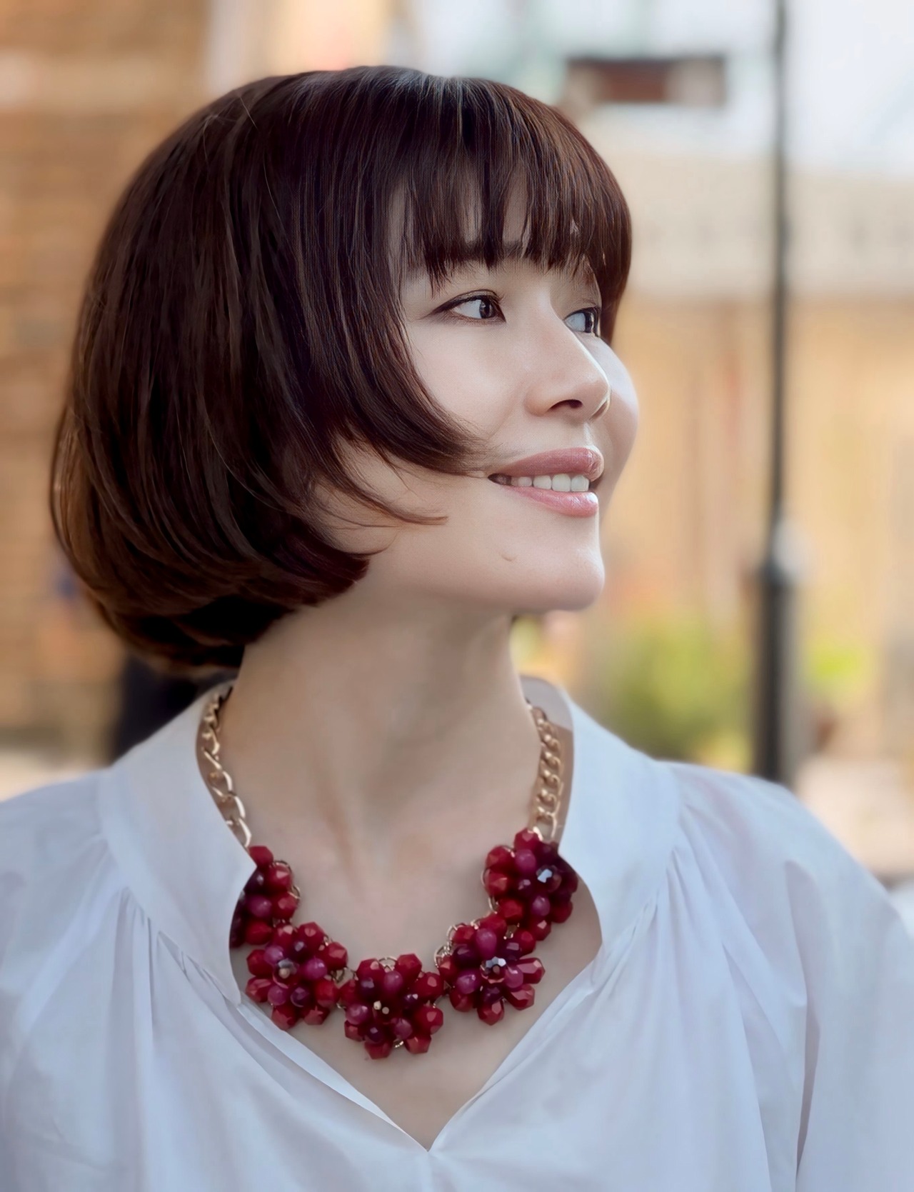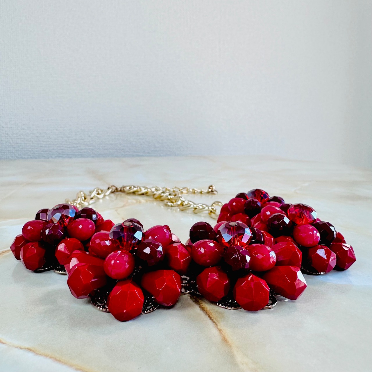 レッド系✖️ゴールドカラーのネックレスです。