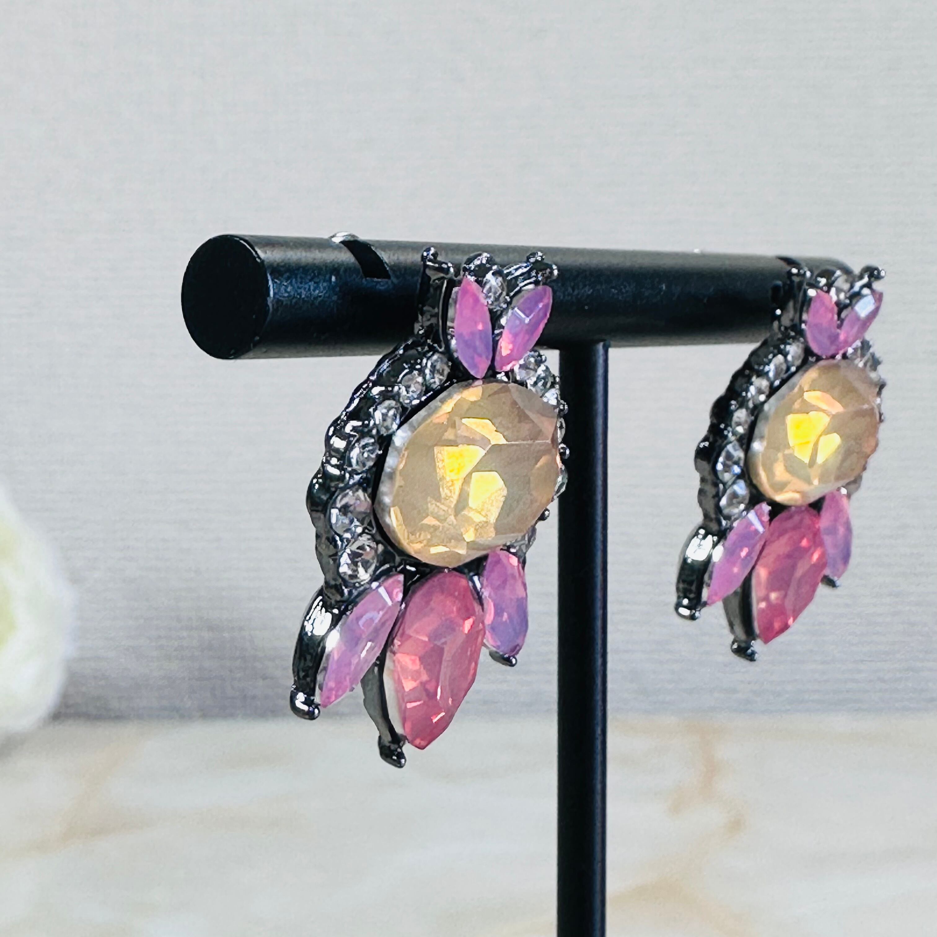 ピンク、イエロー✖️ブラックシルバーカラーのピアスです。