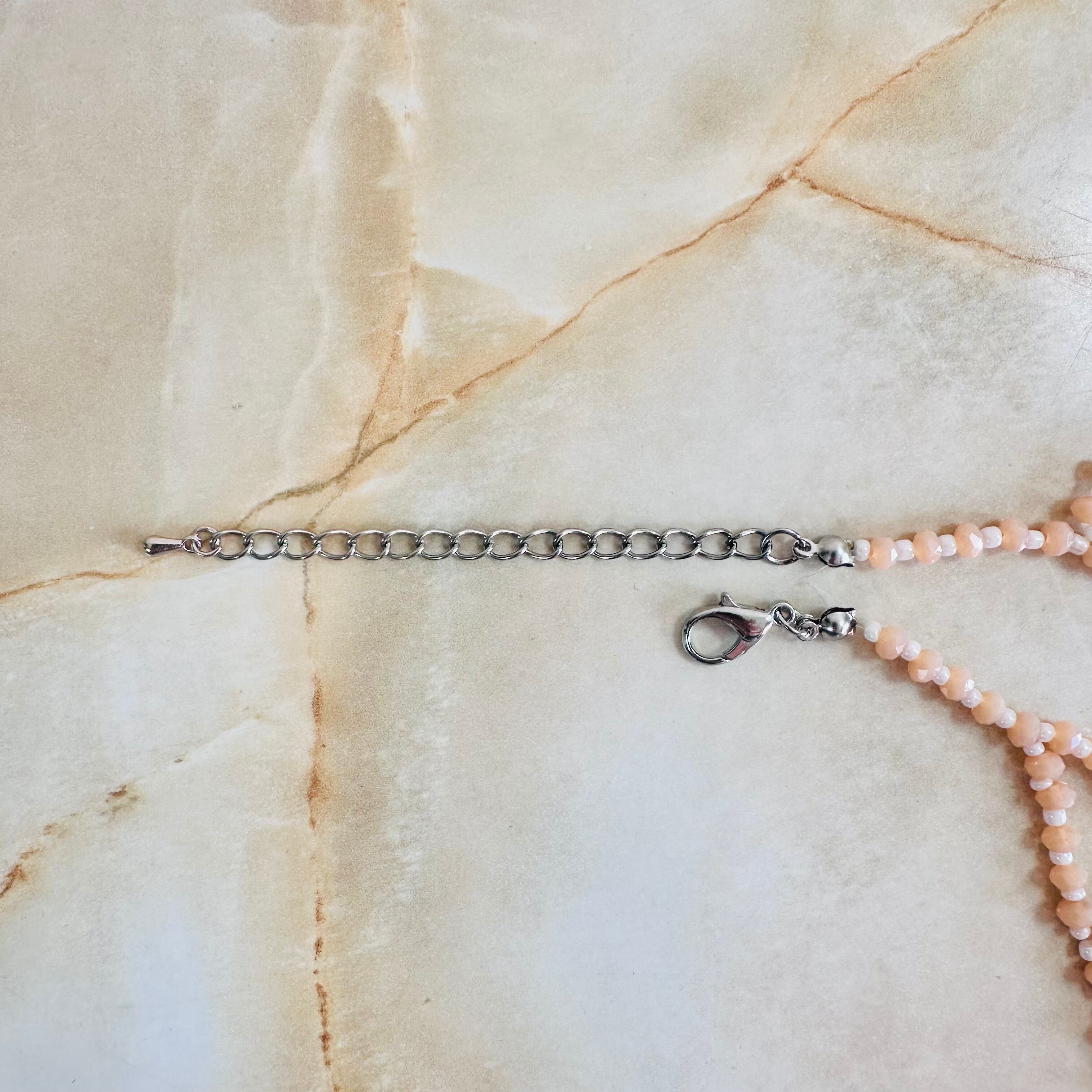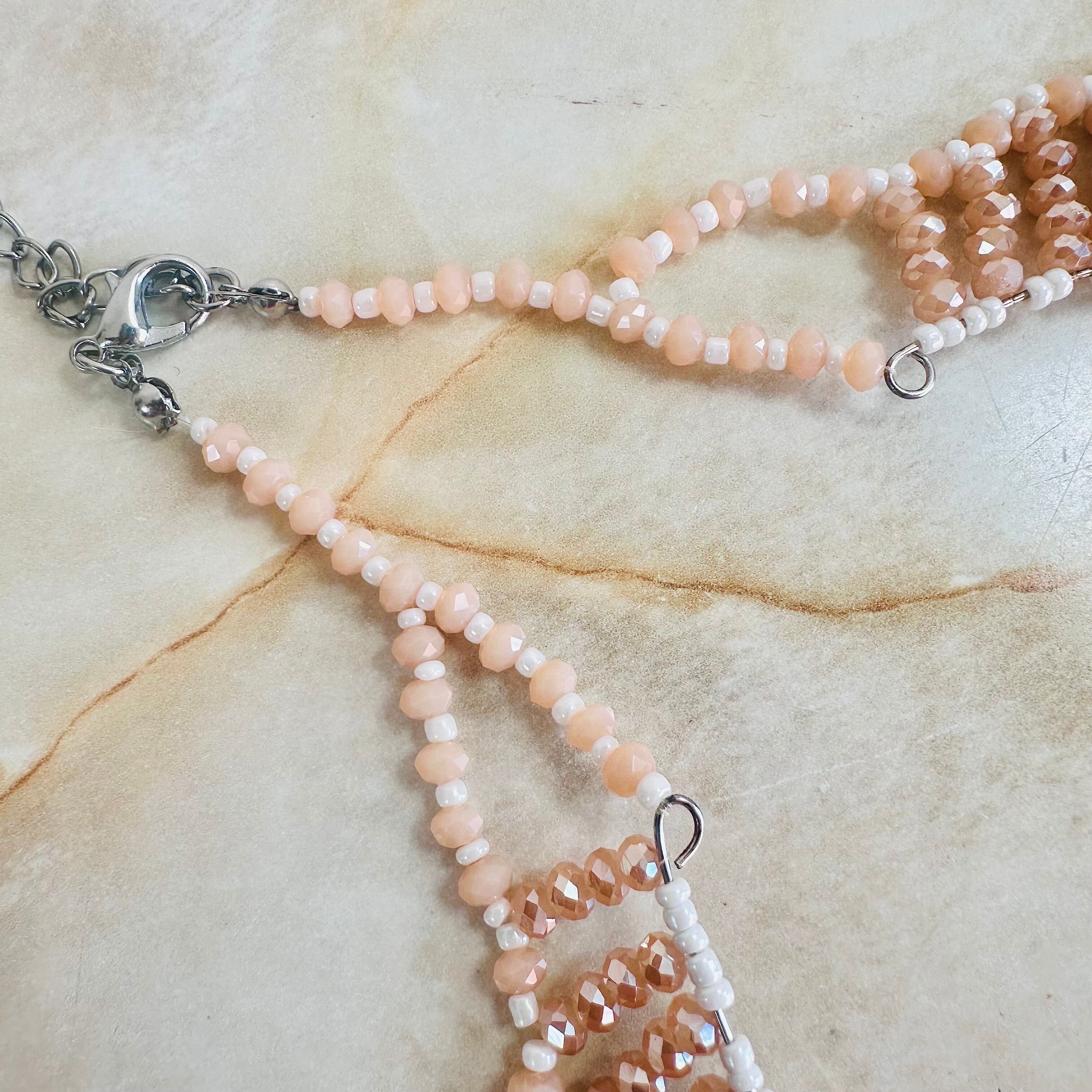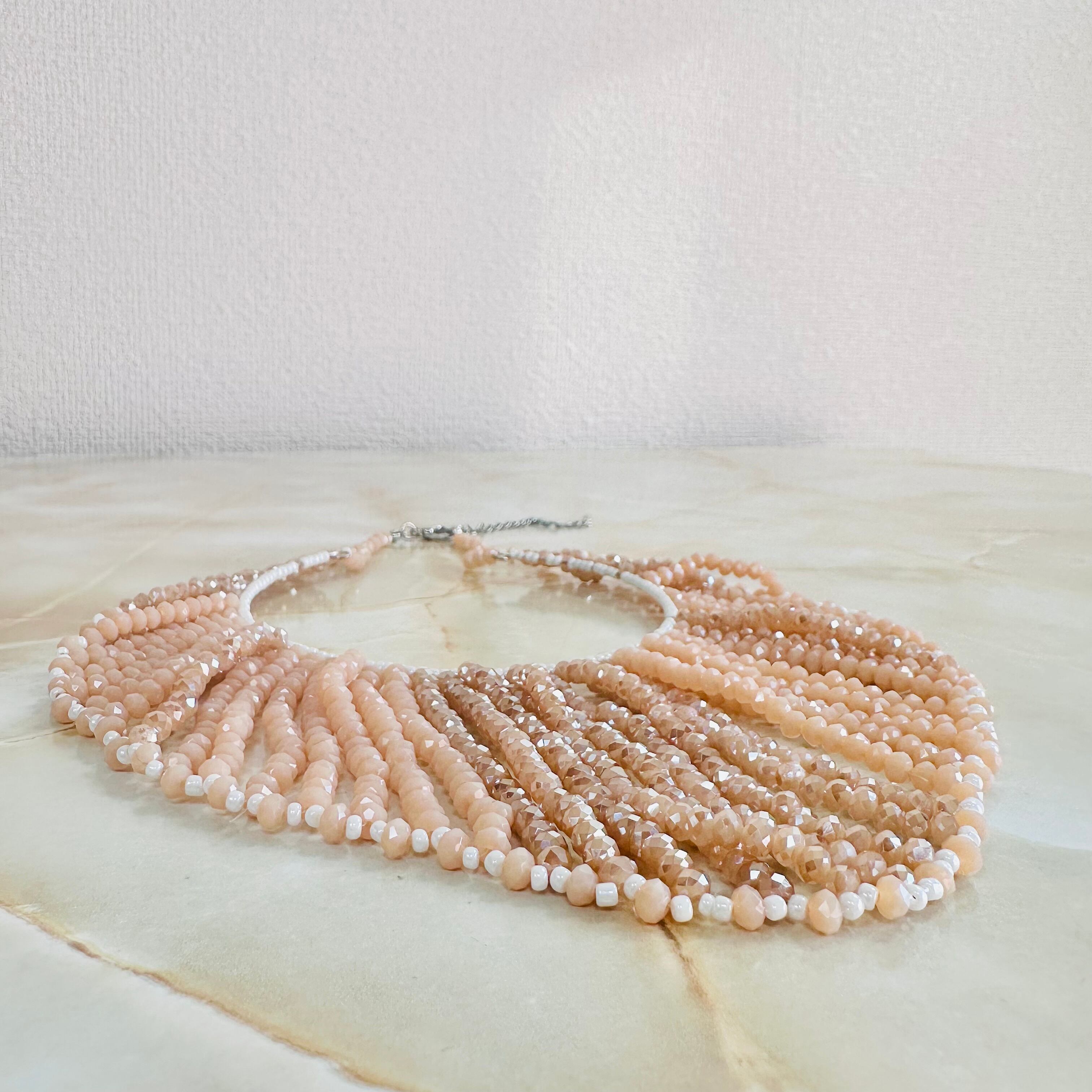 ピンクベージュ✖️シルバーカラーのネックレスです。