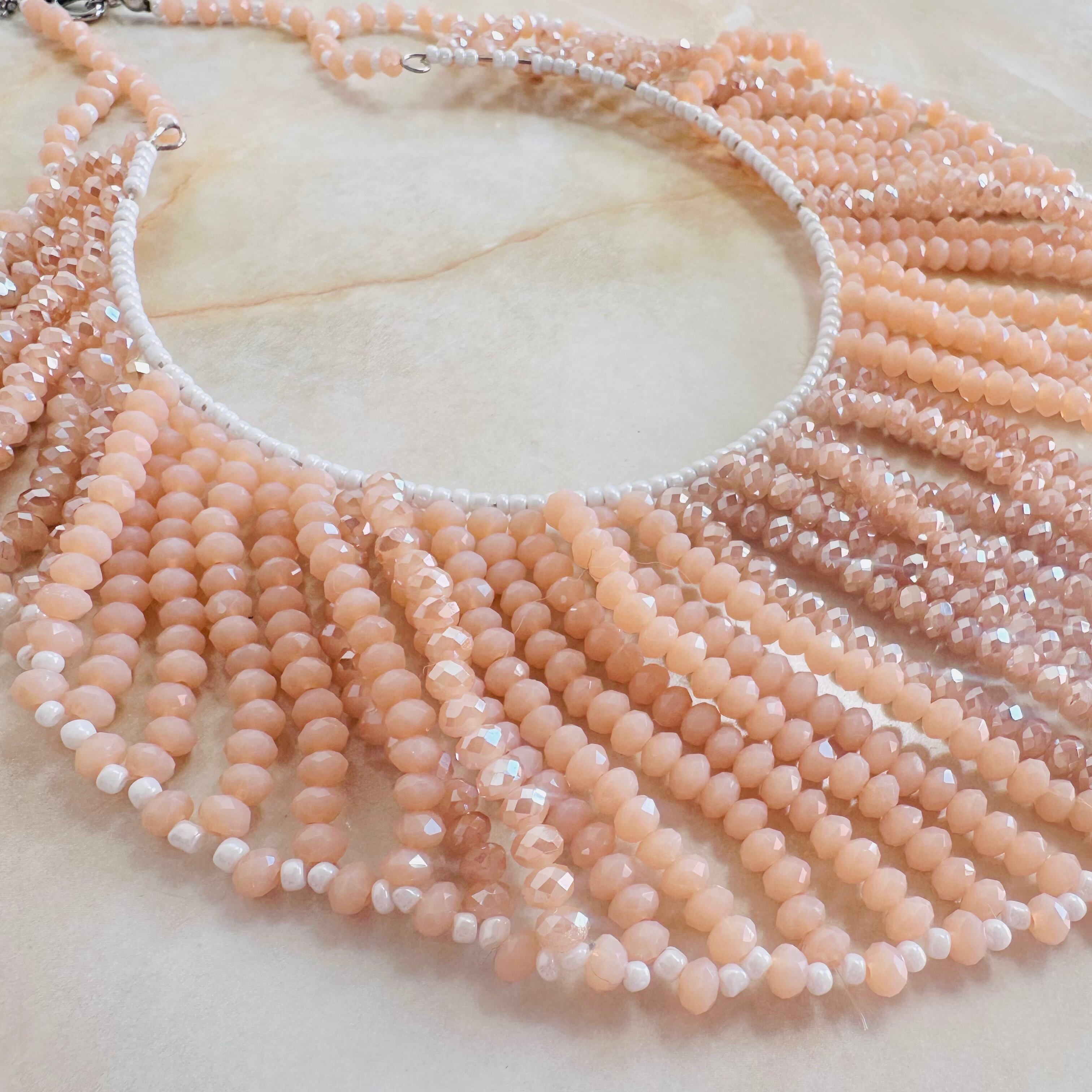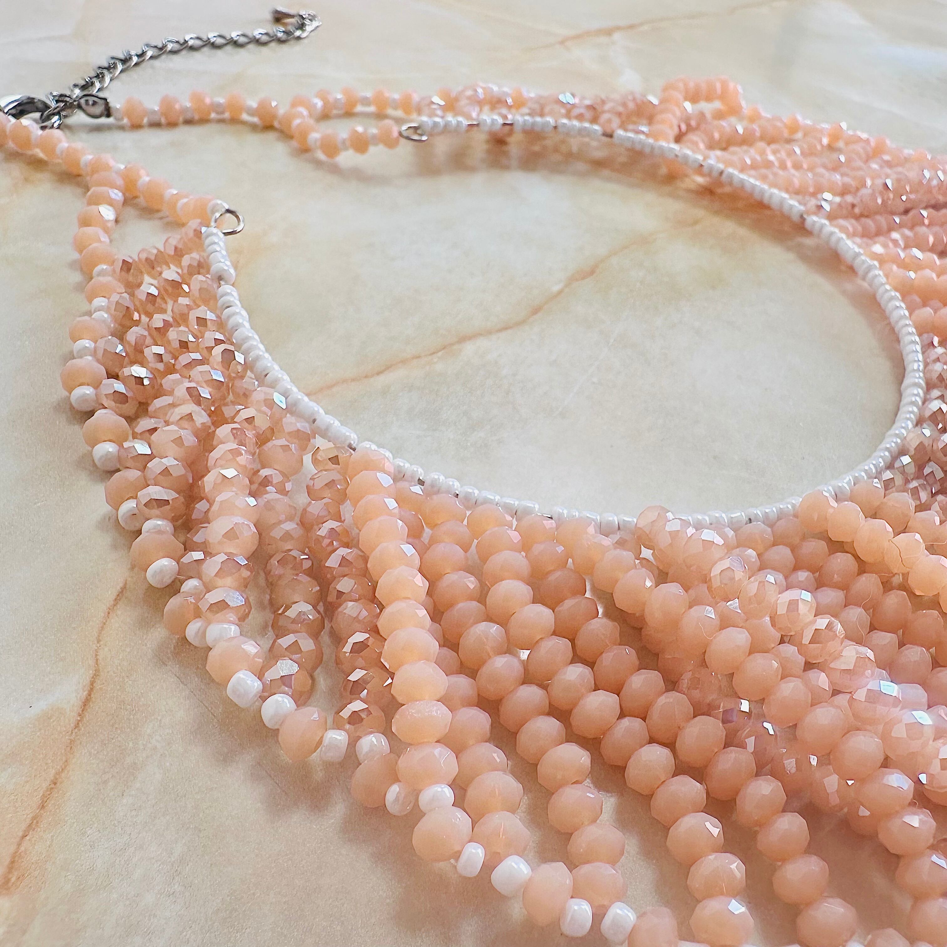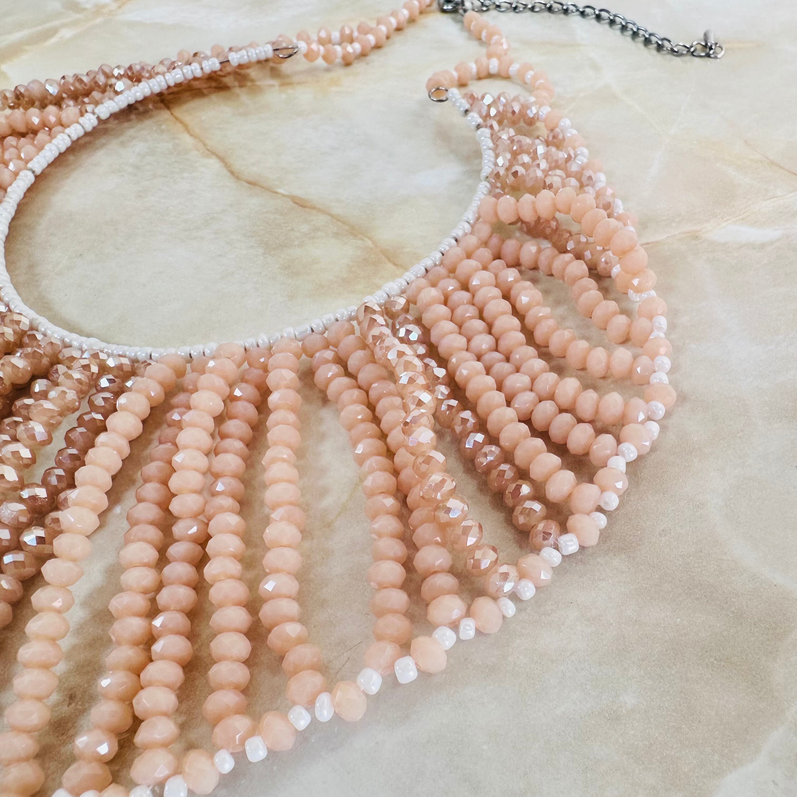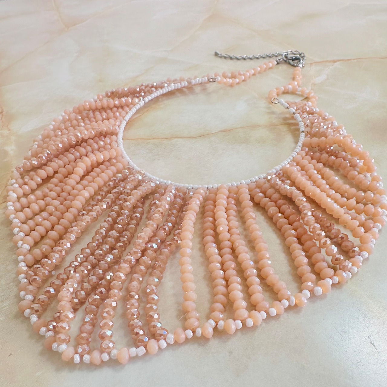 ピンクベージュ✖️シルバーカラーのネックレスです。