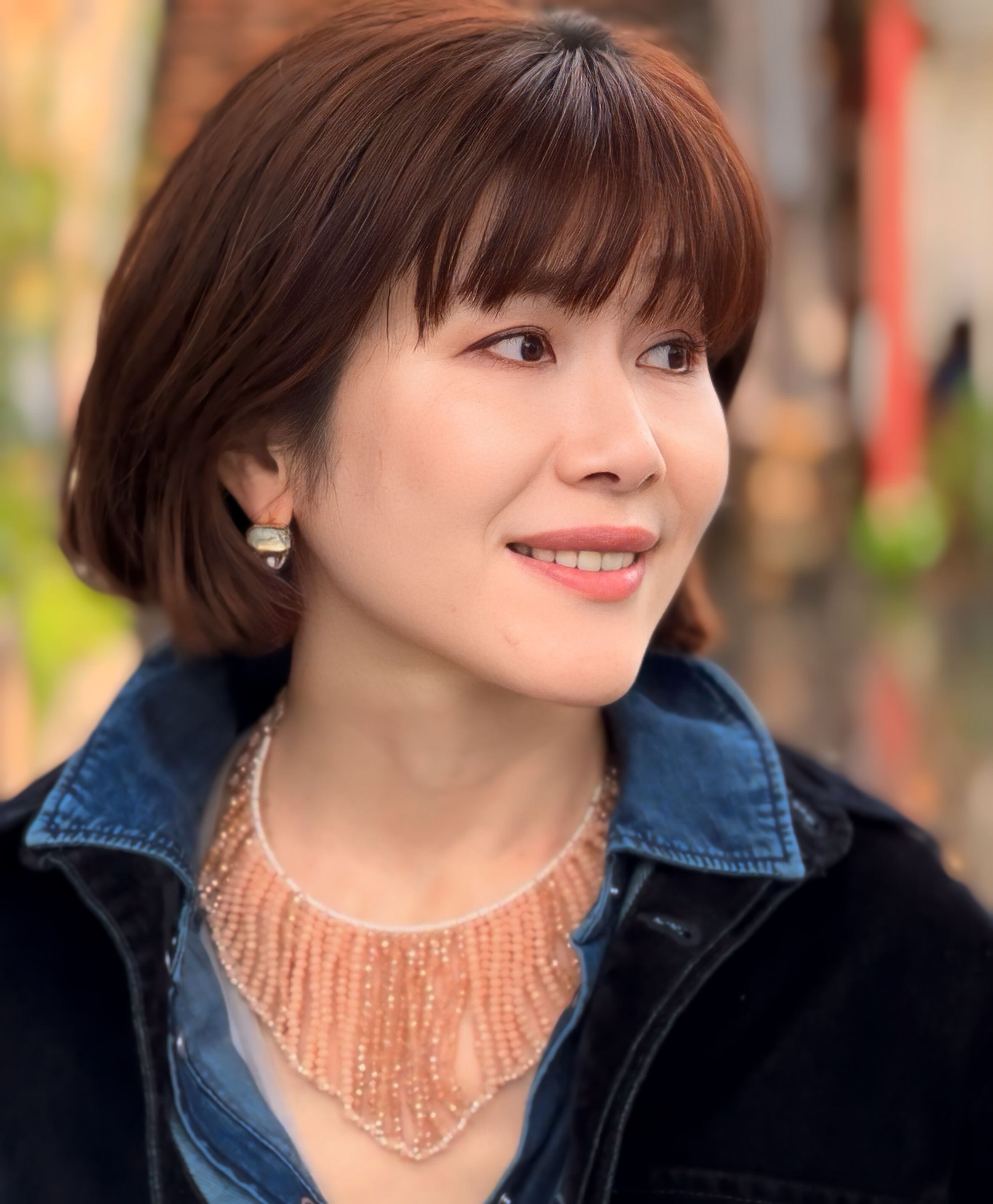 インパクト大で存在感のあるデザインながらも、とても上品なカラーがお顔まわりを華やかに彩ってくれます。