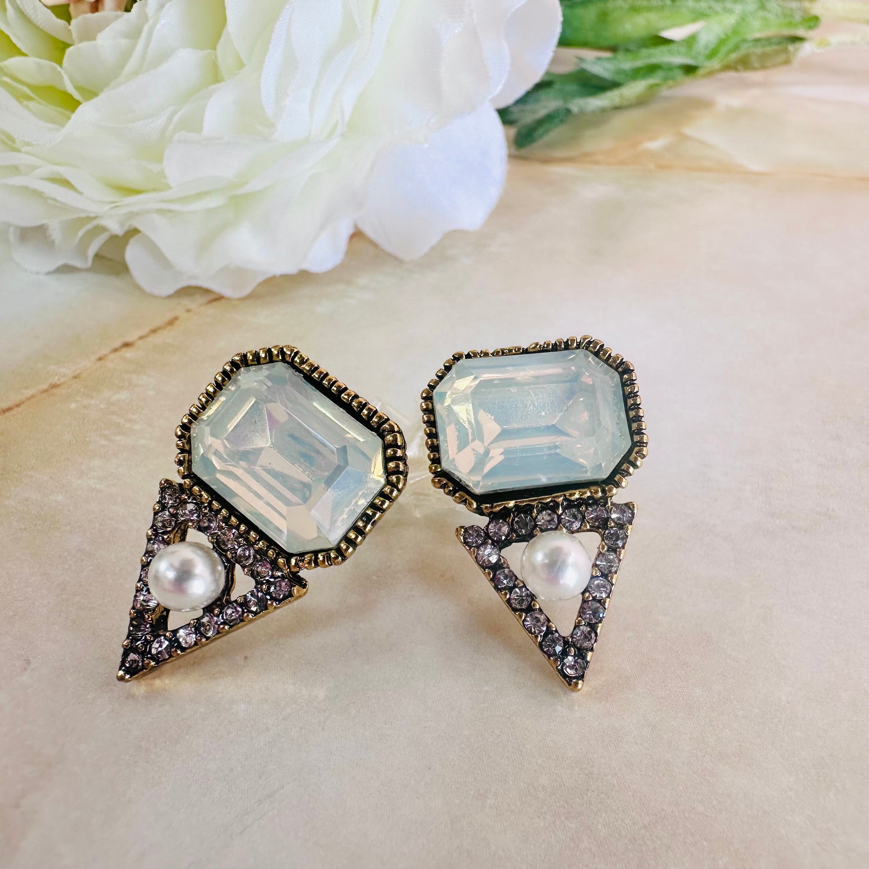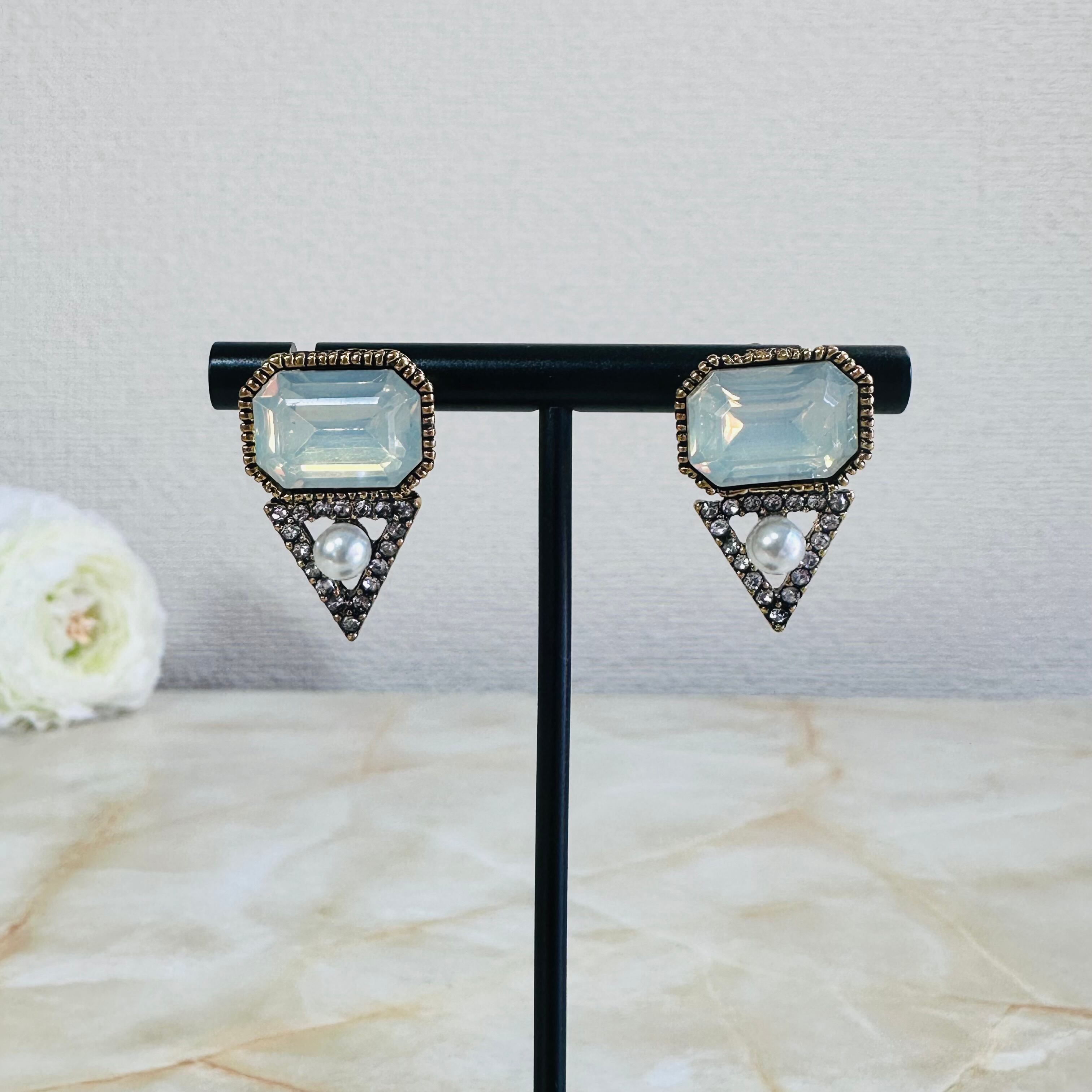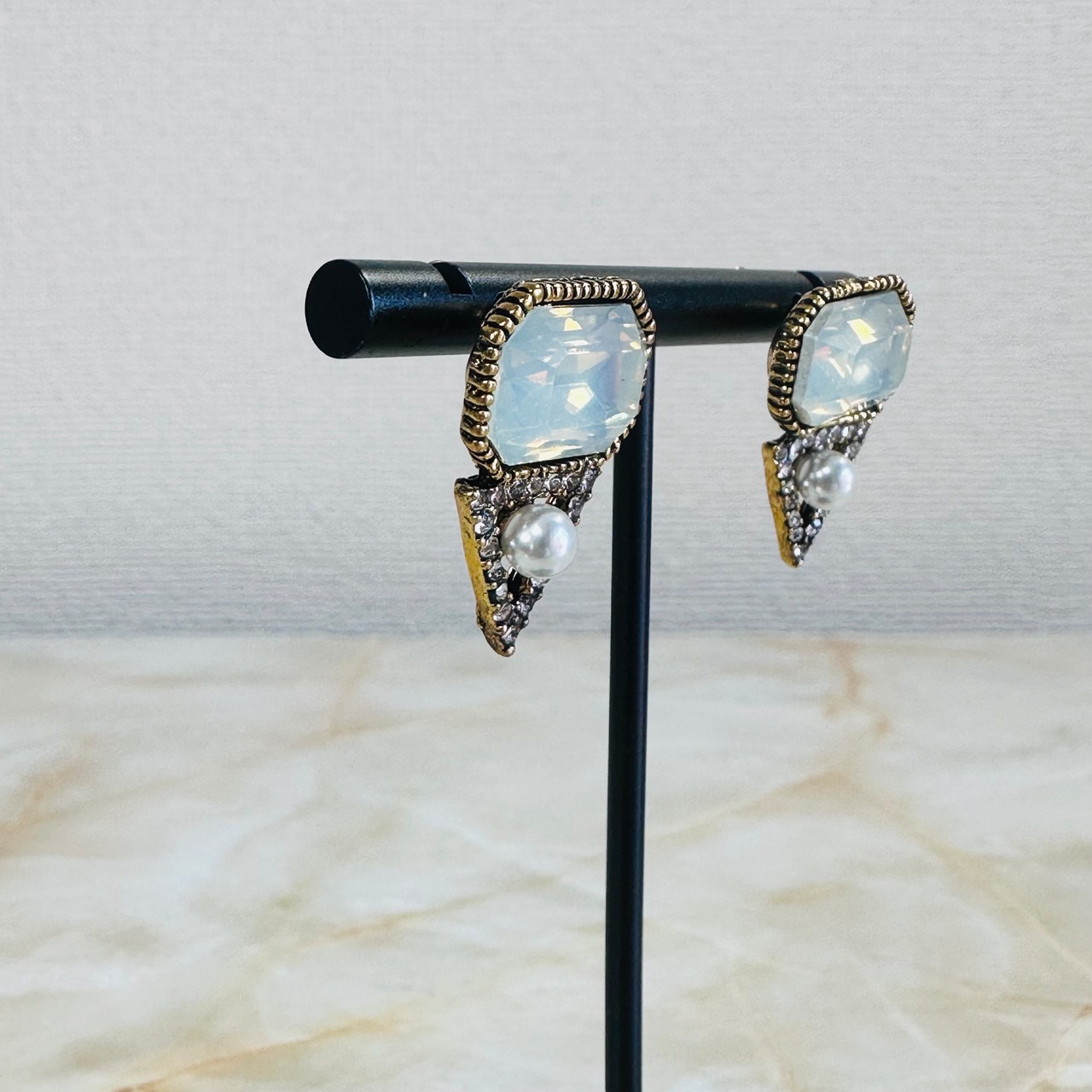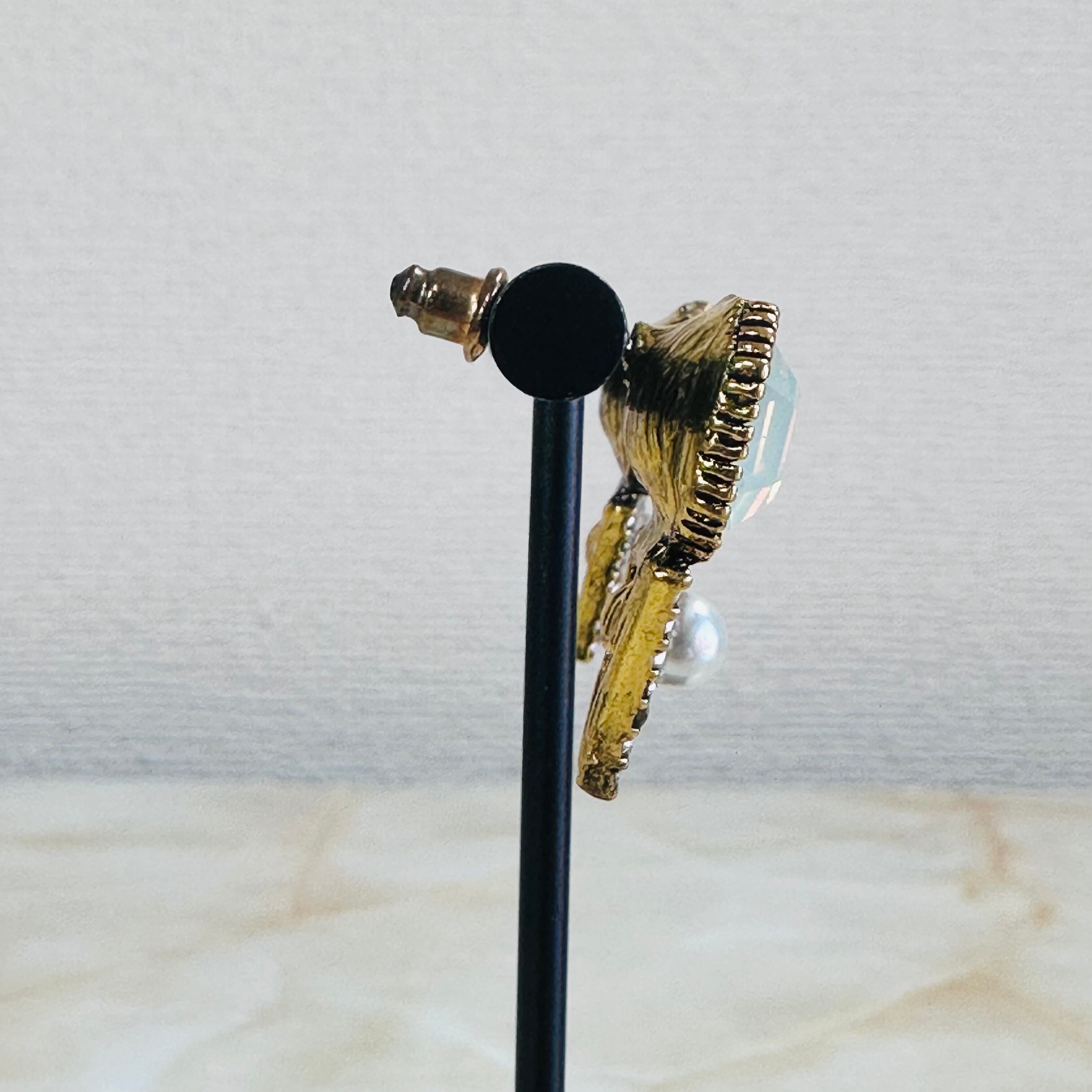 ミルキーカラー、パール、クリア✖️アンティークゴールドカラーのピアスです。