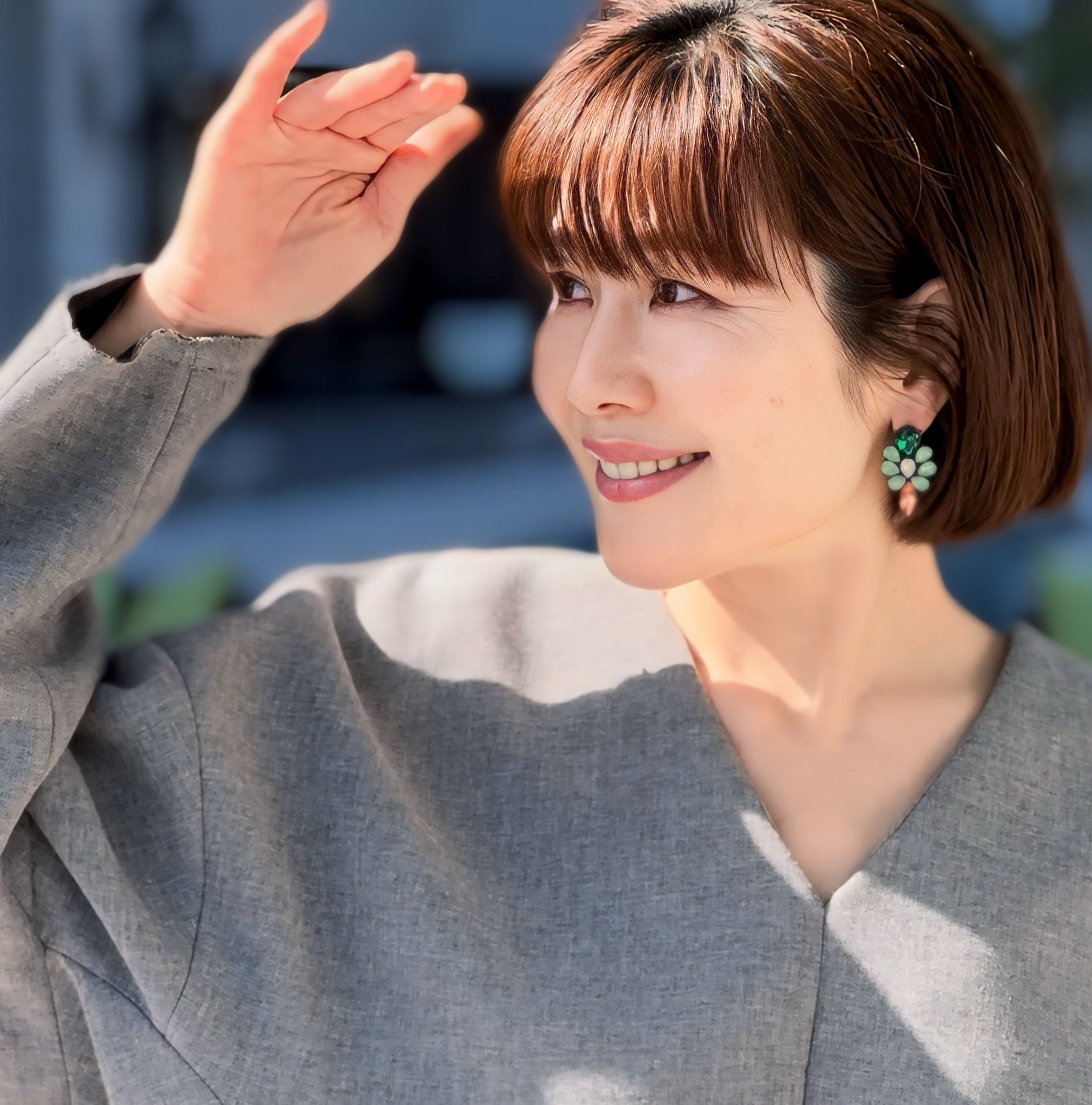 縦長のシルエットはお顔をシャープに見せてくれます。