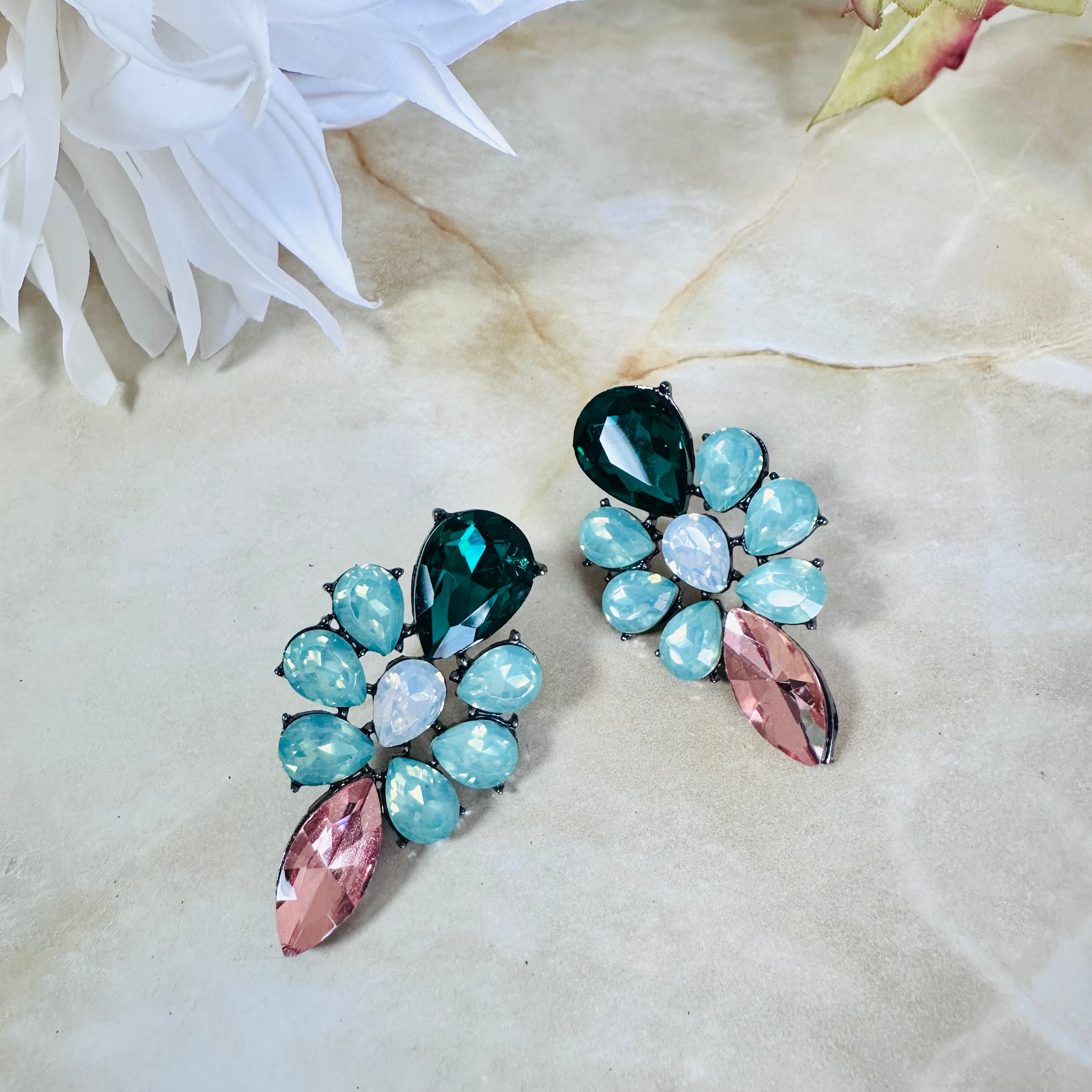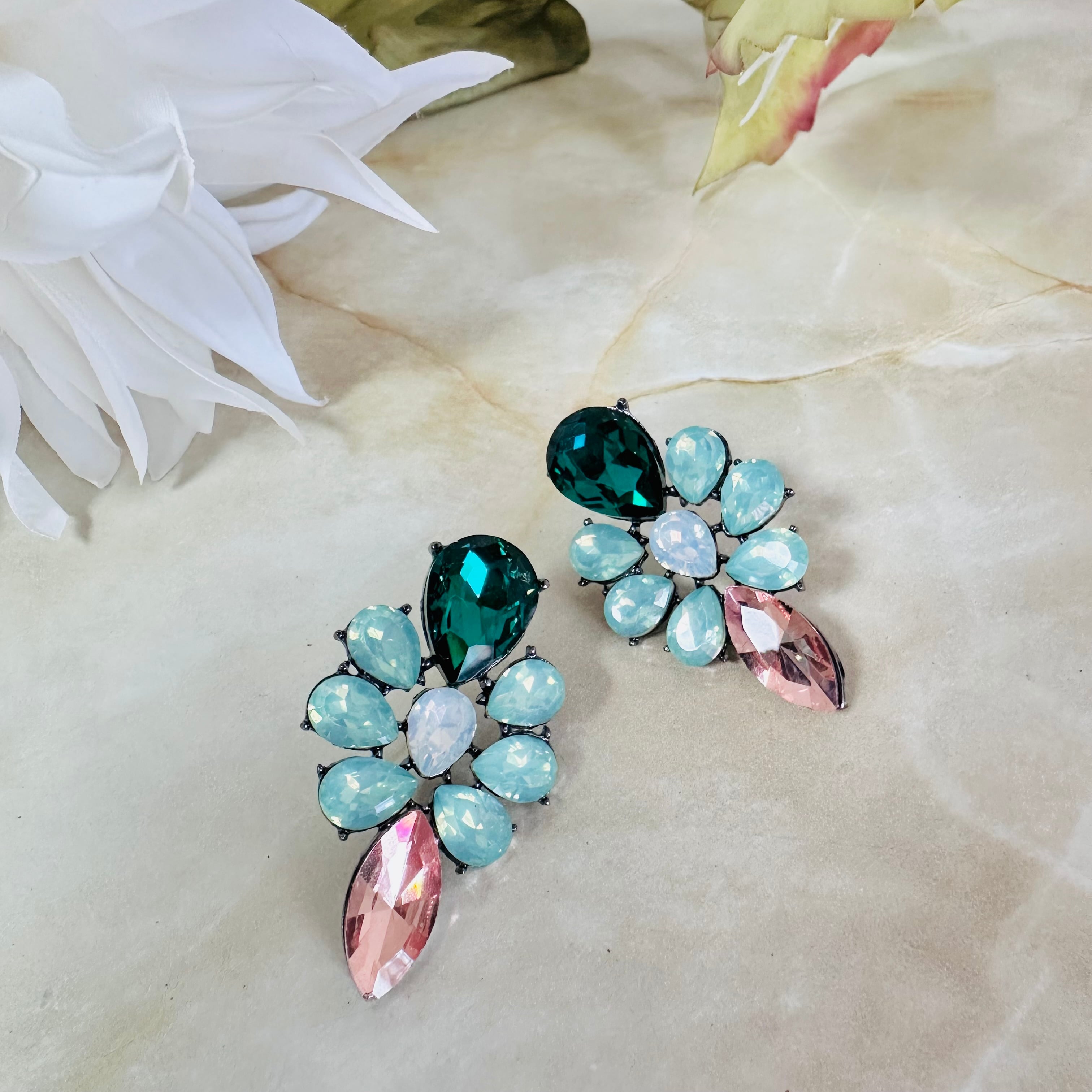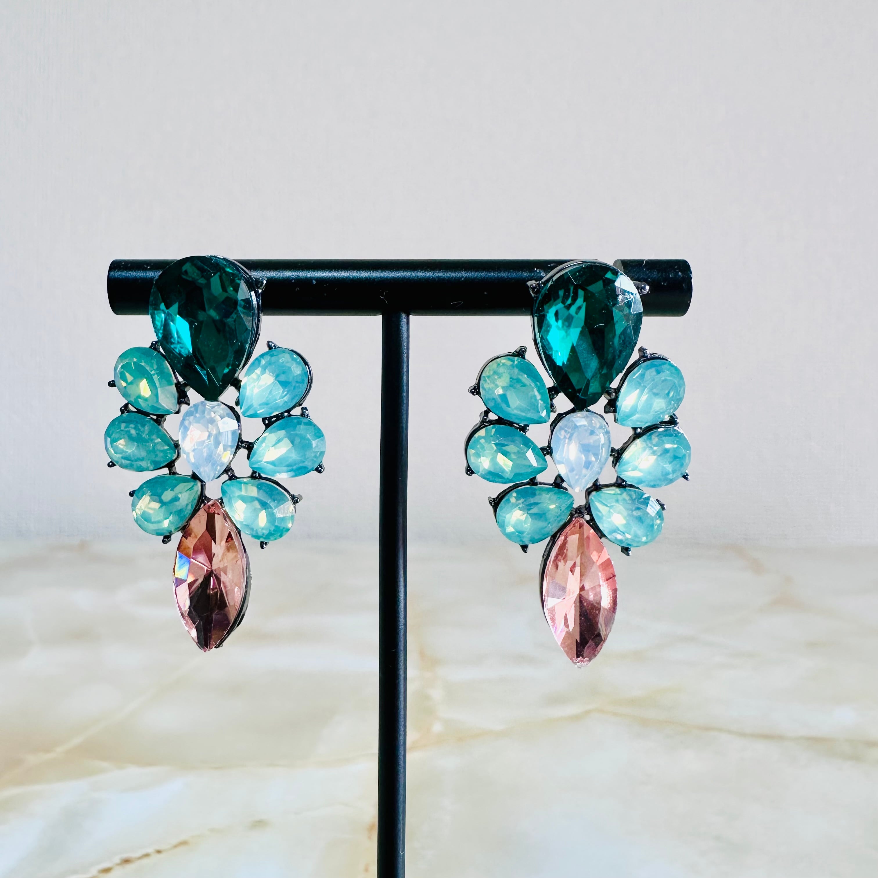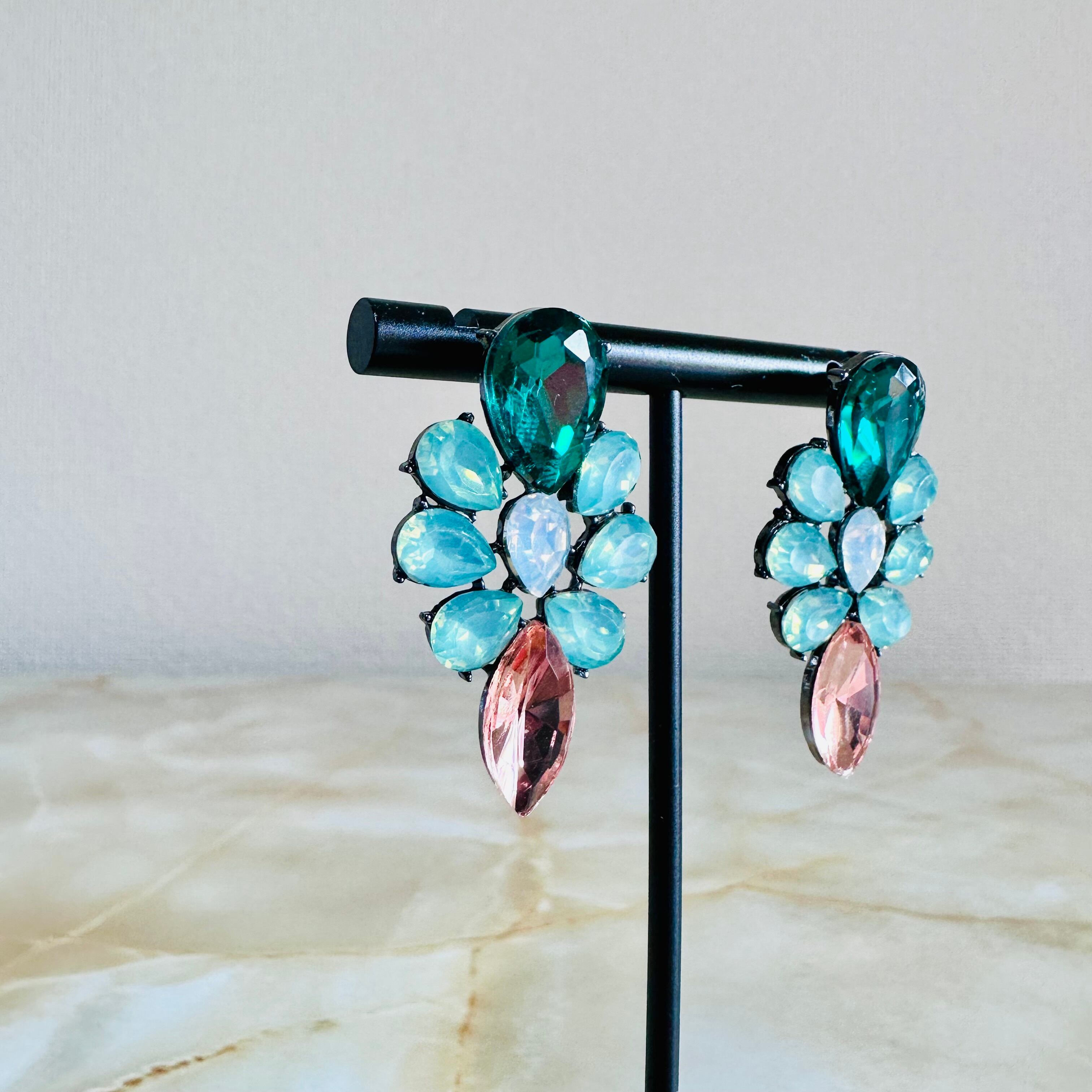 グリーン系マルチカラー✖️ブラックシルバーカラーのピアスです。