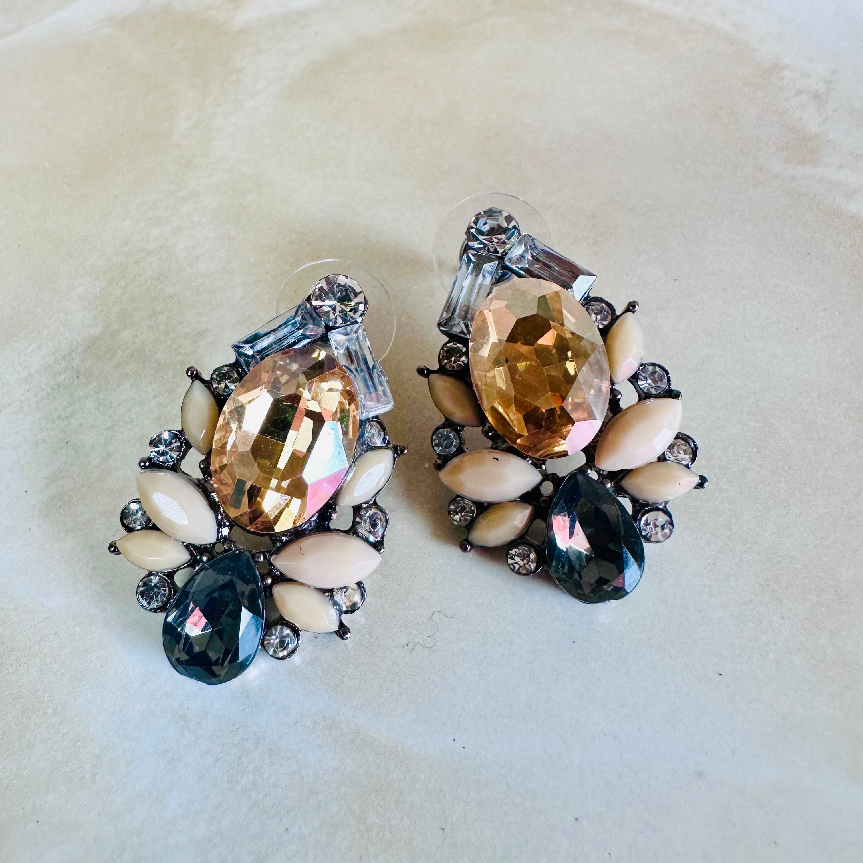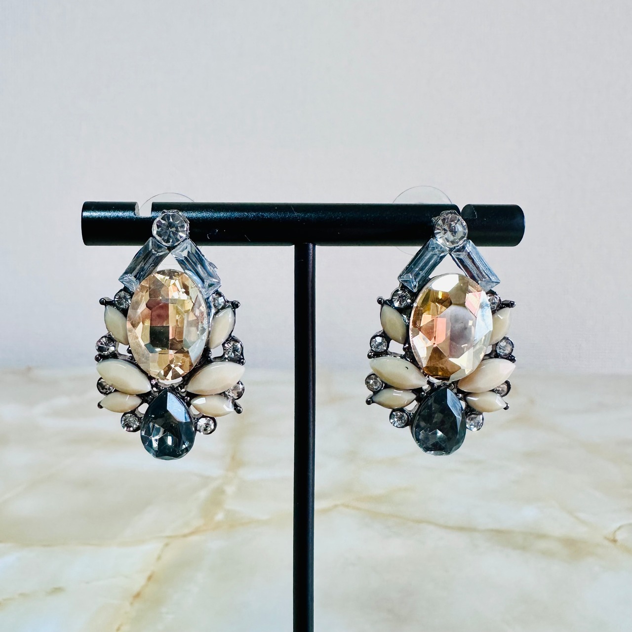 ベージュ系マルチカラー✖️ブラックシルバーカラーのピアスです。