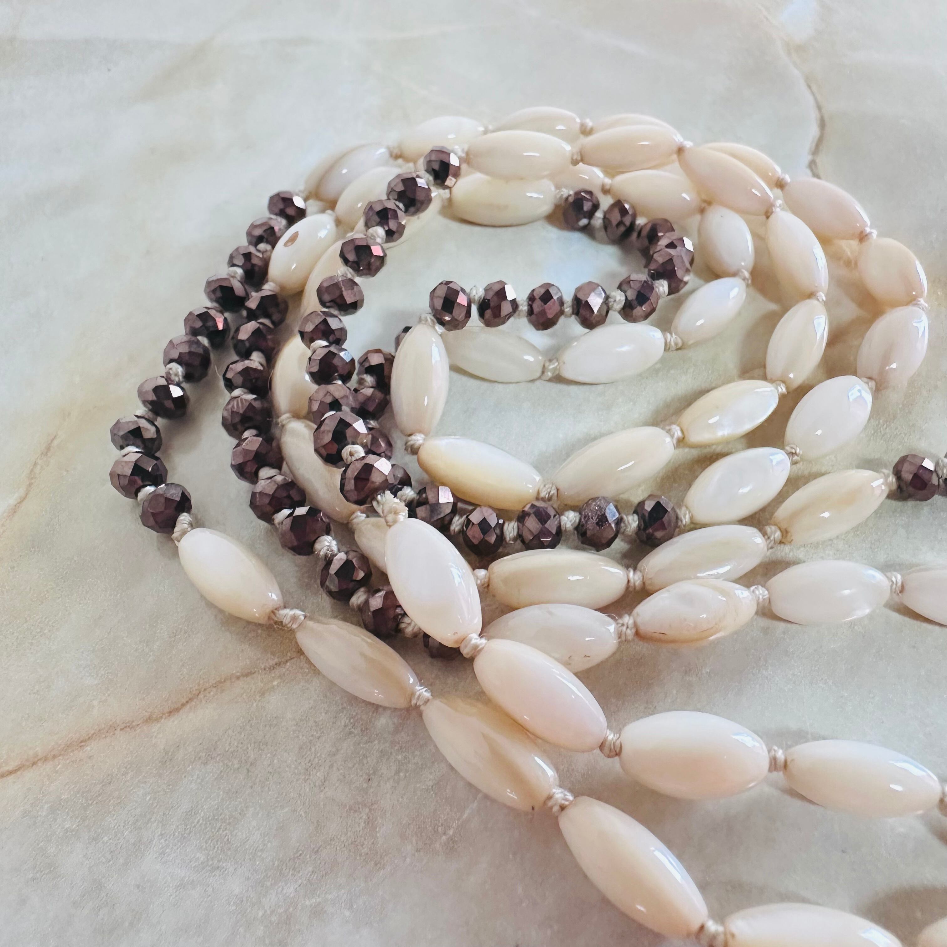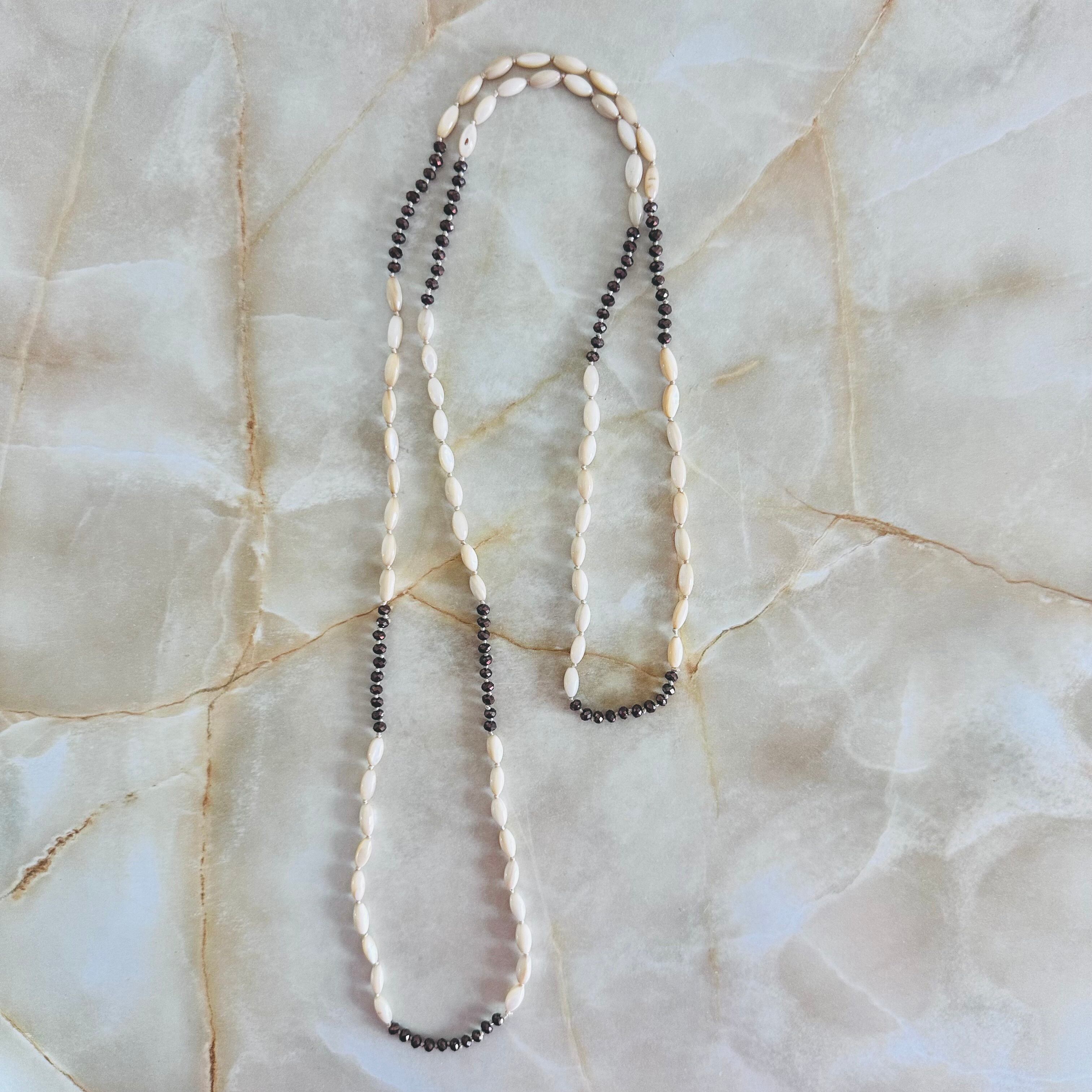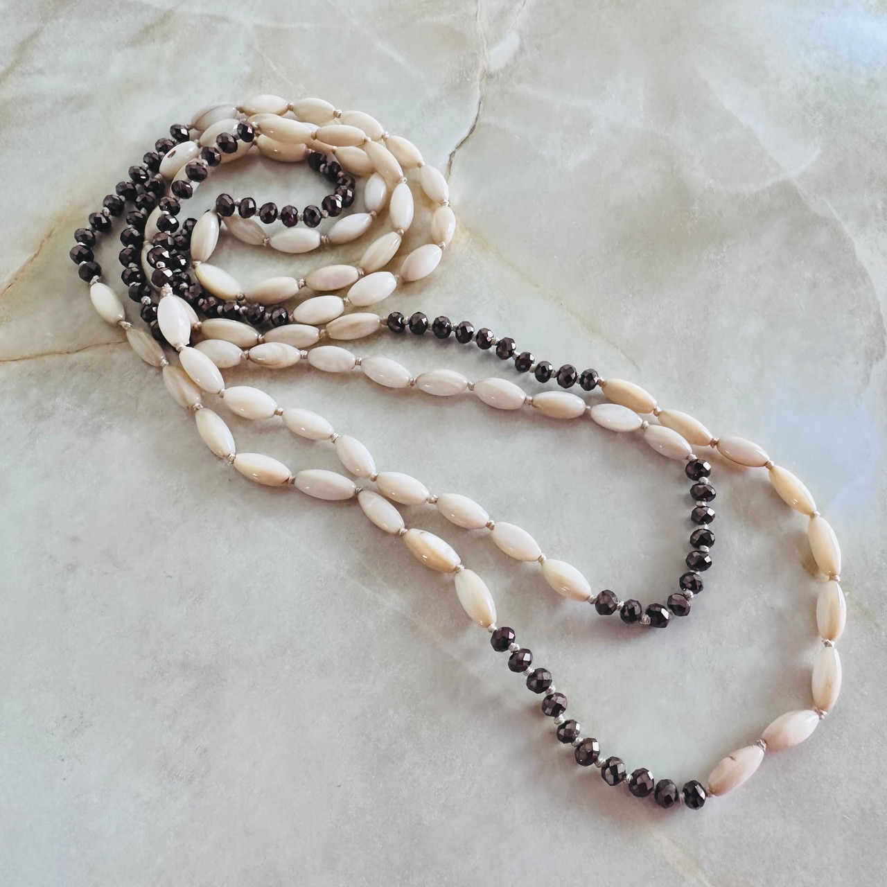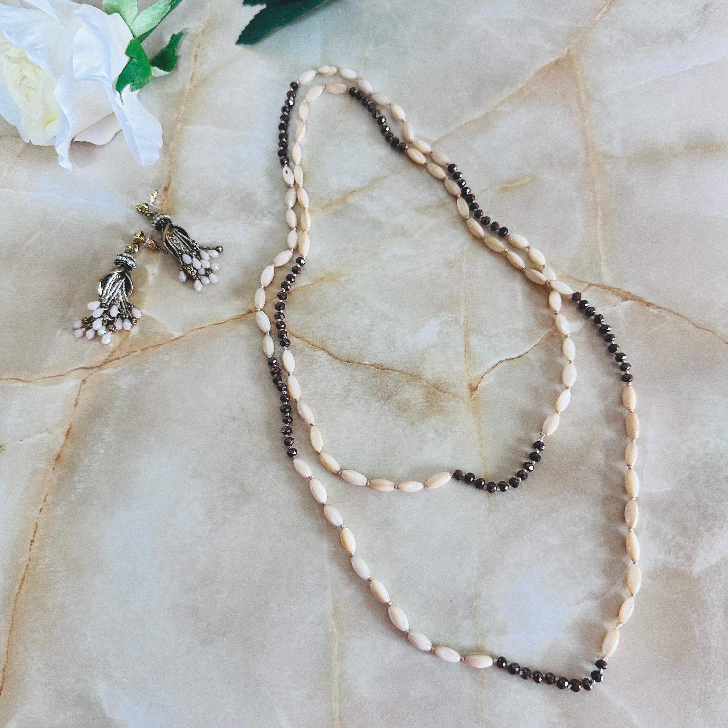 シェルとチェコビーズを使用し大人のリラックス感のあるロングタイプに仕上げました。