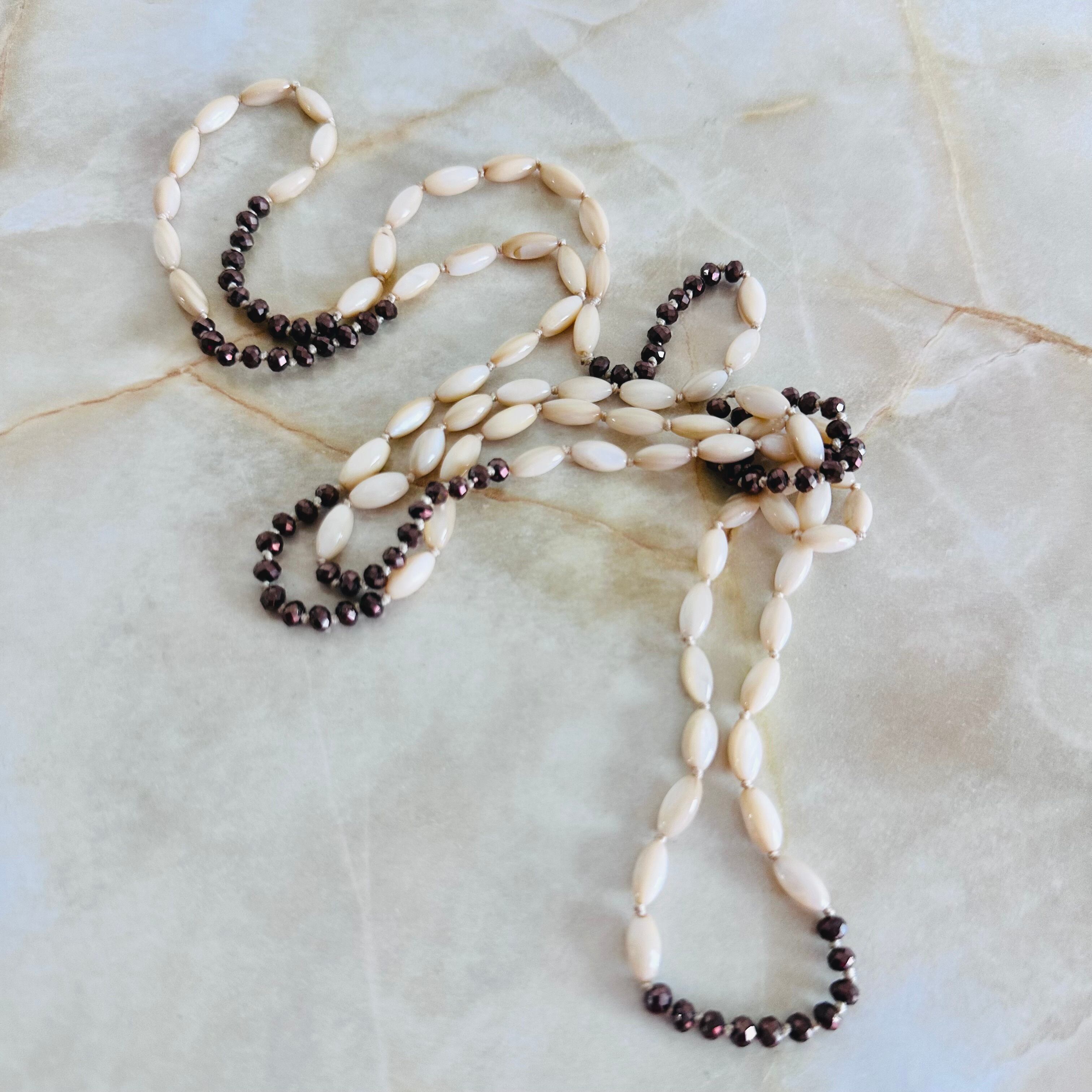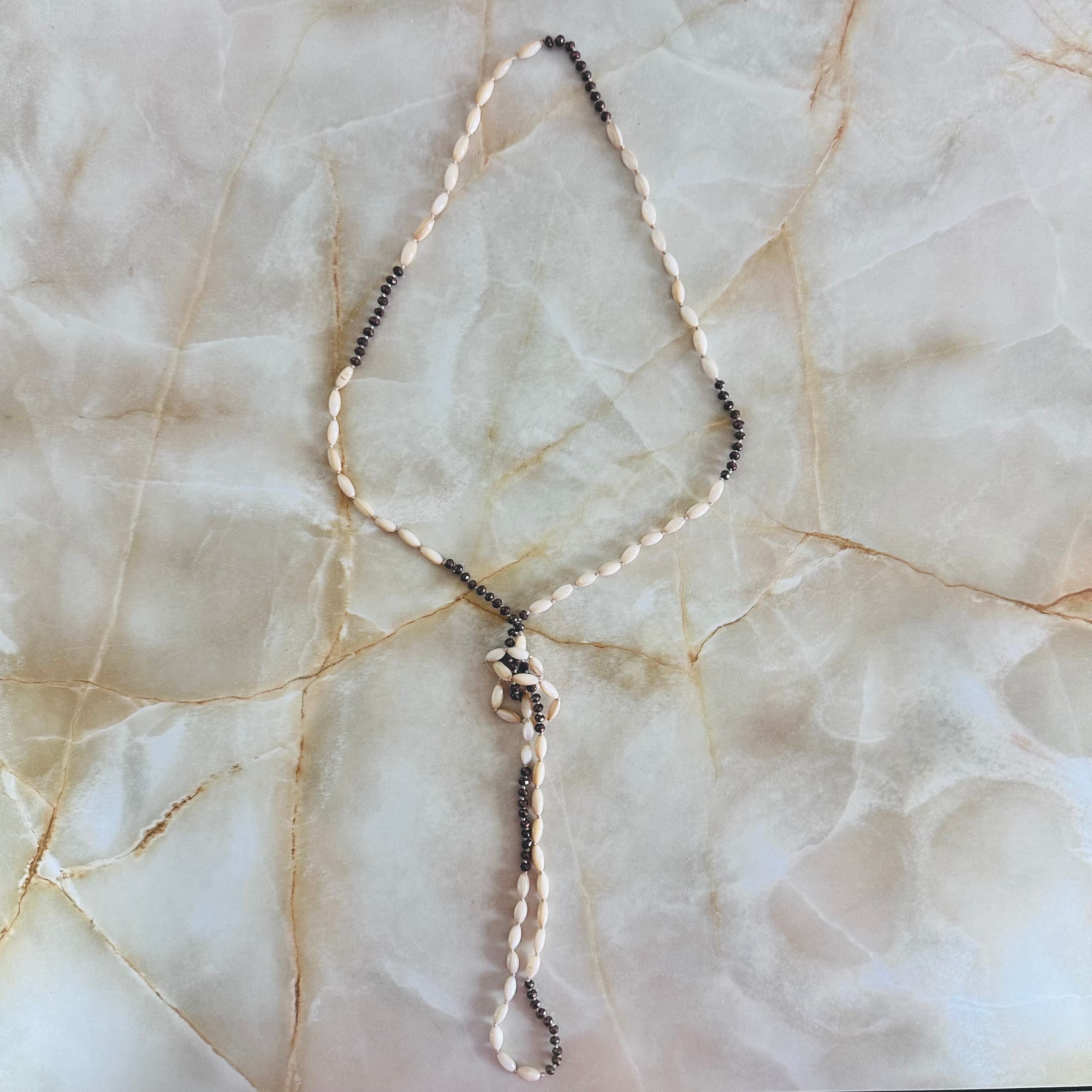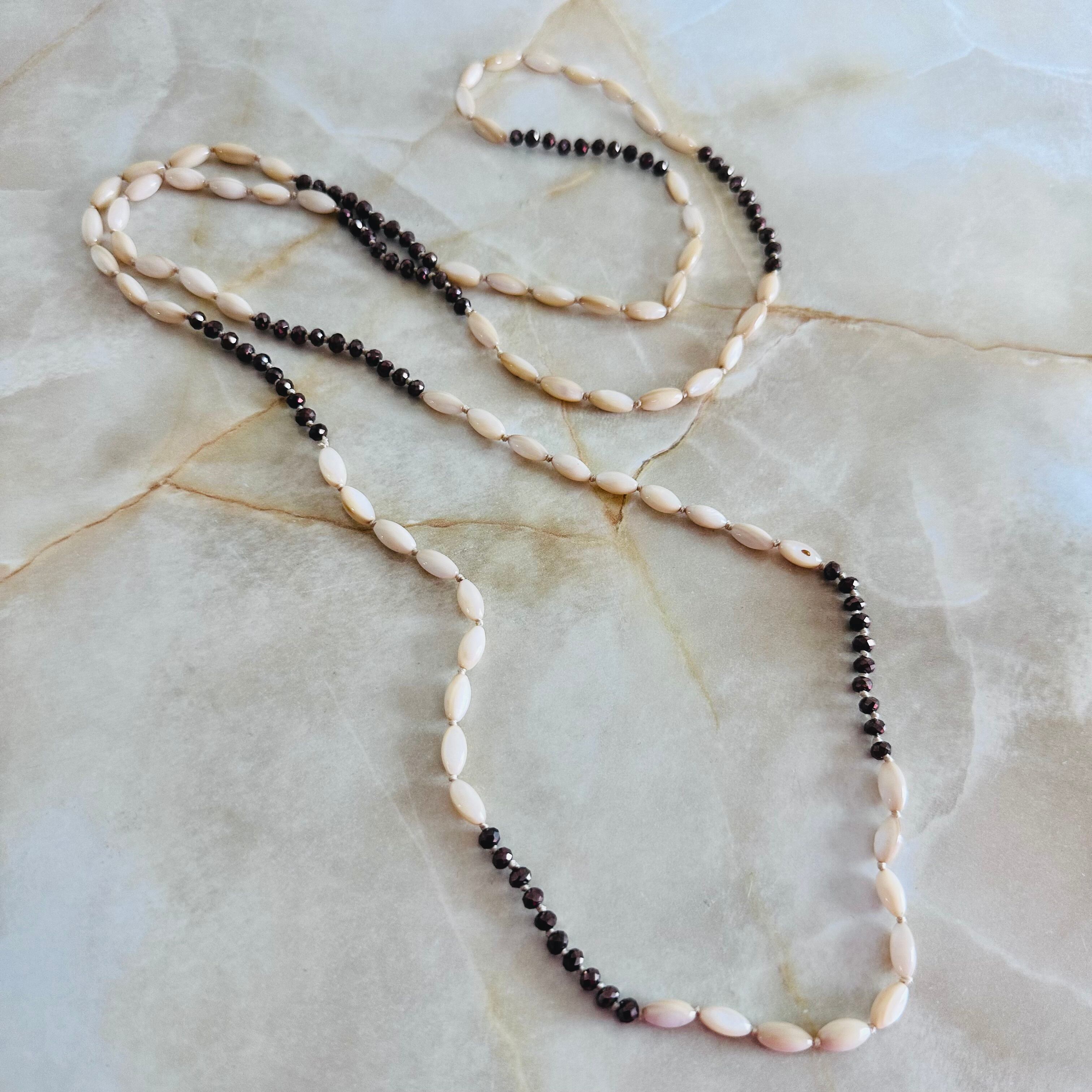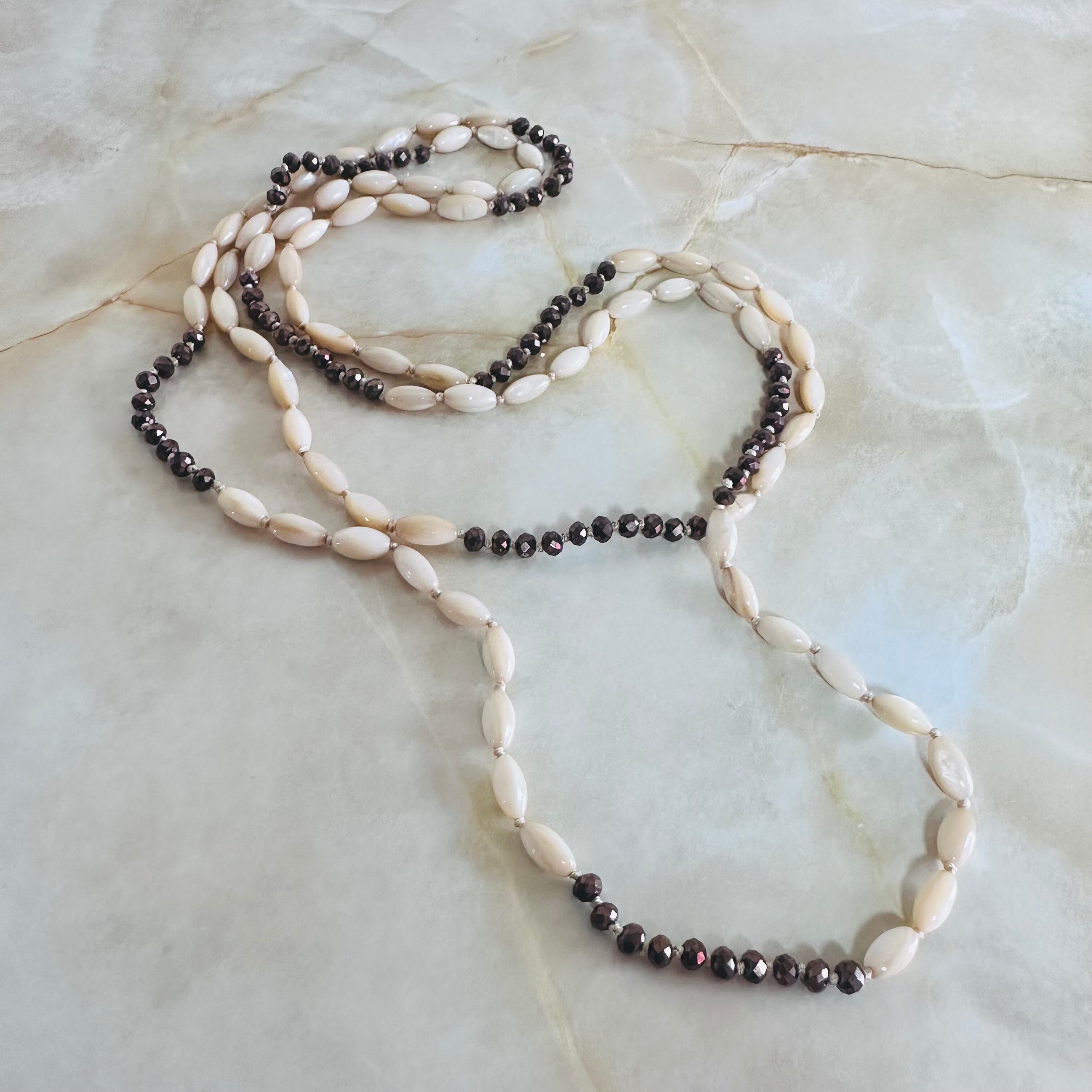 シェルとチェコビーズを使用し大人のリラックス感のあるロングタイプに仕上げました。