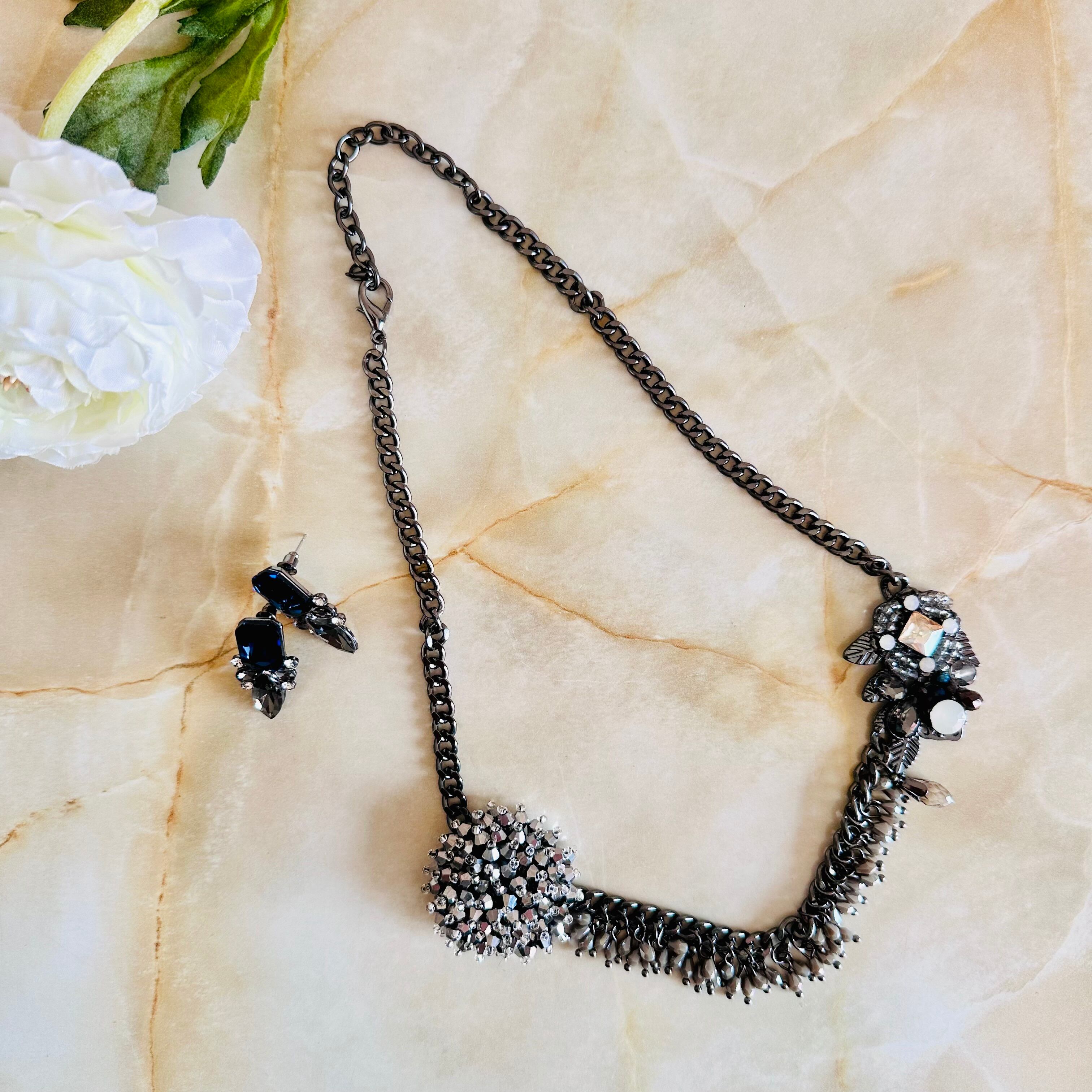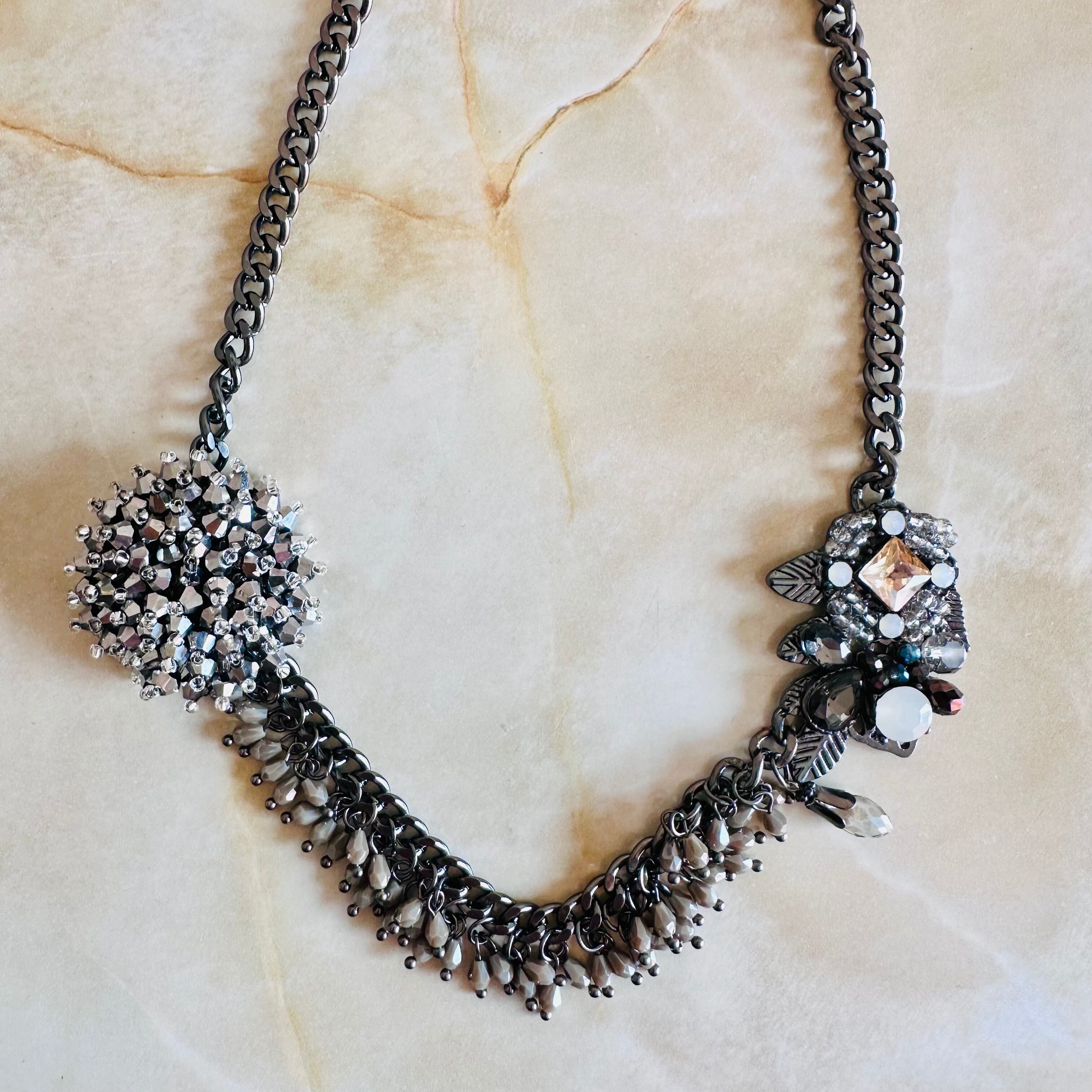 マルチカラー✖️ブラックシルバーカラーのネックレスです。