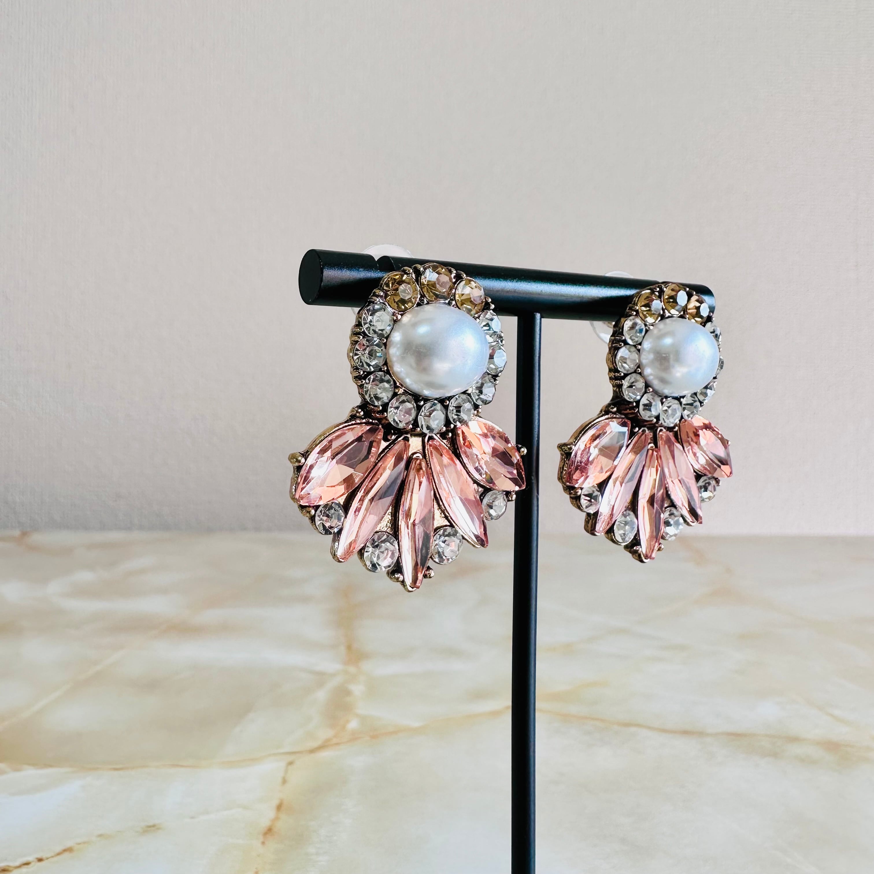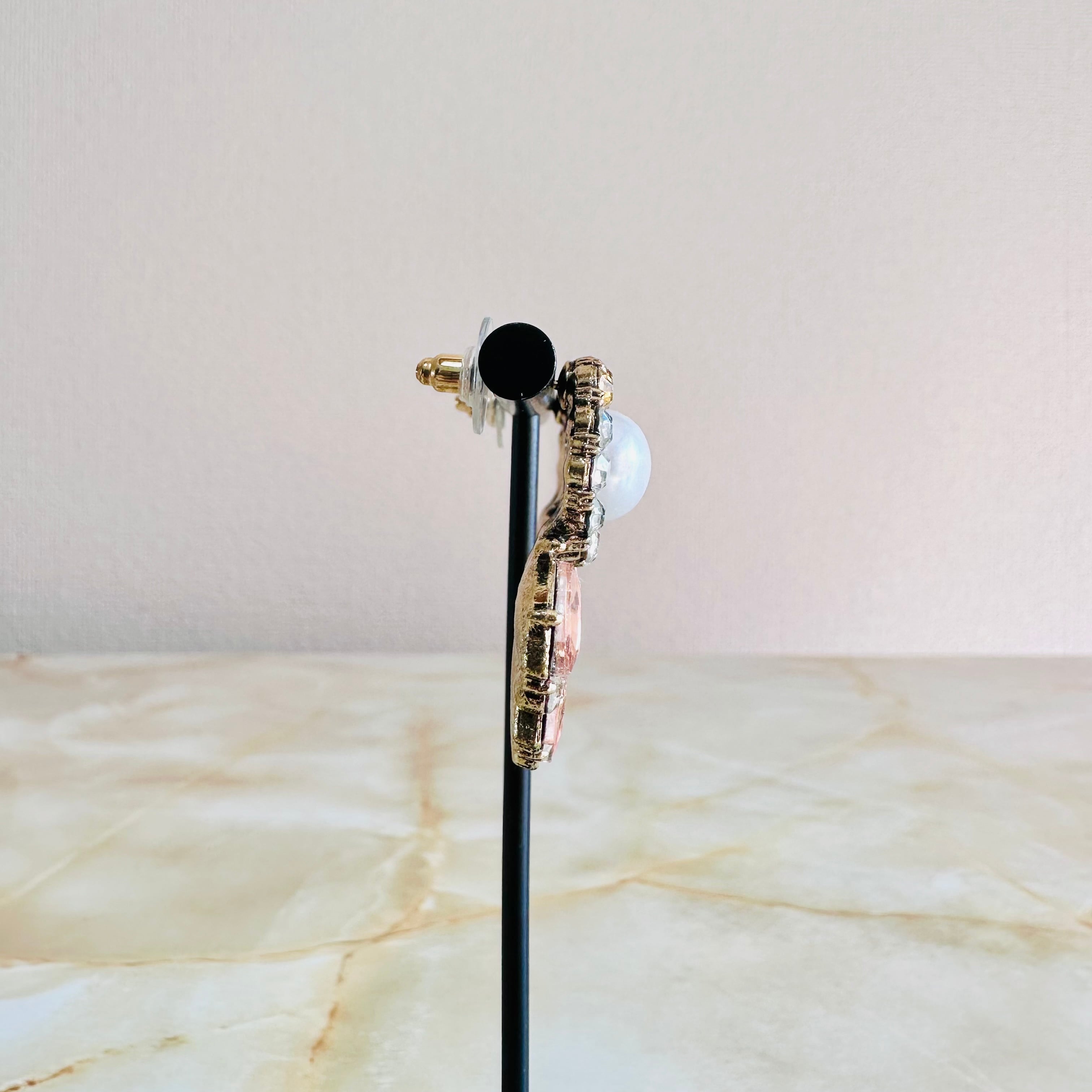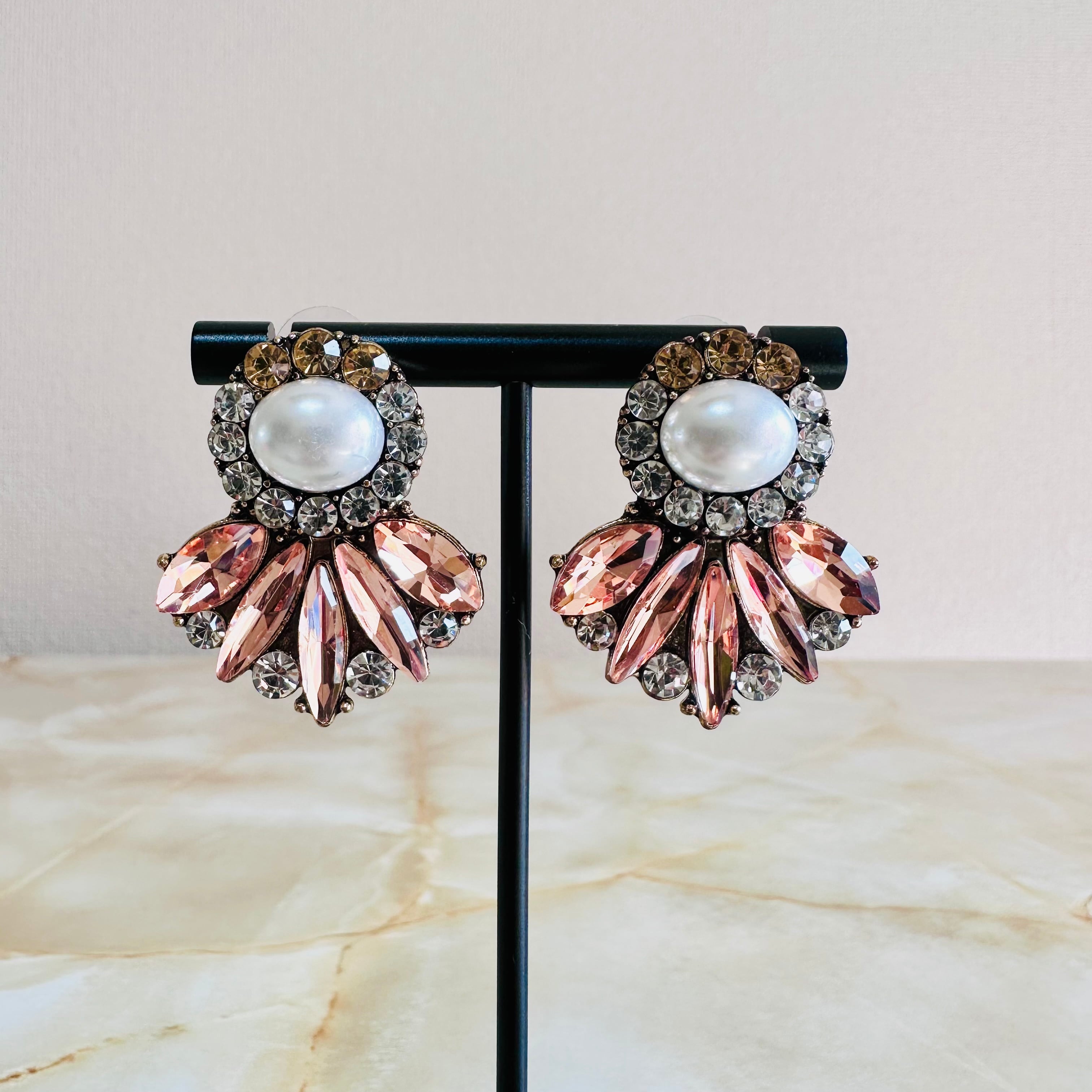 パール、ピンク、クリア、イエロー✖️アンティークゴールドカラーのピアスです。