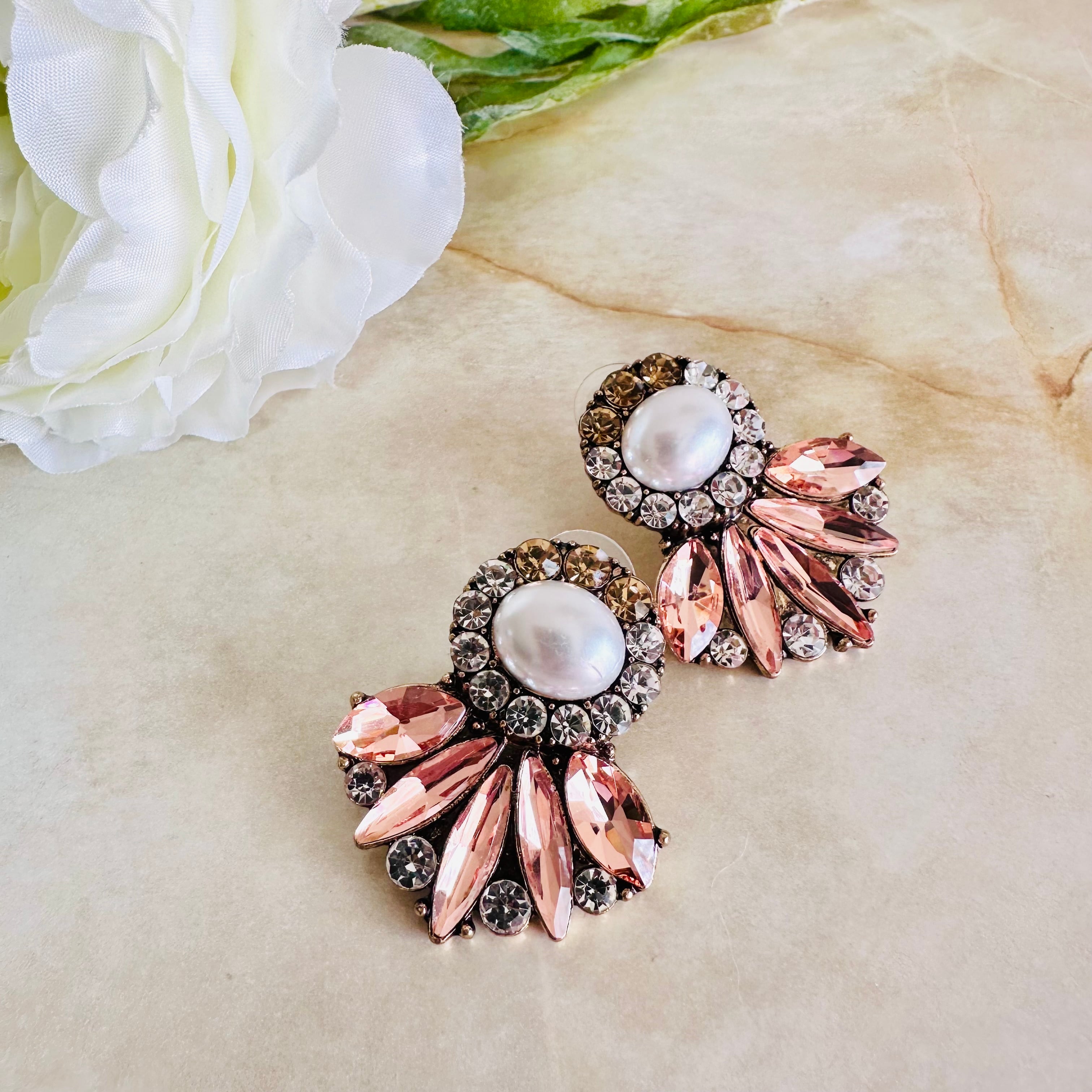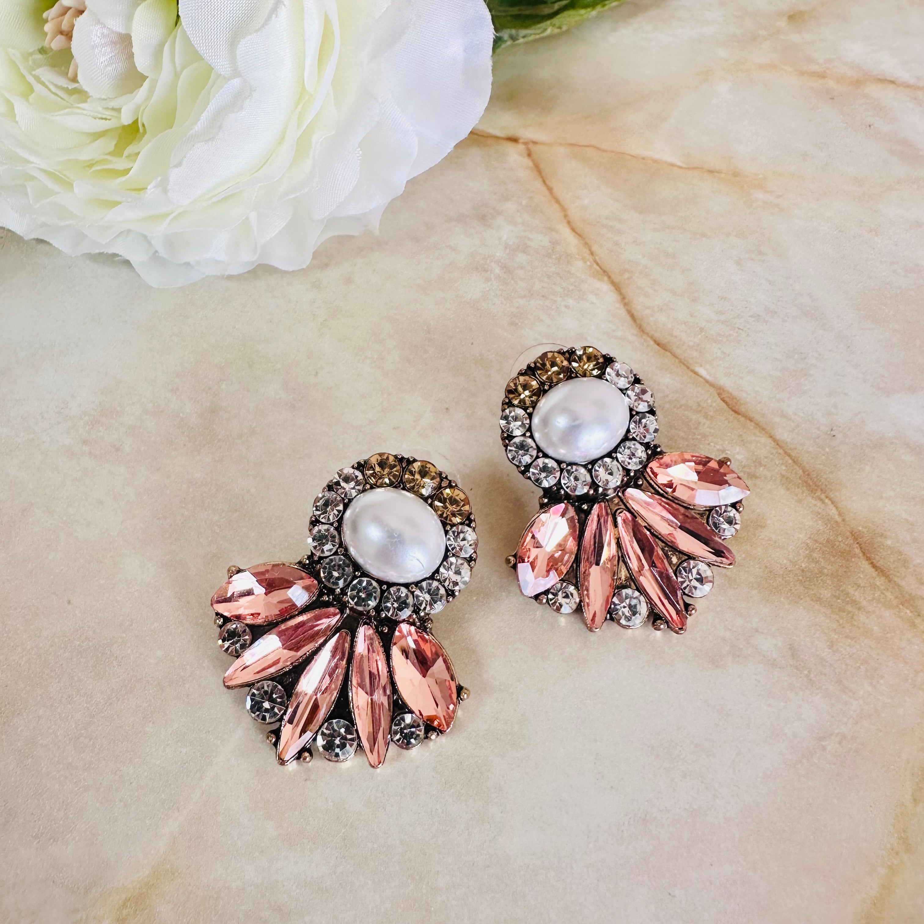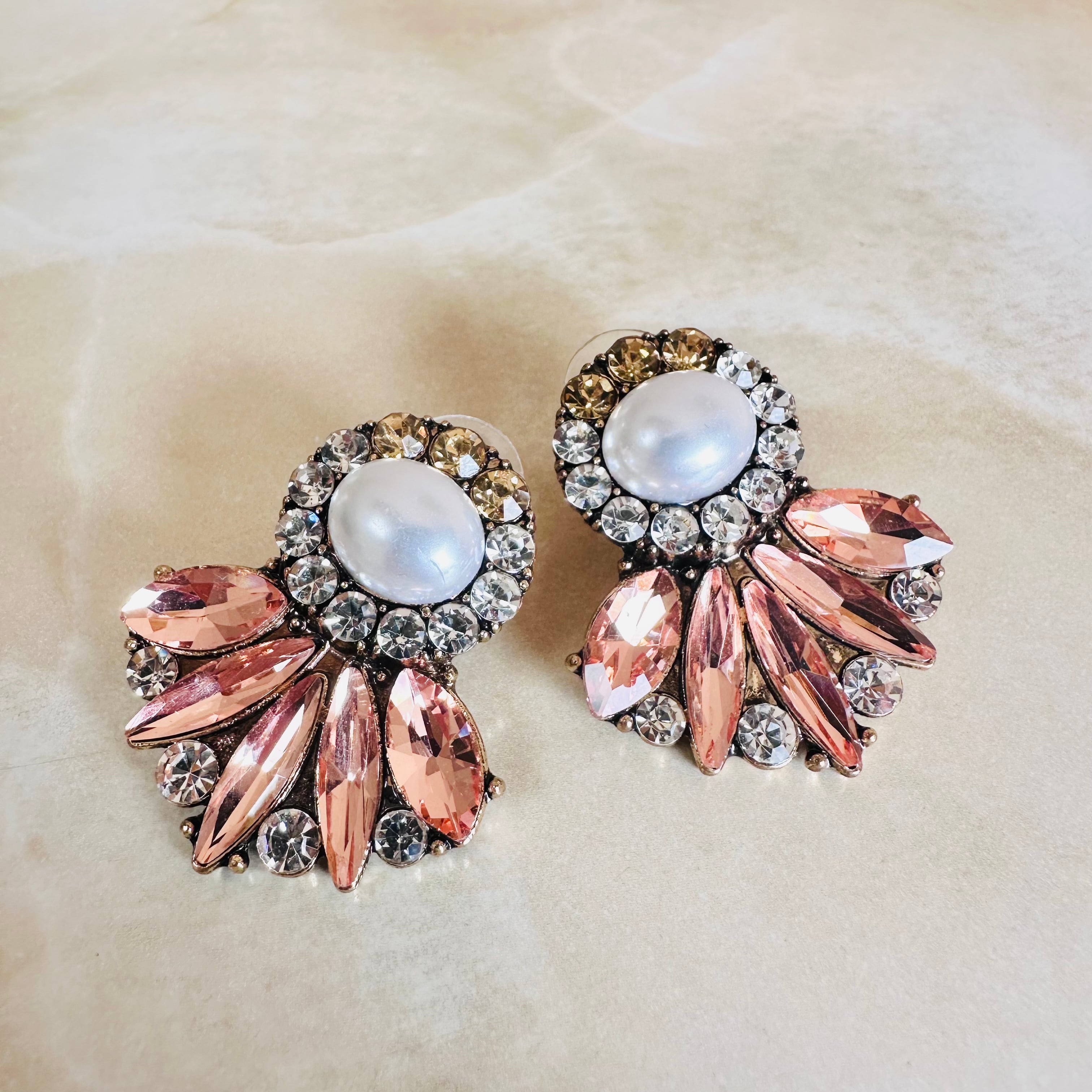 パール、ピンク、クリア、イエロー✖️アンティークゴールドカラーのピアスです。