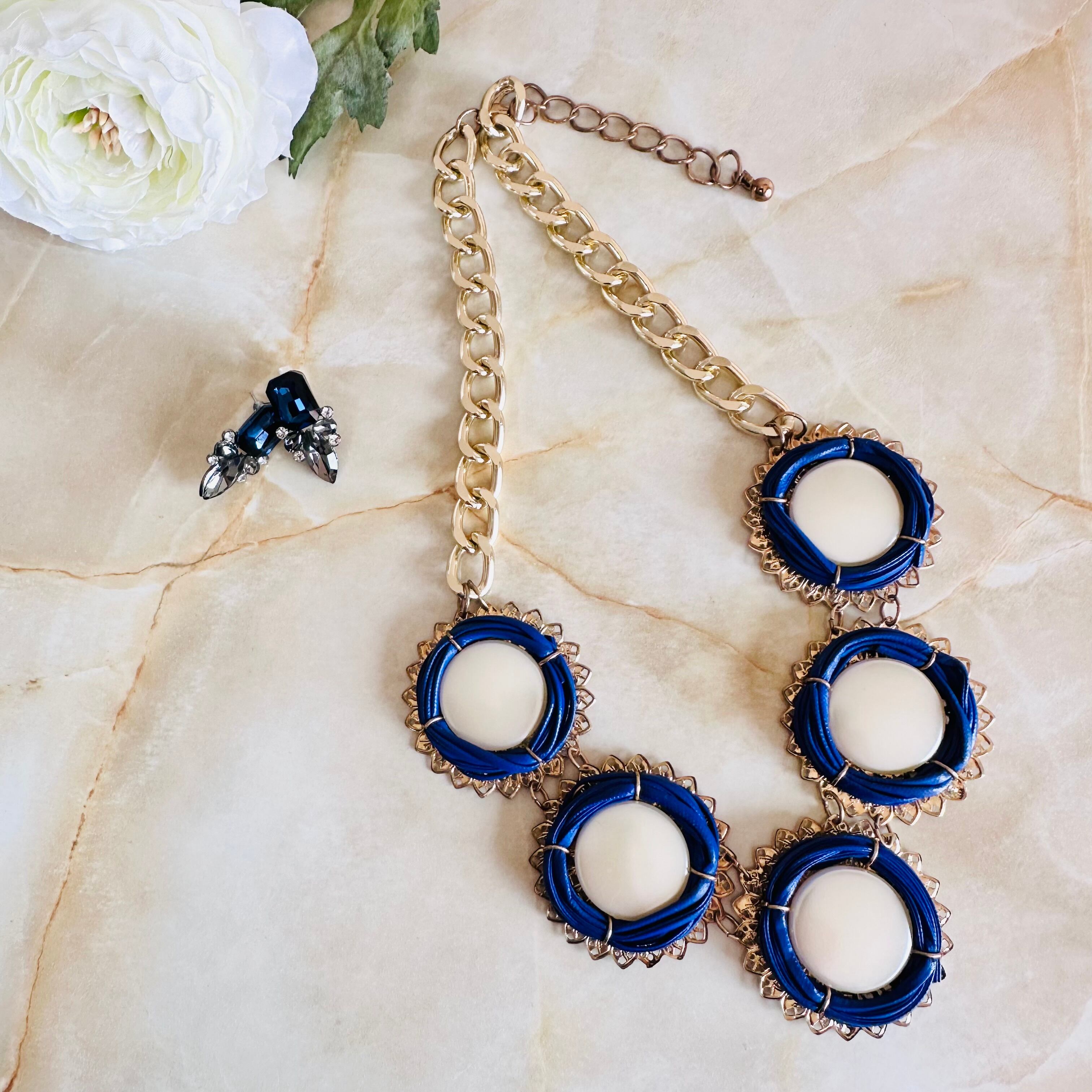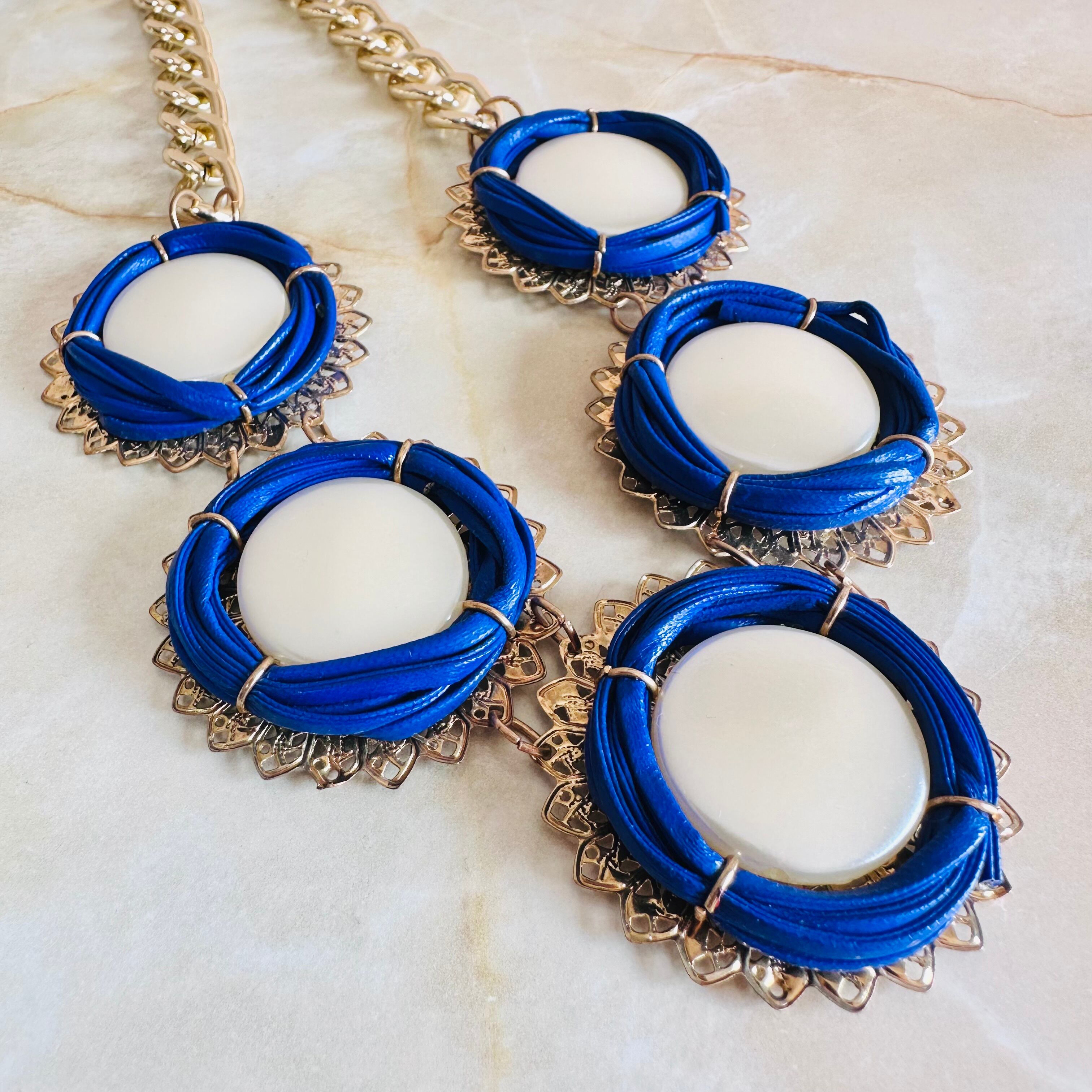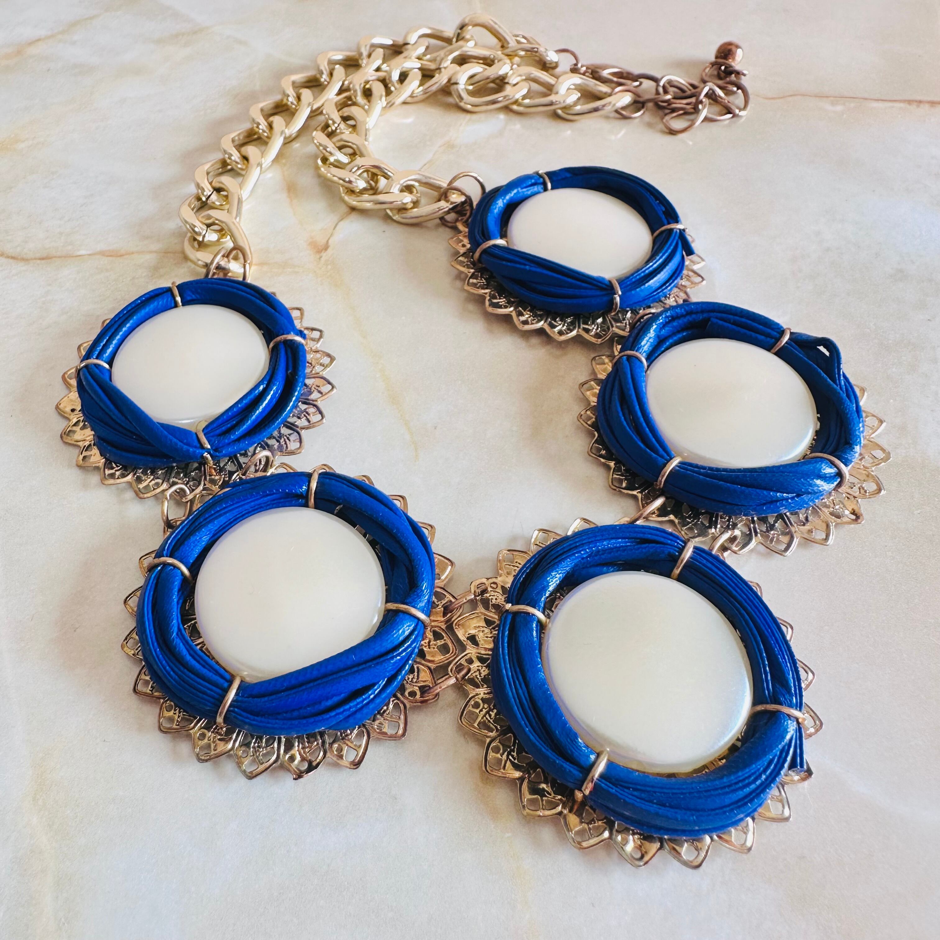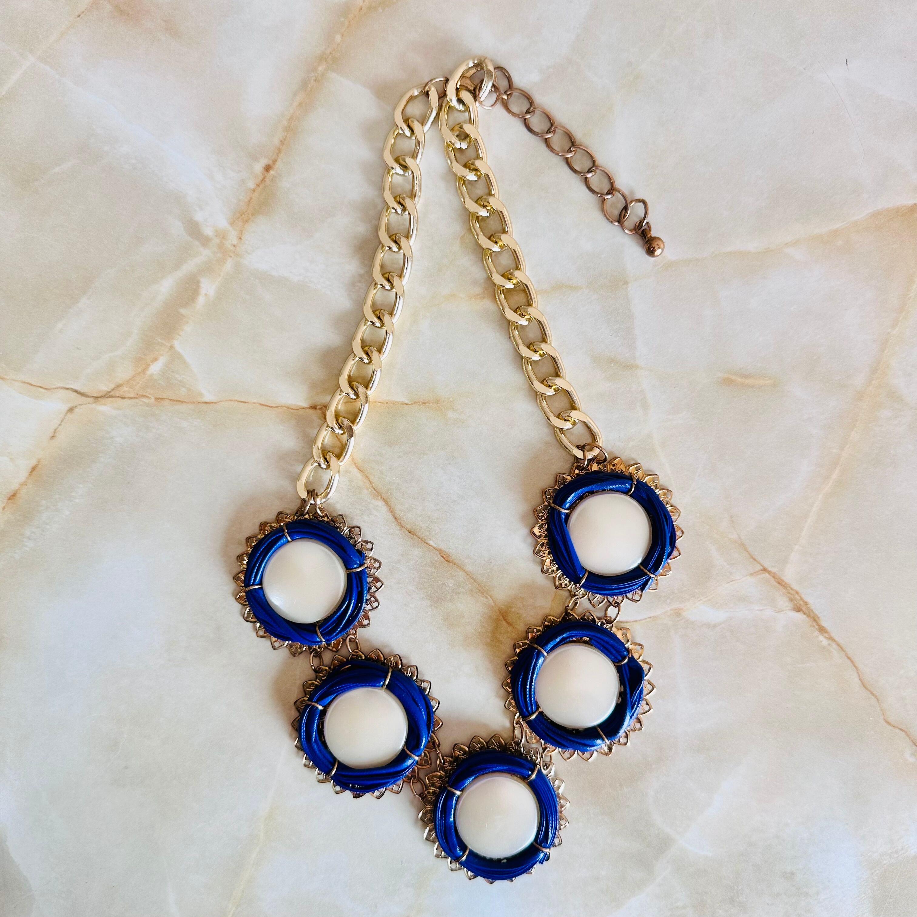 パールカラー、ブルー✖️アンティークゴールドカラーのネックレスです。